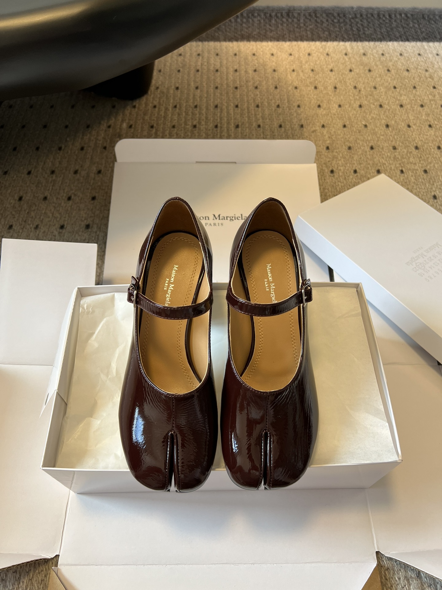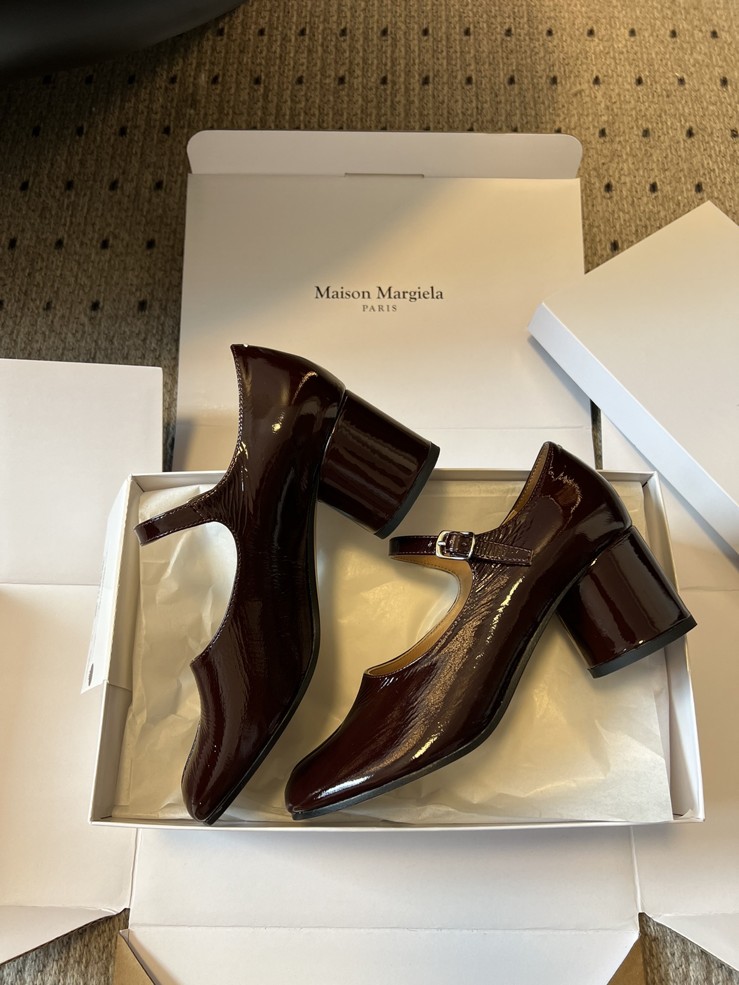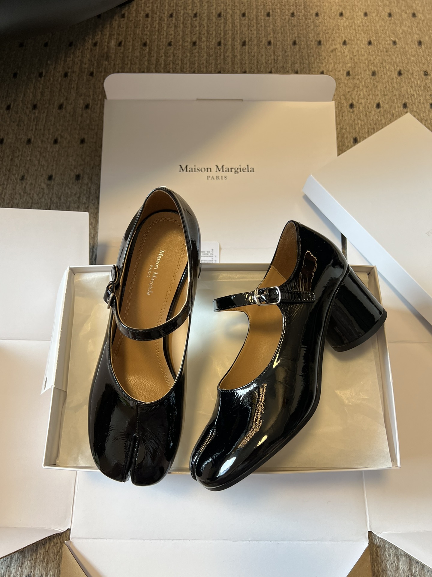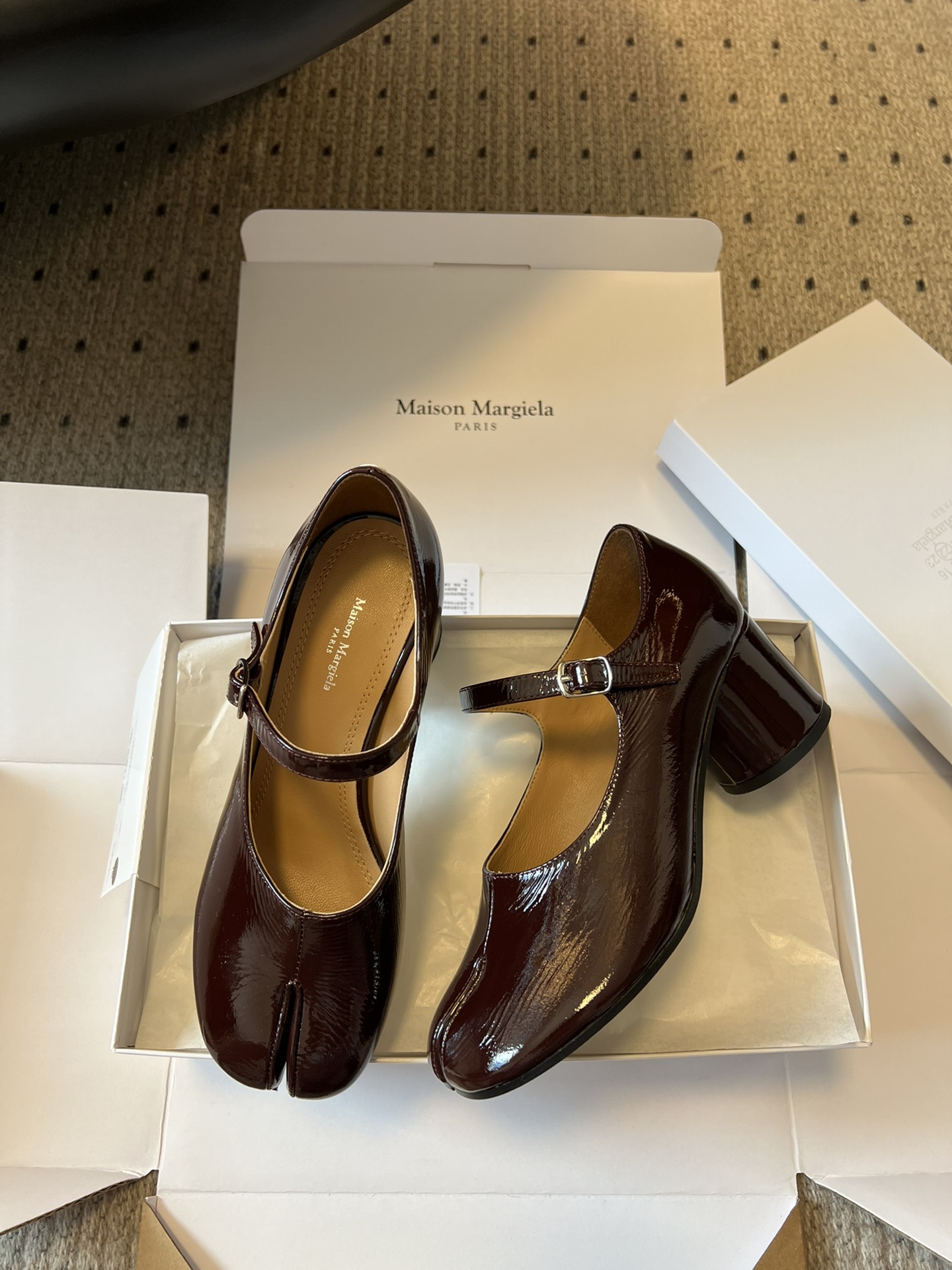 NIGO Maison Margiela Women's Spring/Fall Fashion Classic Round Toe Slip On Solid Color Leather Chunky Heel Mary Jane Split Toe Shoes #nigo78646