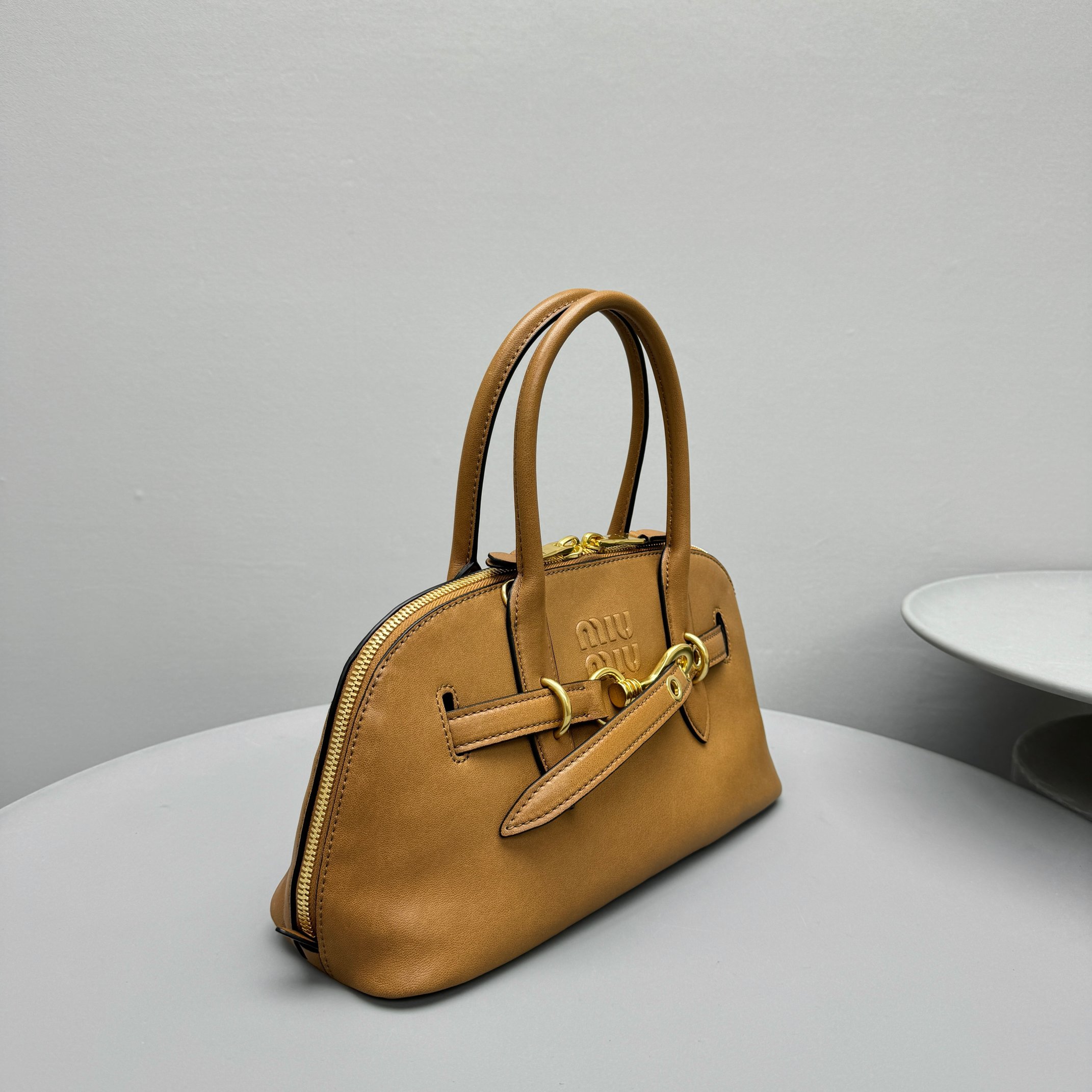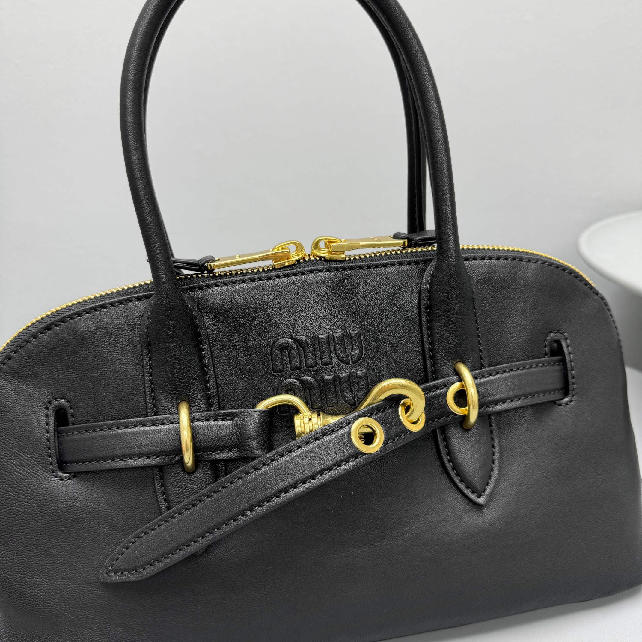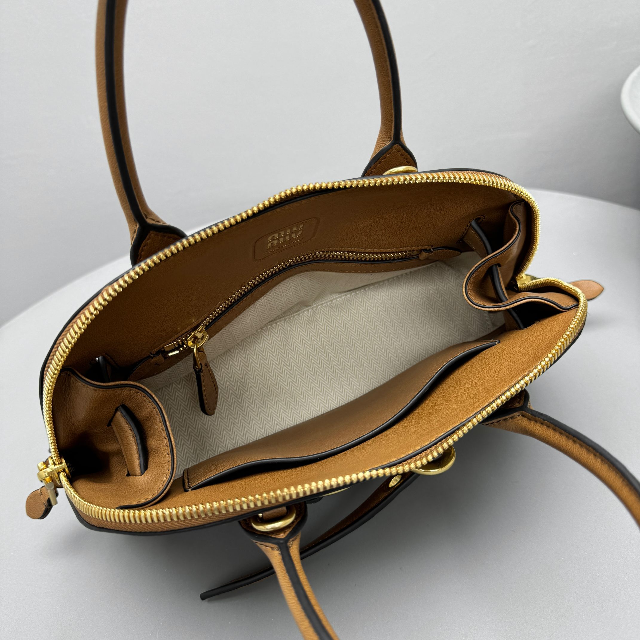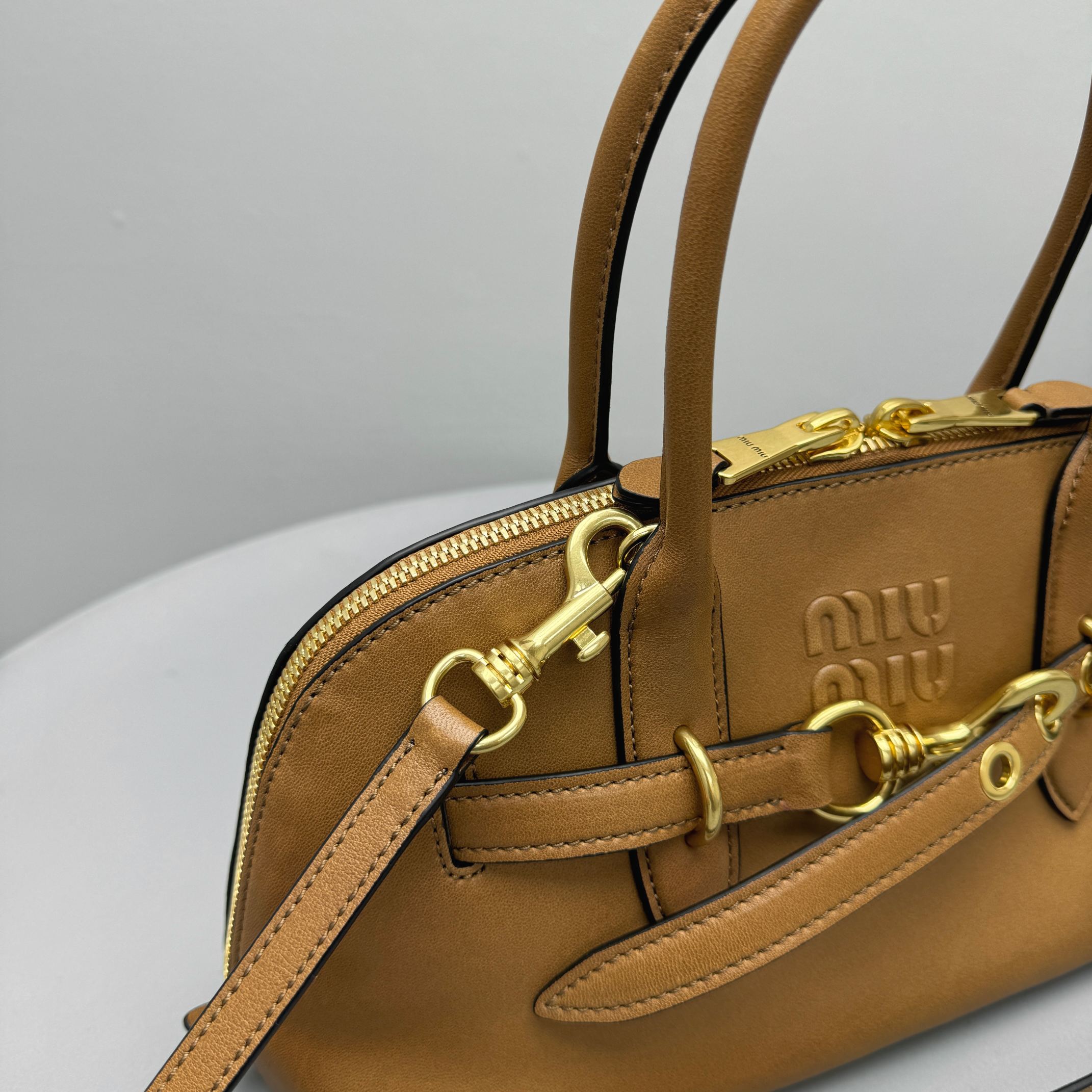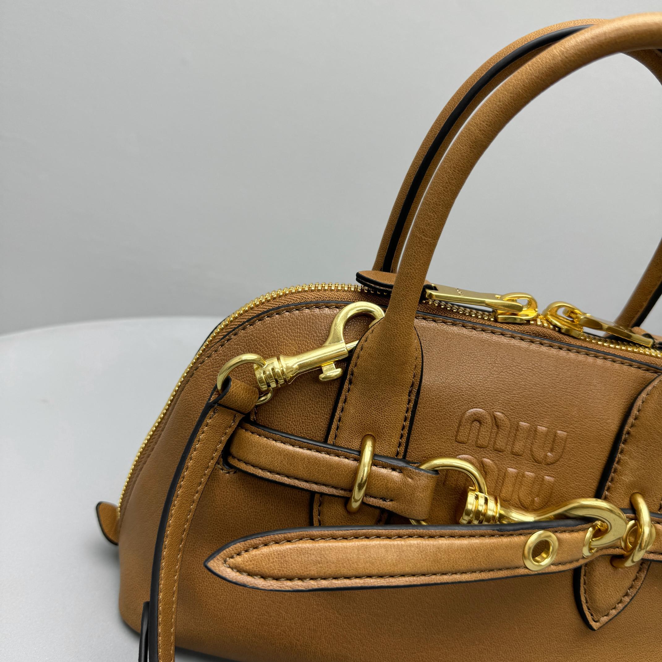 NIGO MiuMiu Aventure Nappa Women's Pure Color Embossed Letter Leather Shoulder Tote Bag Bags #nigo72925