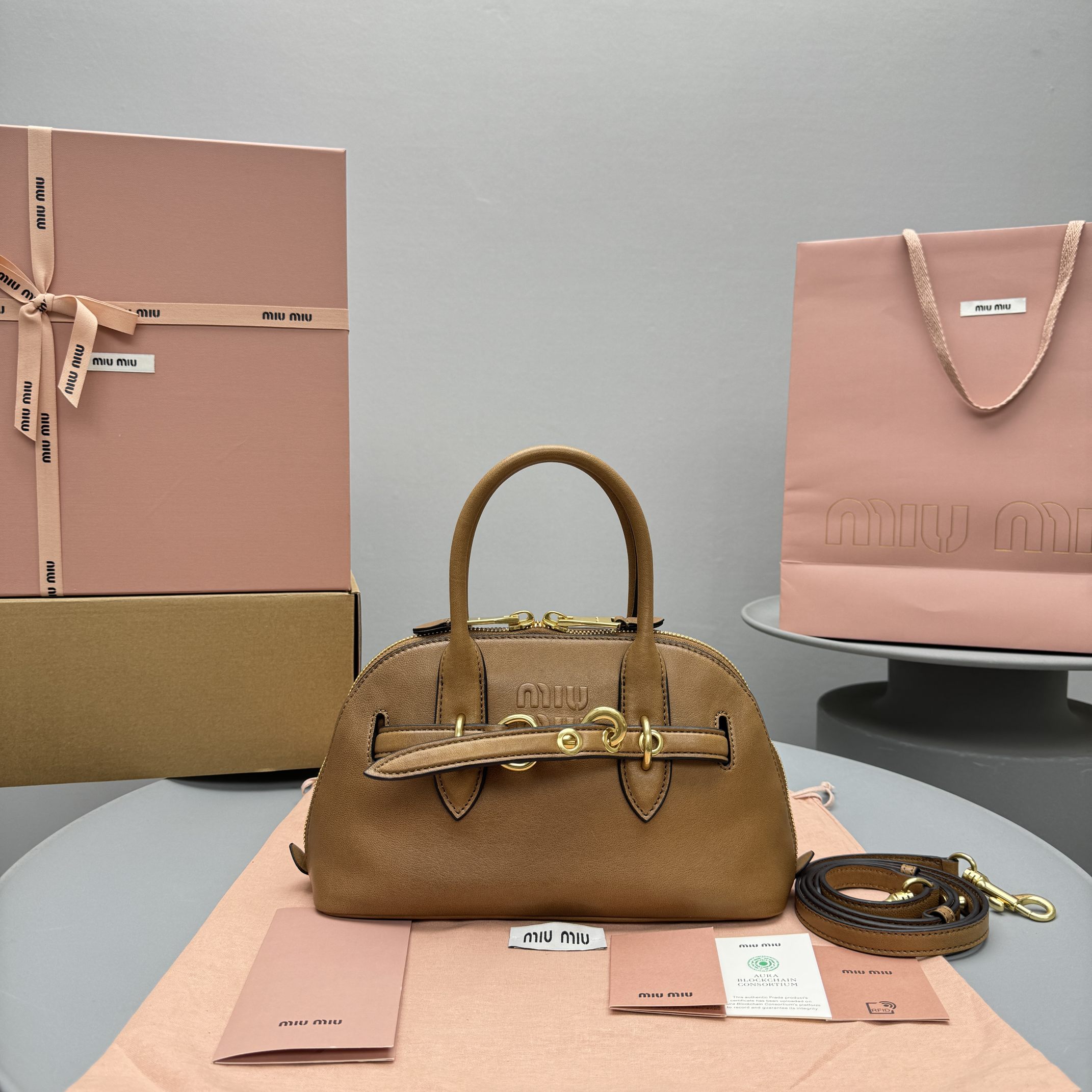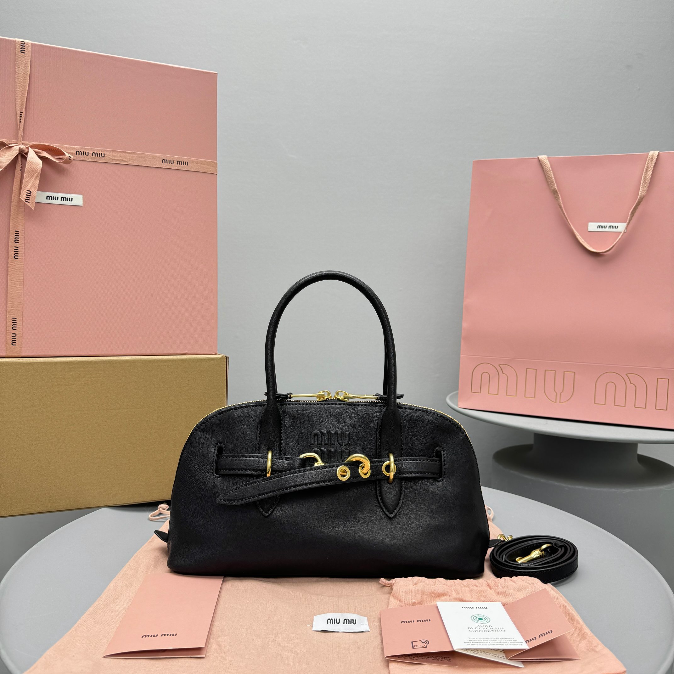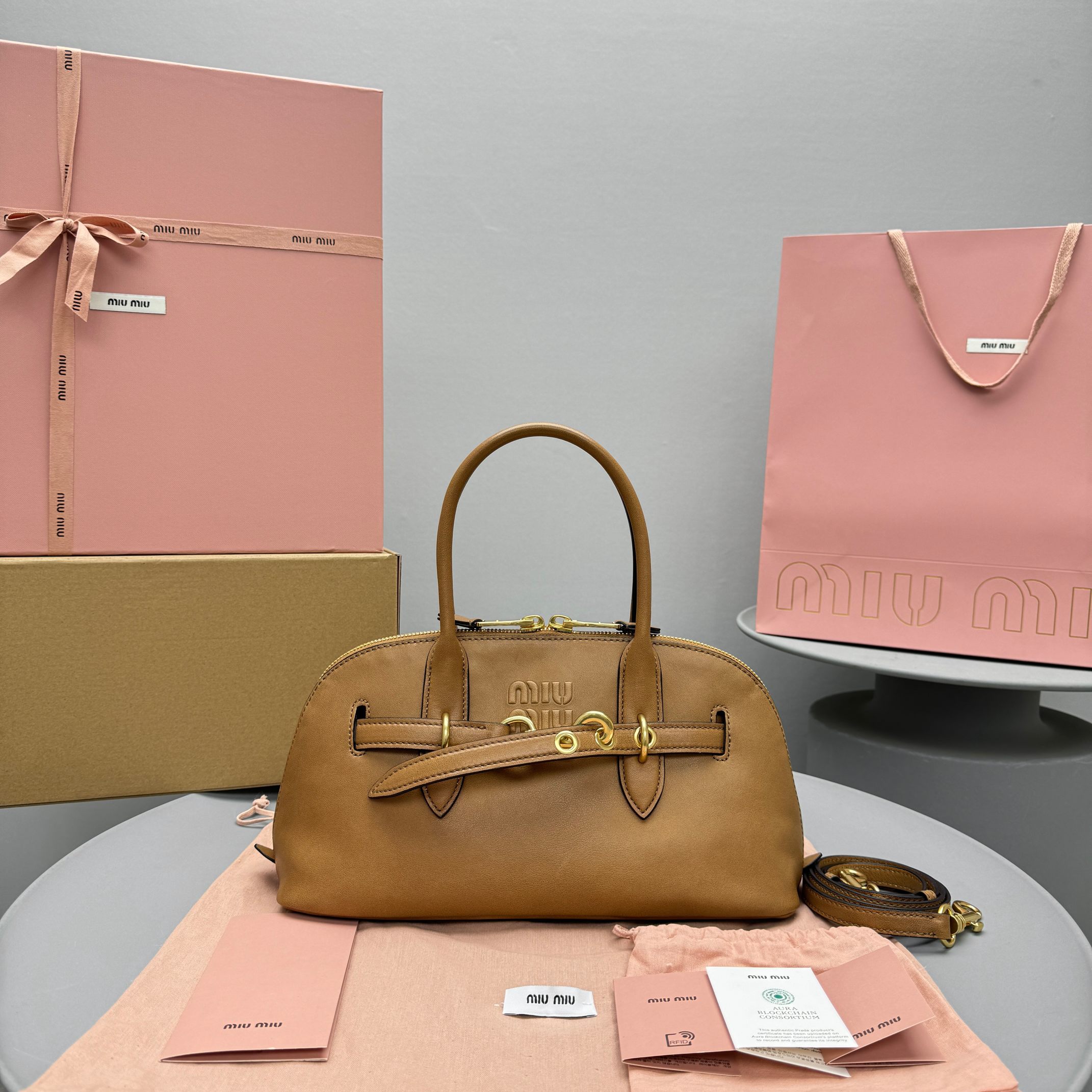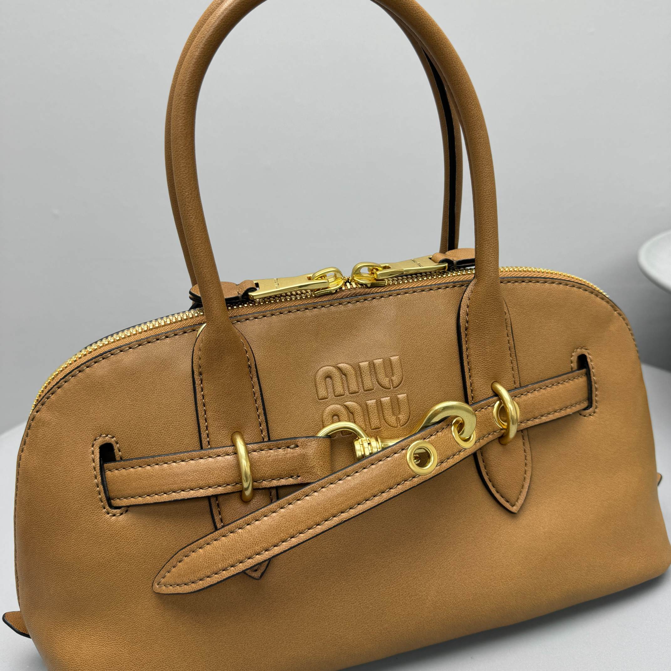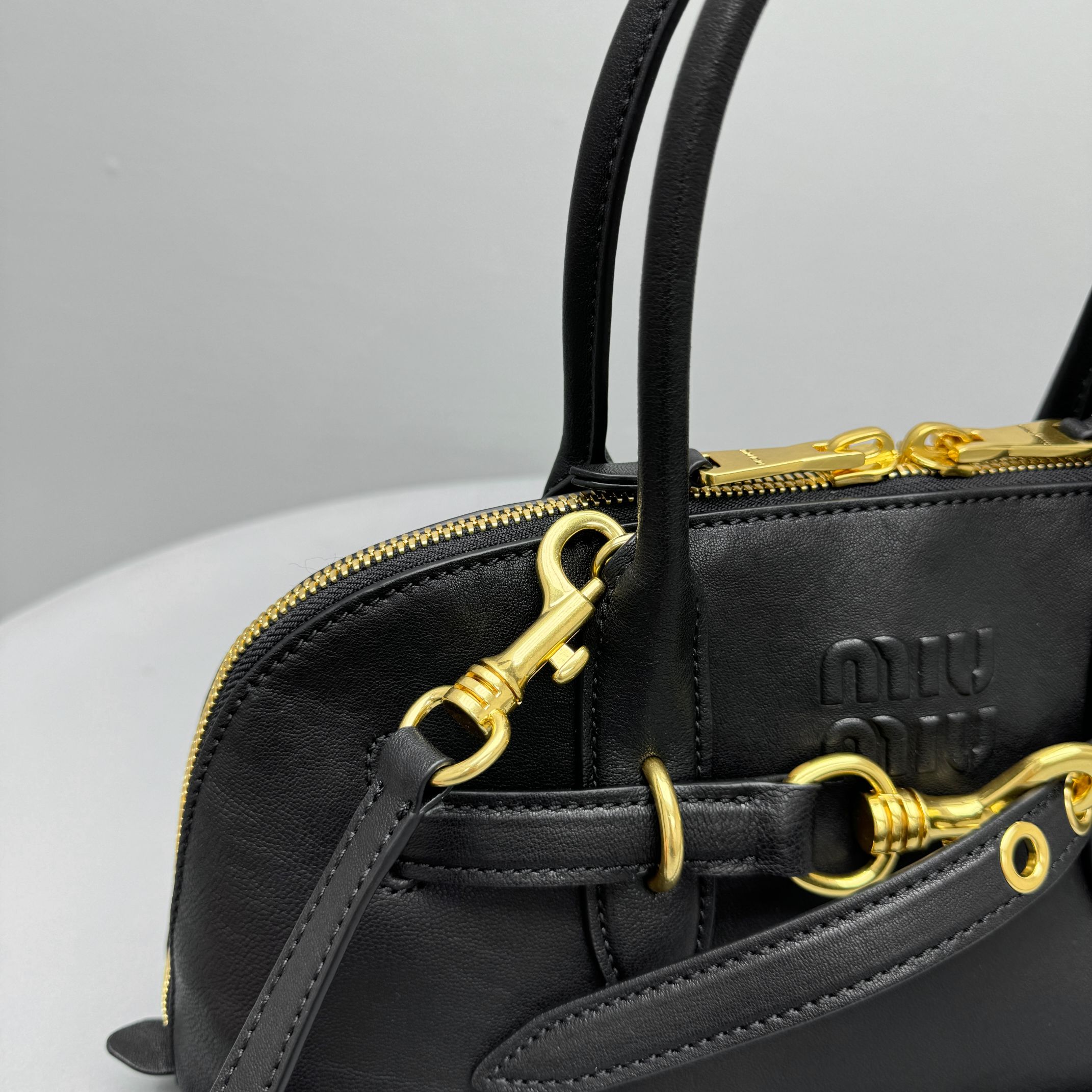 NIGO MiuMiu Aventure Nappa Women's Pure Color Embossed Letter Leather Shoulder Tote Bag Bags #nigo72925