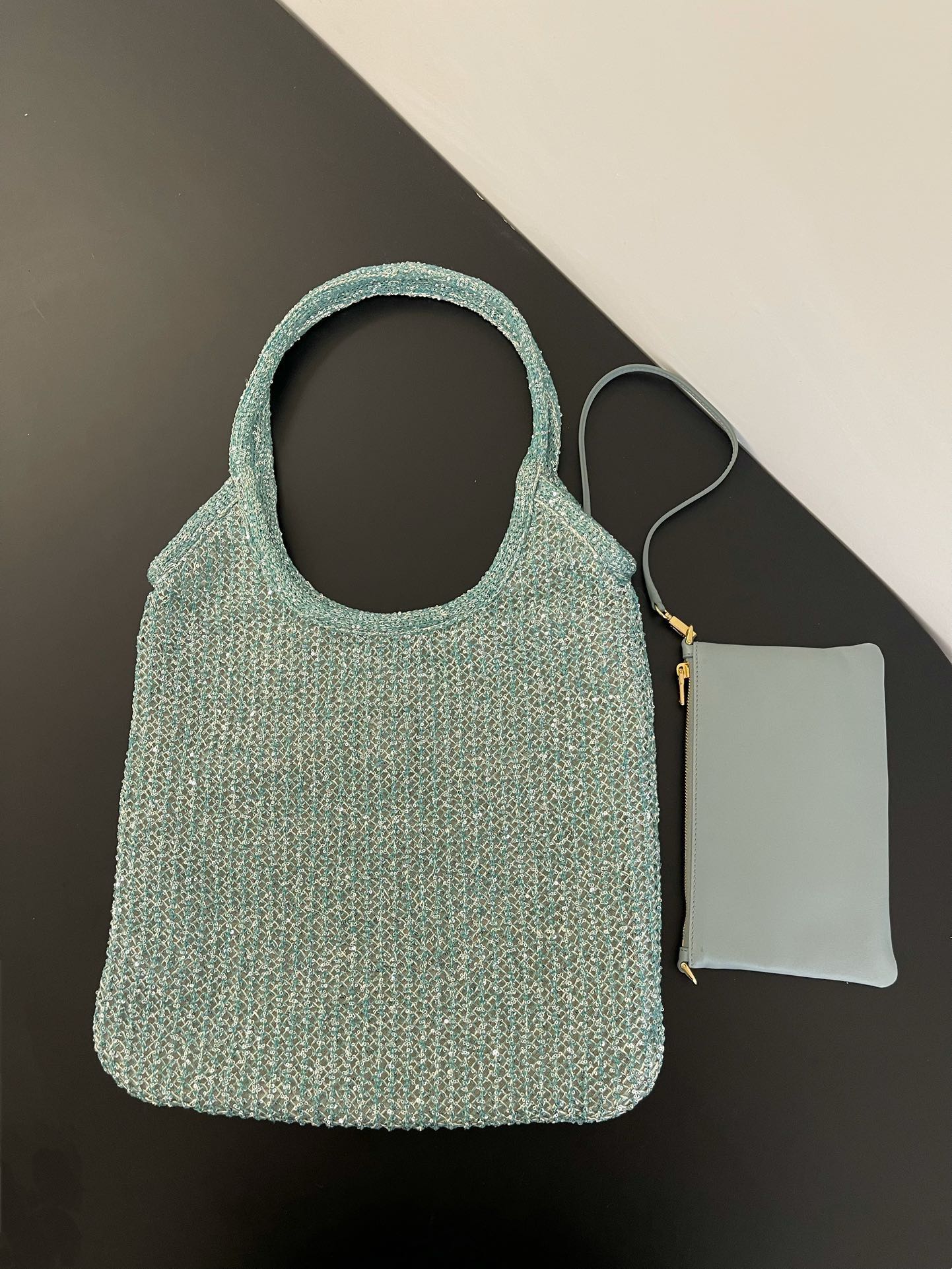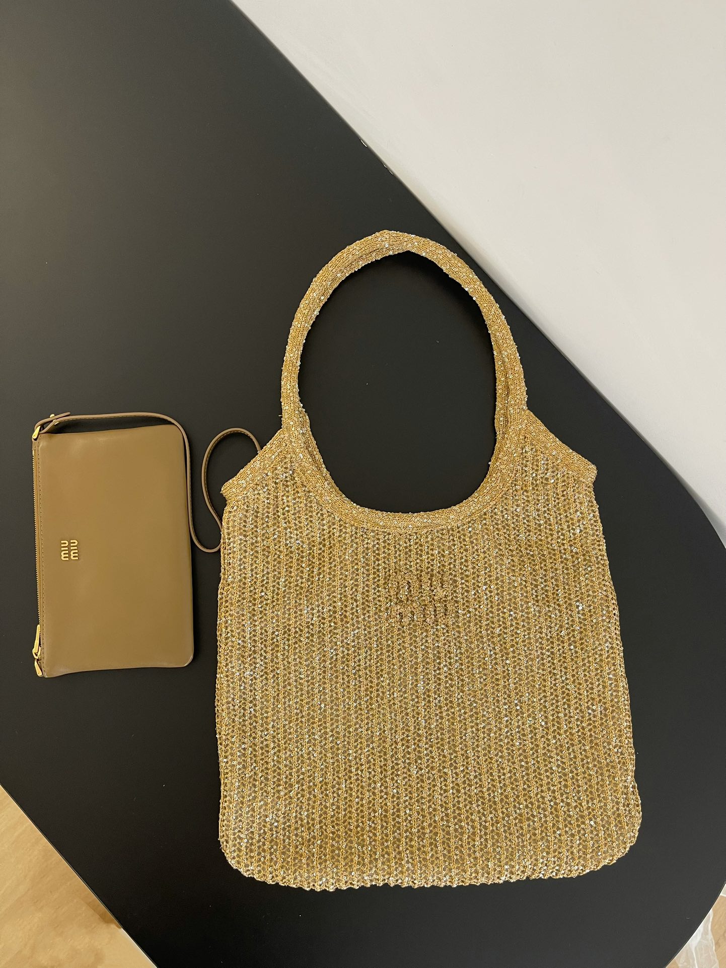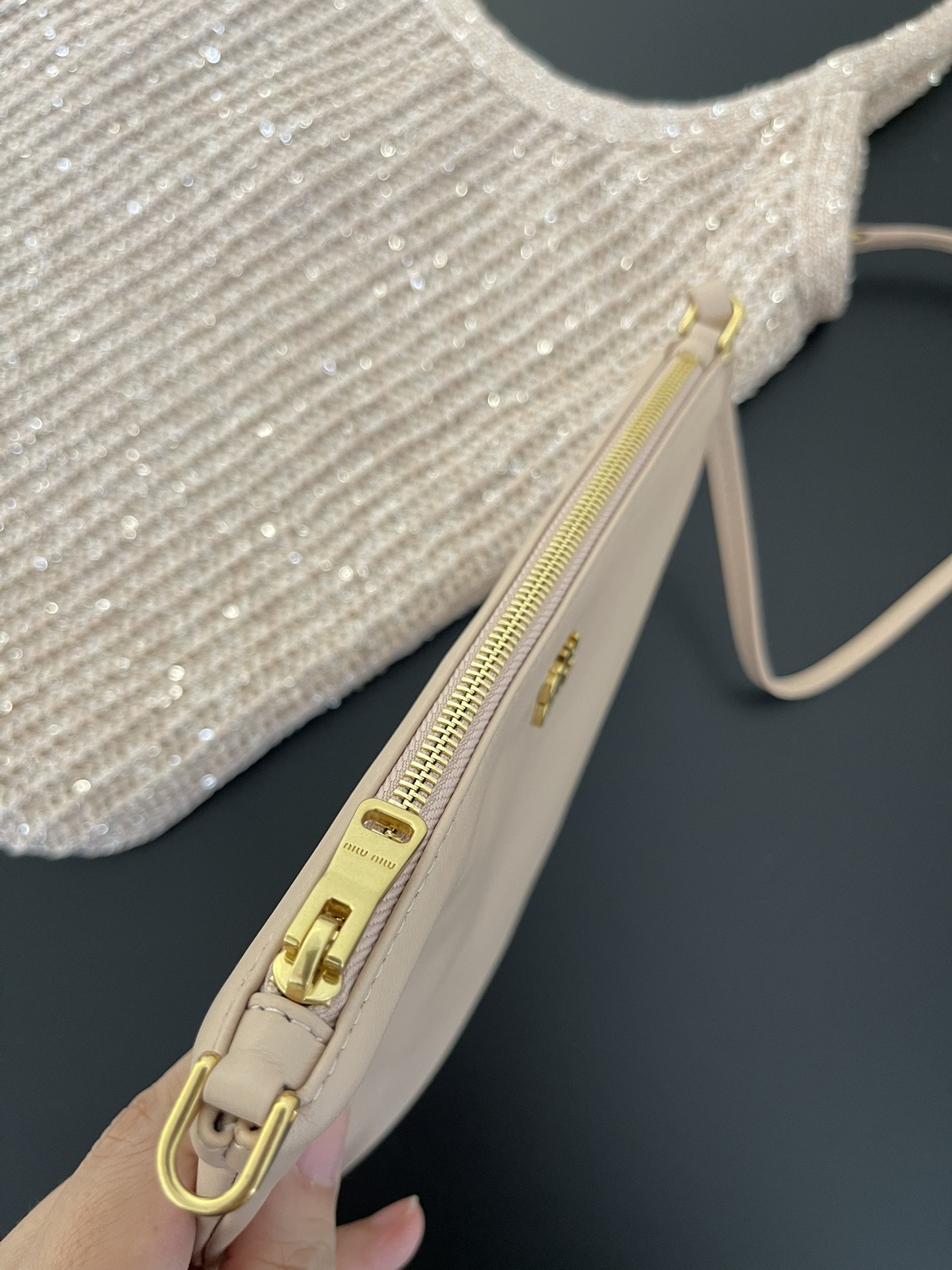 NIGO MiuMiu Ivy Sequin Mesh Women's Solid Color Sequined Shoulder Bag with Detachable Handbag Bags and Embroidered Letter Logo #nigo77693