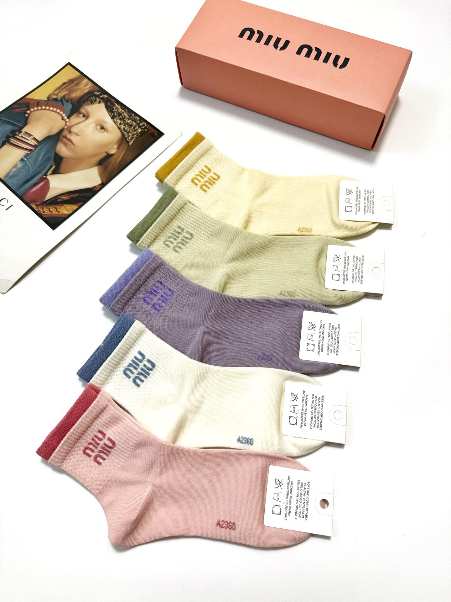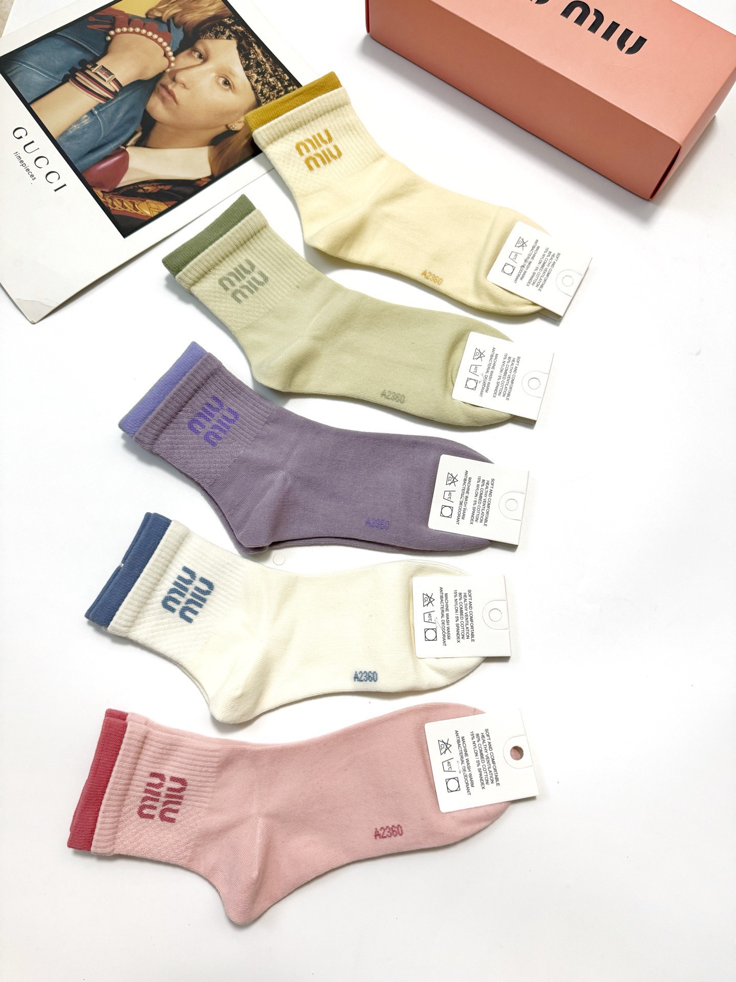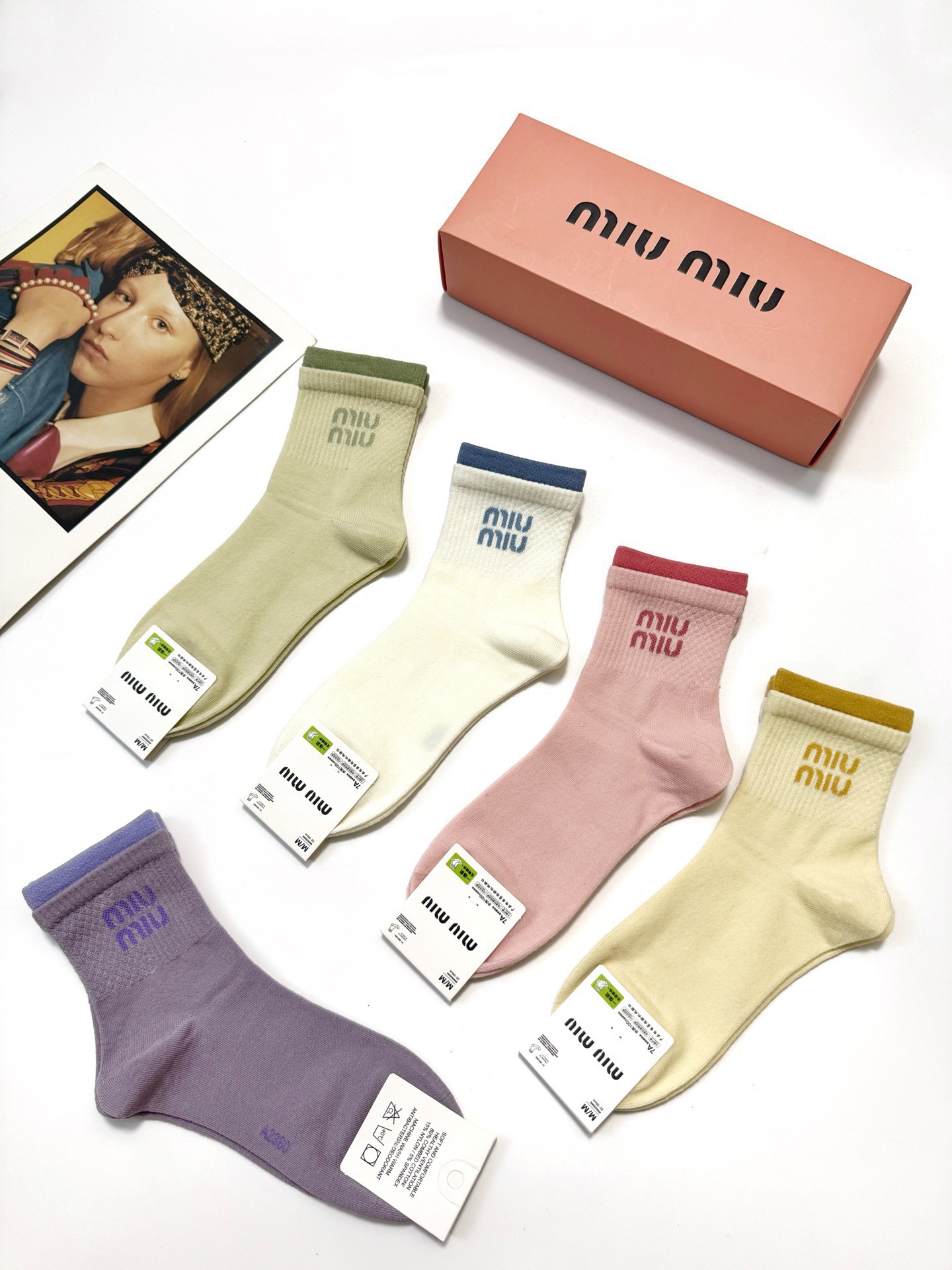 NIGO MiuMiu Men's And Women's Spring/fall Fashion Logo Logo Color-blocked 100% Cotton Crew Socks (One Box Of Five Pairs) Sock Accessories #nigo79172