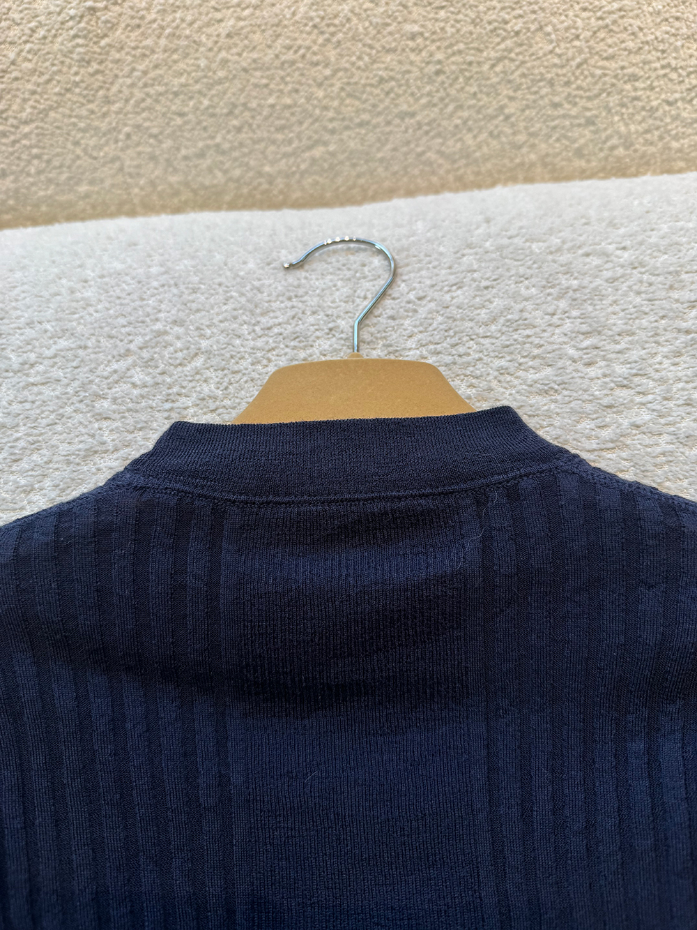 Crafted from premium wool, in a stunning navy colorway, this piece combines timeless luxury with modern style.