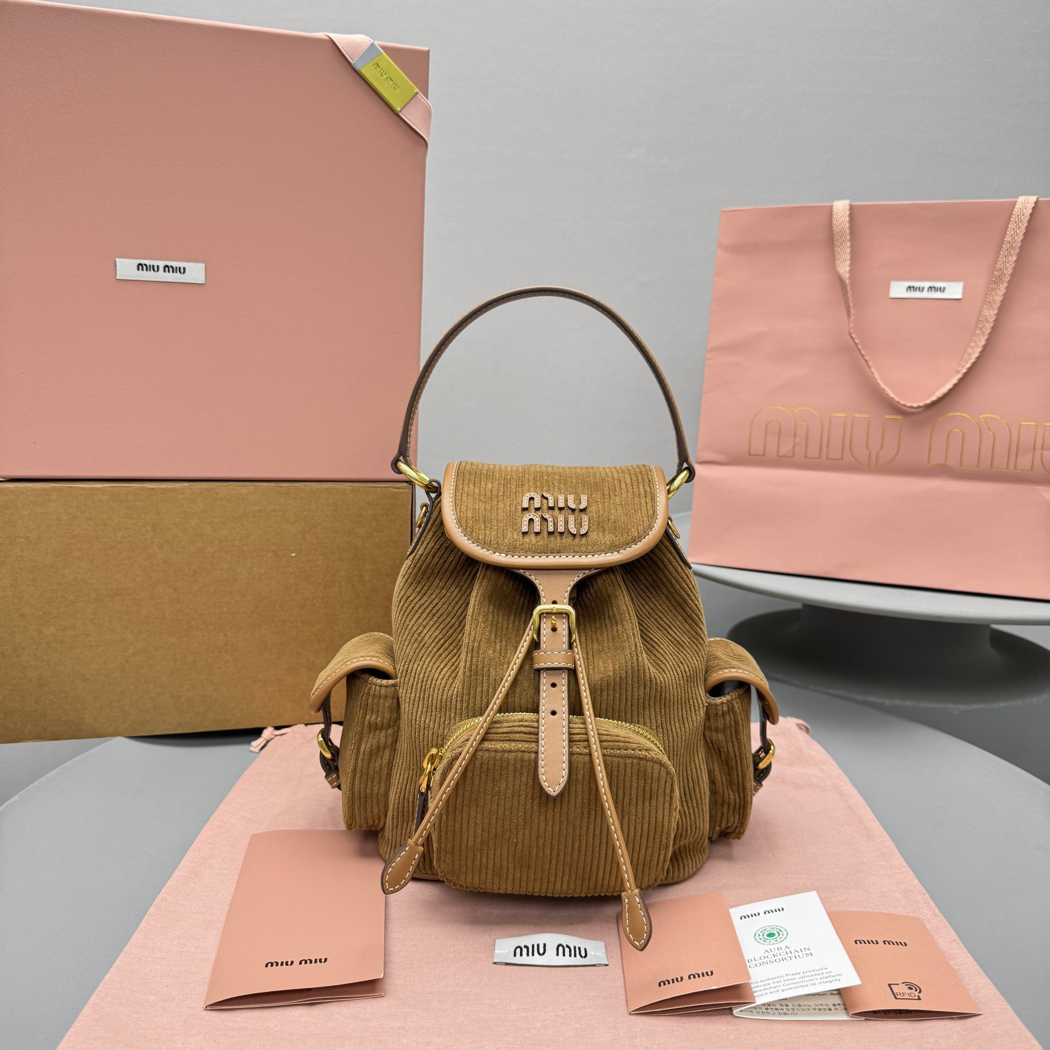 NIGO MiuMiu Small Cinnamon Corduroy Backpack #nigo334156
