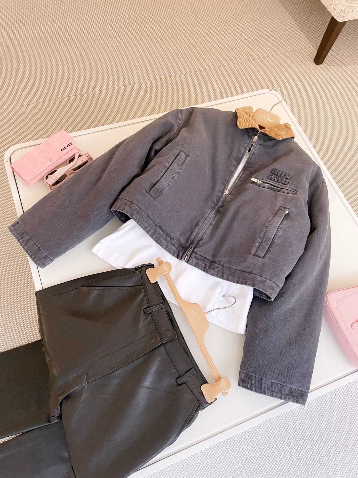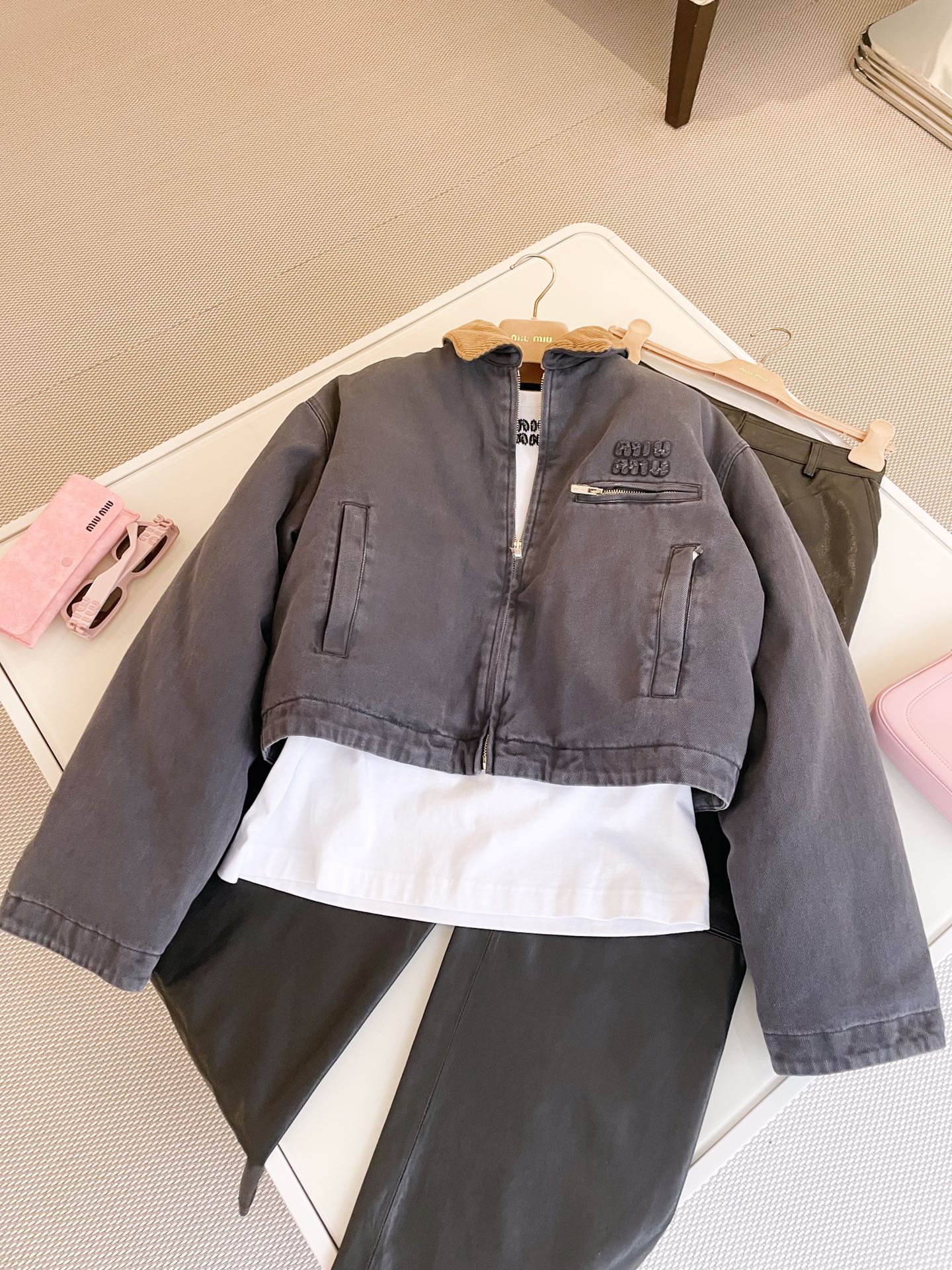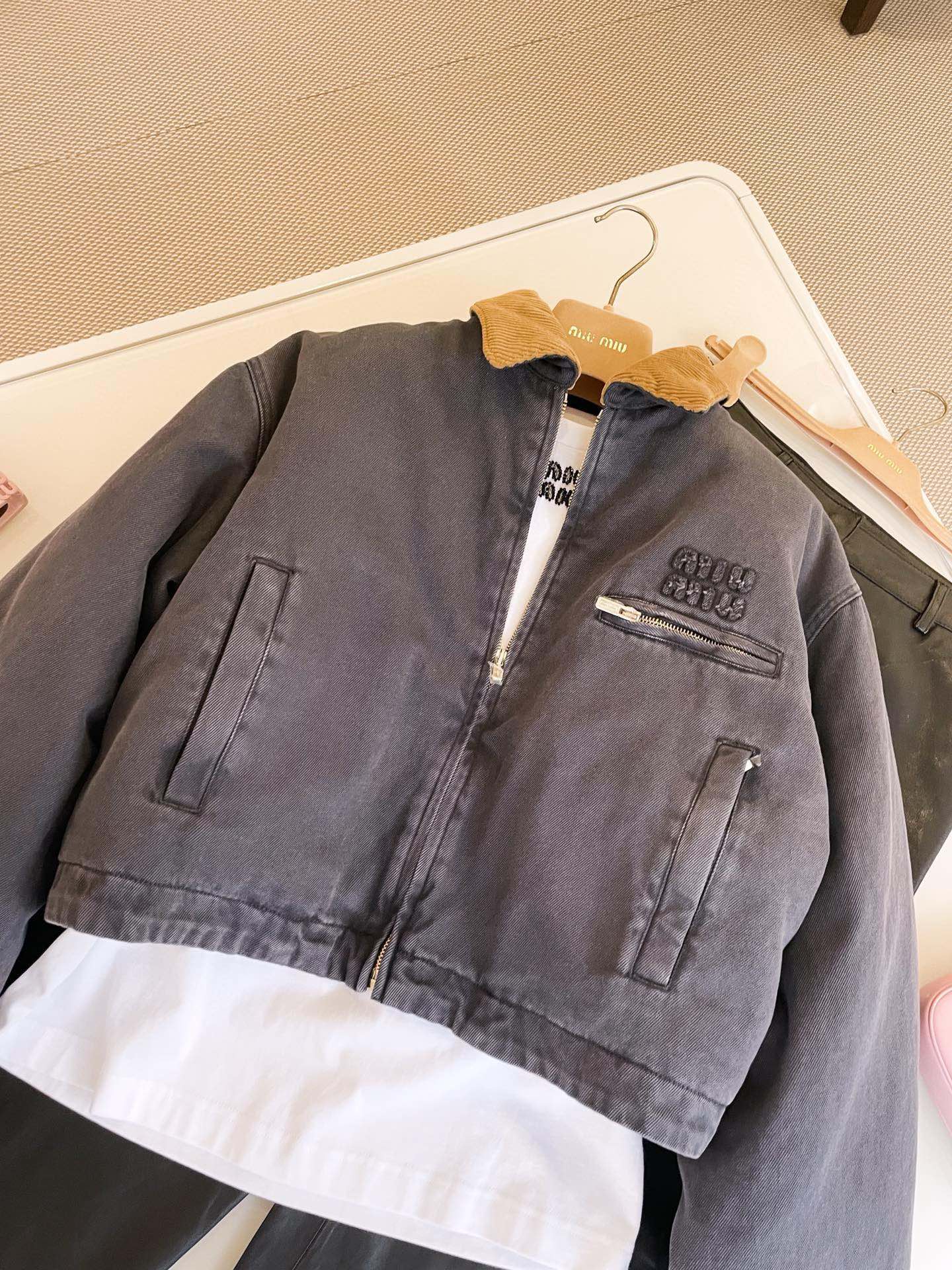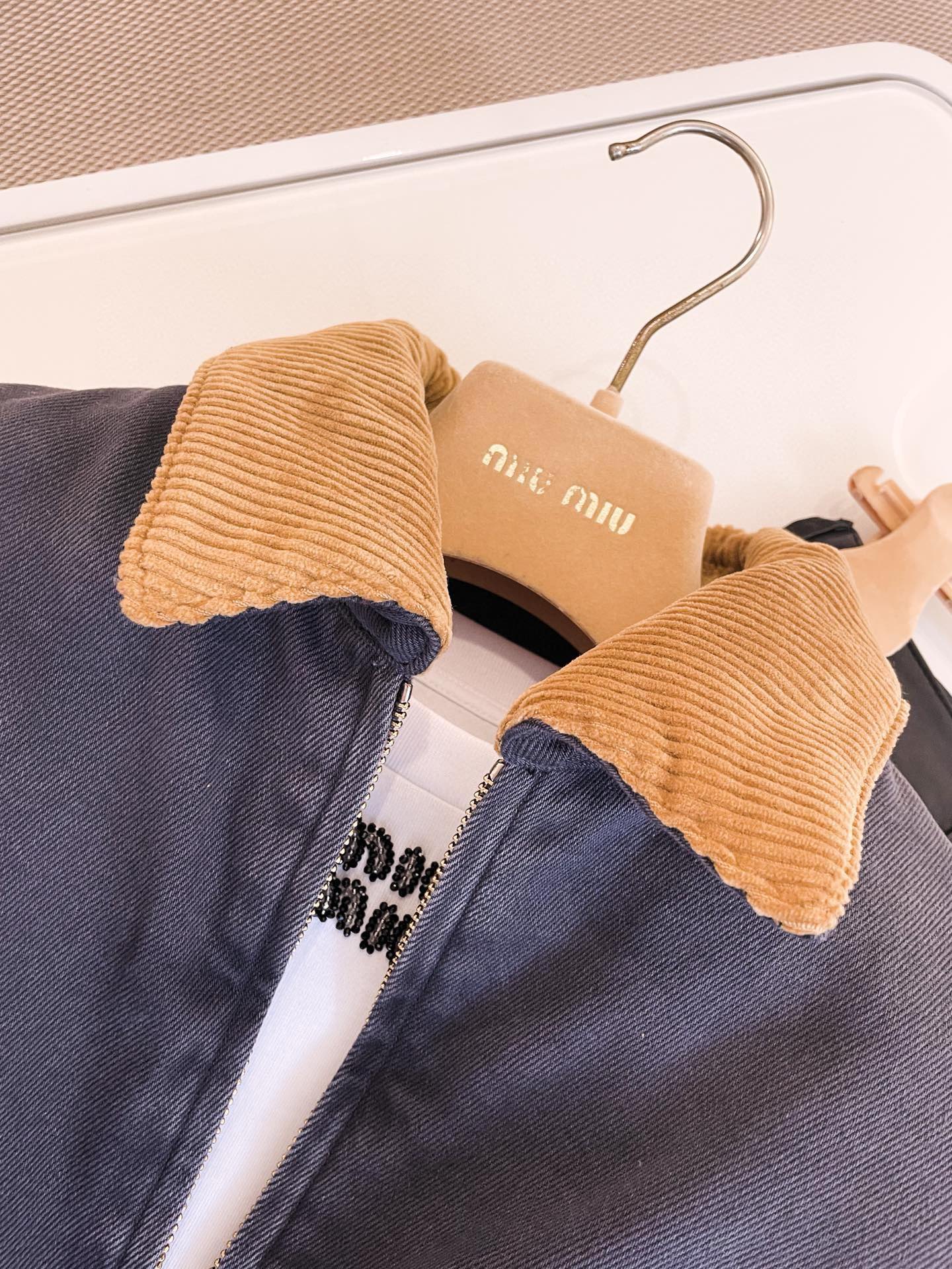 NIGO MiuMiu Women's Autumn and Winter Colorblocking Lapel Logo Embroidery Zipper Long Sleeve Jacket #nigo73679