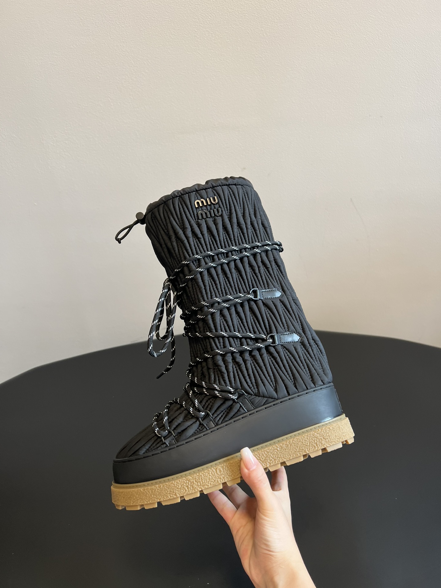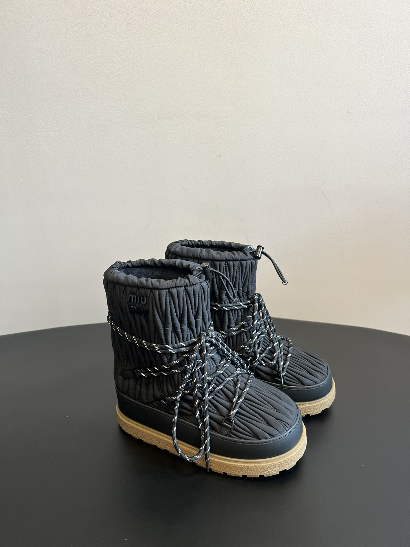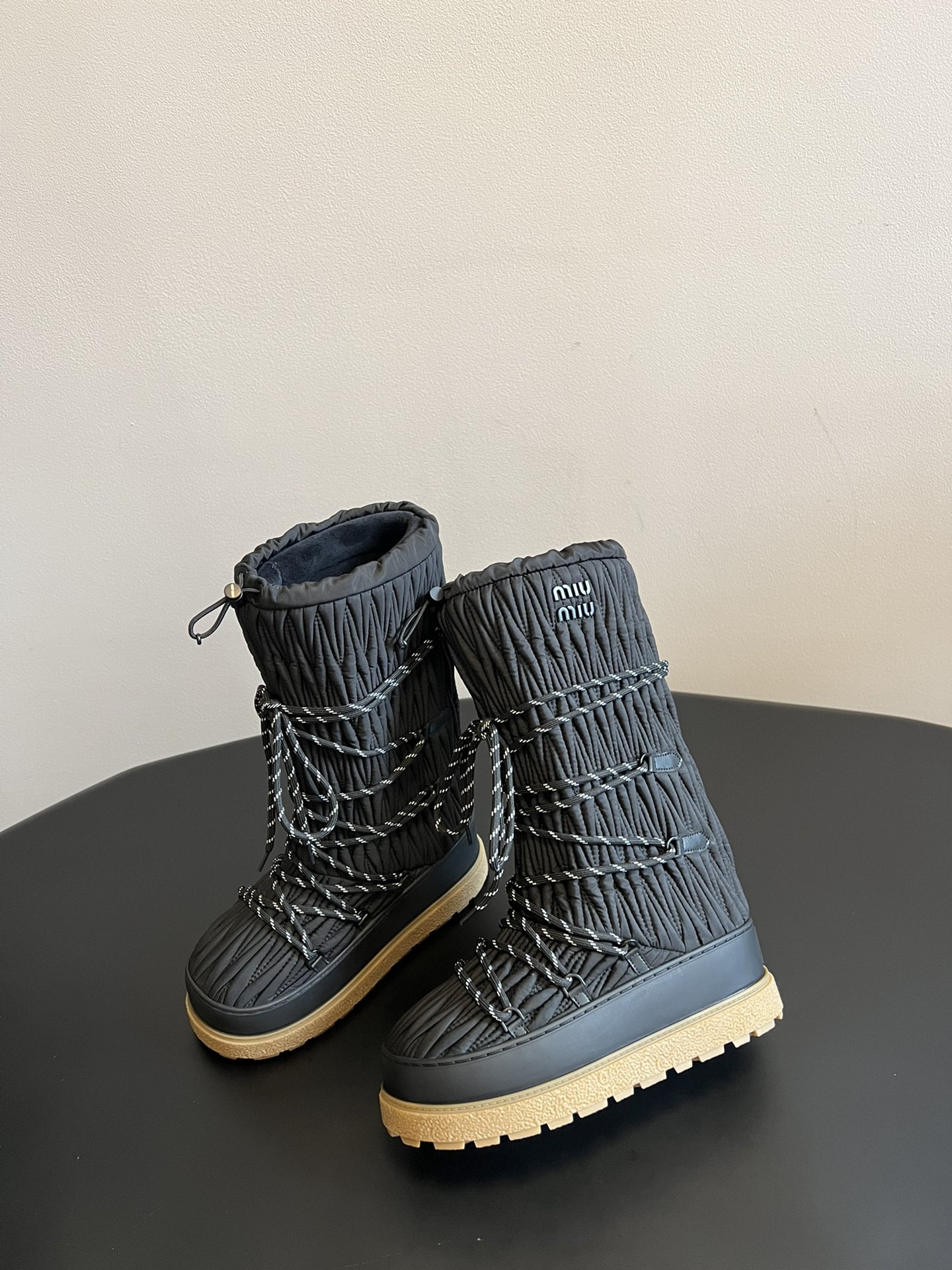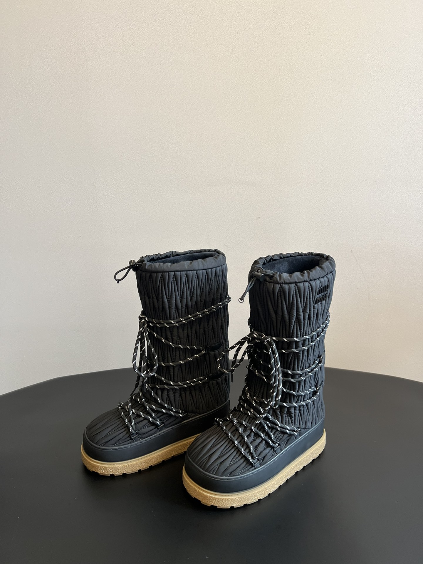NIGO MiuMiu Women's Autumn and Winter Solid Color Letter Logo Nylon Wadatan Lace-up Snow Boots Shoes #nigo72821