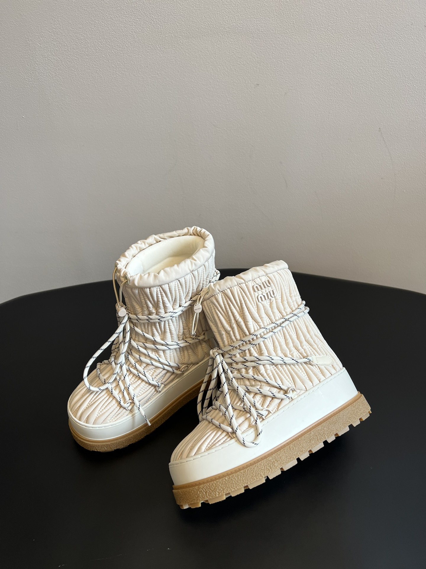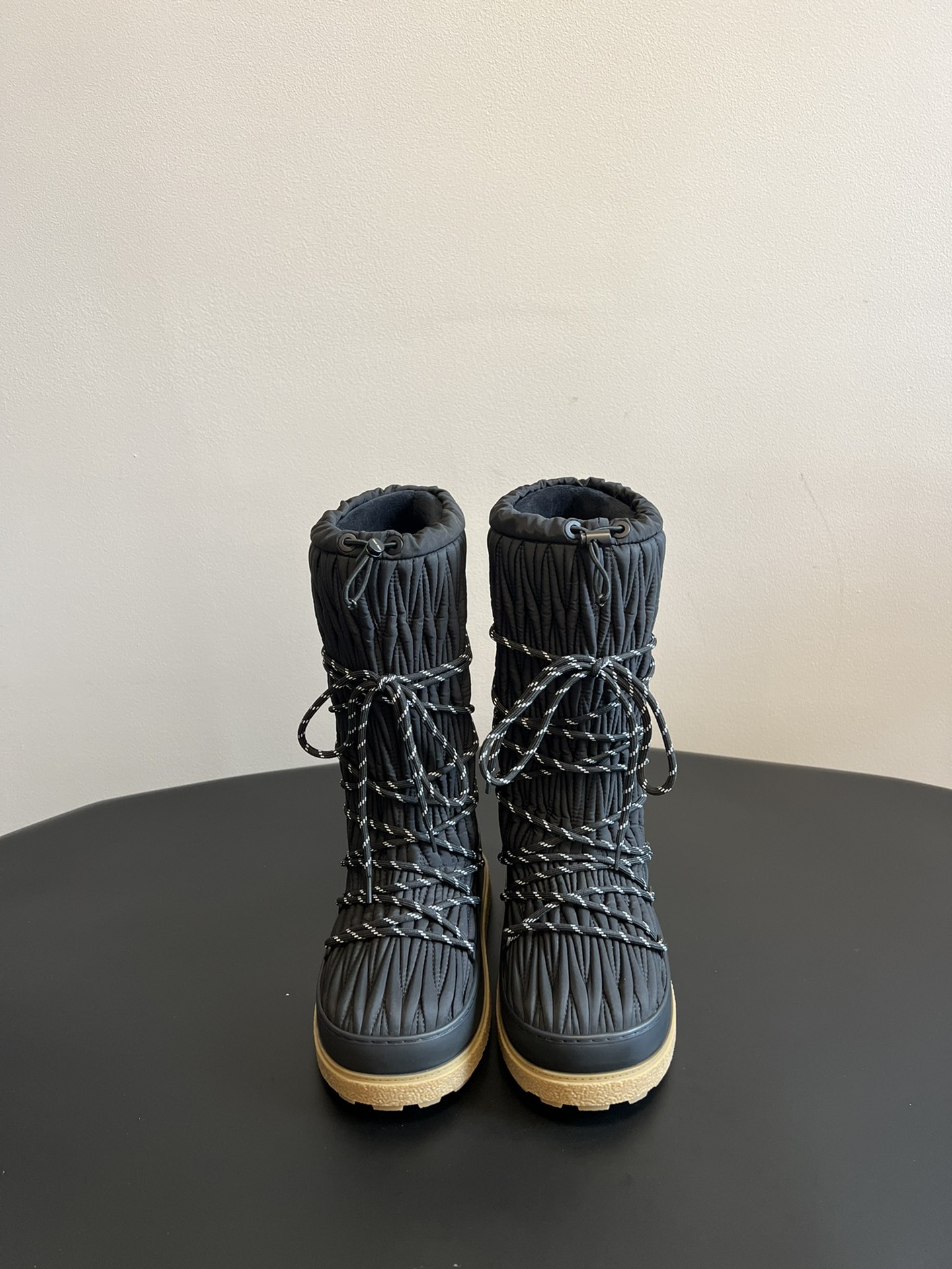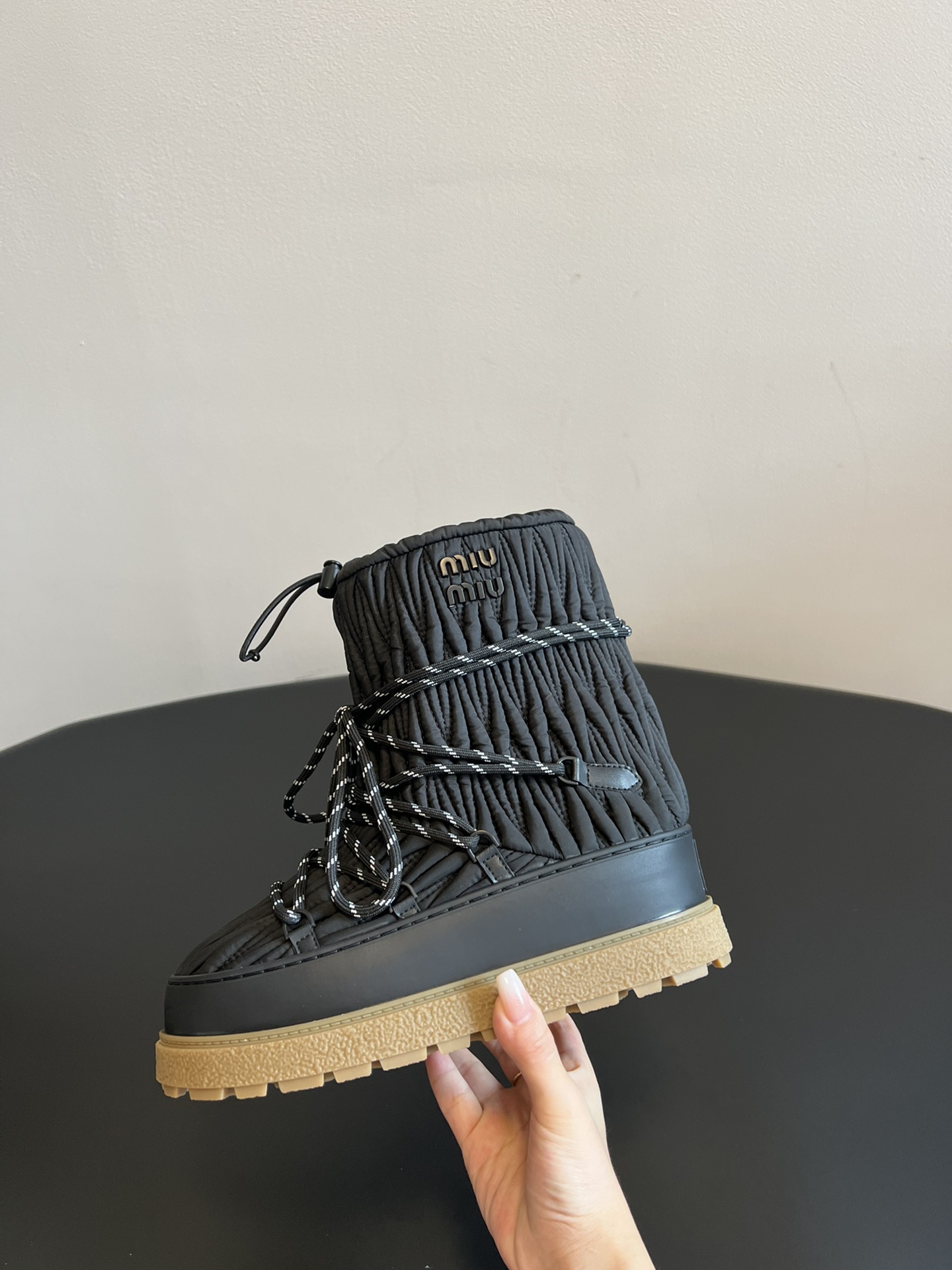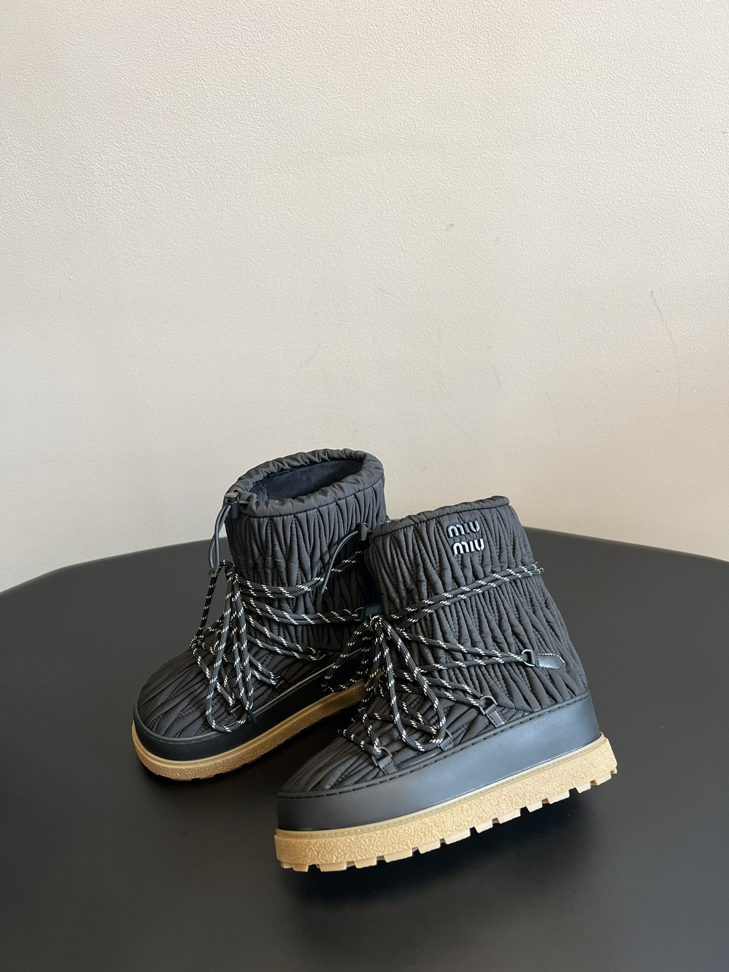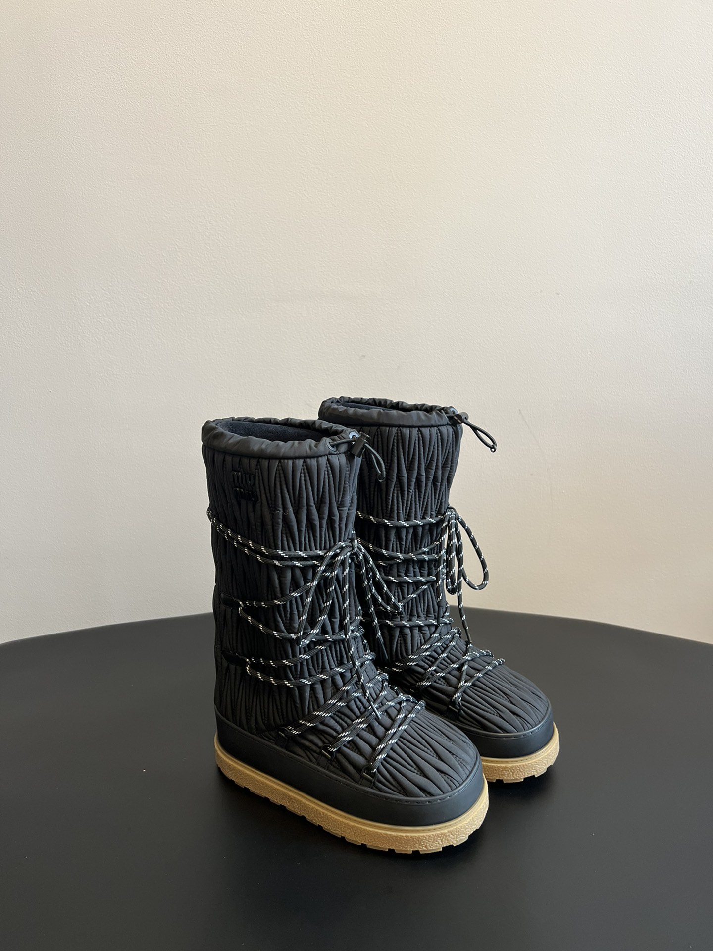 NIGO MiuMiu Women's Autumn and Winter Solid Color Letter Logo Nylon Wadatan Lace-up Snow Boots Shoes #nigo72821