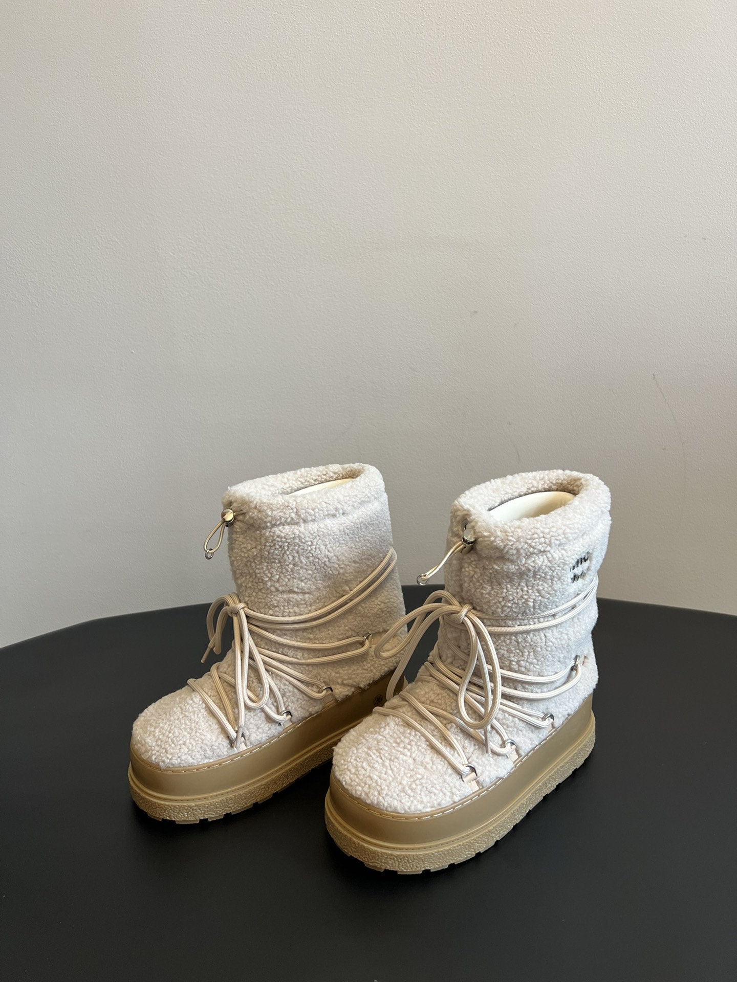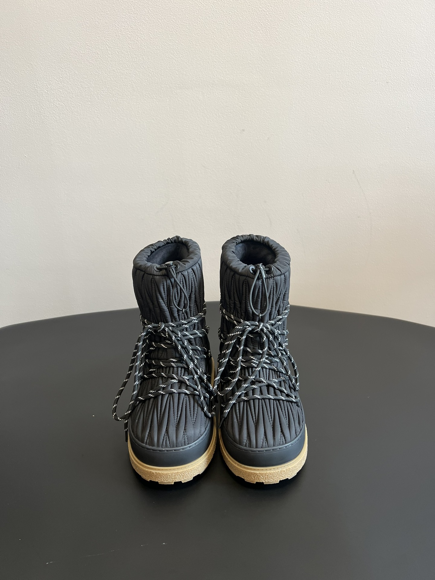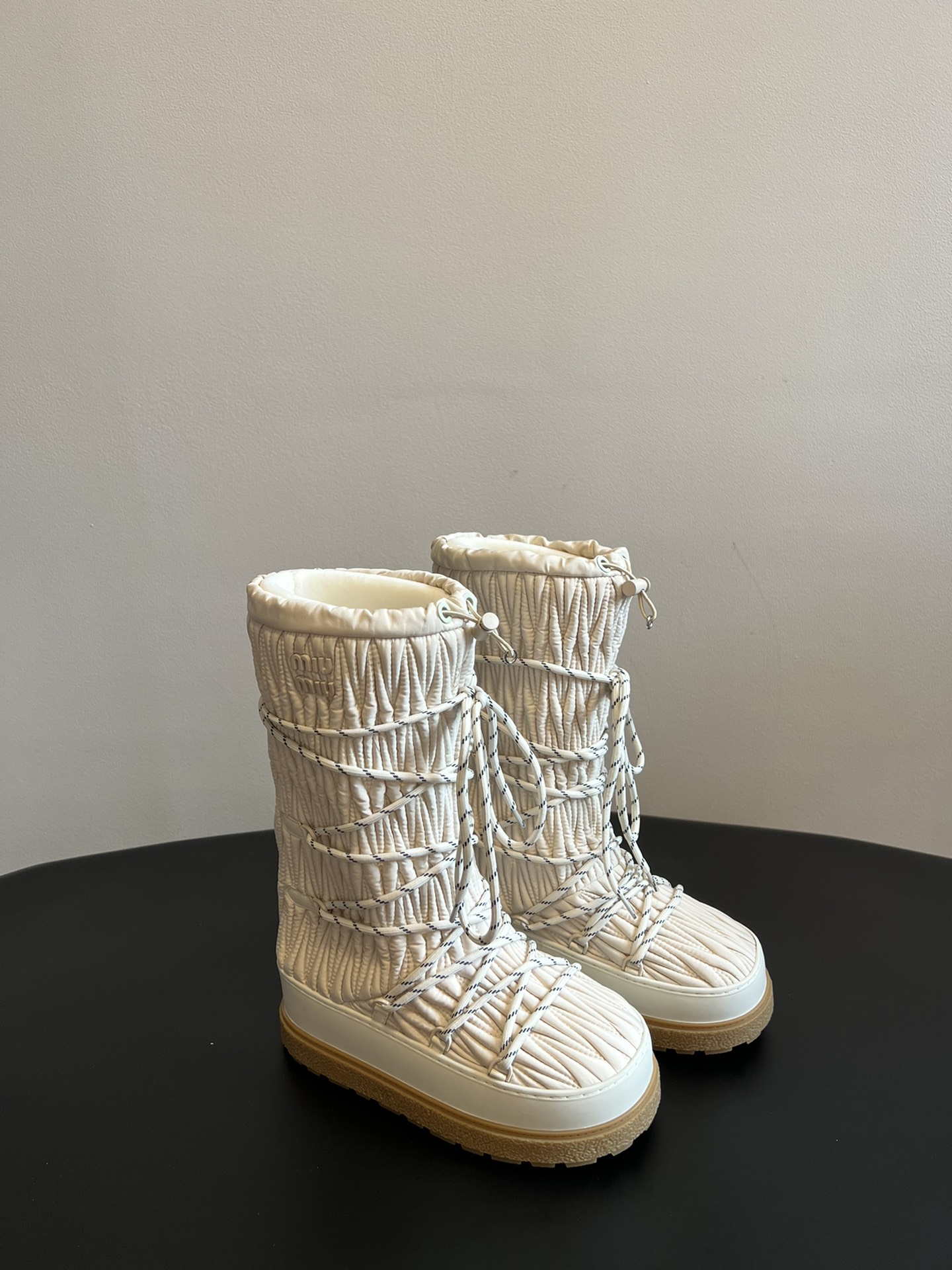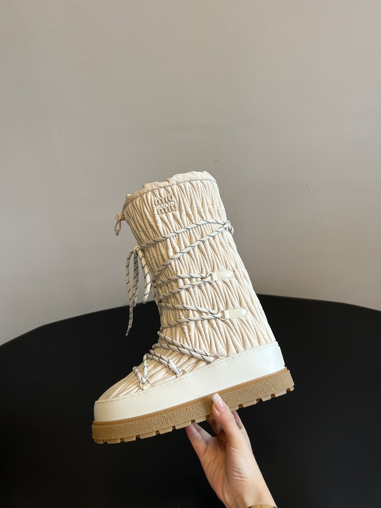 NIGO MiuMiu Women's Autumn and Winter Solid Color Letter Logo Nylon Wadatan Lace-up Snow Boots Shoes #nigo72821