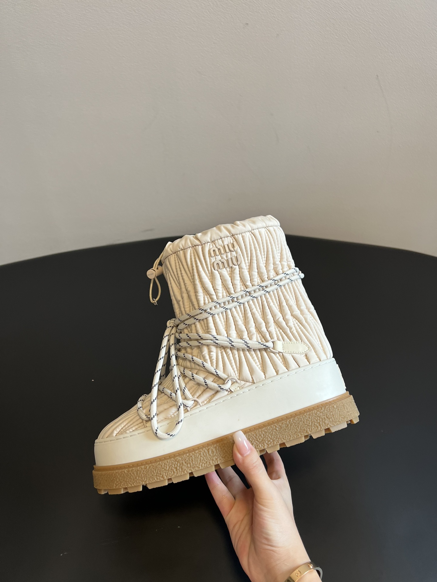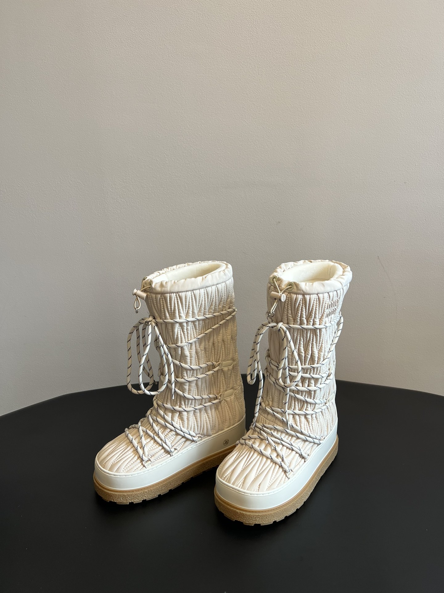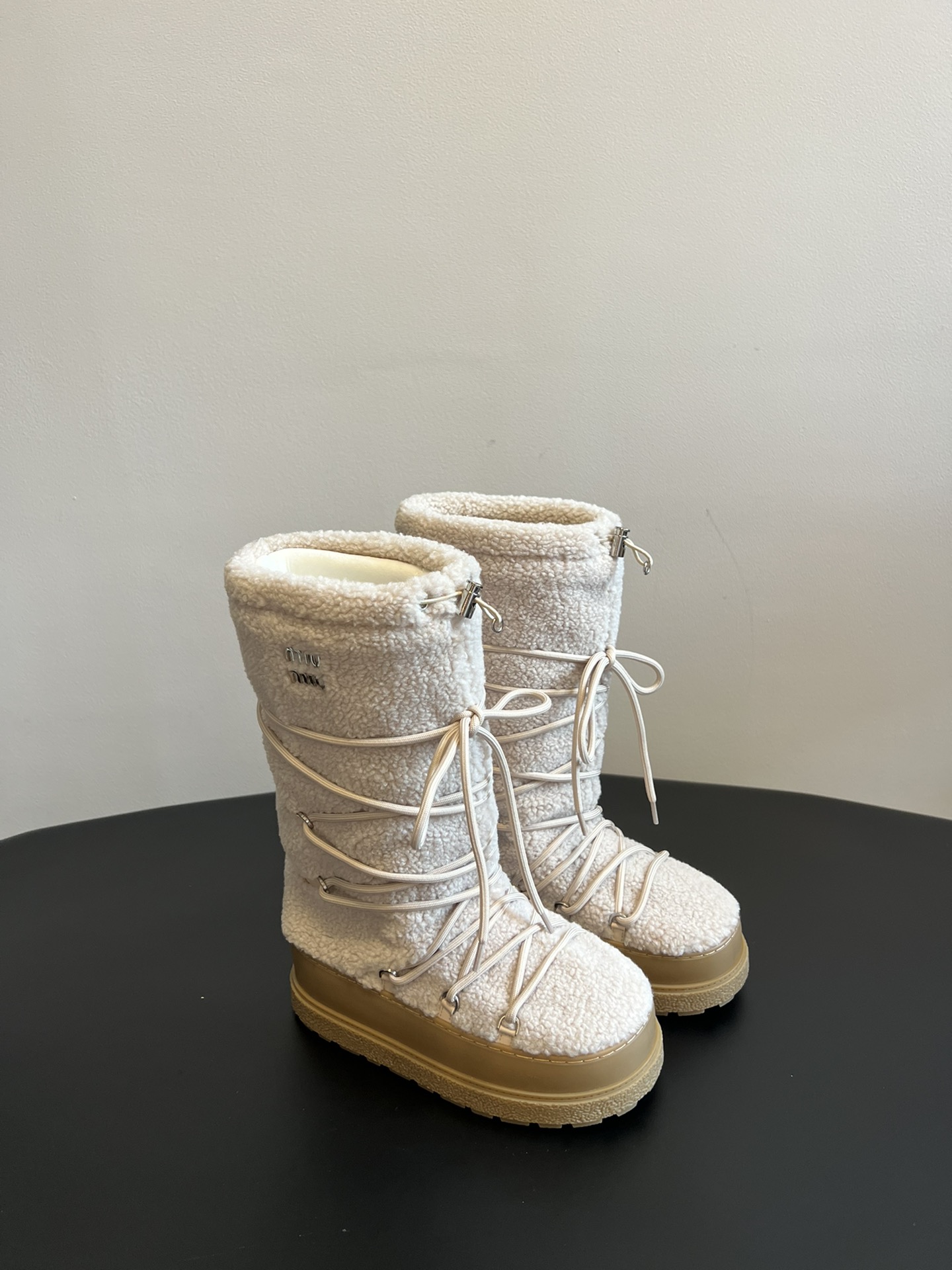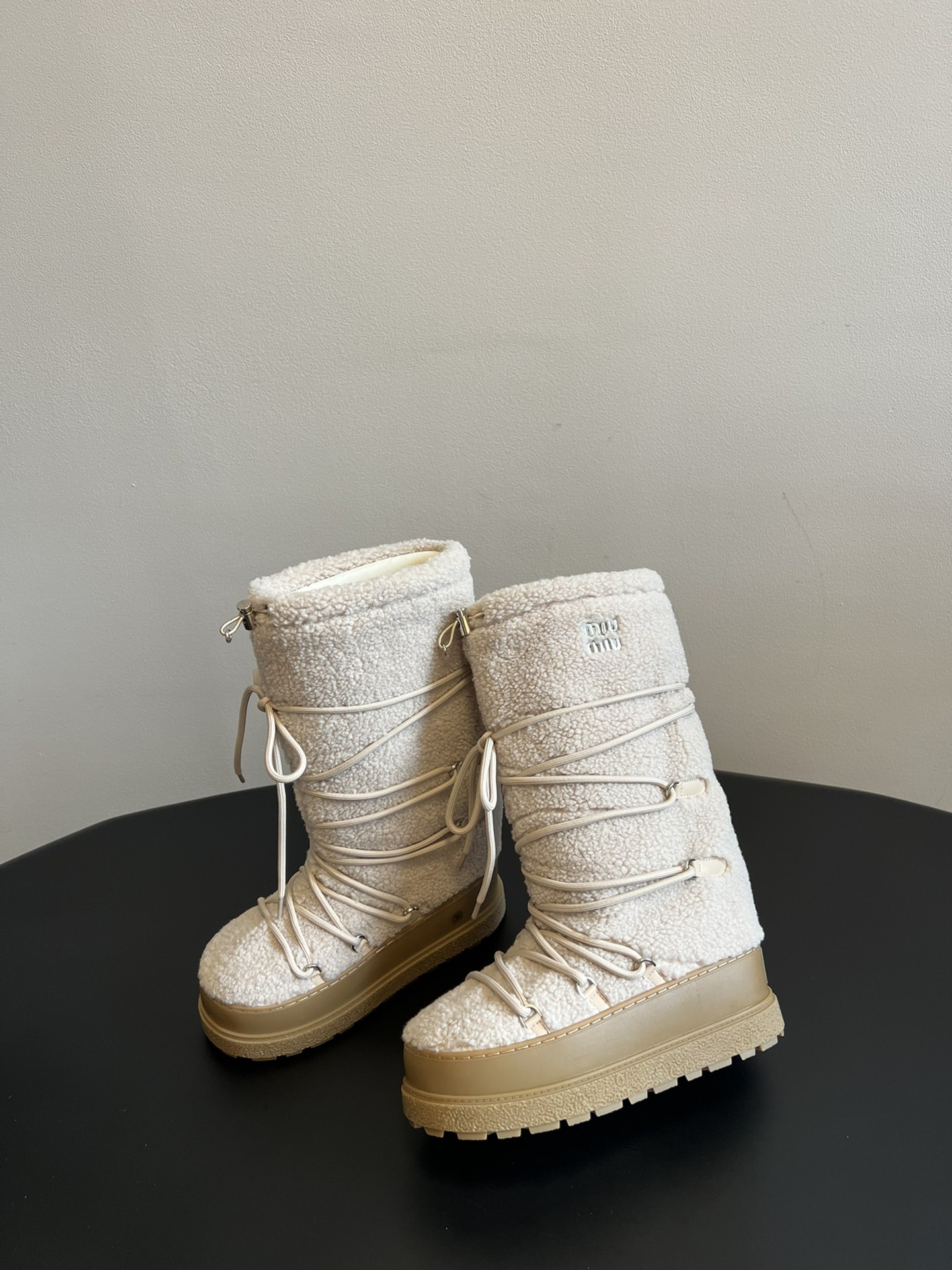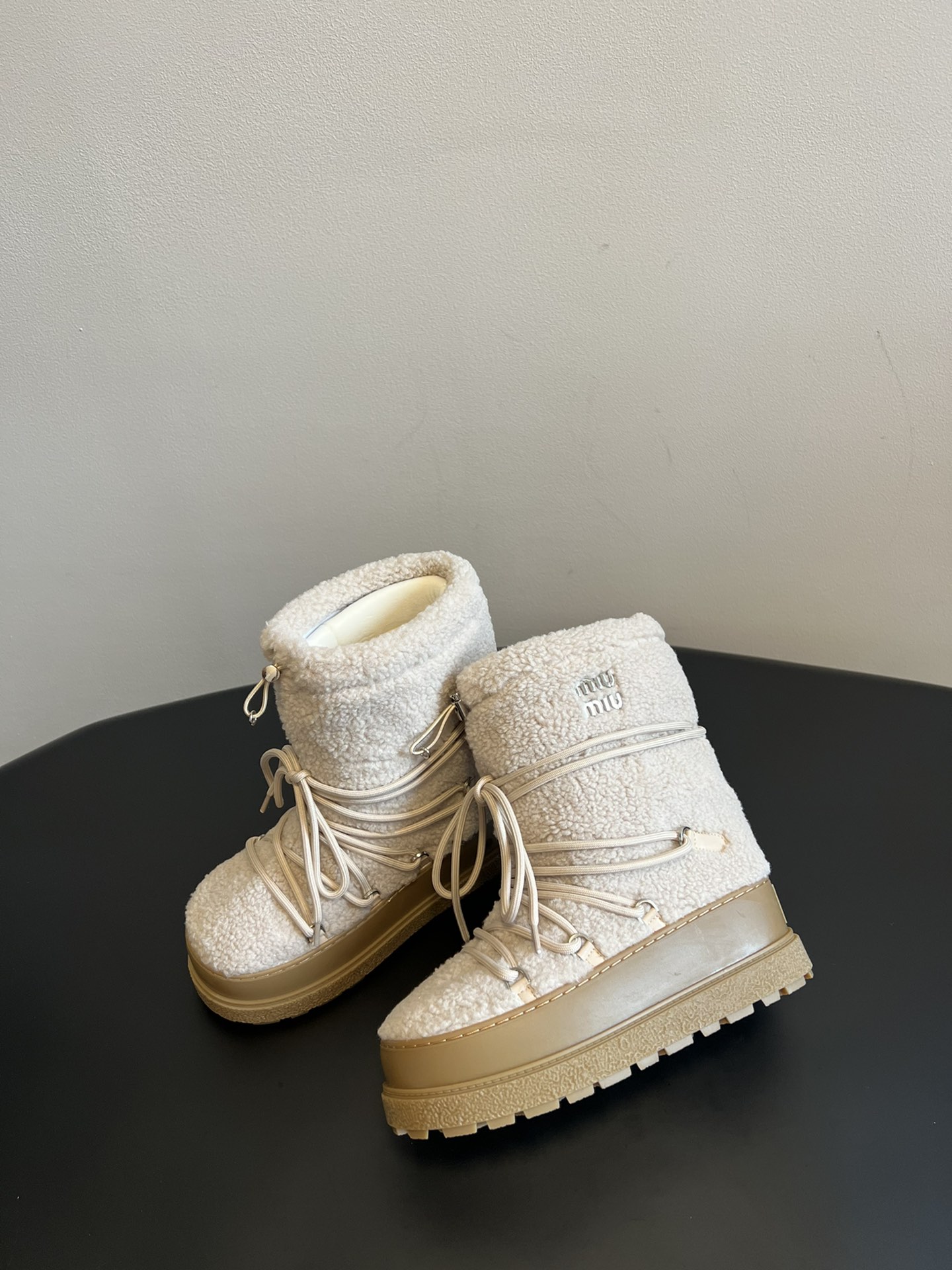 NIGO MiuMiu Women's Autumn and Winter Solid Color Letter Logo Nylon Wadatan Lace-up Snow Boots Shoes #nigo72821