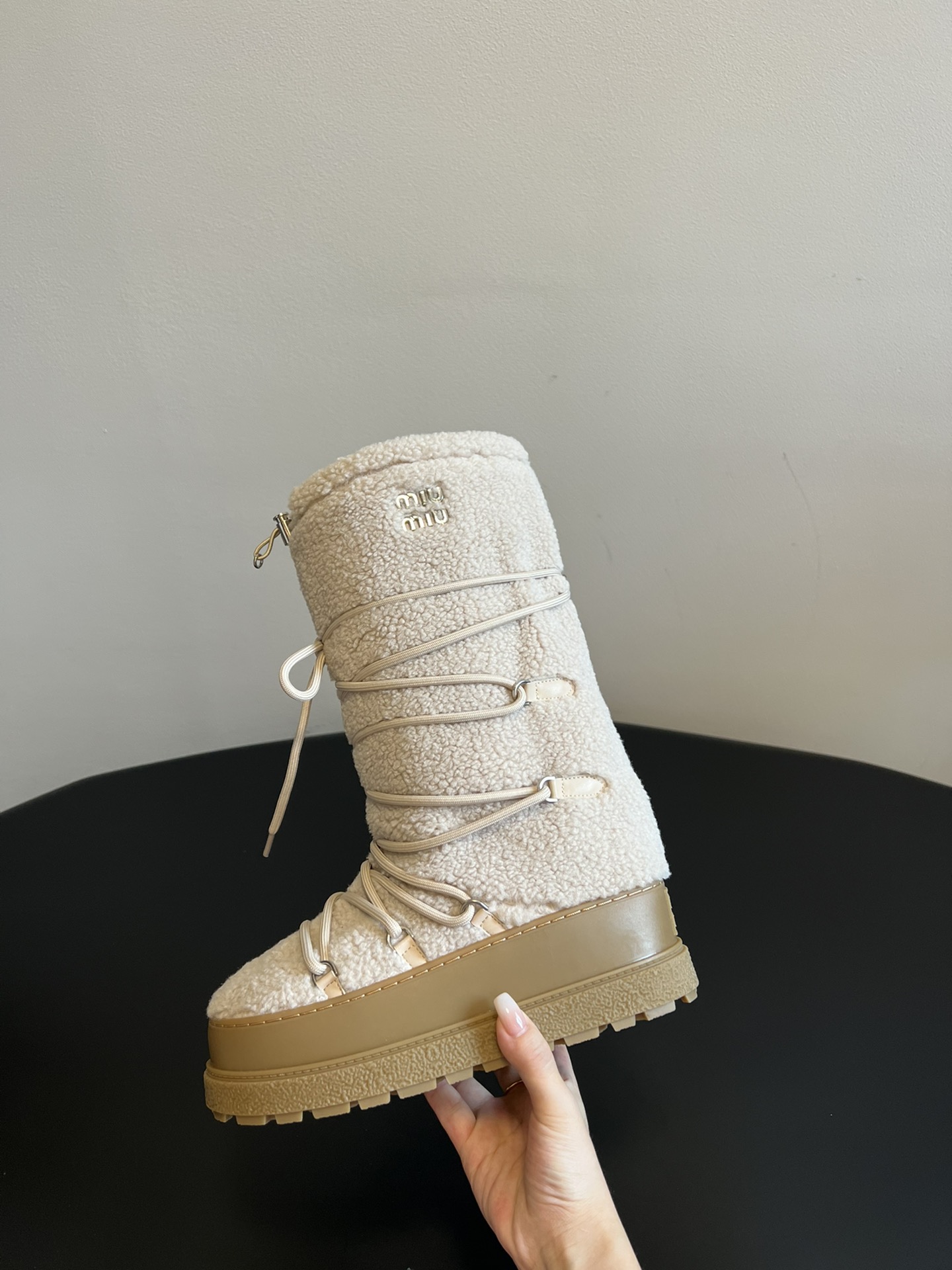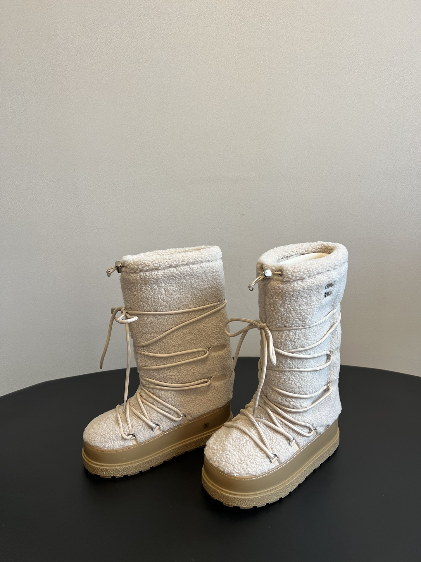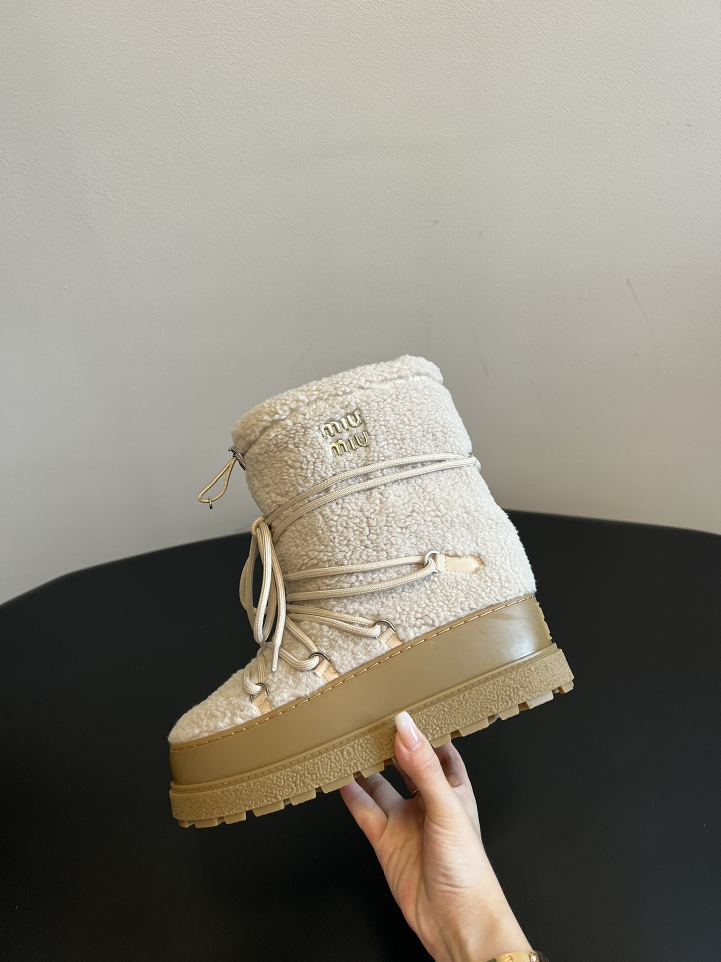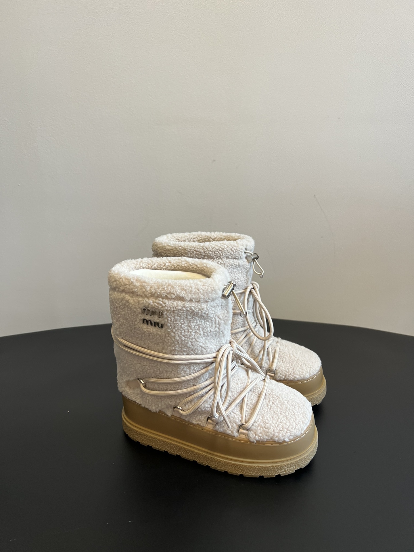 NIGO MiuMiu Women's Autumn and Winter Solid Color Letter Logo Nylon Wadatan Lace-up Snow Boots Shoes #nigo72821