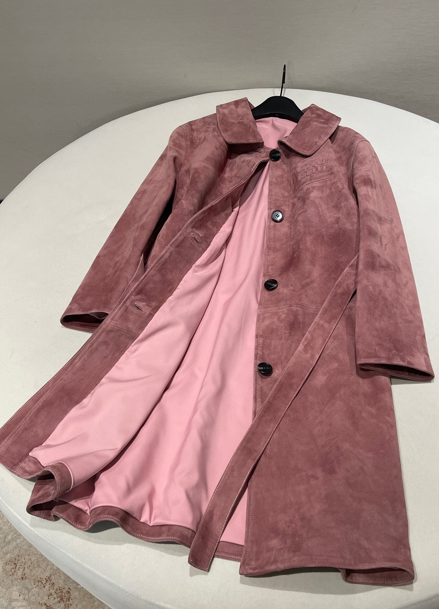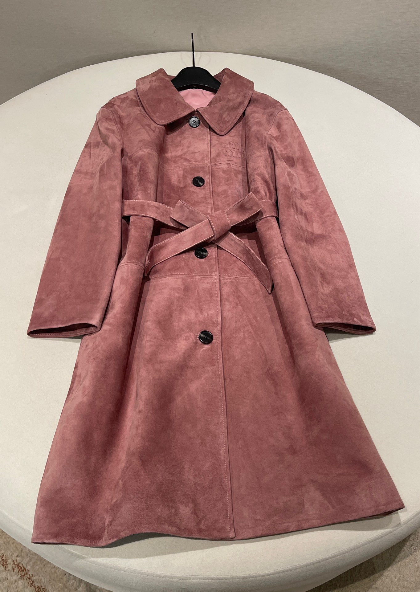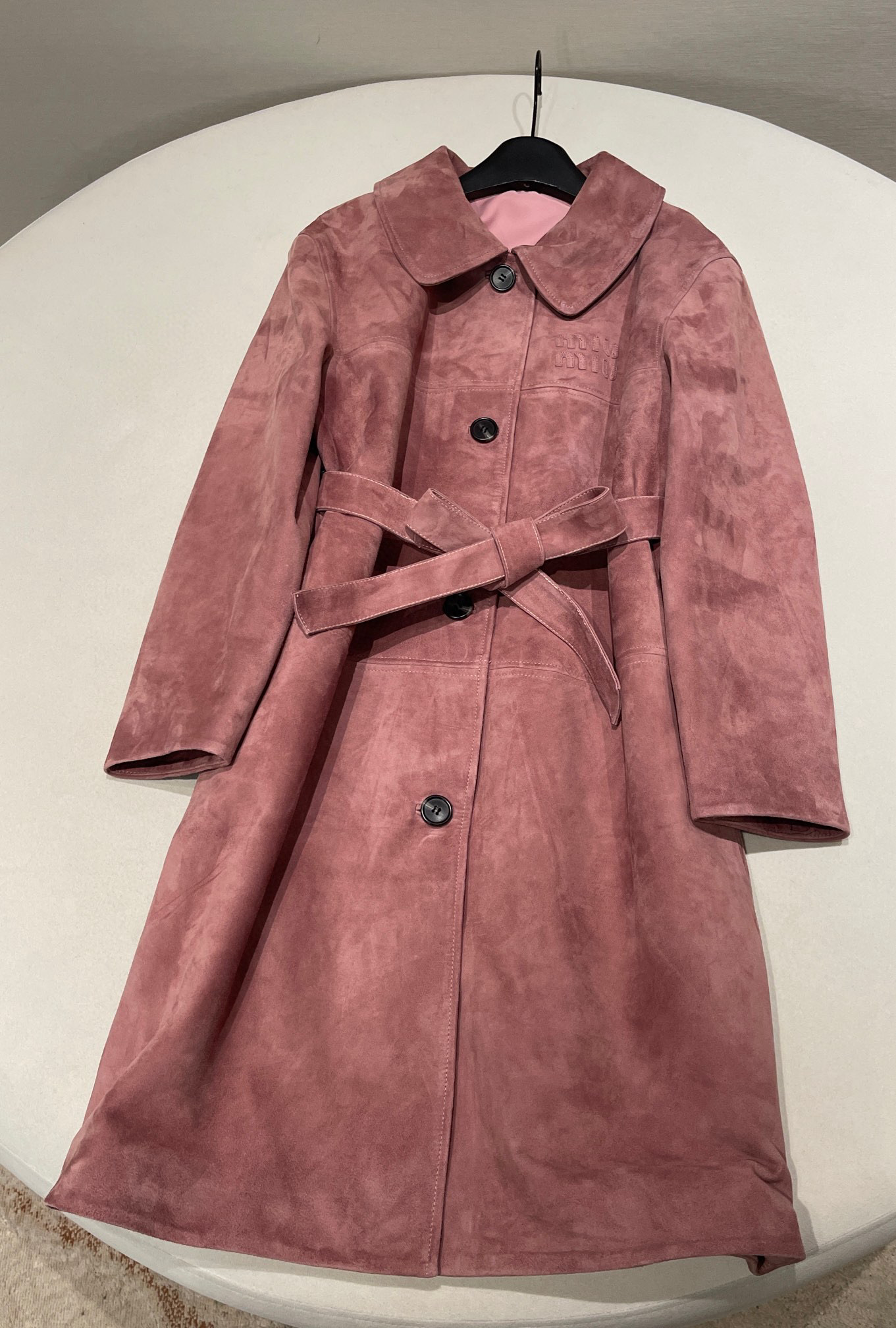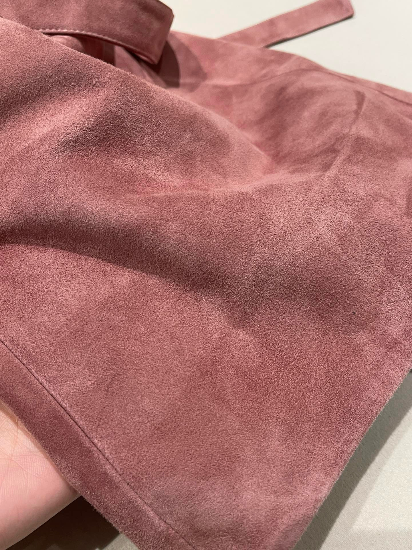 NIGO MiuMiu Women's Autumn and Winter Suede Pink Single Breasted Tie Waist Long Coat Jacket #nigo98877