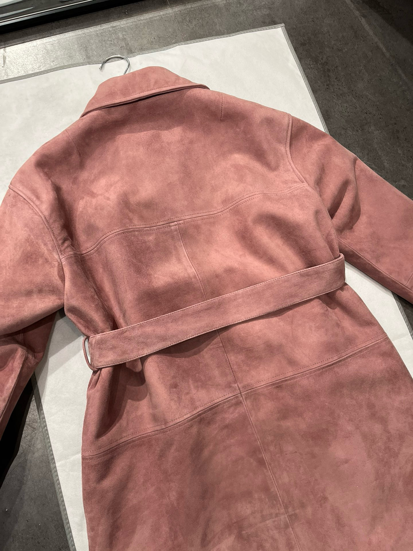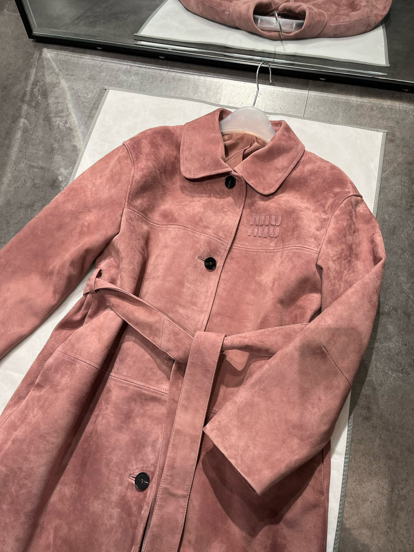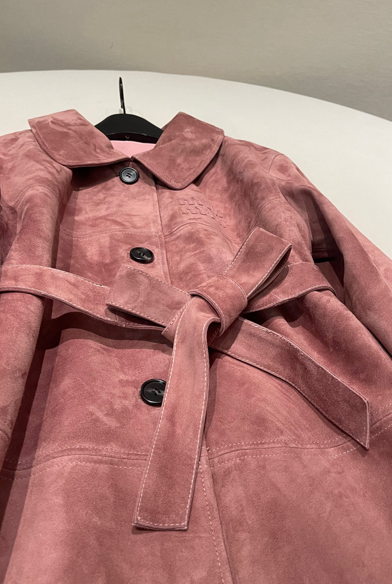 NIGO MiuMiu Women's Autumn and Winter Suede Pink Single Breasted Tie Waist Long Coat Jacket #nigo98877
