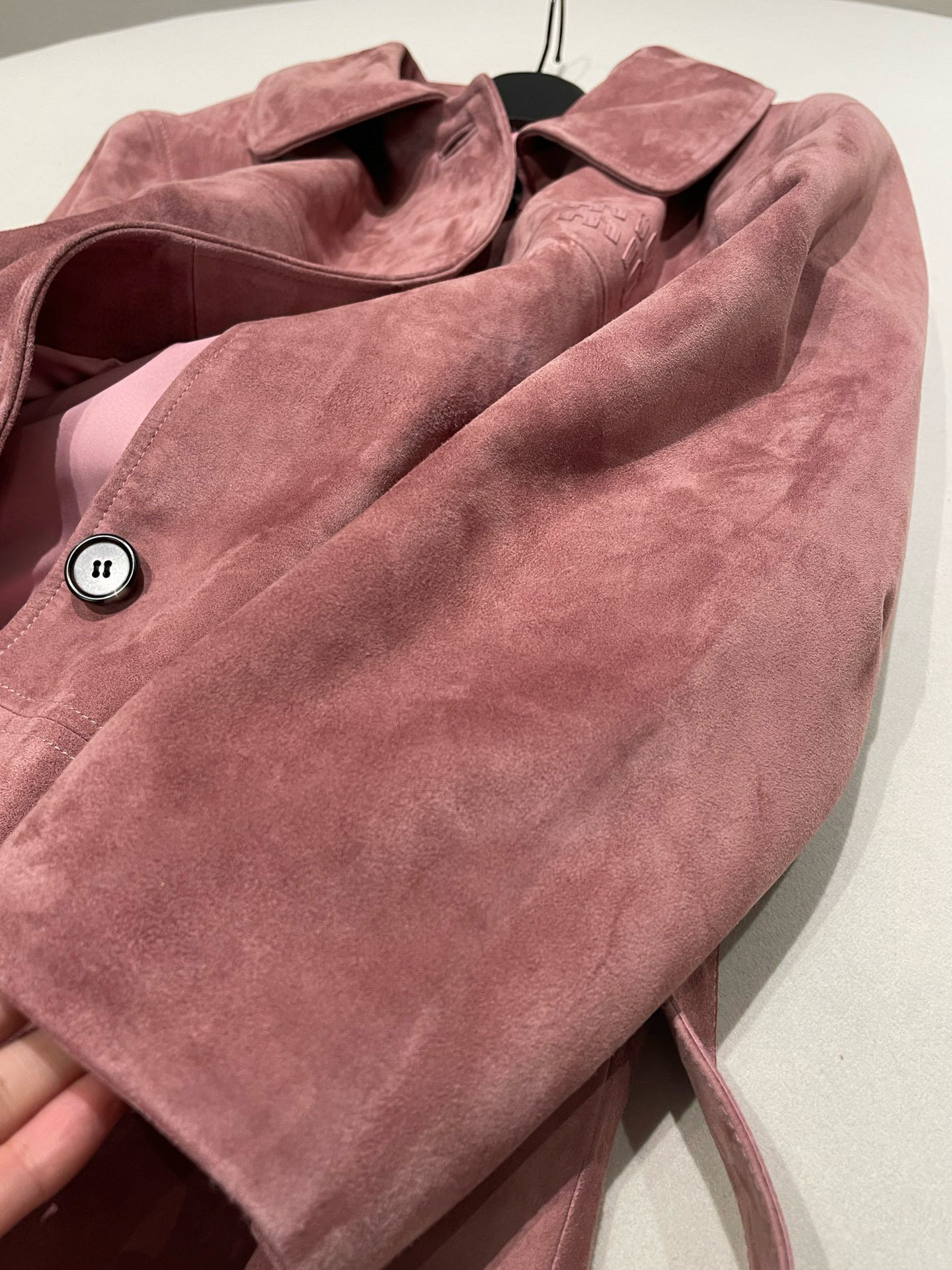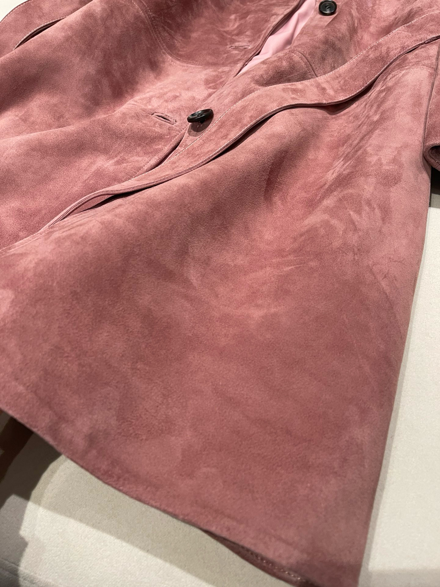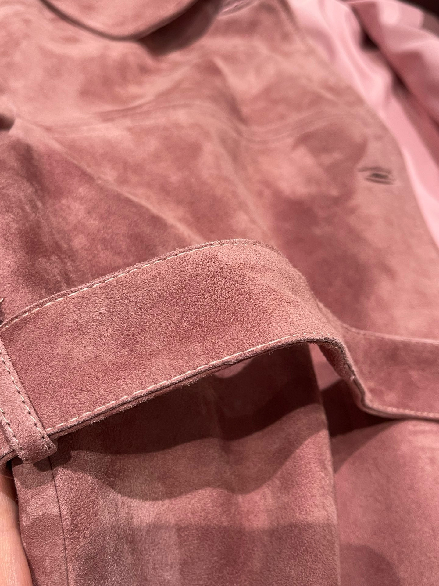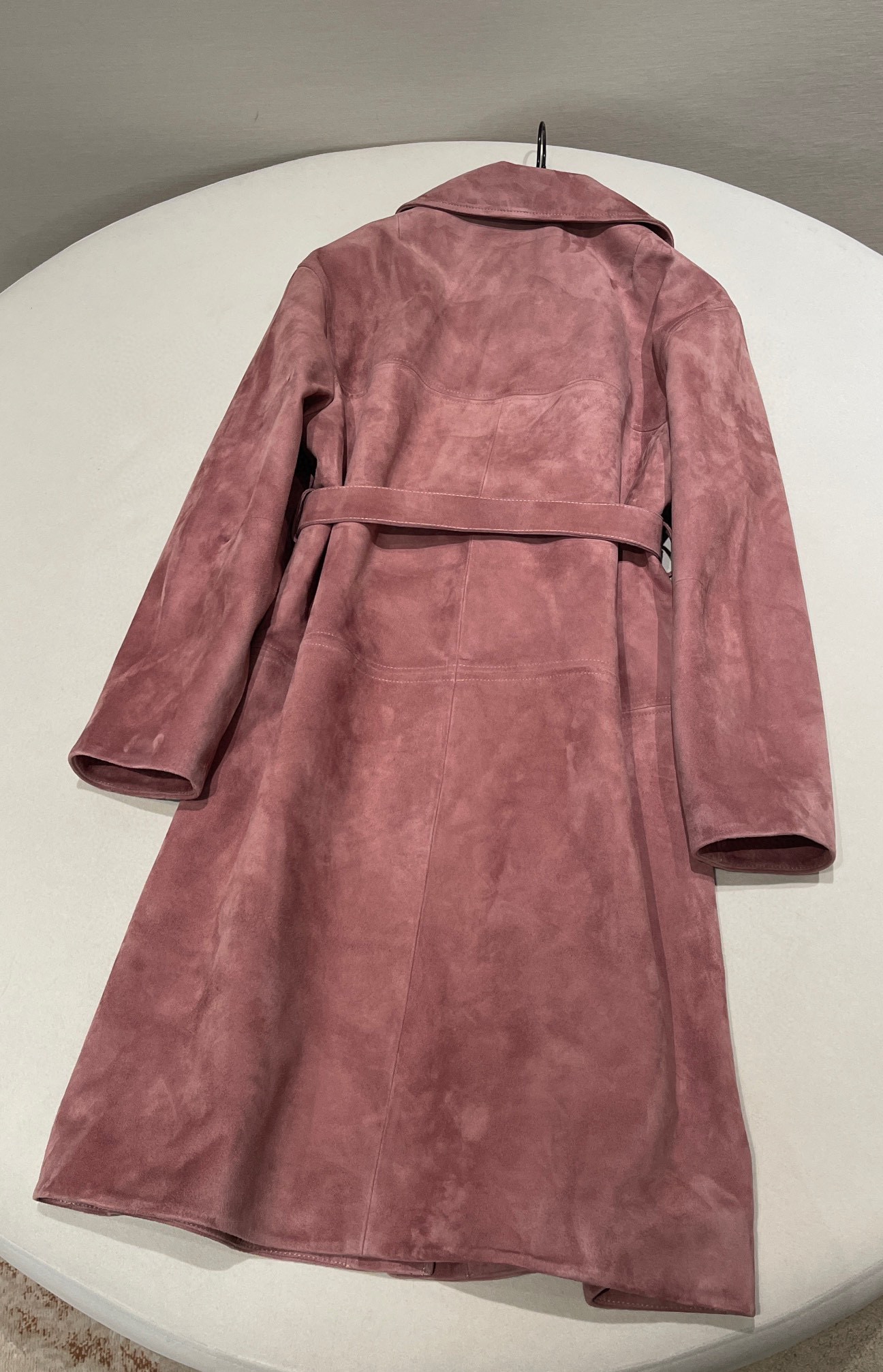 NIGO MiuMiu Women's Autumn and Winter Suede Pink Single Breasted Tie Waist Long Coat Jacket #nigo98877