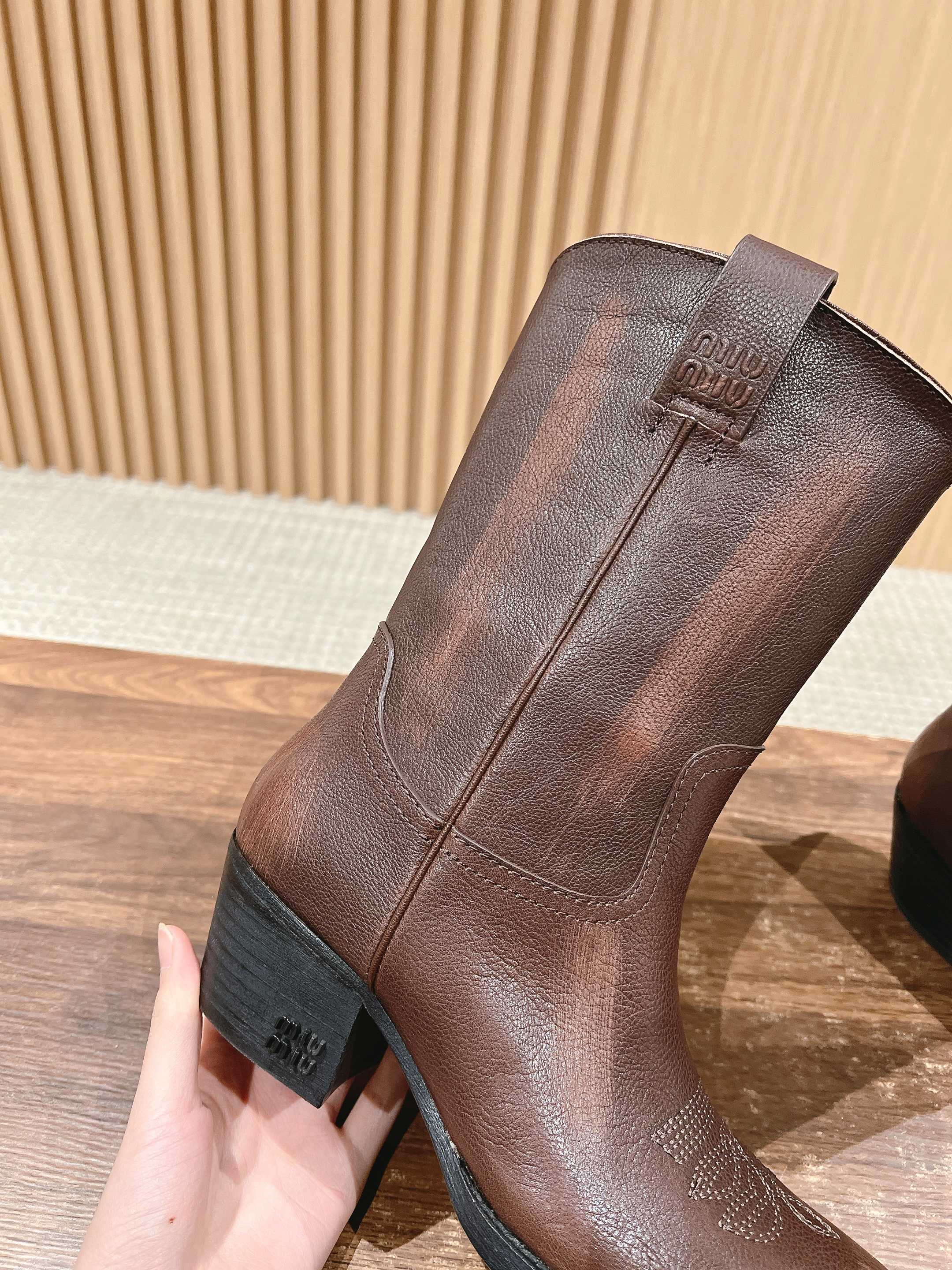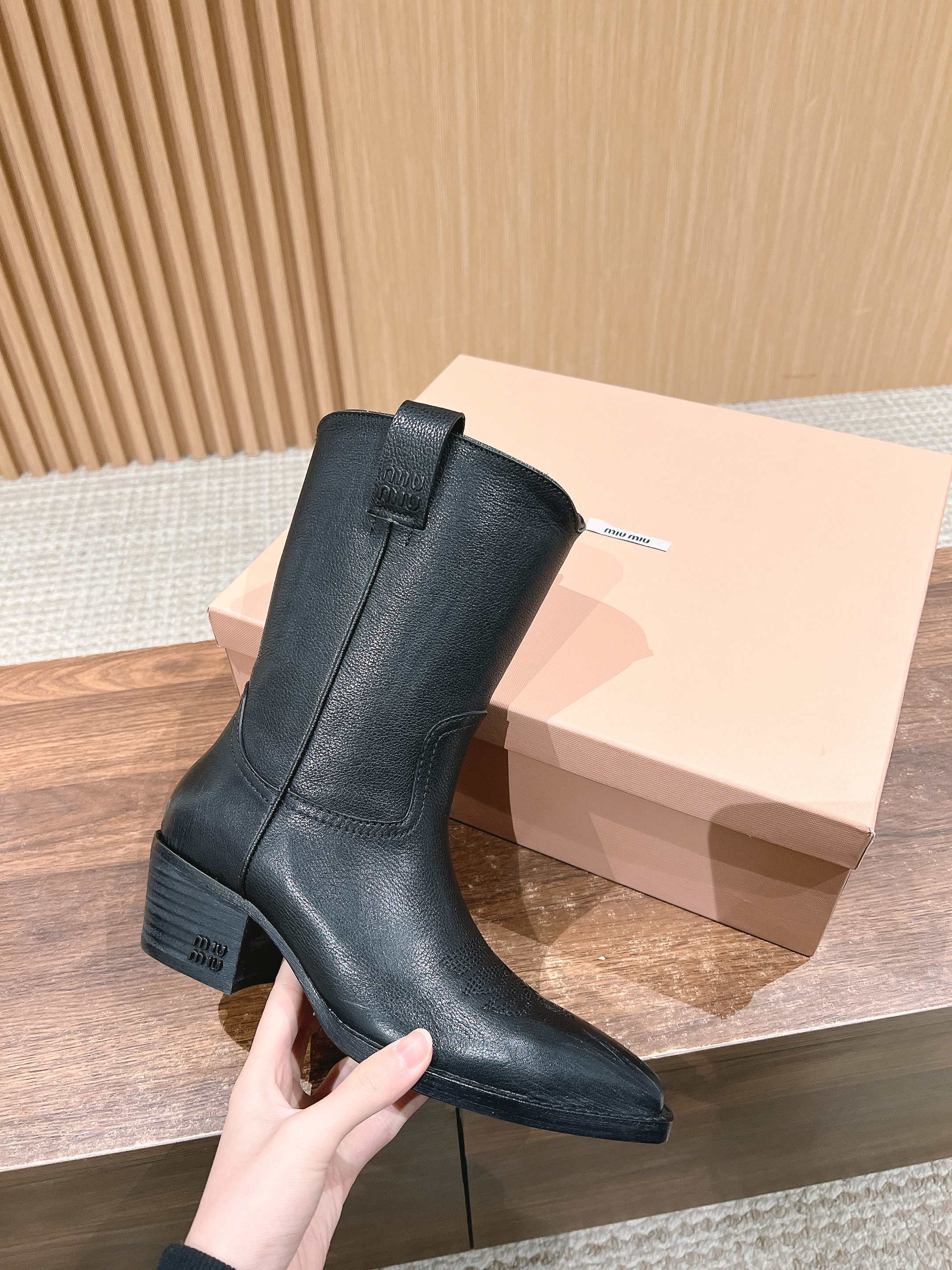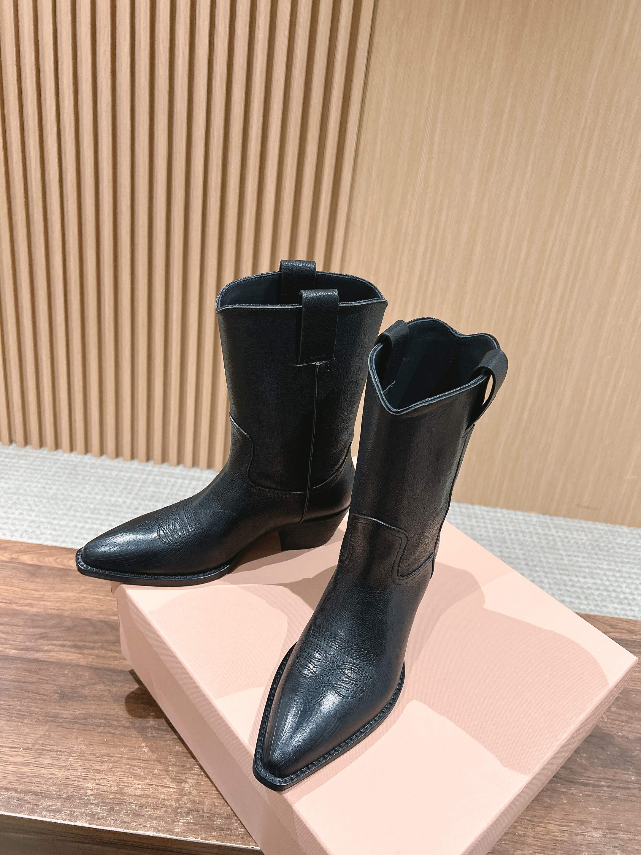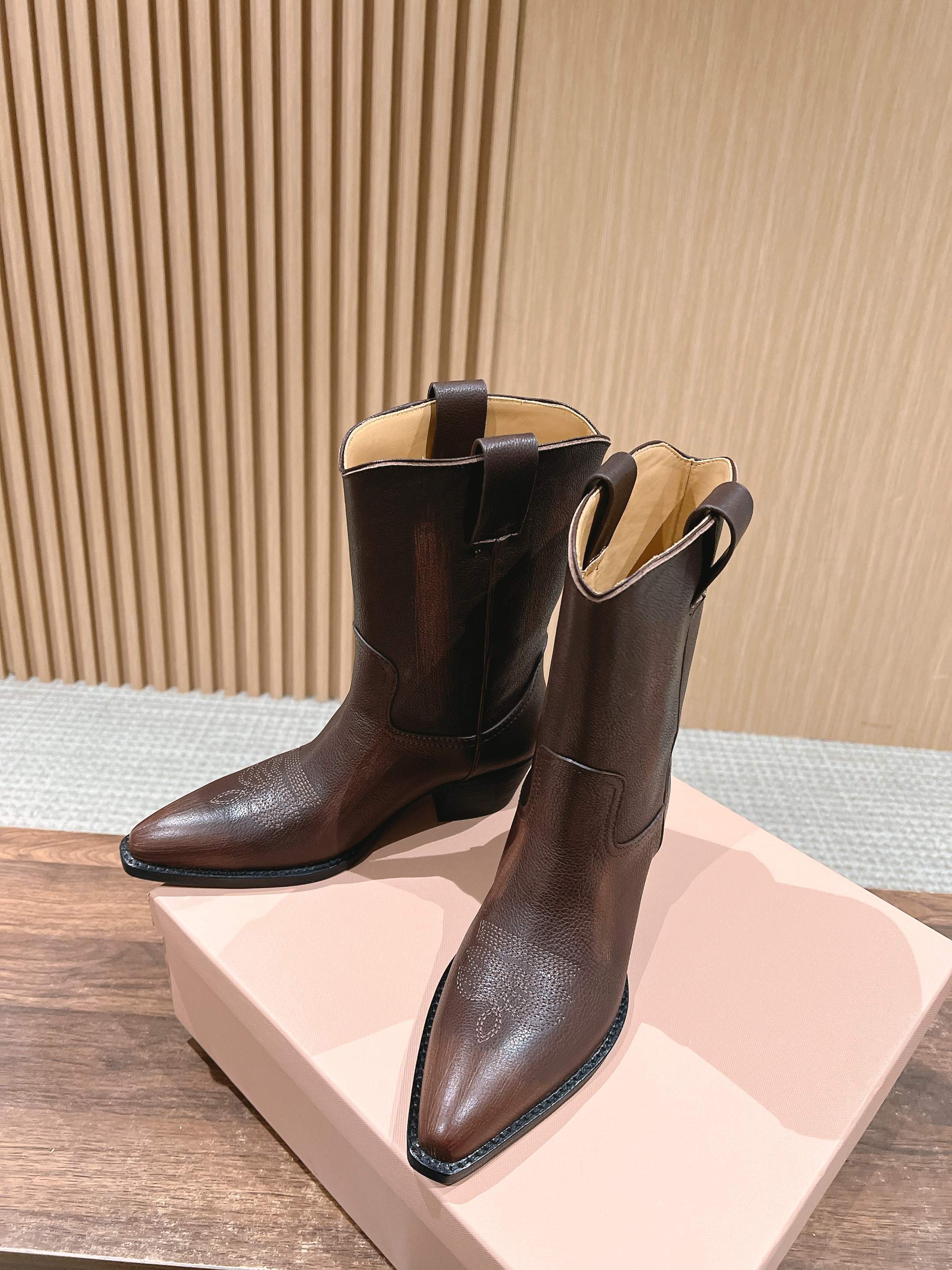 NIGO MiuMiu Women's Autumn/winter Fashion Classic Solid Color Retro Leather Pointed Toe High Heel High Boot Shoes #nigo78435