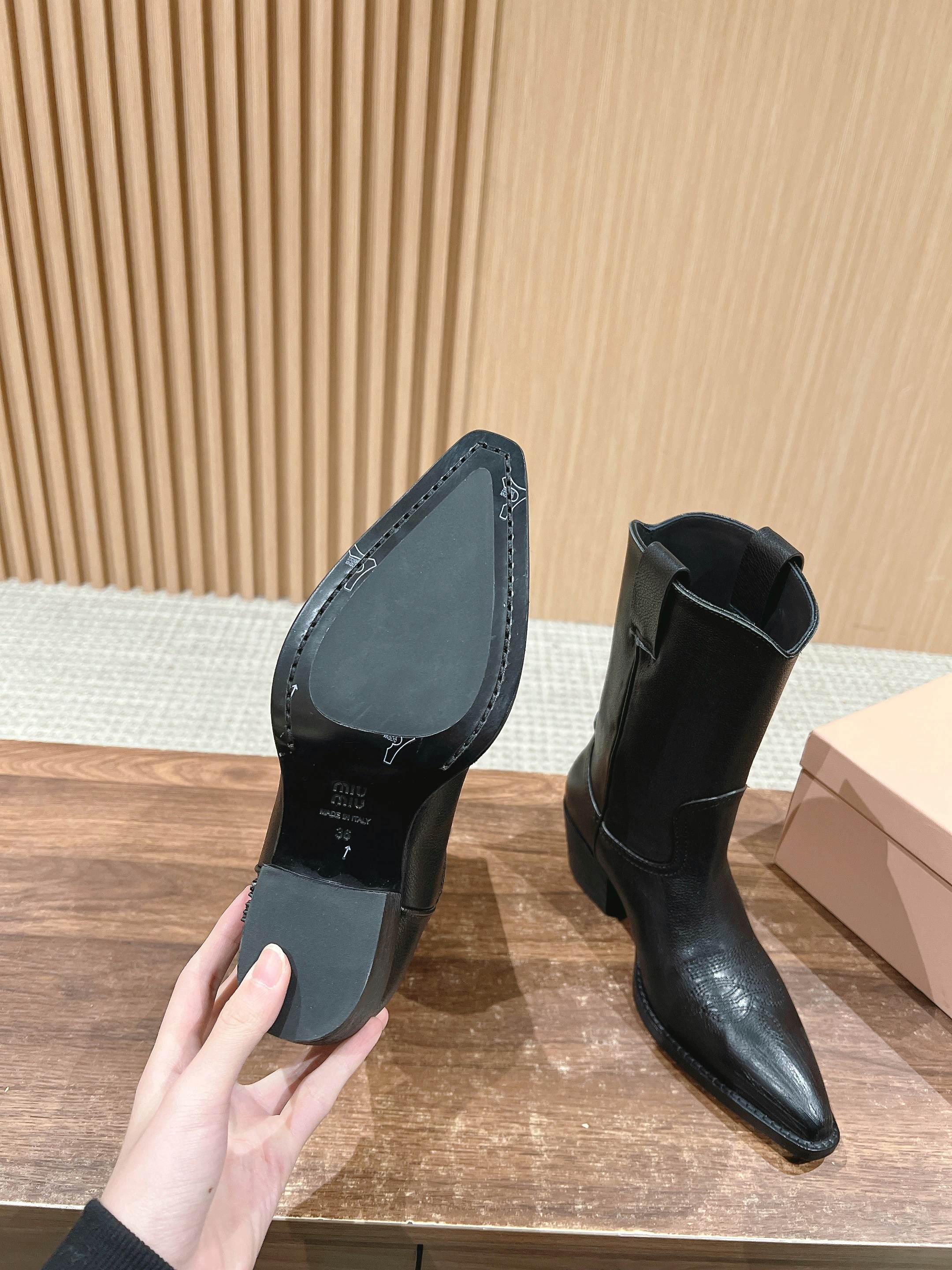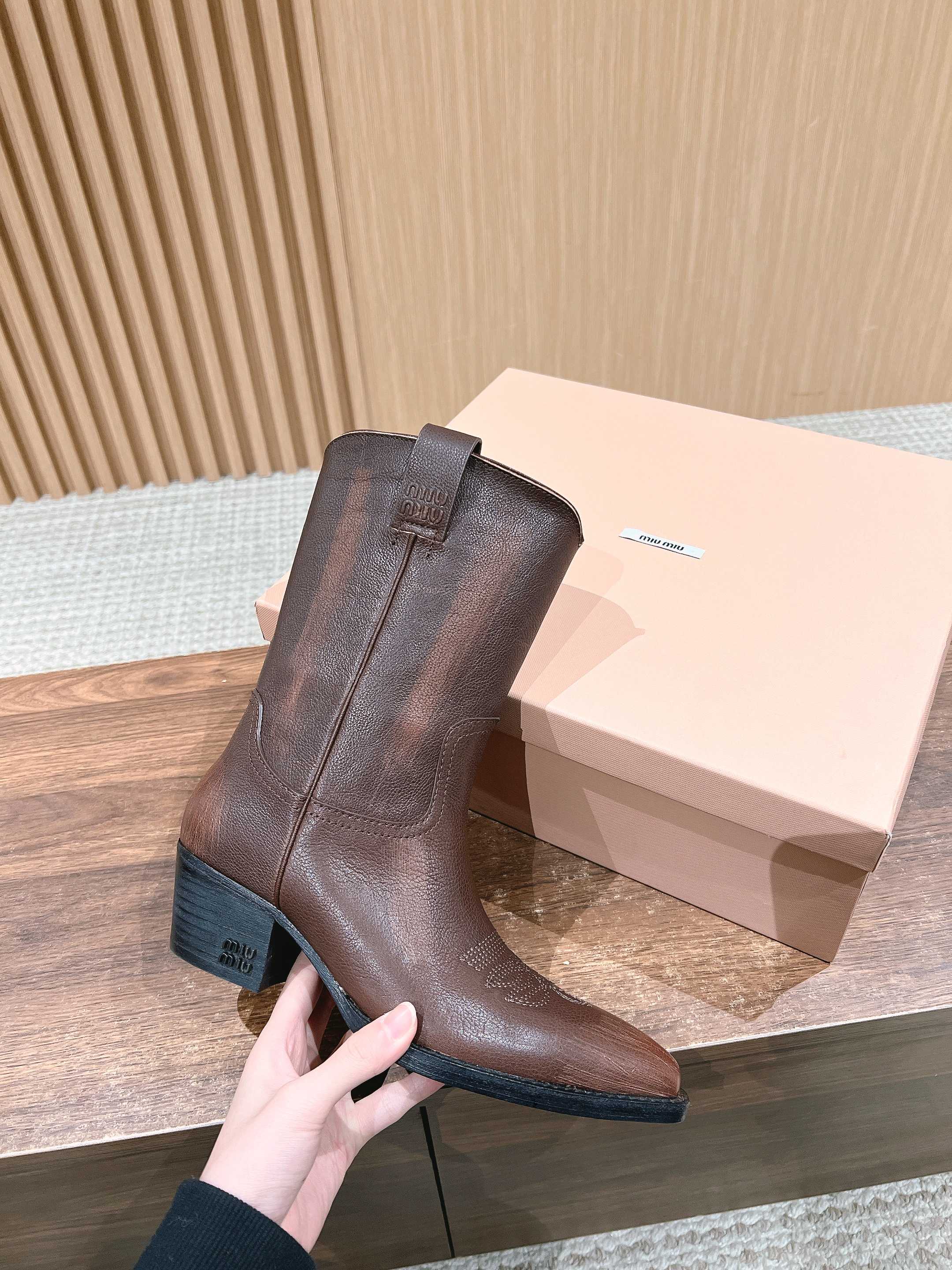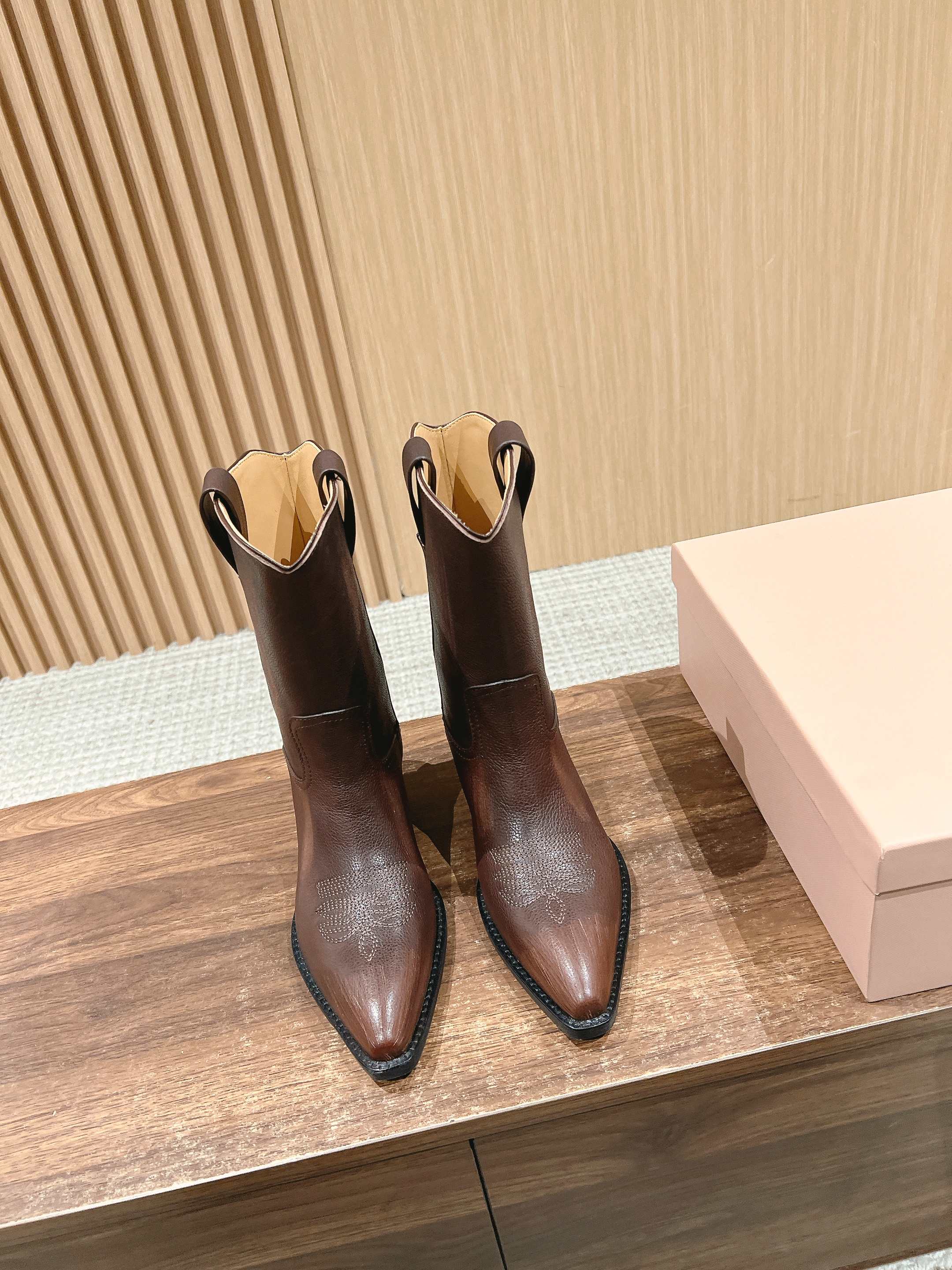 NIGO MiuMiu Women's Autumn/winter Fashion Classic Solid Color Retro Leather Pointed Toe High Heel High Boot Shoes #nigo78435