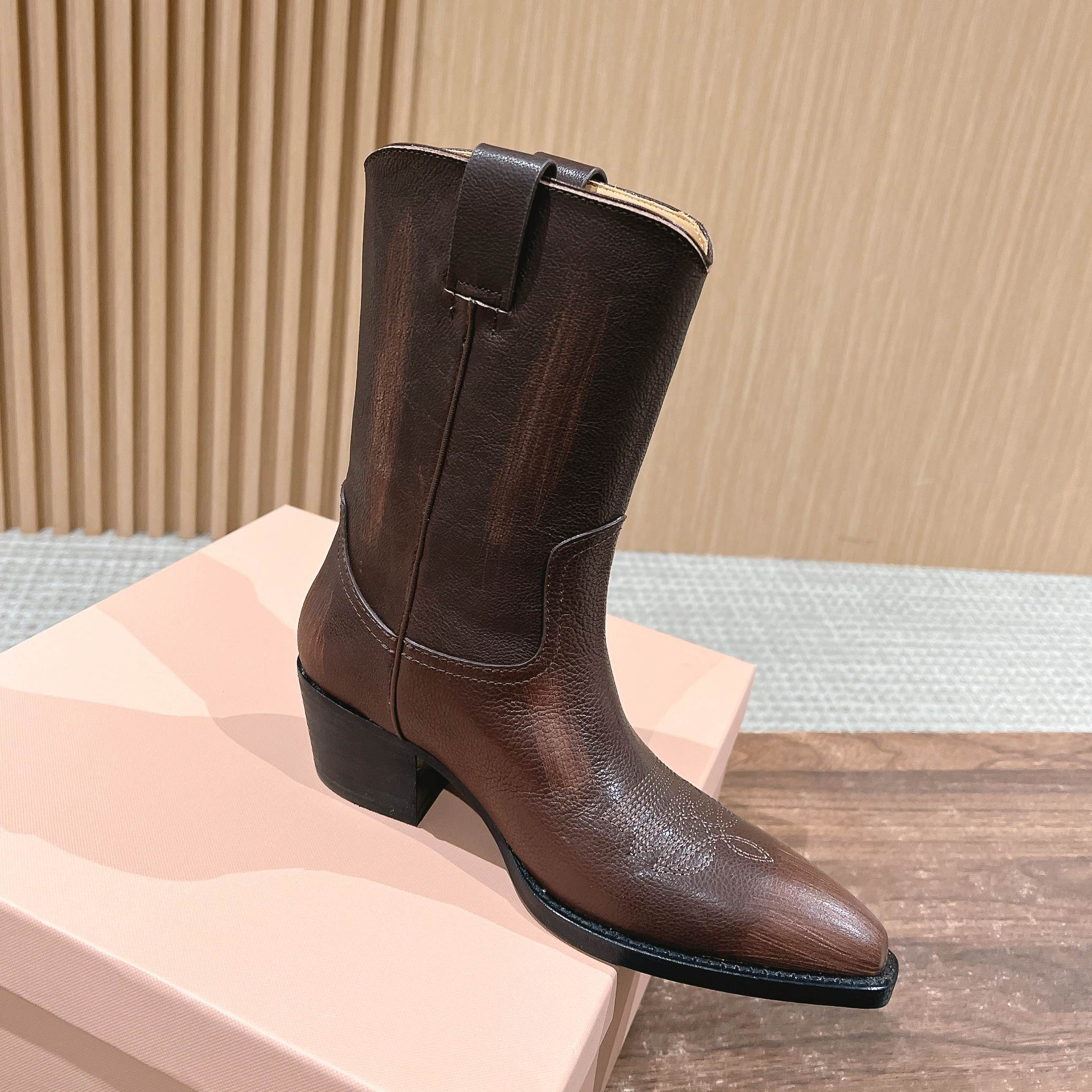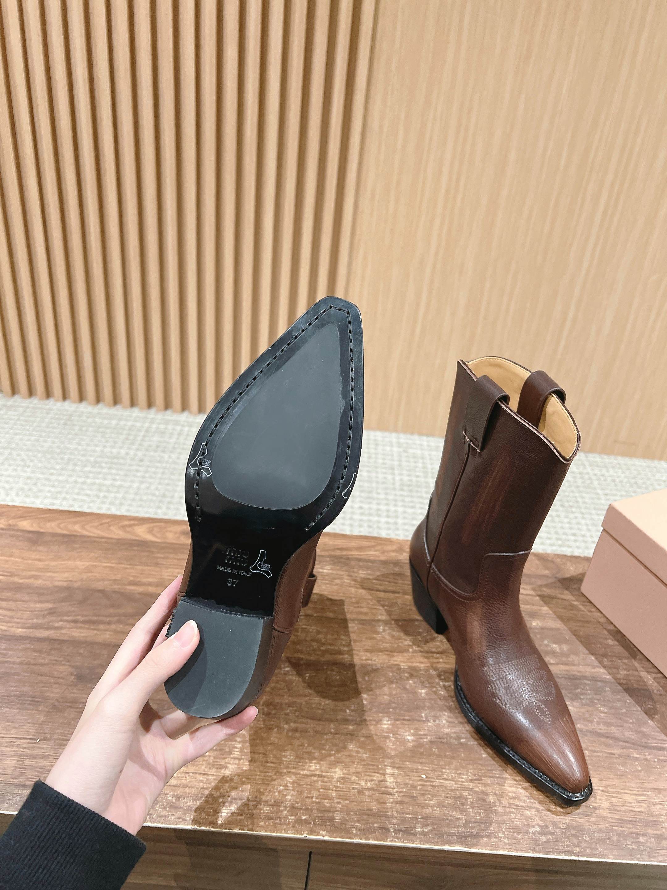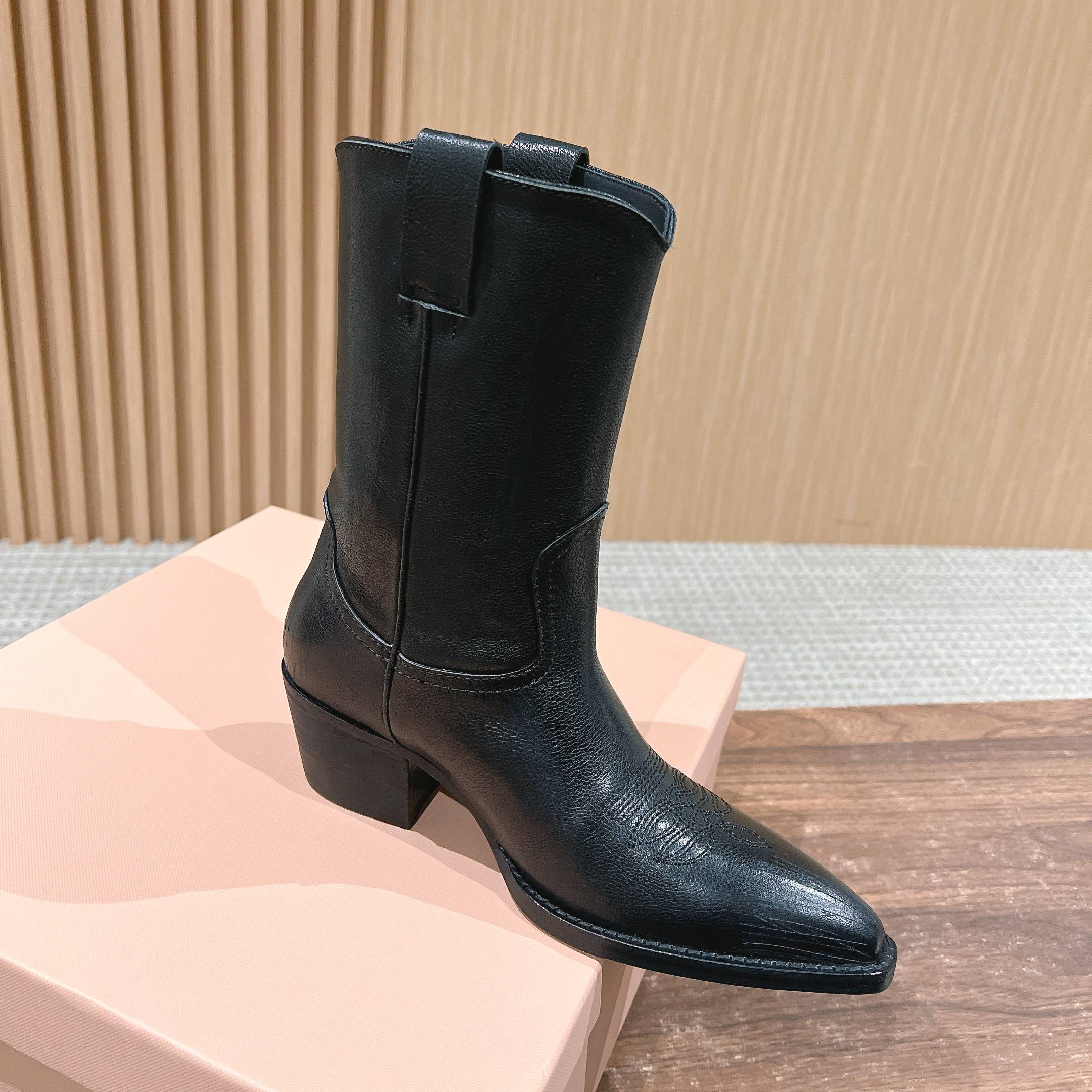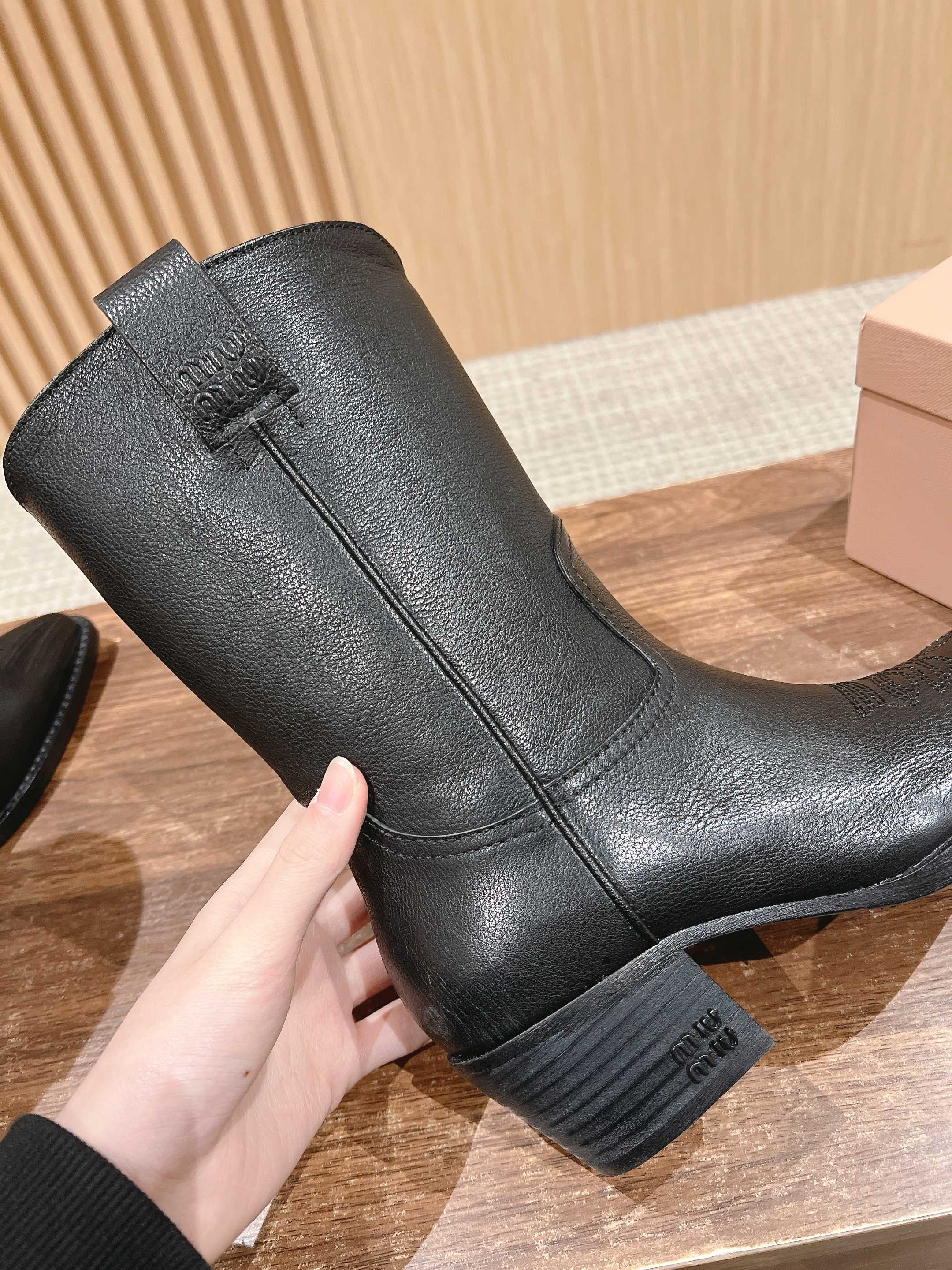 NIGO MiuMiu Women's Autumn/winter Fashion Classic Solid Color Retro Leather Pointed Toe High Heel High Boot Shoes #nigo78435