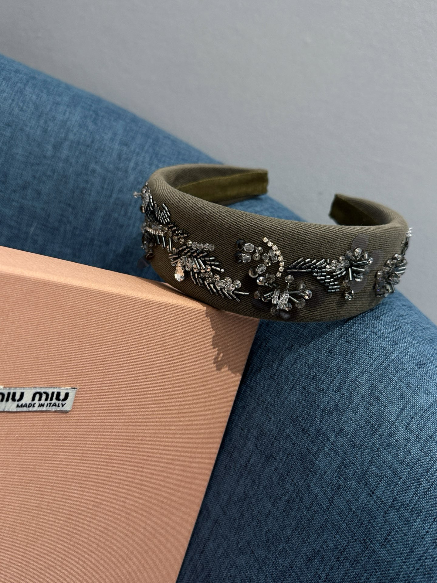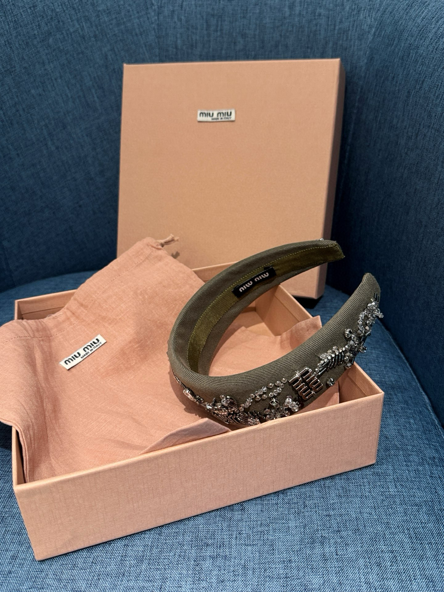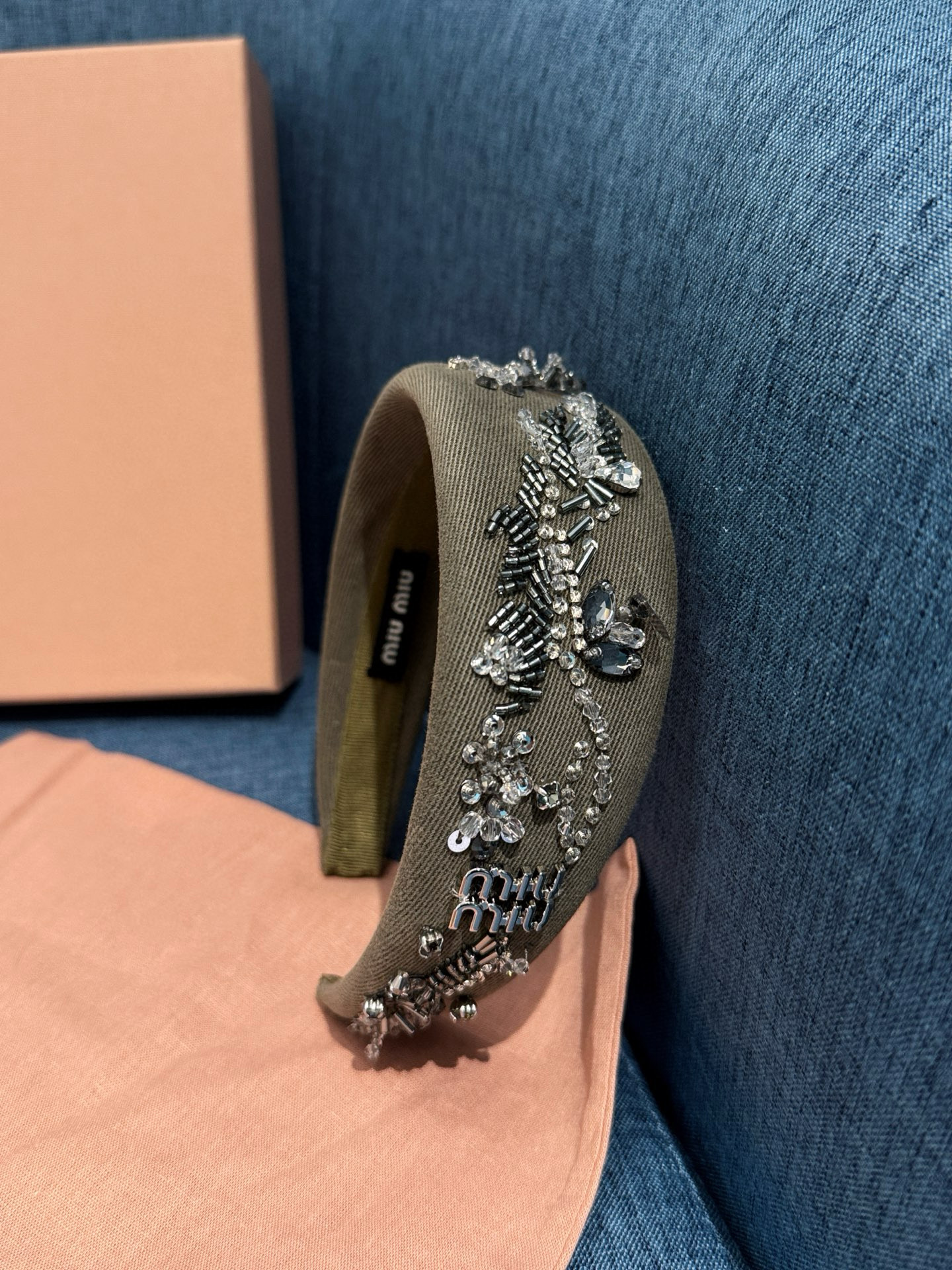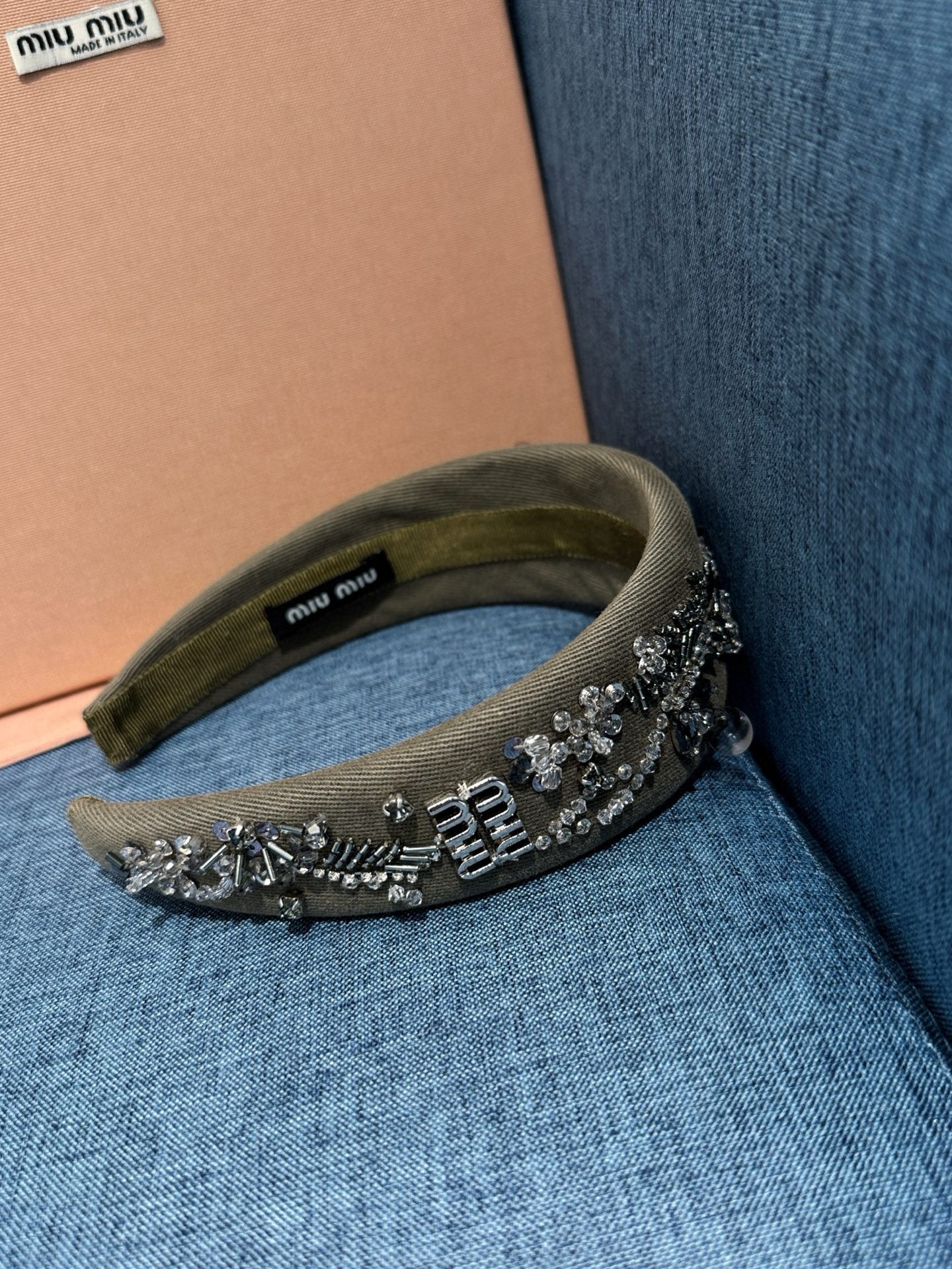 NIGO MiuMiu Women's Embroidered Wadding Tweed Hair Bands Vintage Green Two Sides With Diamonds Fashion Casual Hair Bands Jewellery Accessories Ngvp #nigo1484