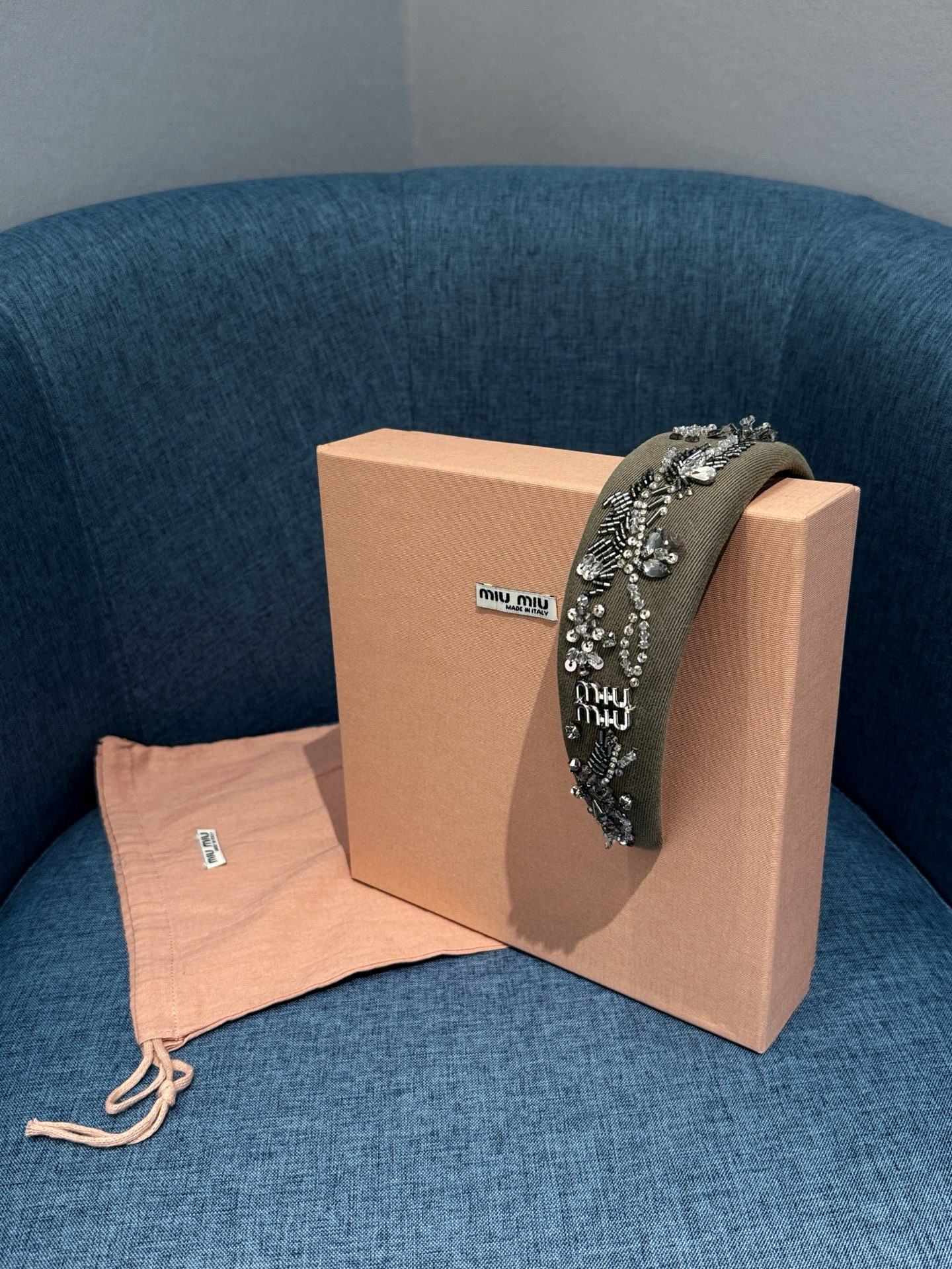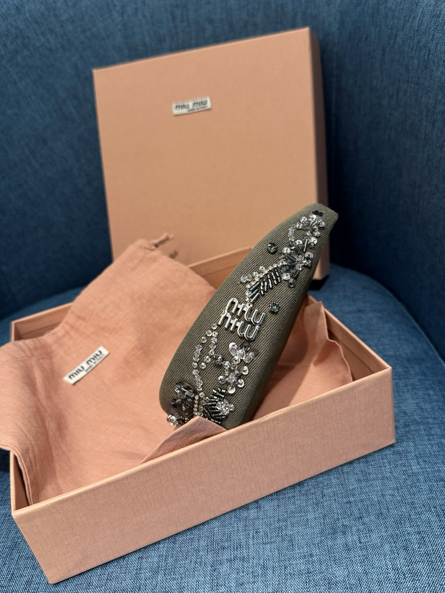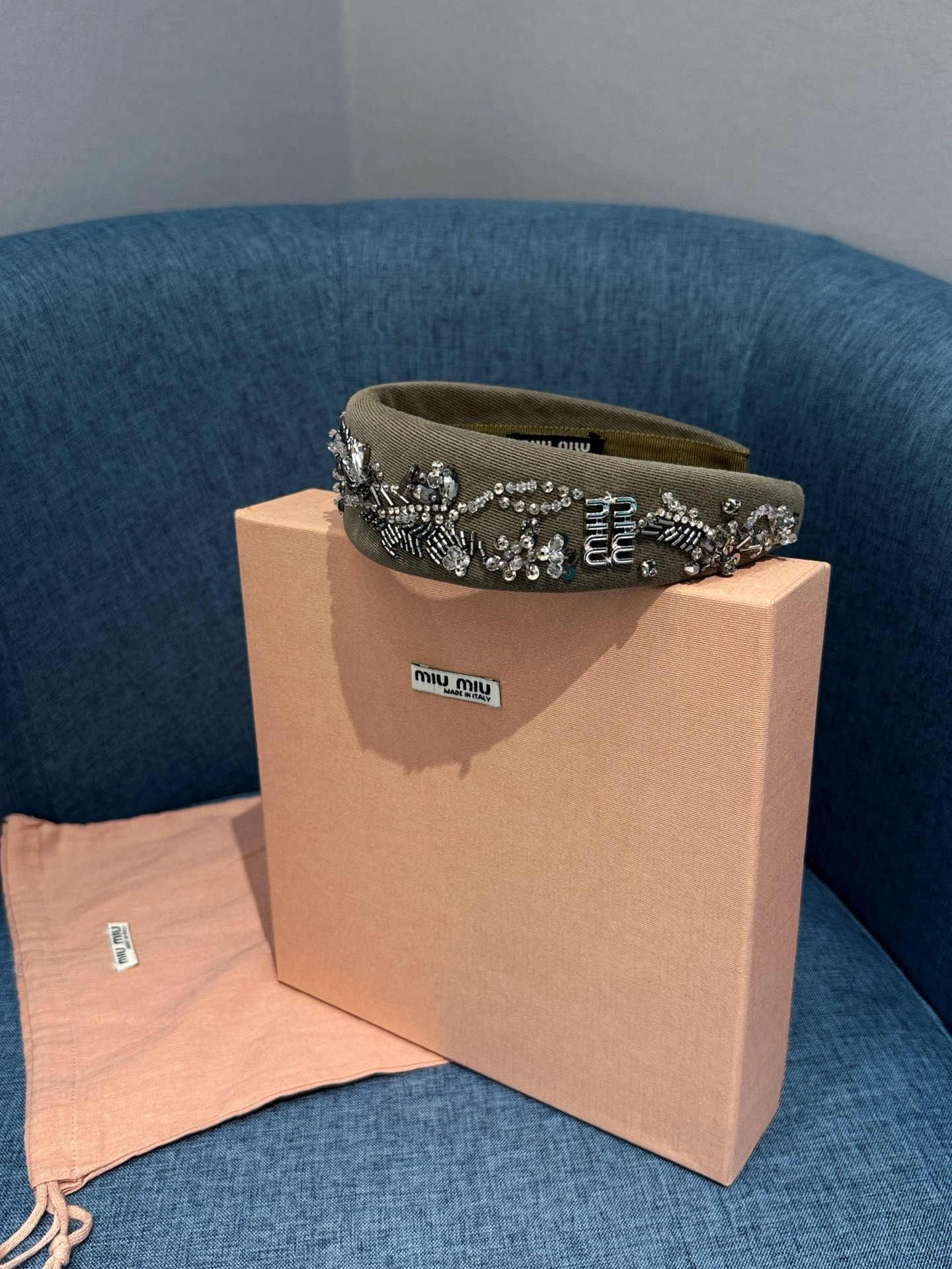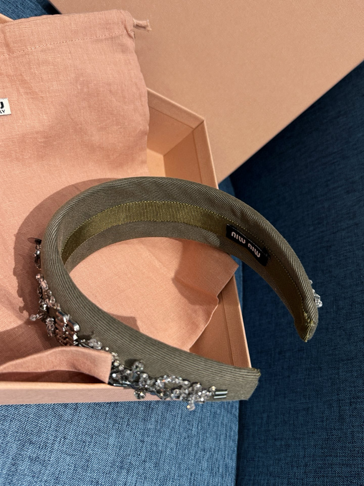 NIGO MiuMiu Women's Embroidered Wadding Tweed Hair Bands Vintage Green Two Sides With Diamonds Fashion Casual Hair Bands Jewellery Accessories Ngvp #nigo1484