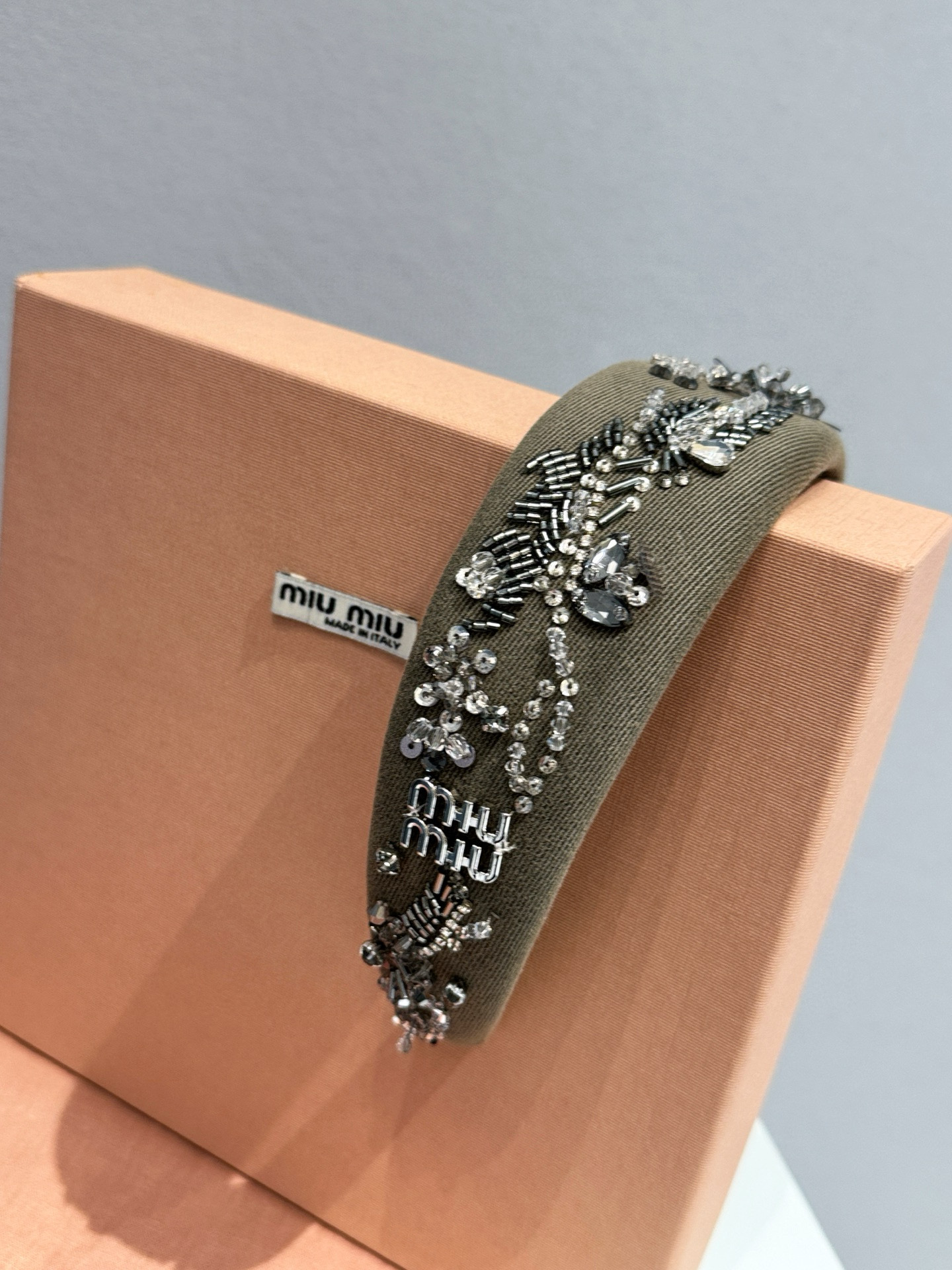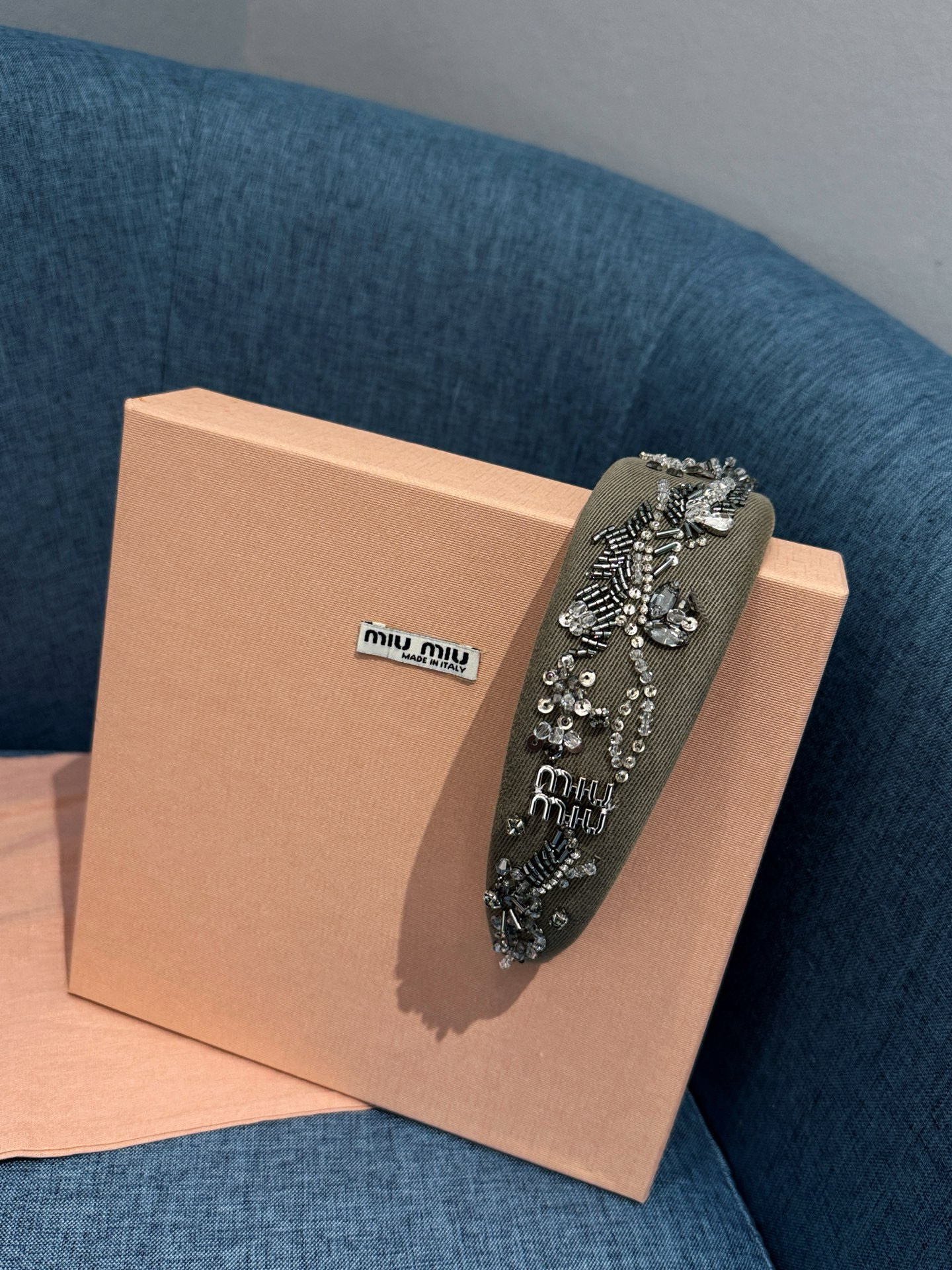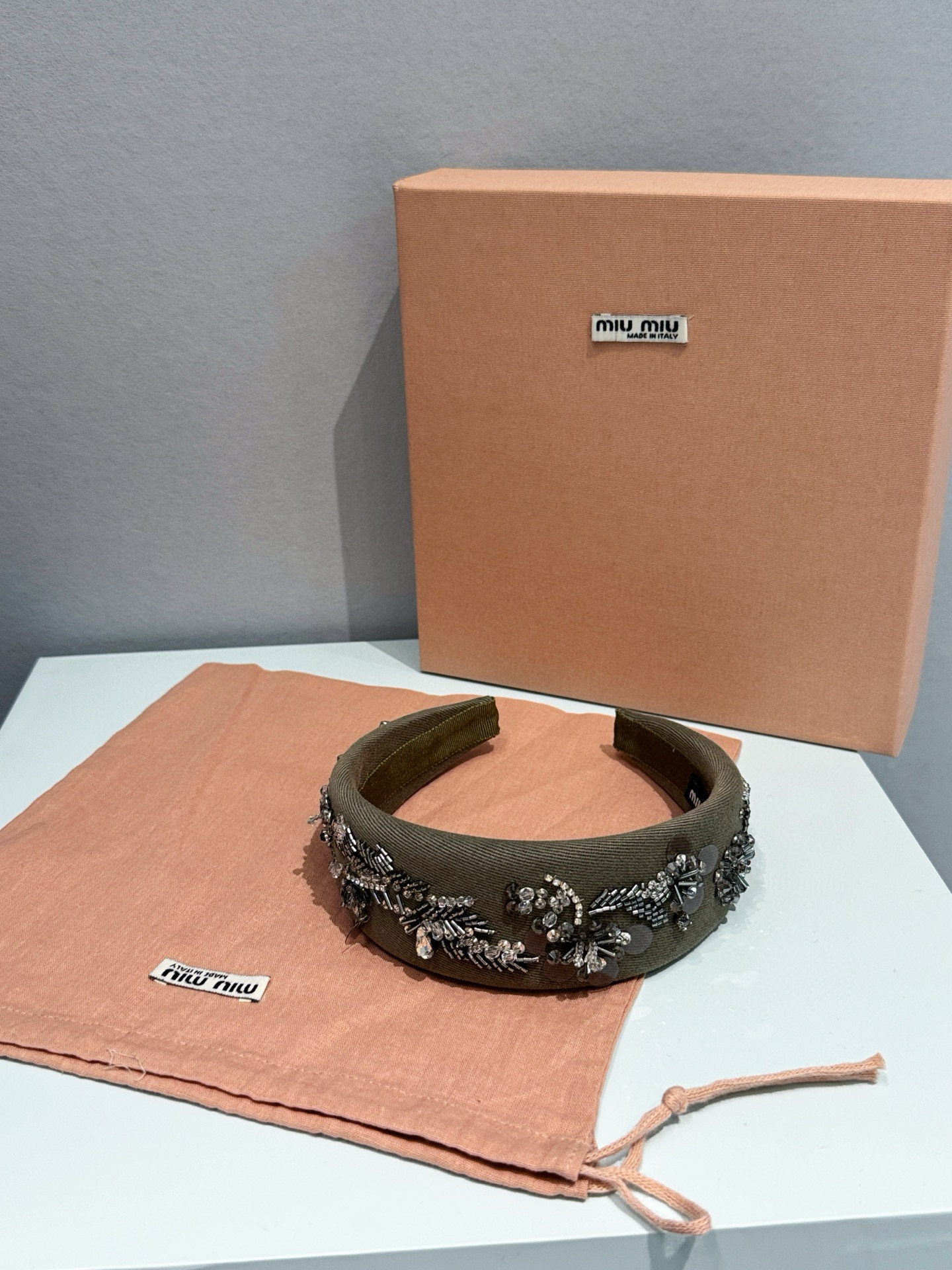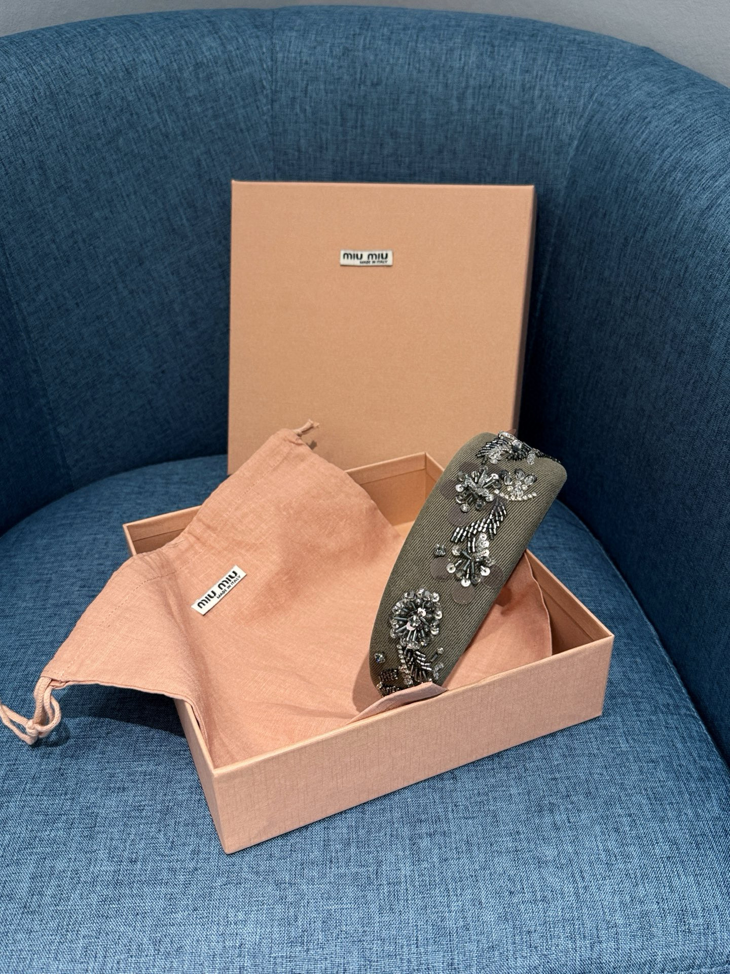 NIGO MiuMiu Women's Embroidered Wadding Tweed Hair Bands Vintage Green Two Sides With Diamonds Fashion Casual Hair Bands Jewellery Accessories Ngvp #nigo1484