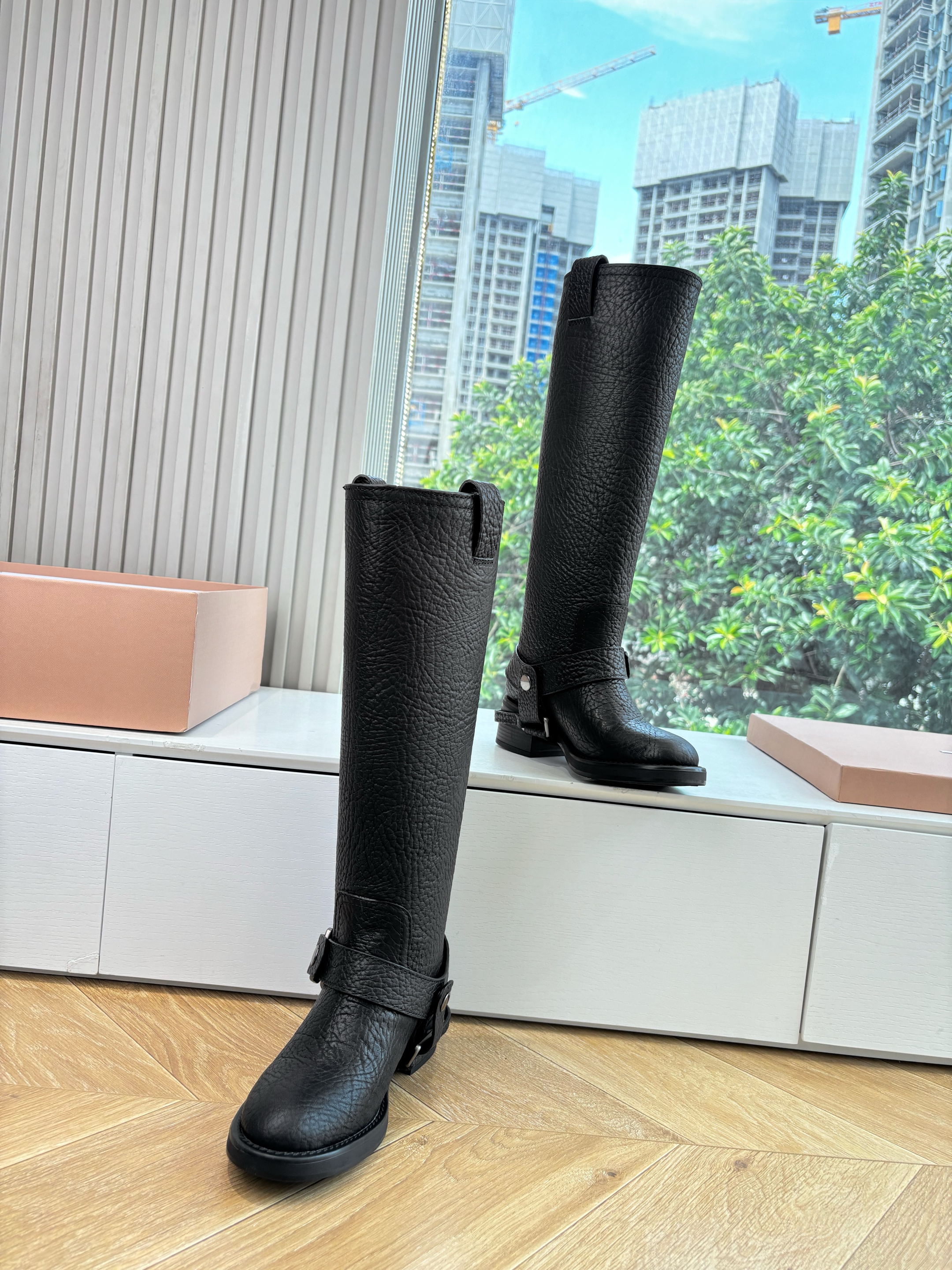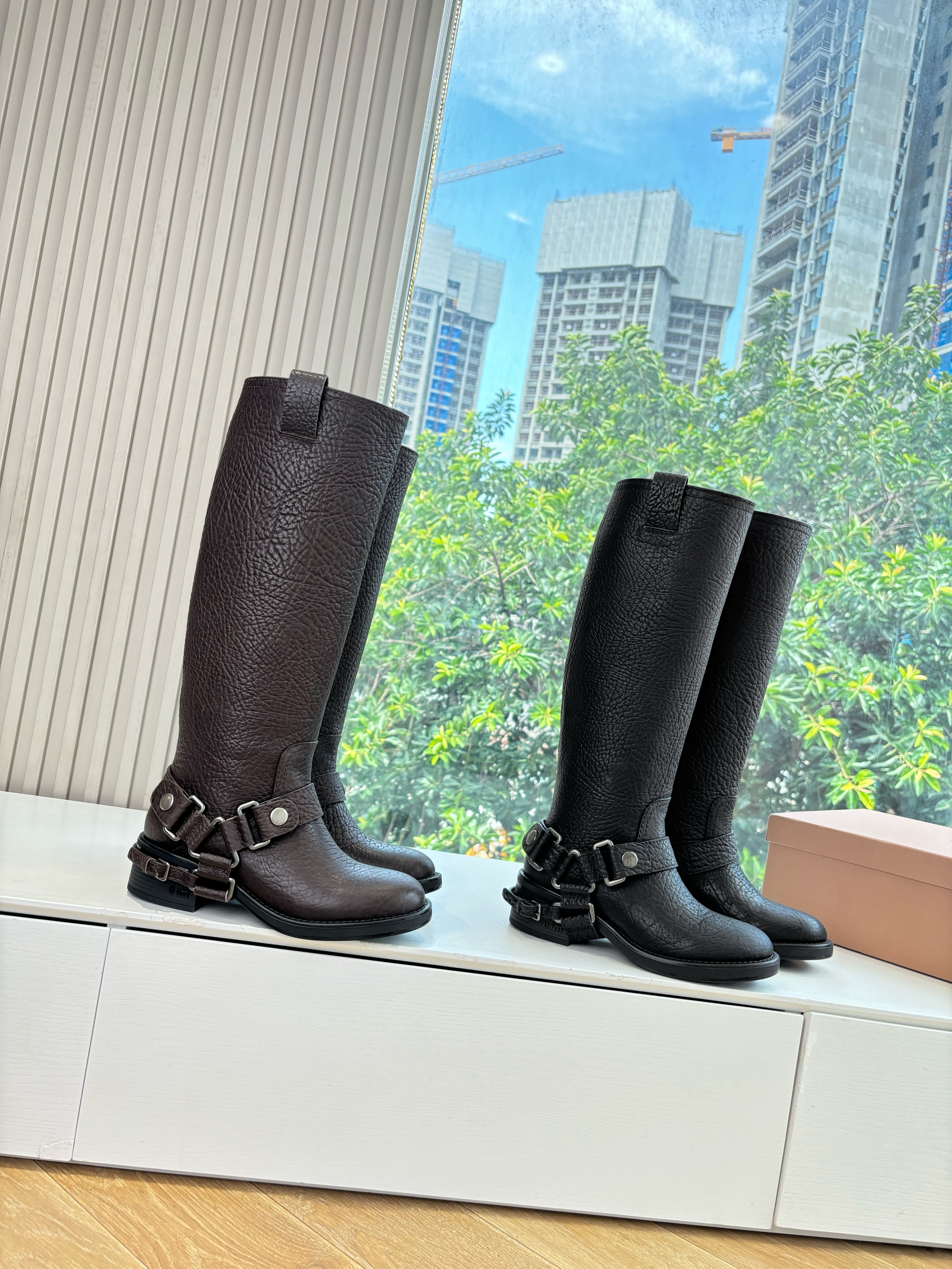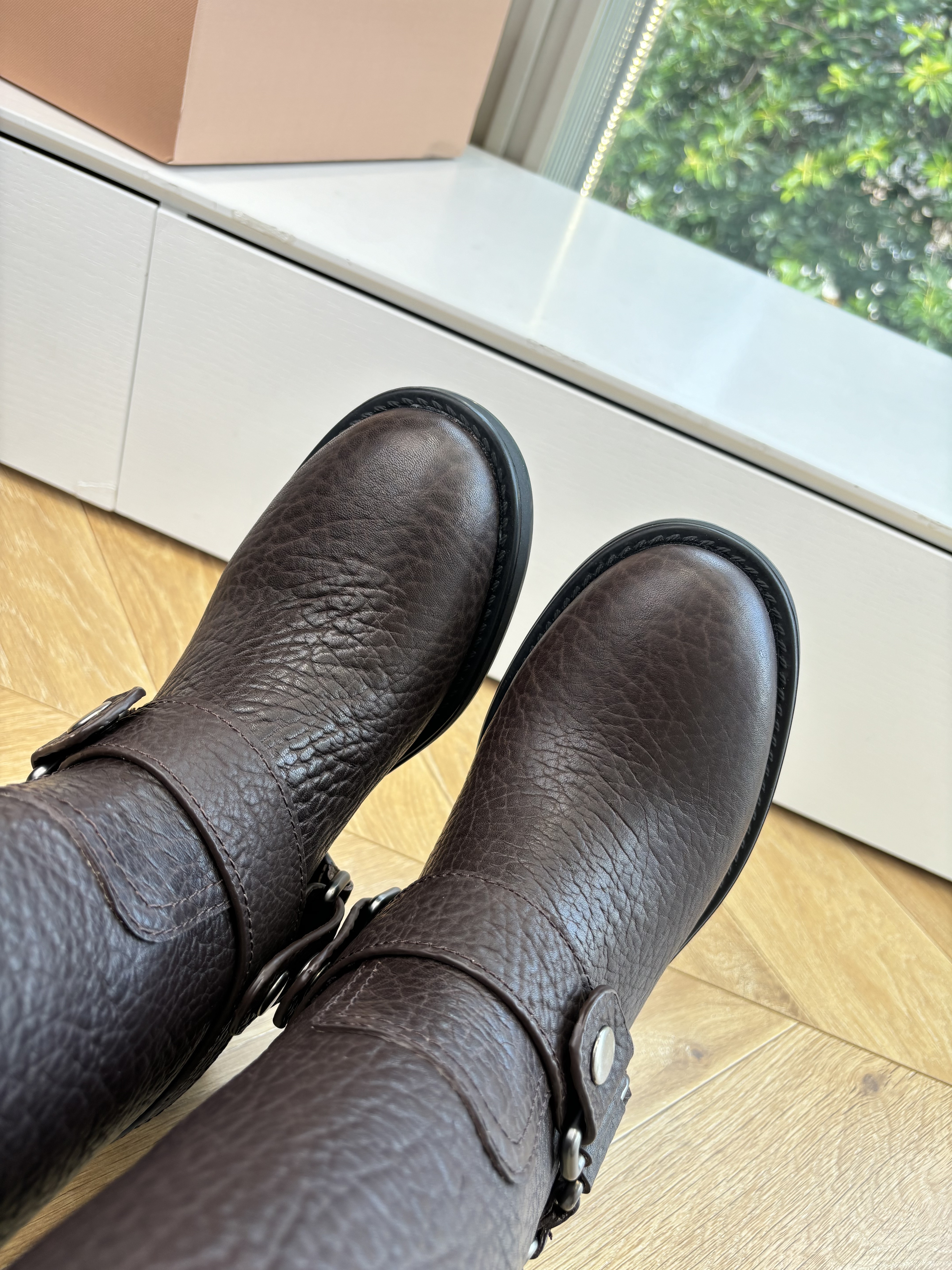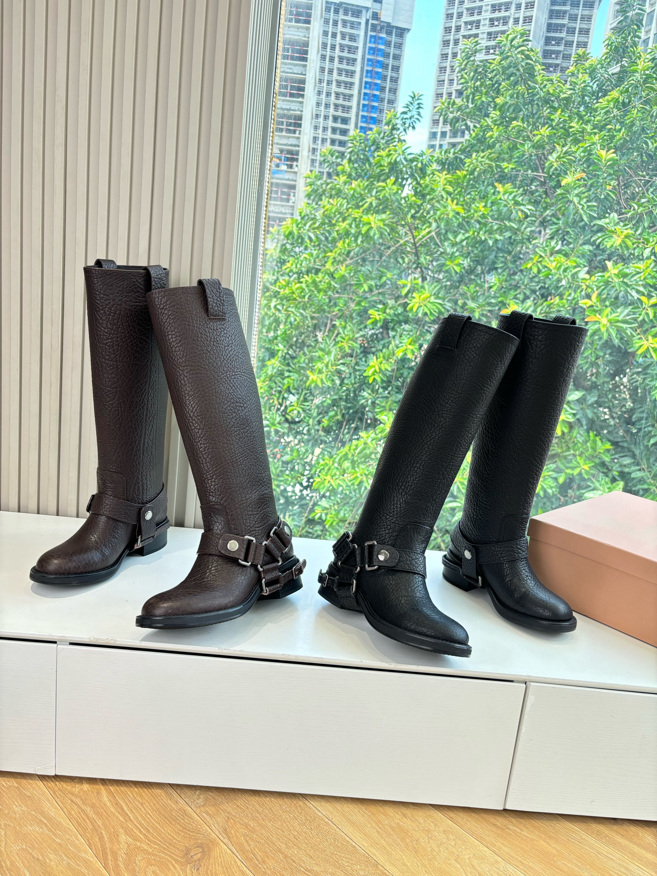 NIGO MiuMiu Women's Fall/Winter Classic Solid-Color Leather Biker-Style Long Boots Retro Rider Long Boots Shoes #nigo78721