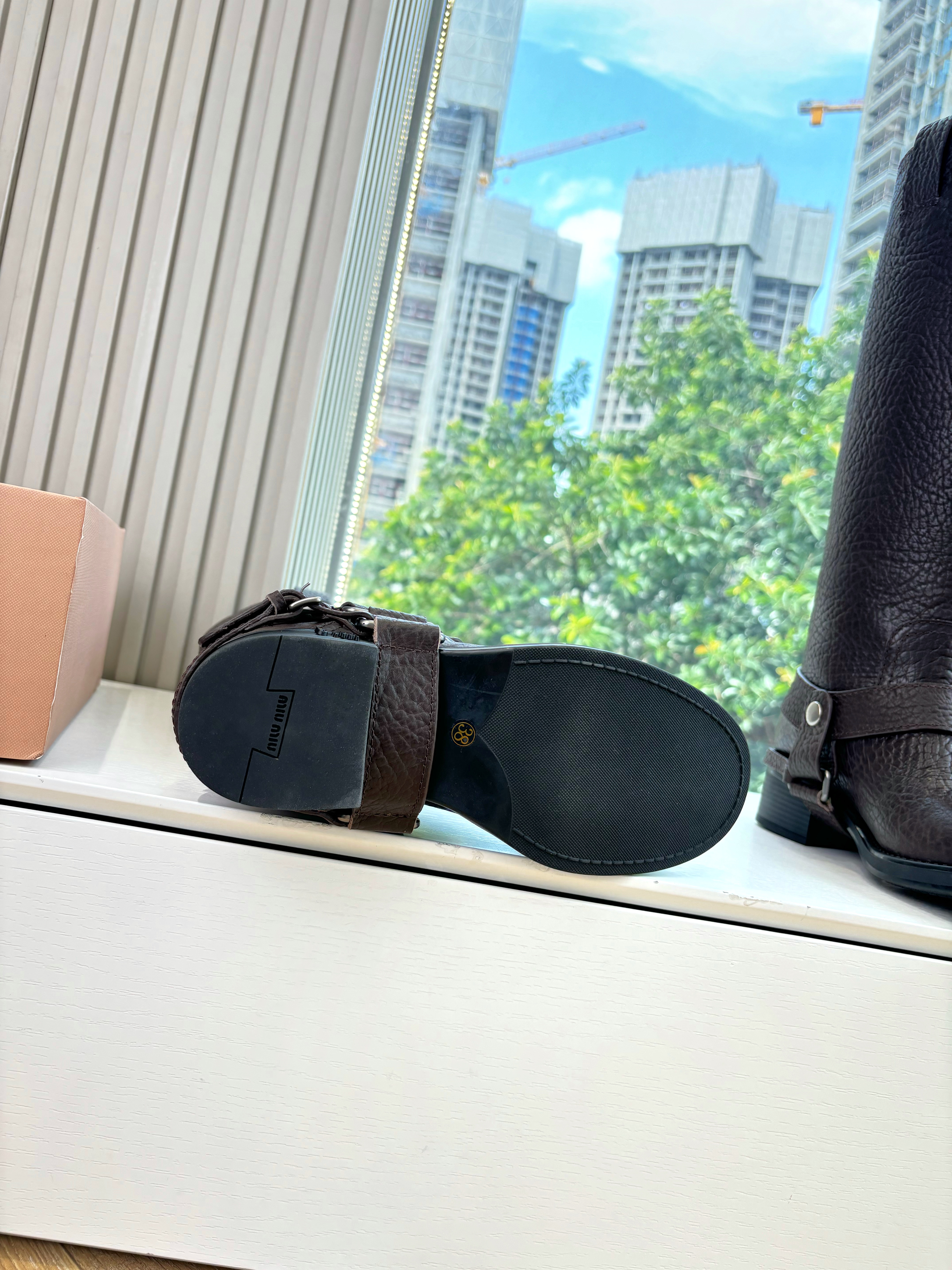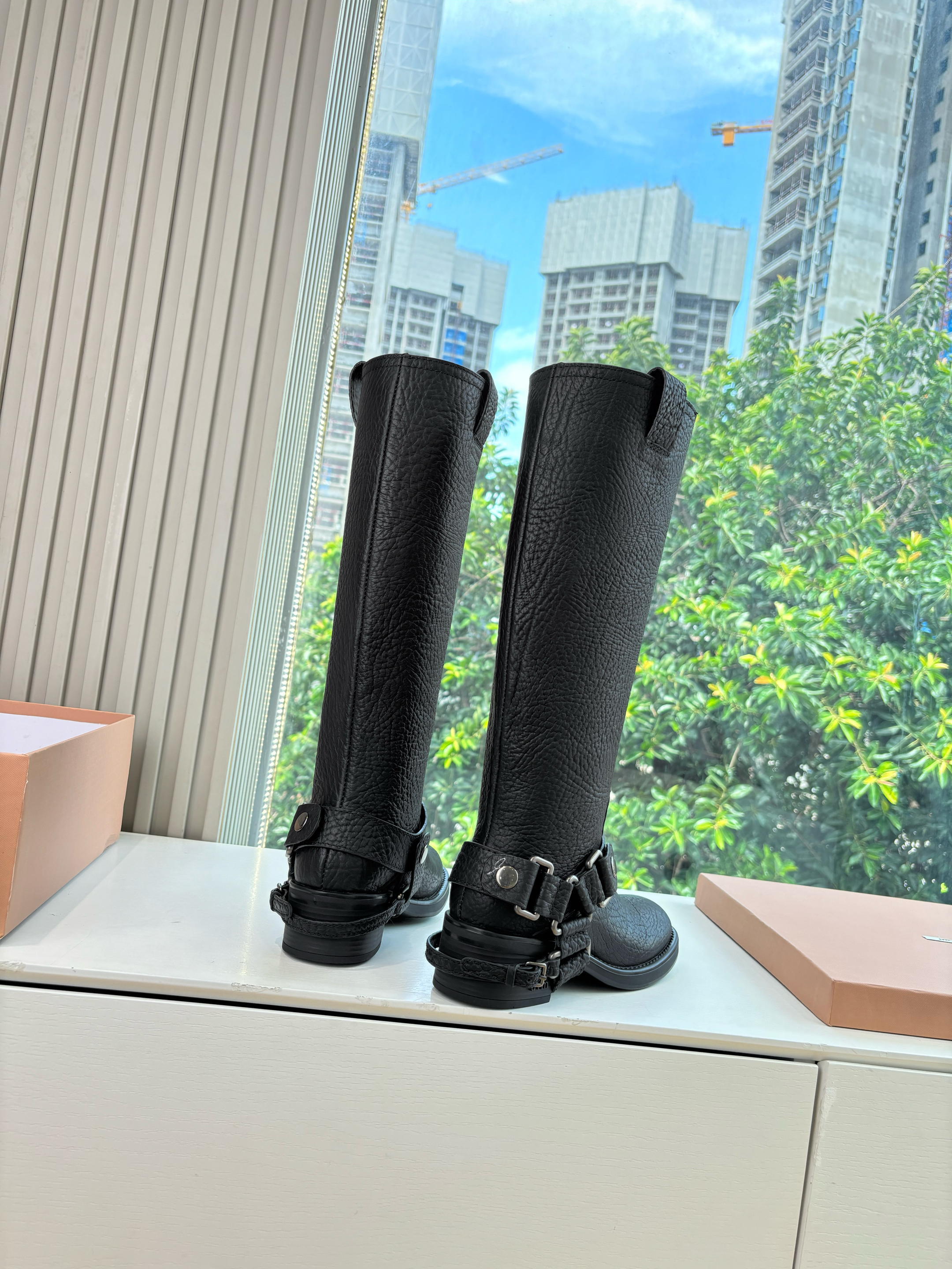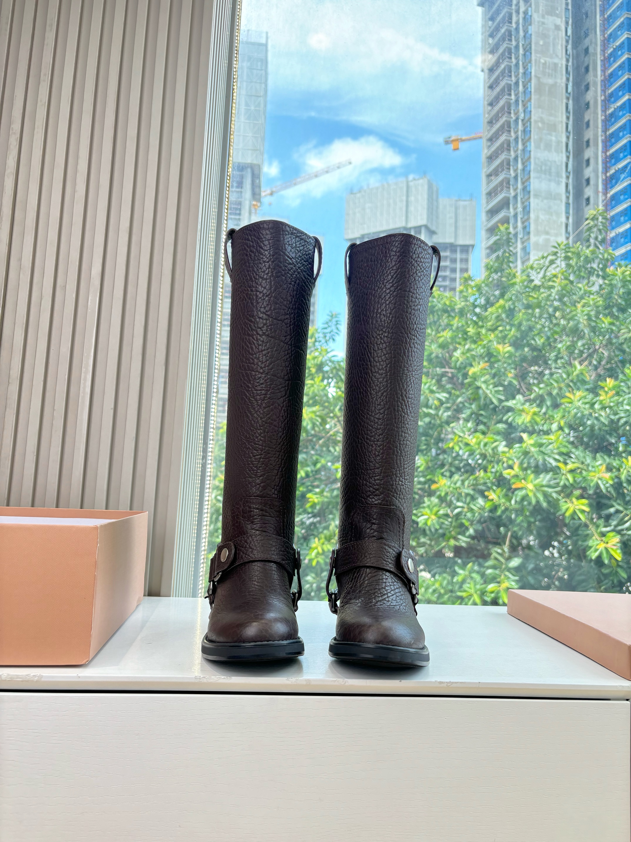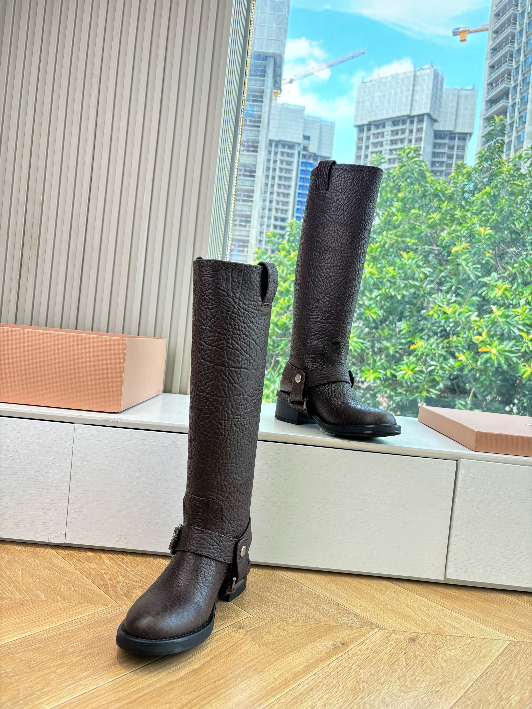 NIGO MiuMiu Women's Fall/Winter Classic Solid-Color Leather Biker-Style Long Boots Retro Rider Long Boots Shoes #nigo78721
