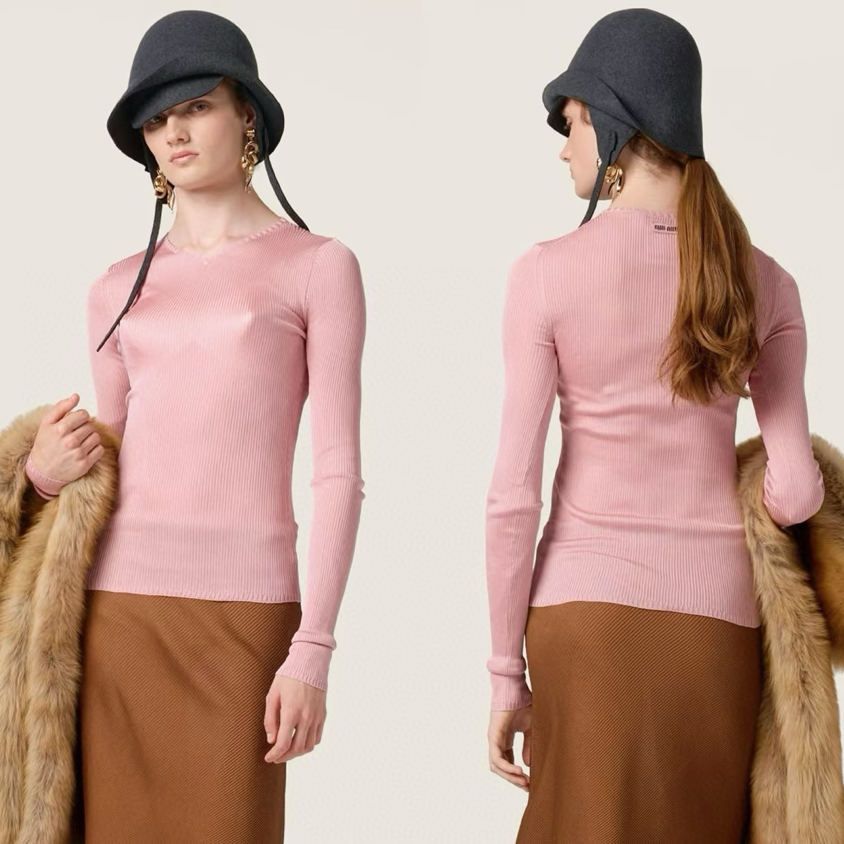 NIGO MiuMiu Women's Fall/Winter Fashion Casual Solid Color V Neck Slim Fit Long Sleeve Knit Sweater #nigo79528