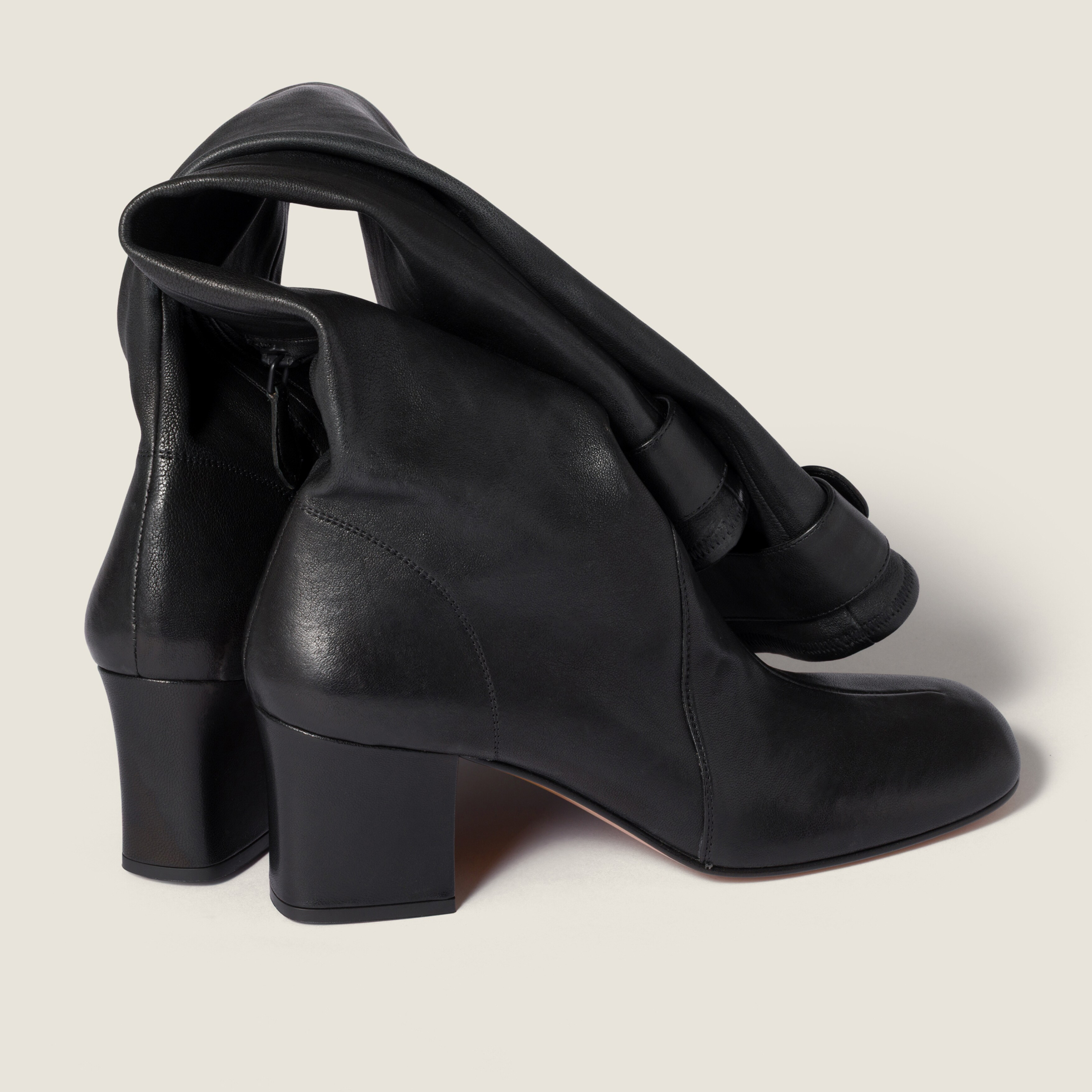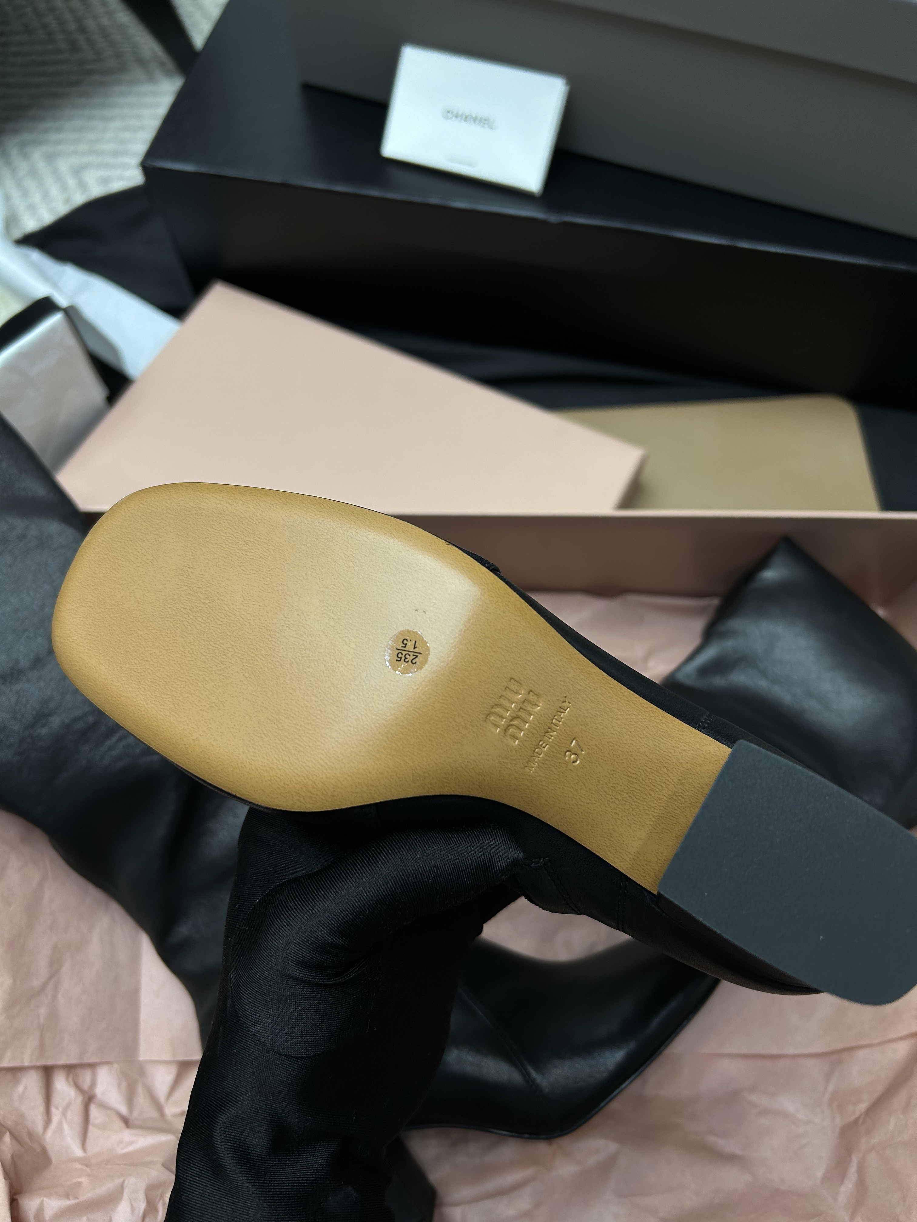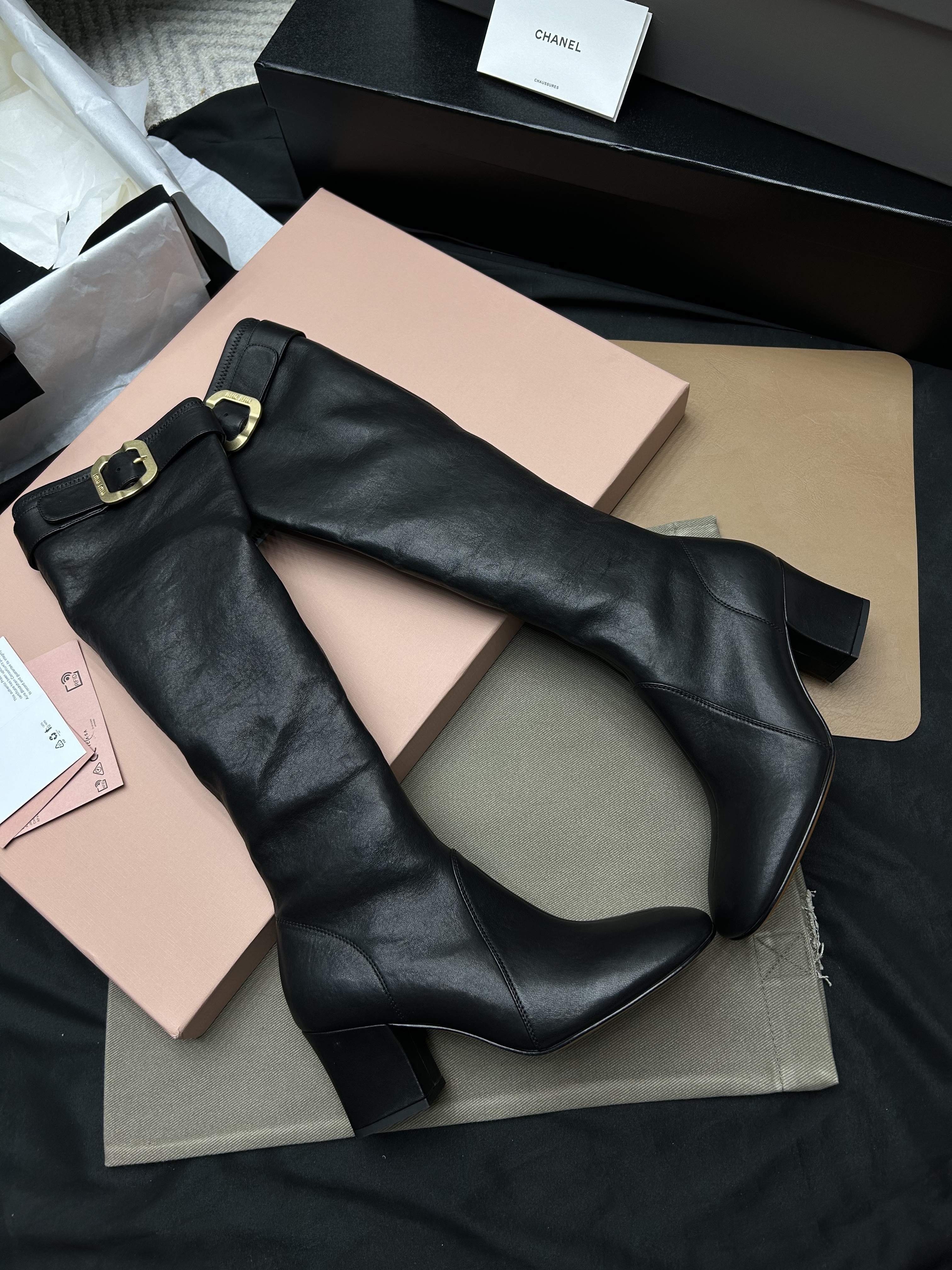 NIGO MiuMiu Women's Fall/Winter Fashion Classic Solid Color Leather Round Toe Sleeve Style Zipper Buckle Elastic Bare Leather Boots High Top Boots Shoes #nigo79238