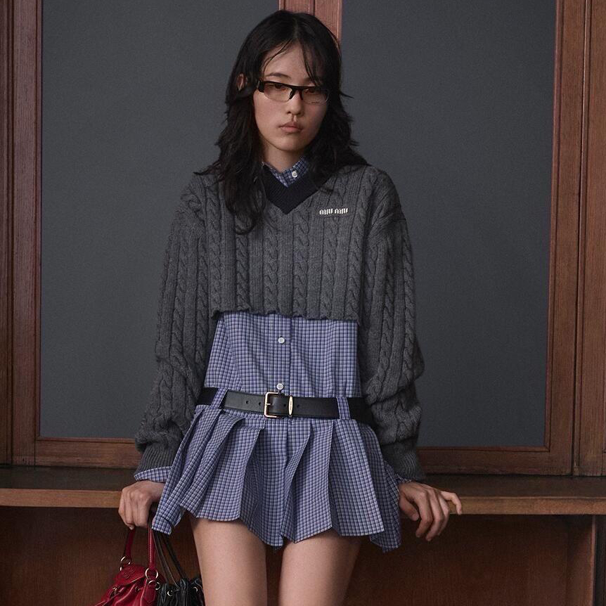 NIGO MiuMiu Women's Fall/Winter Fashion Classic V Neck Short Sleeve Long Sleeve Color Block Wool Sweater #nigo79225