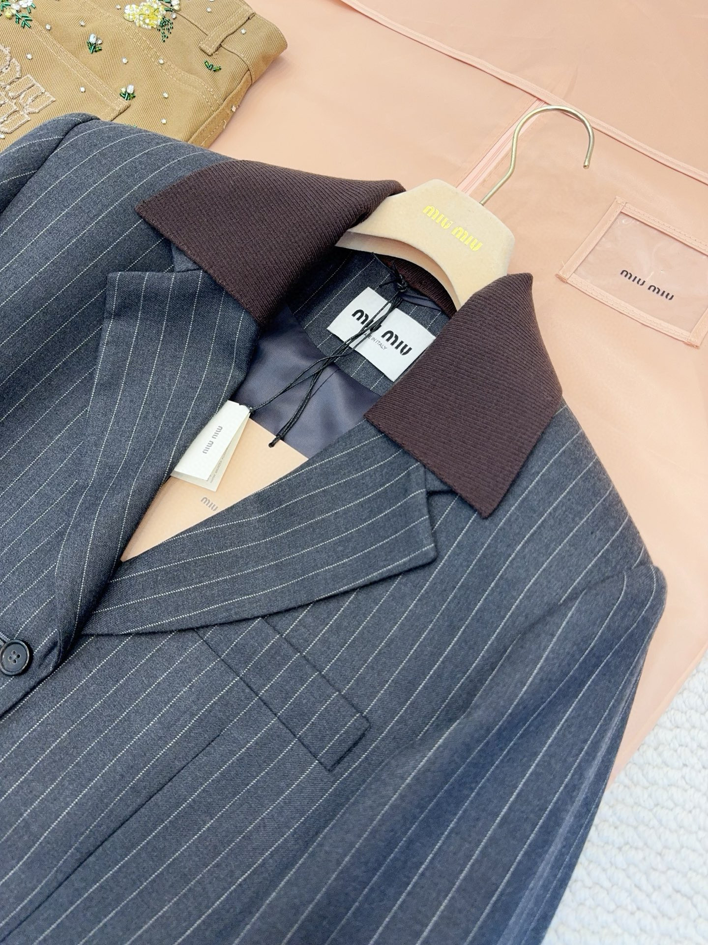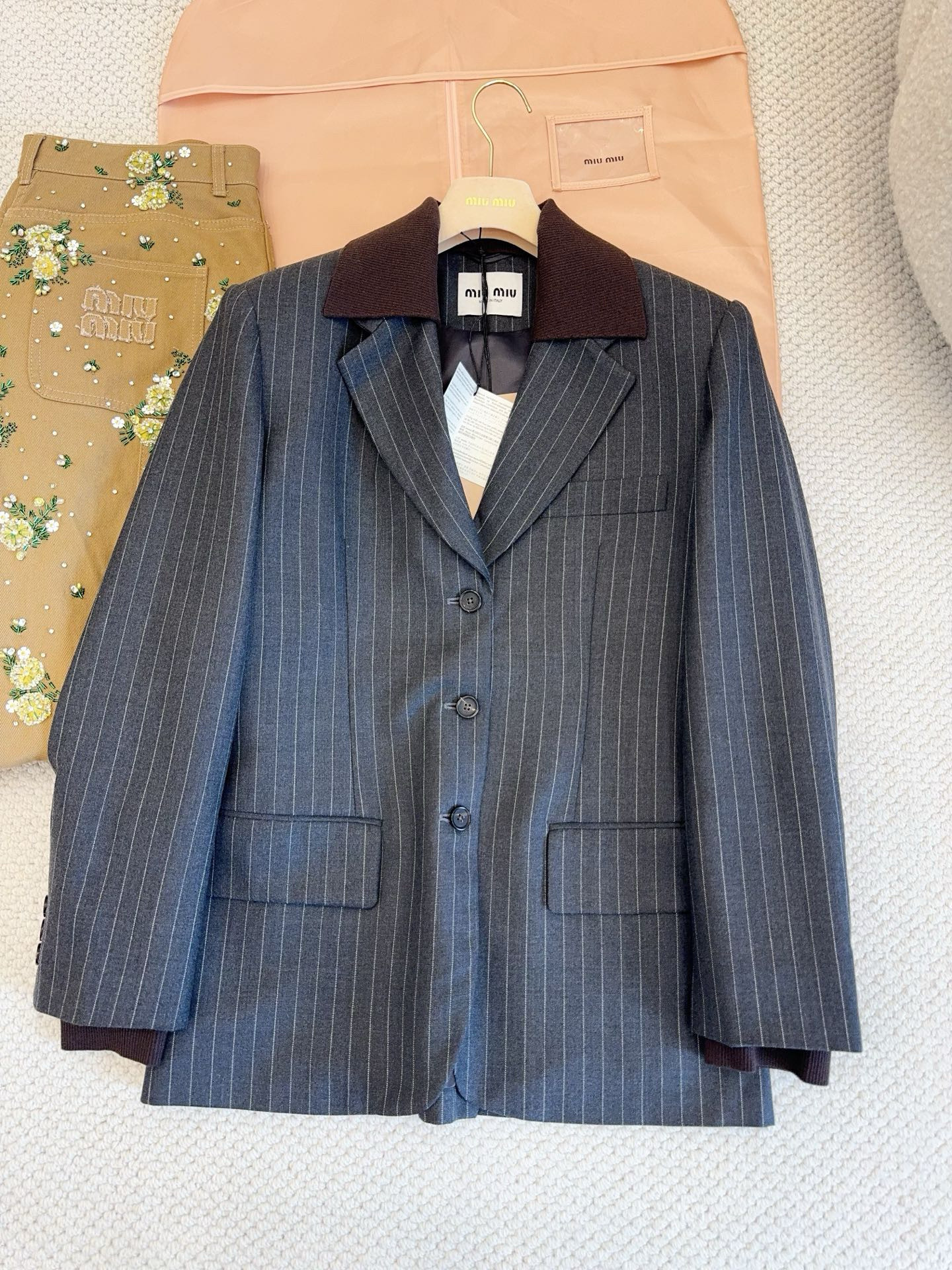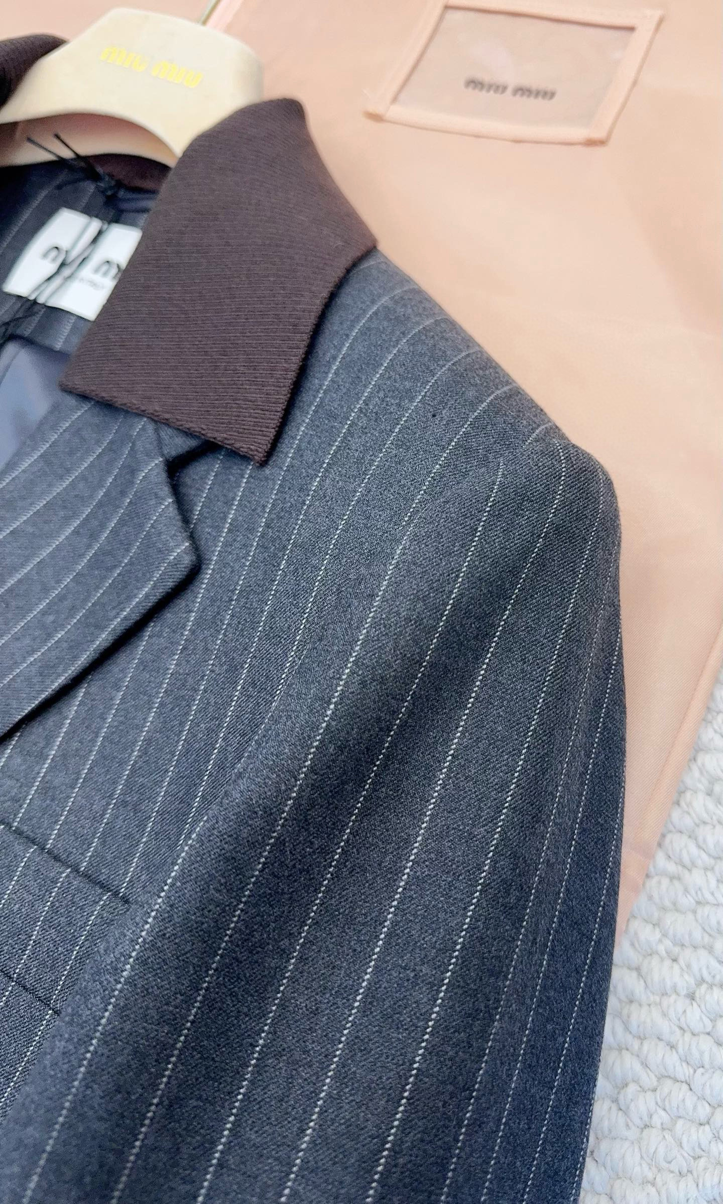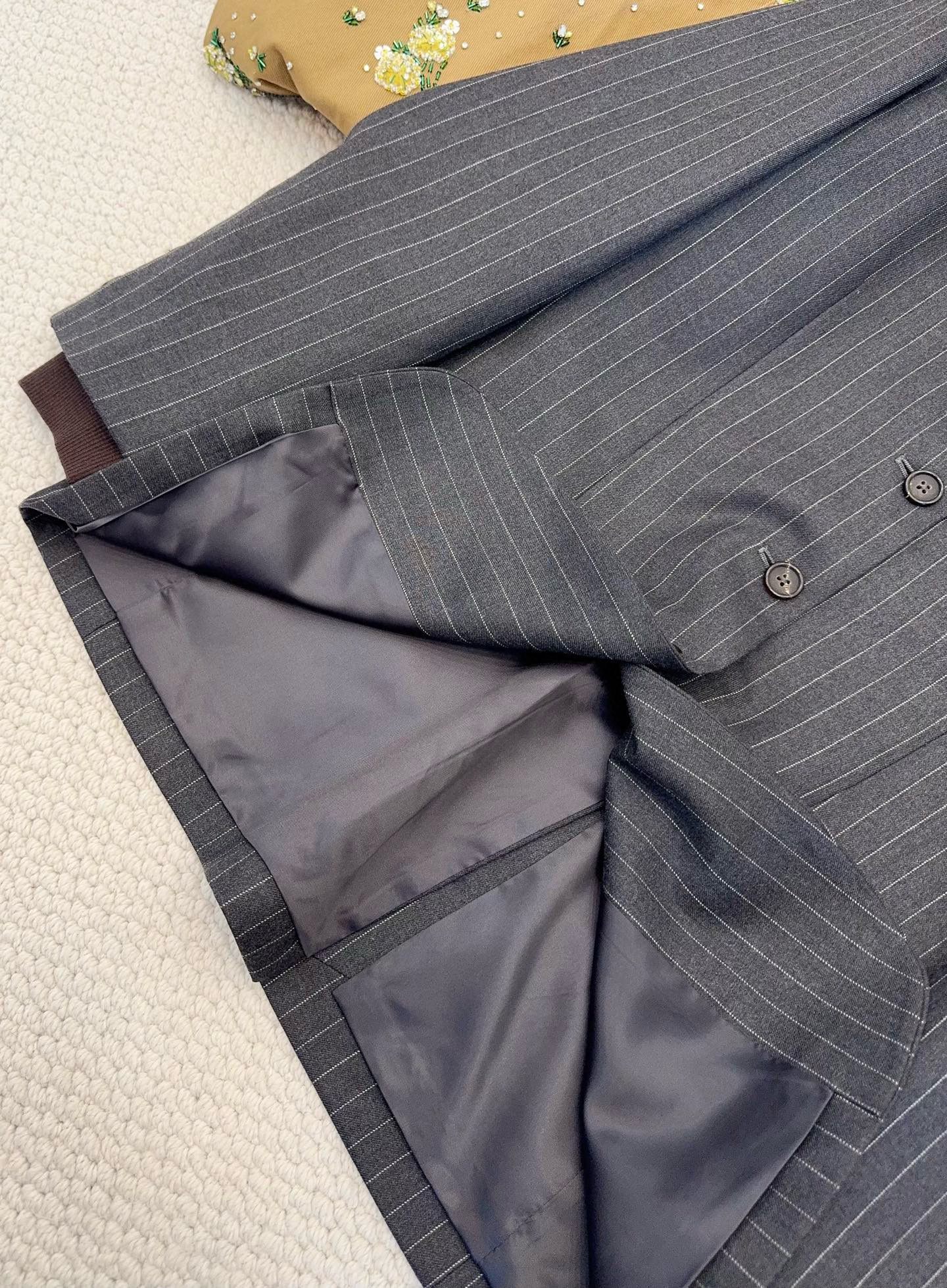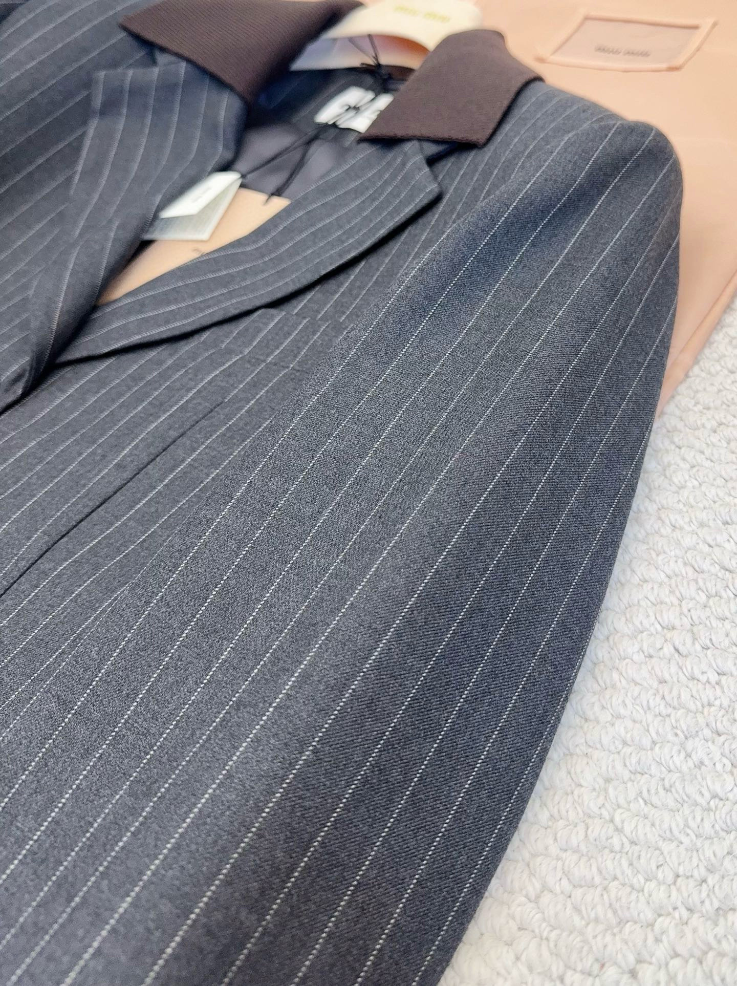 NIGO MiuMiu Women's Fall/Winter Single-Breasted Lapel Striped Solid-Color Wool Blend Long-Sleeve Blazer Jacket #nigo81747