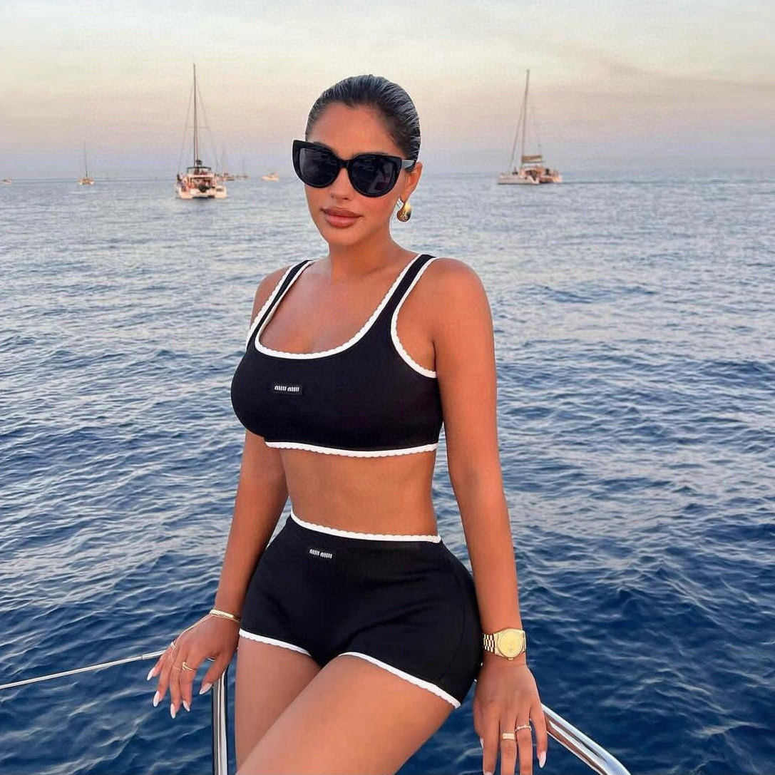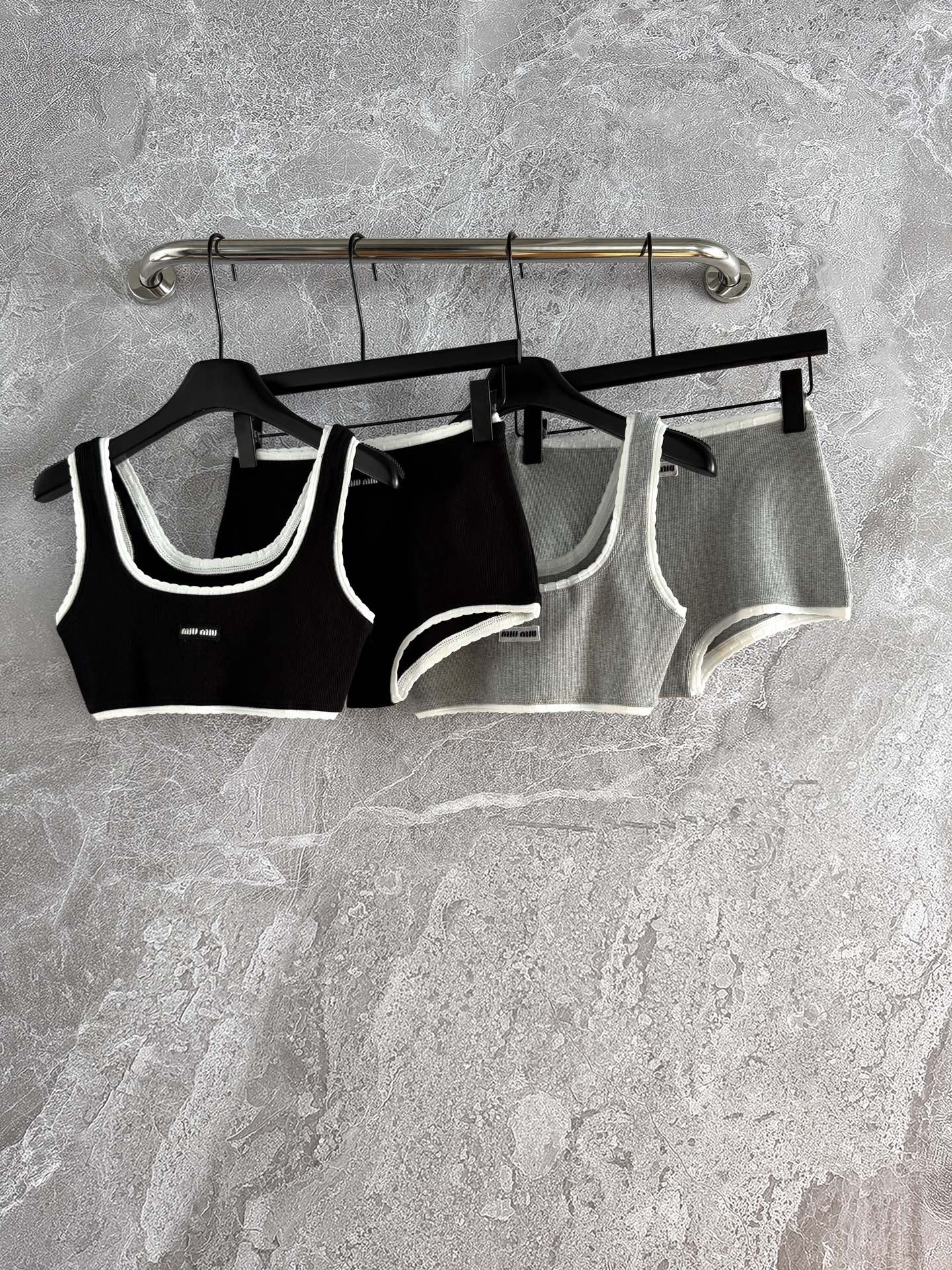 NIGO MiuMiu Women's Fashion Casual Solid Color Letter Logo Sports Bra Ribbed Cotton Panty Suit Set #nigo78648