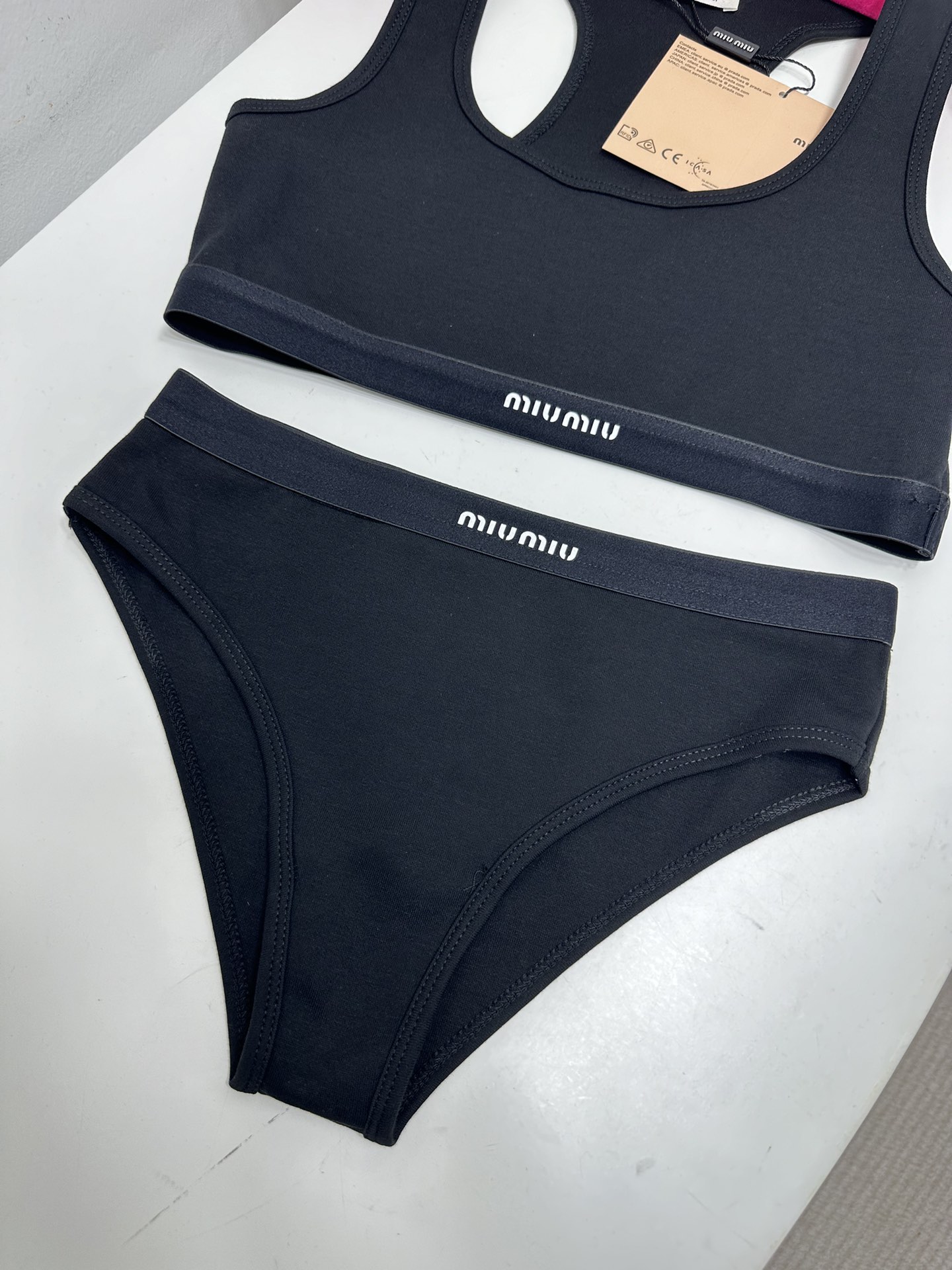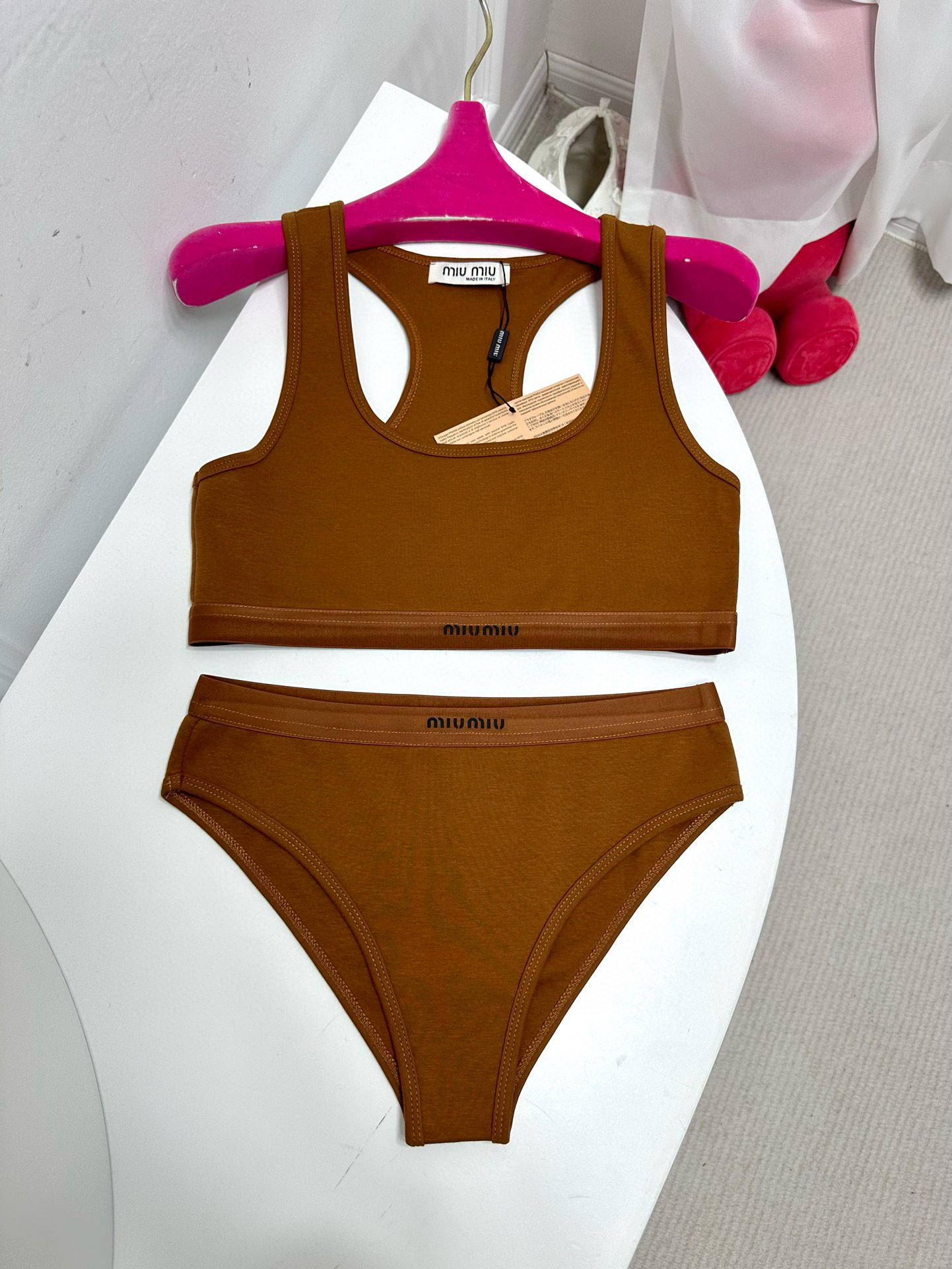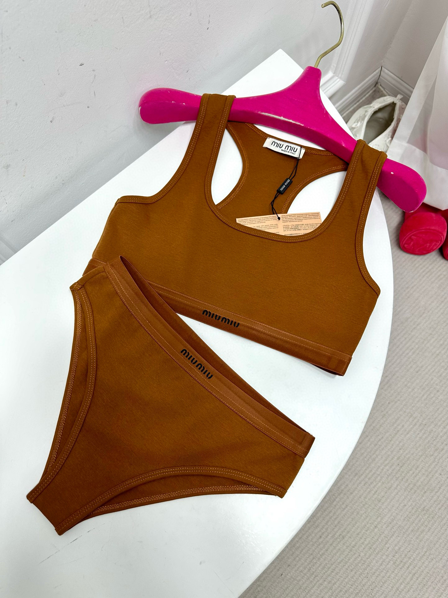 NIGO MiuMiu Women's Logo Jacquard Knit Sports Tank Top Cotton Solid Color Triangle Panty Set Suit #nigo81189