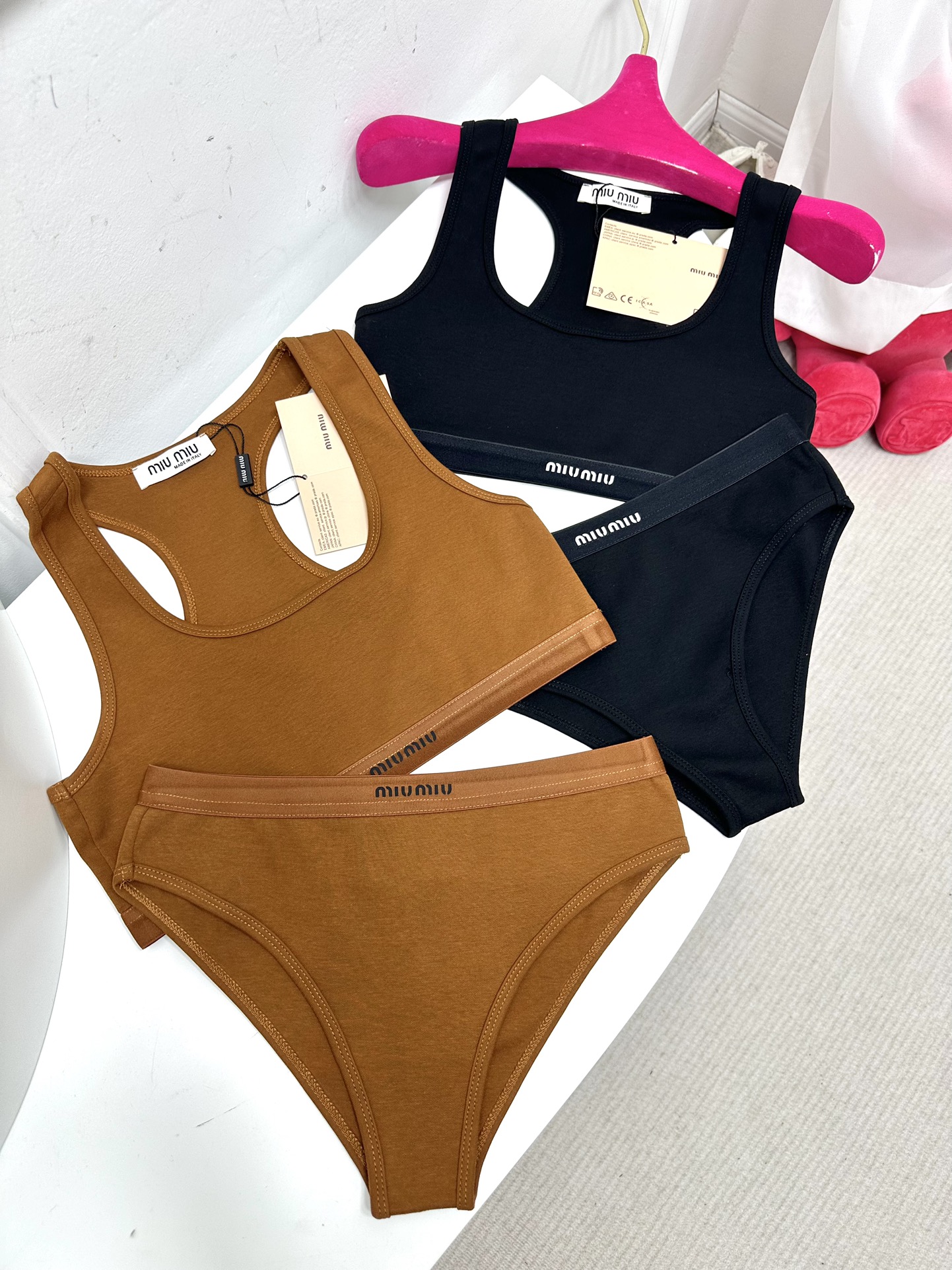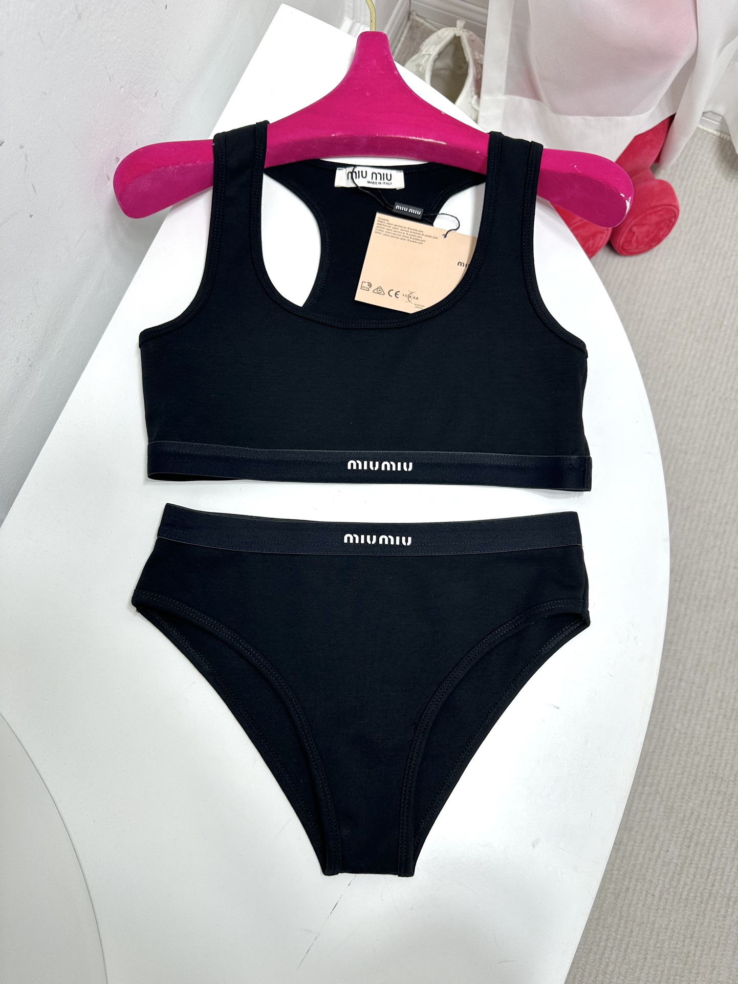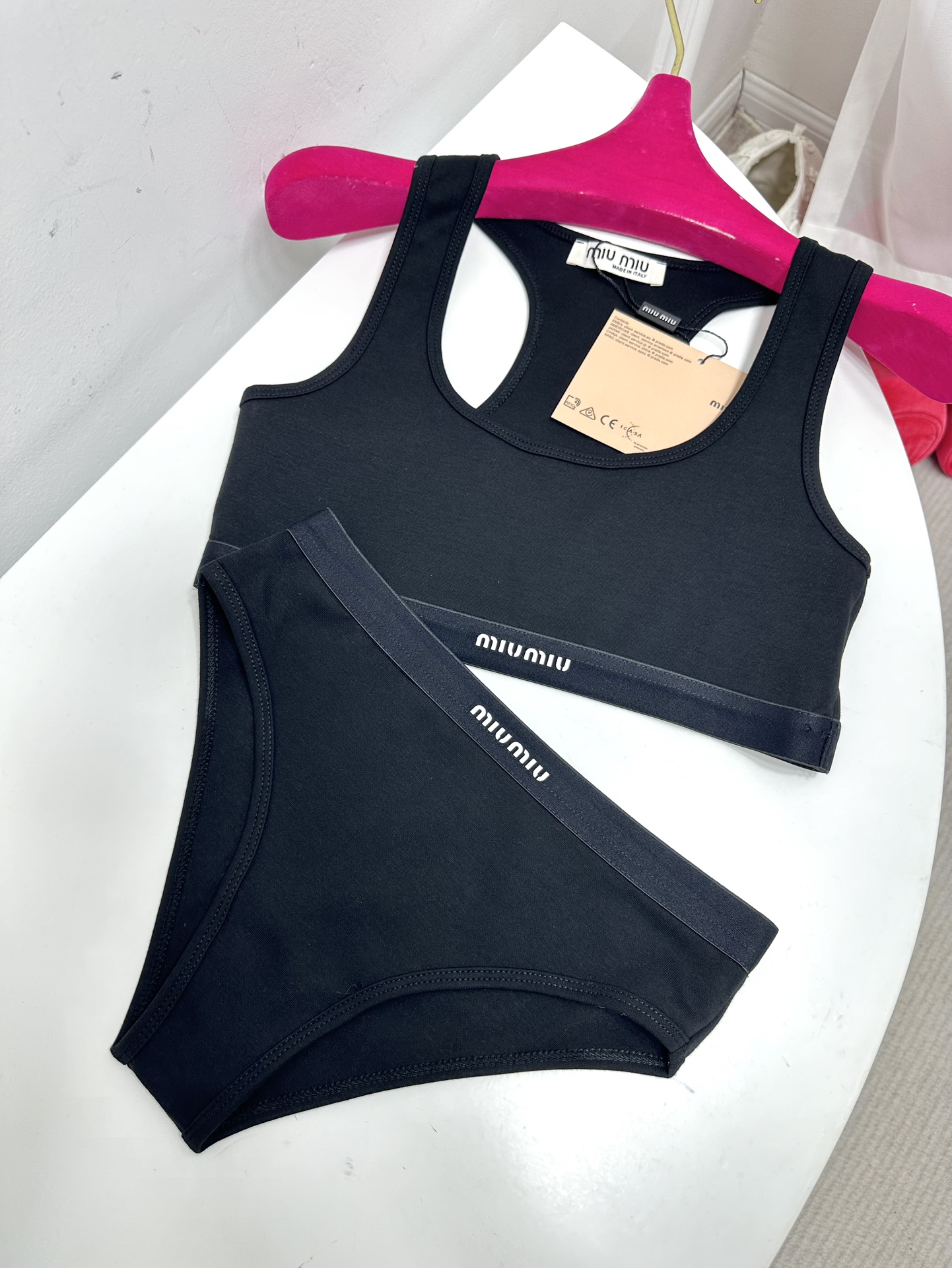 NIGO MiuMiu Women's Logo Jacquard Knit Sports Tank Top Cotton Solid Color Triangle Panty Set Suit #nigo81189