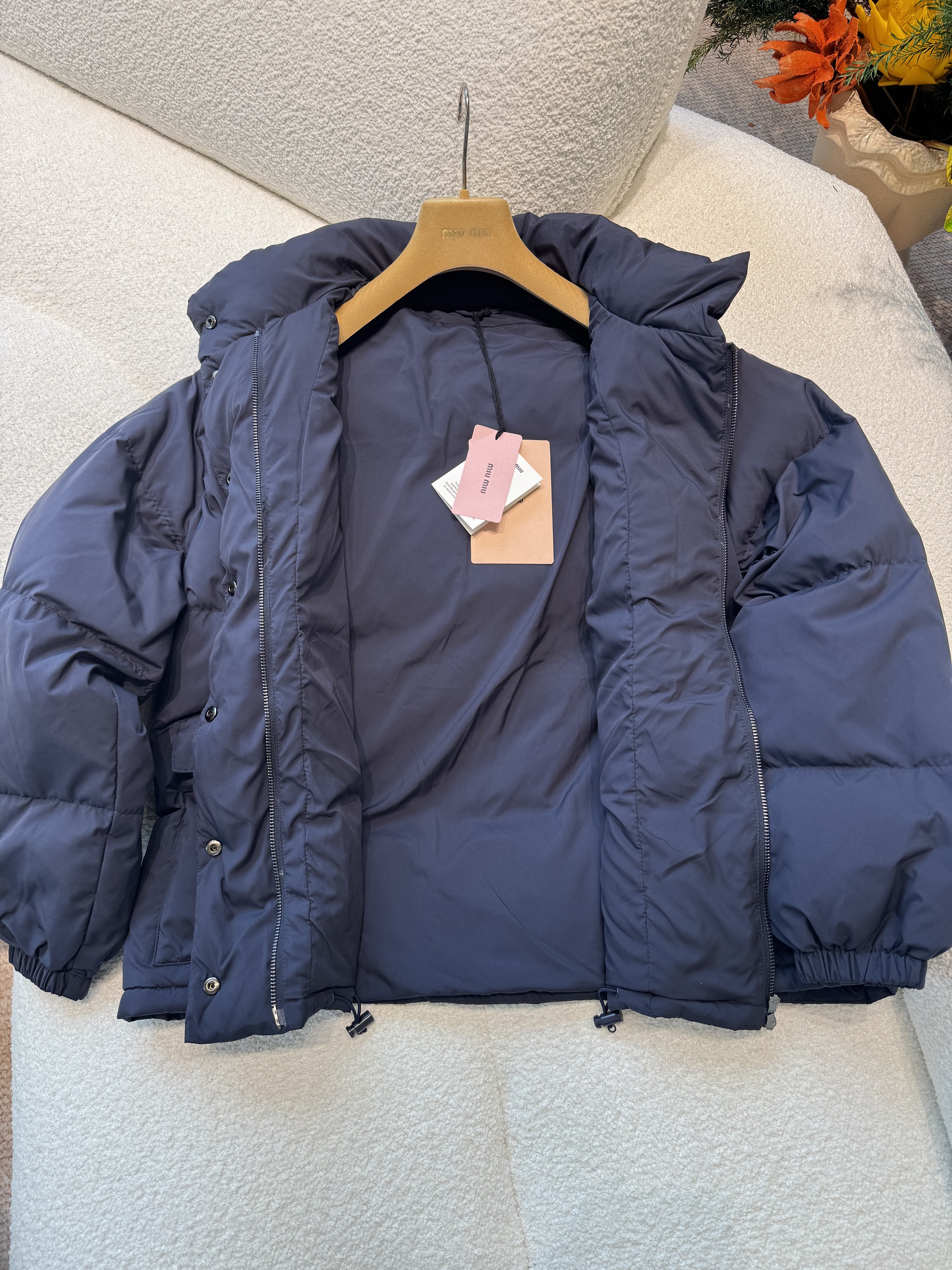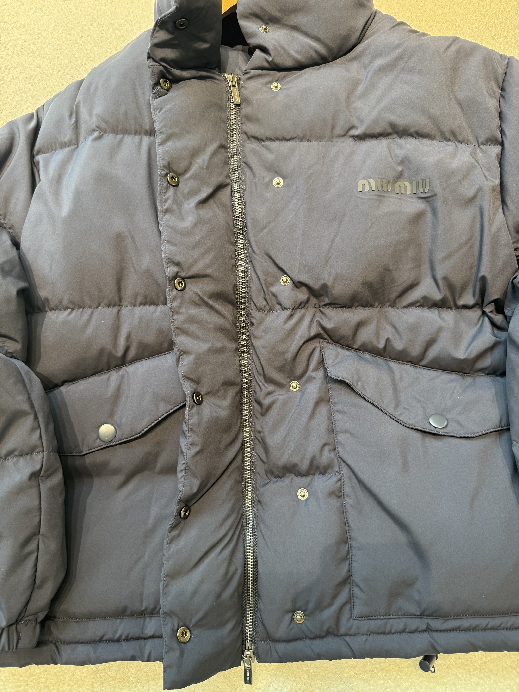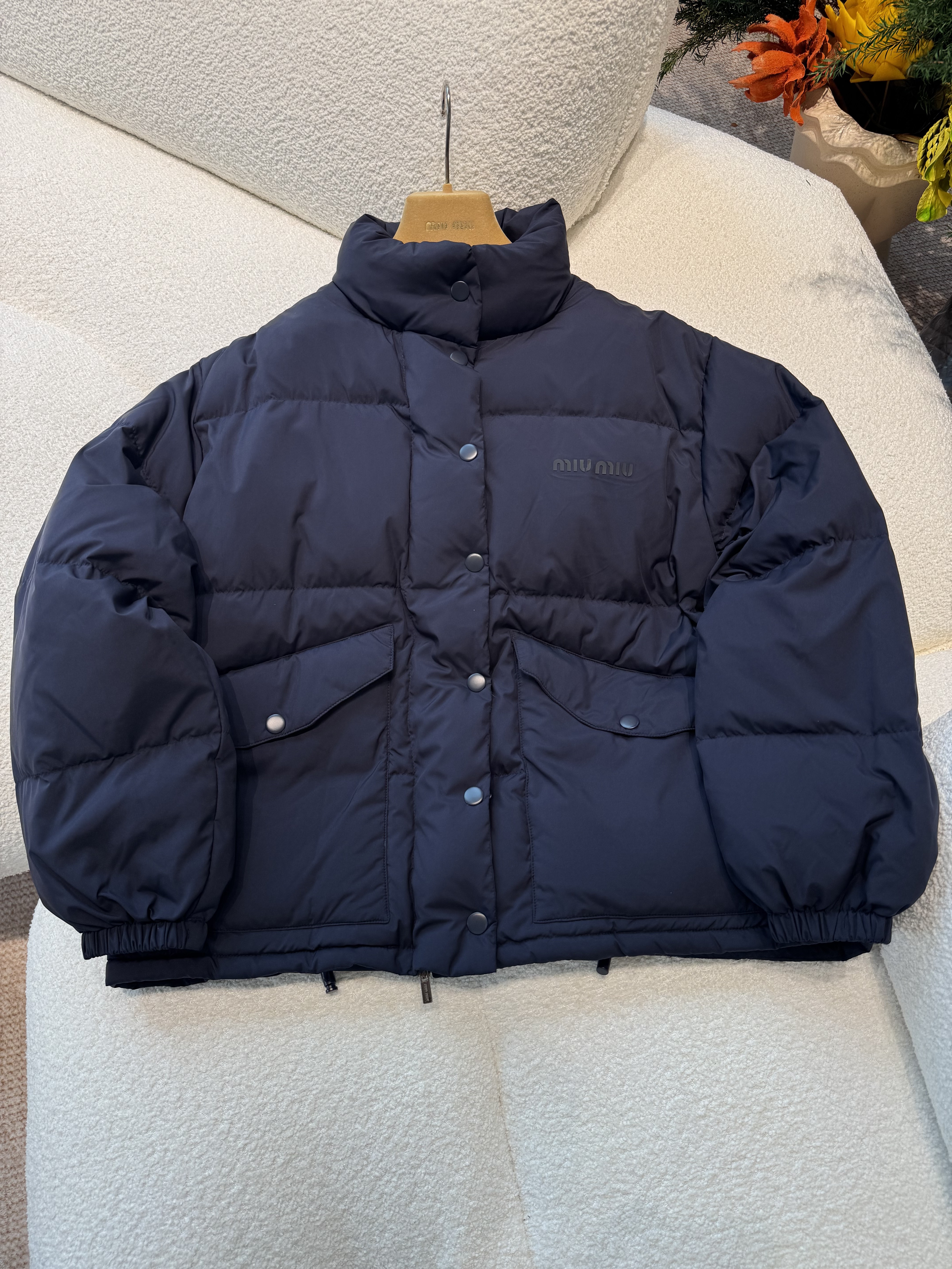 NIGO MiuMiu Women's Logo-Print Stand Collar Goose Down Jacket Autumn/Winter Solid Color Long Sleeve Jacket #nigo81741
