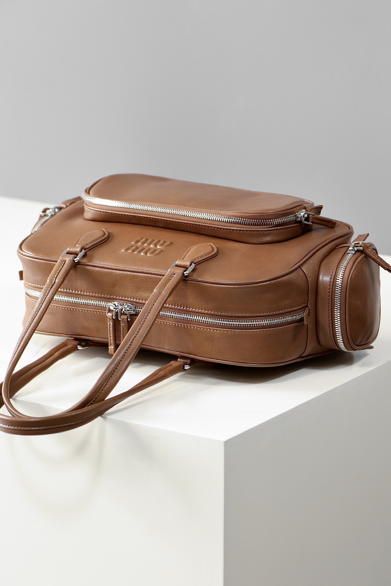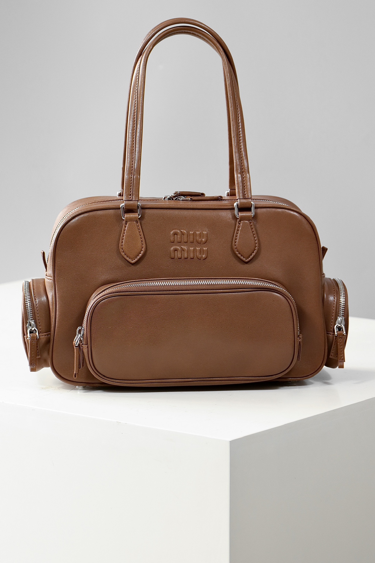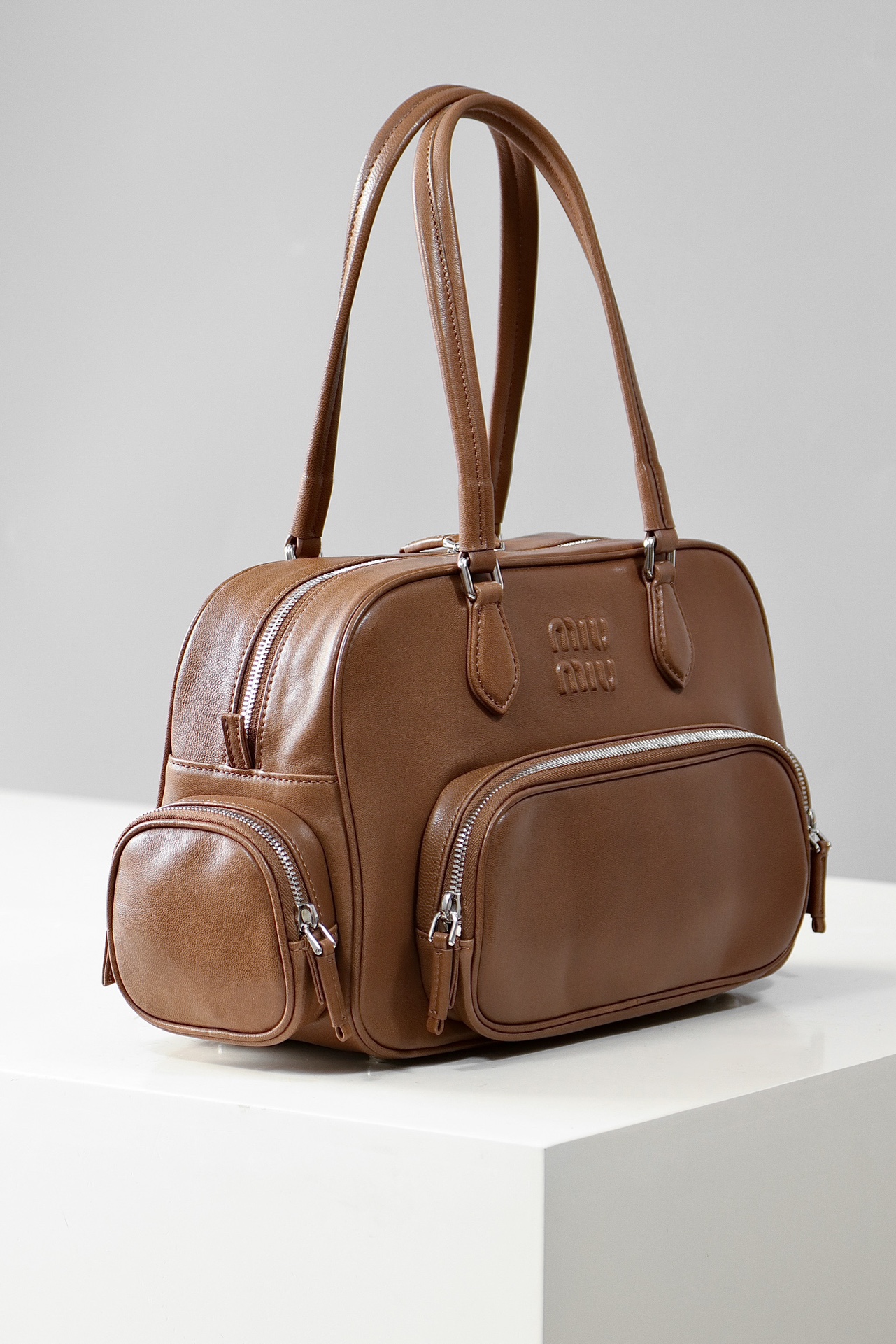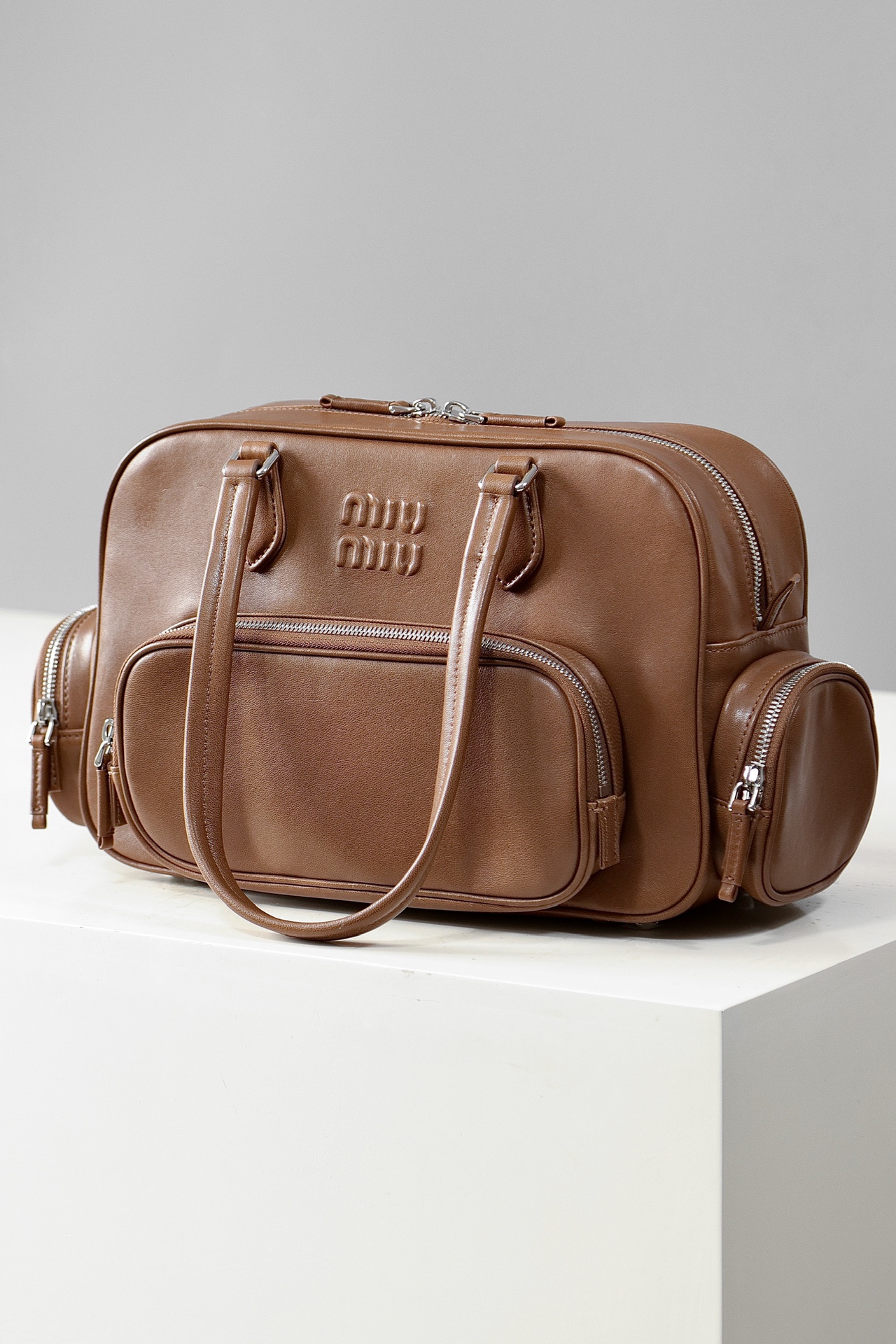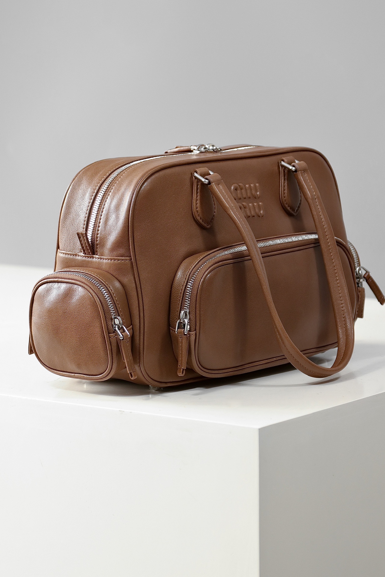 NIGO MiuMiu Women's Solid Color Embossed Engraved Logo Zipper Closure Napa Leather Shoulder Handbag Bag Bags #nigo74329