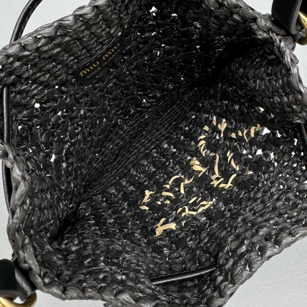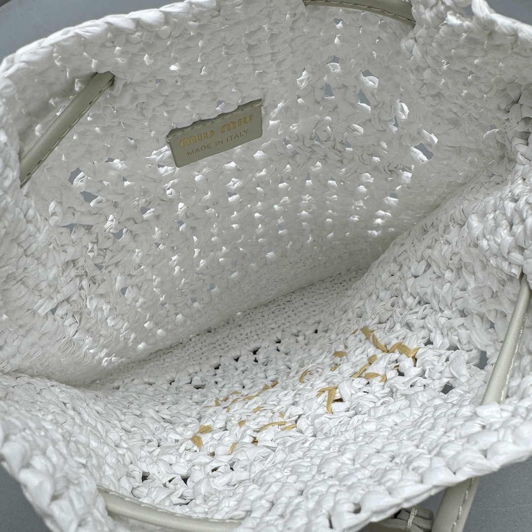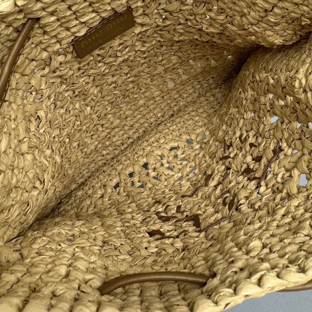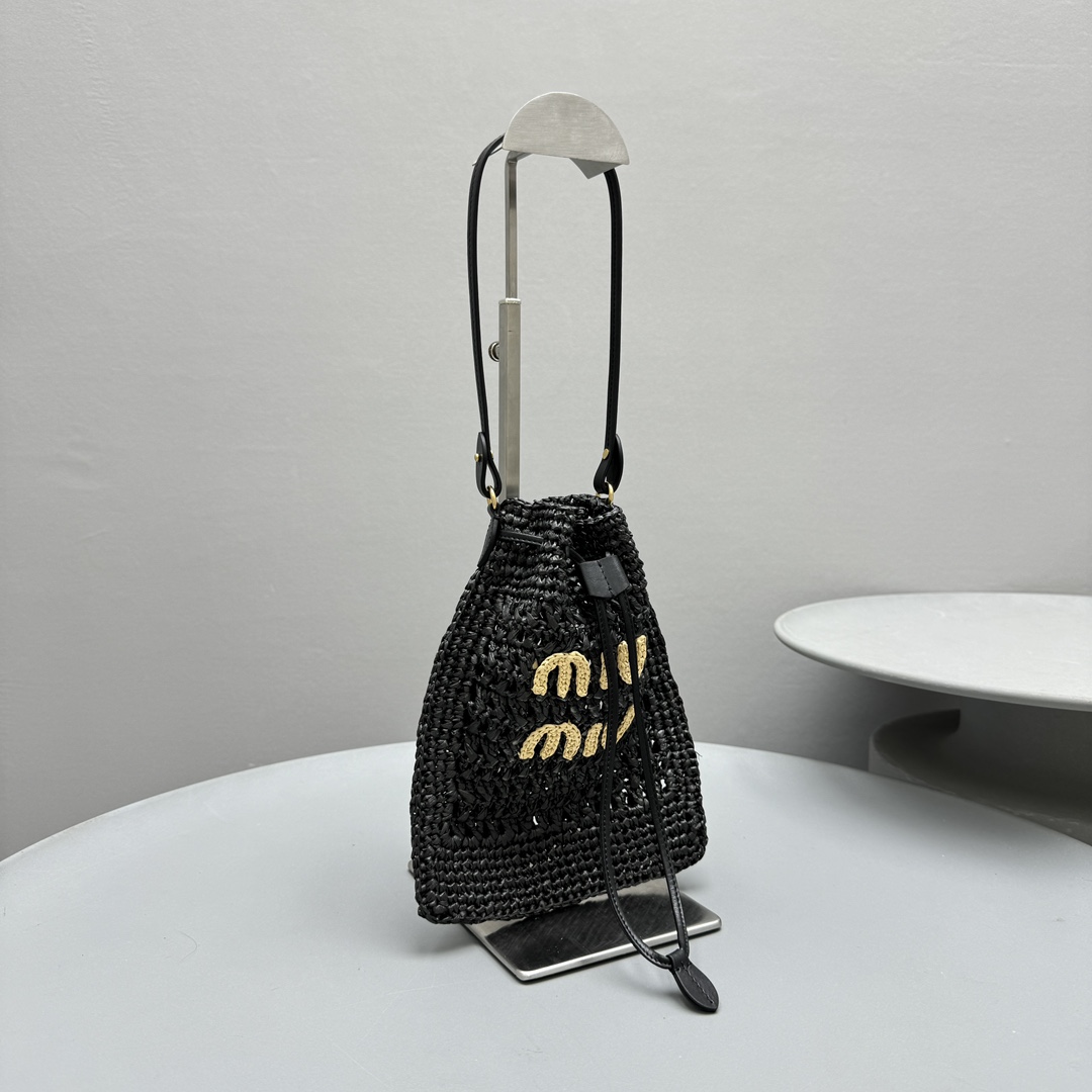 NIGO MiuMiu Women‘s Solid Color Embroidered Letter Logo Drawstring Closure Raffia Patch Leather Tote Shoulder Bag Bags #nigo99777