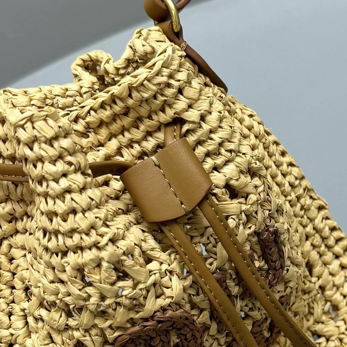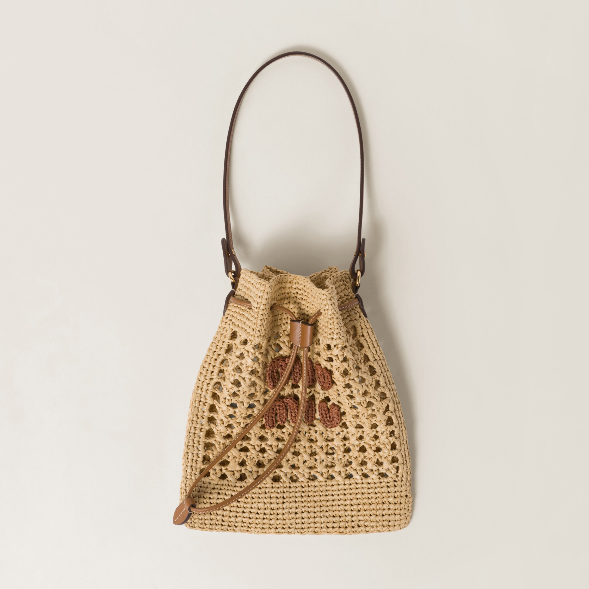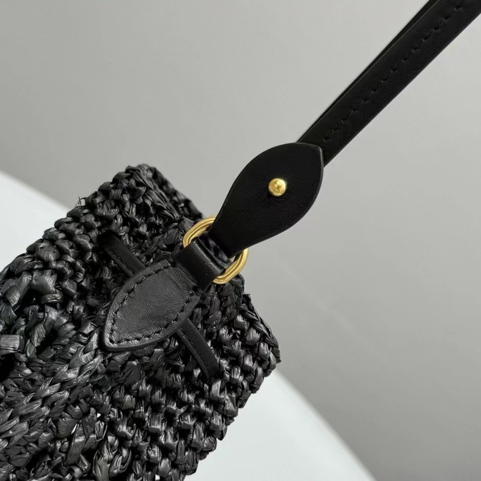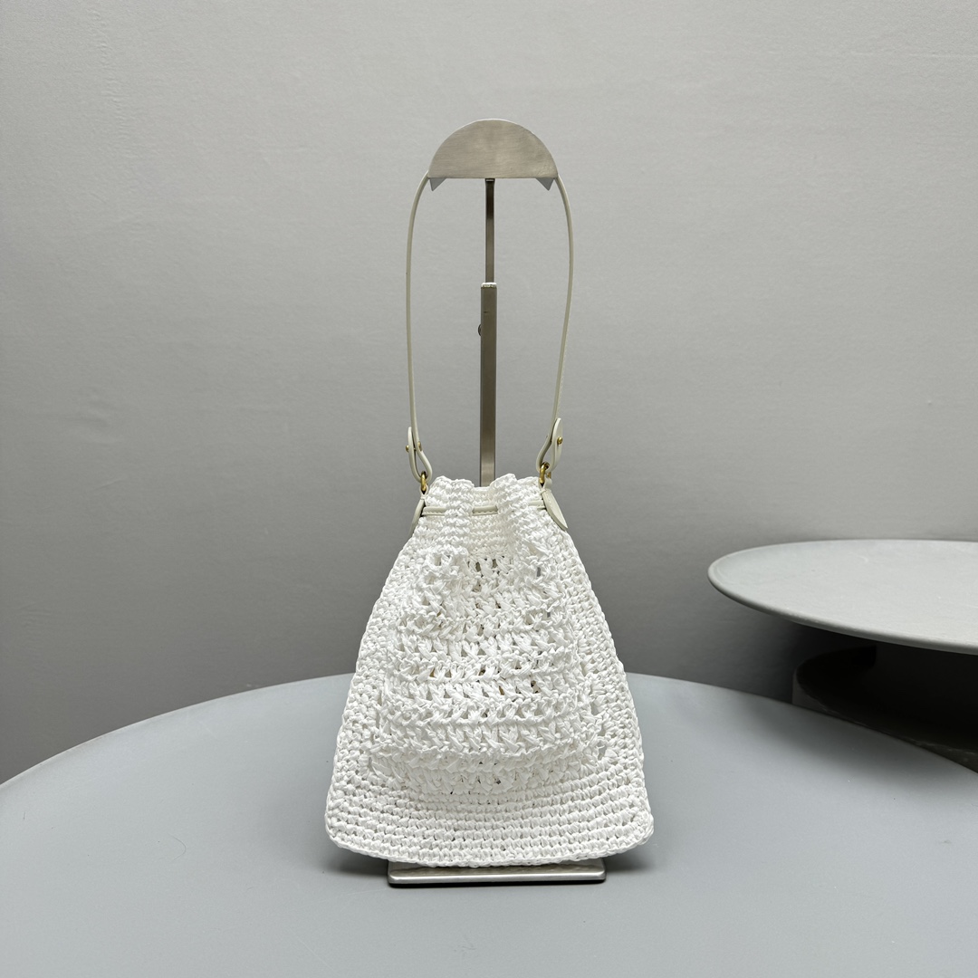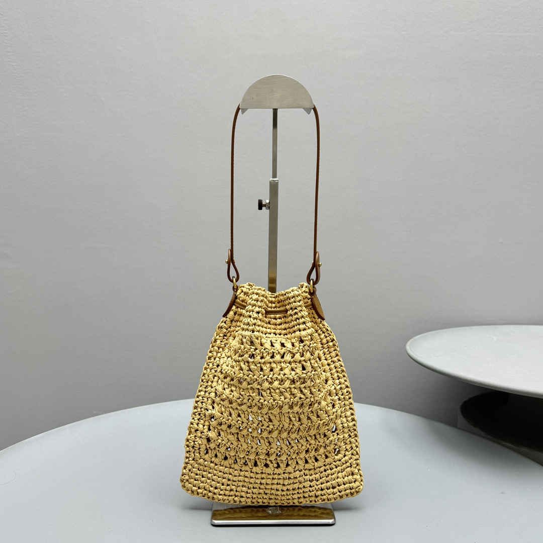 NIGO MiuMiu Women‘s Solid Color Embroidered Letter Logo Drawstring Closure Raffia Patch Leather Tote Shoulder Bag Bags #nigo99777