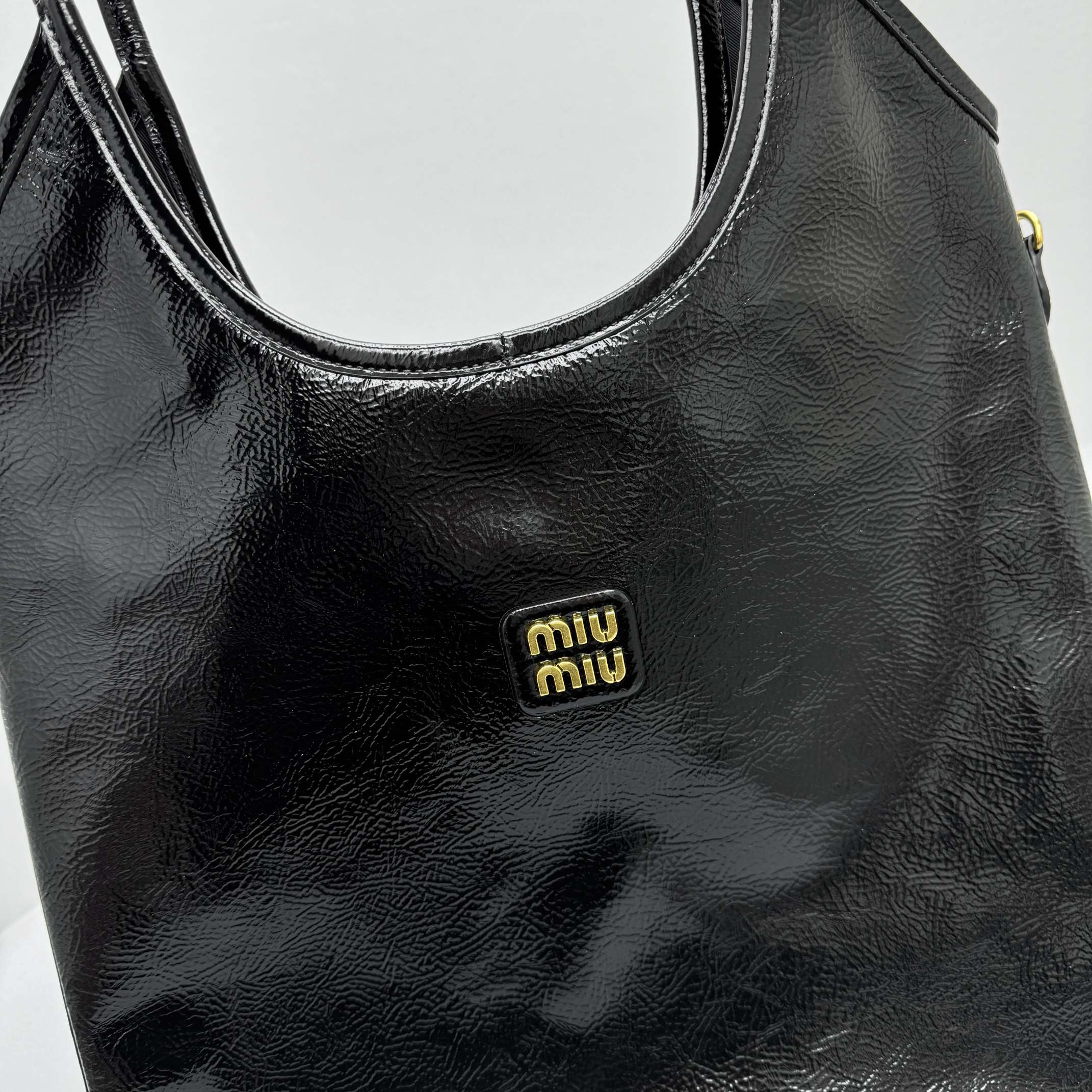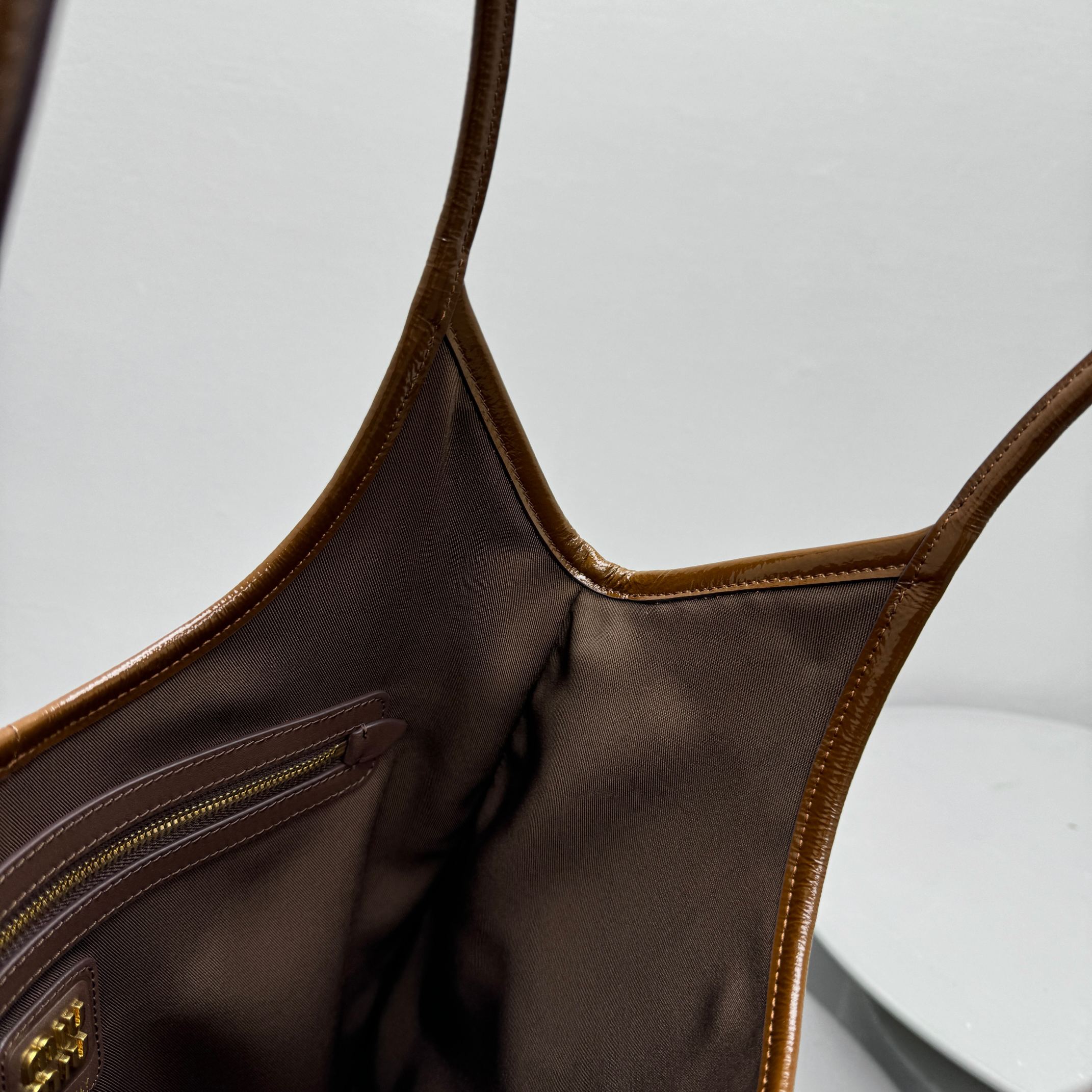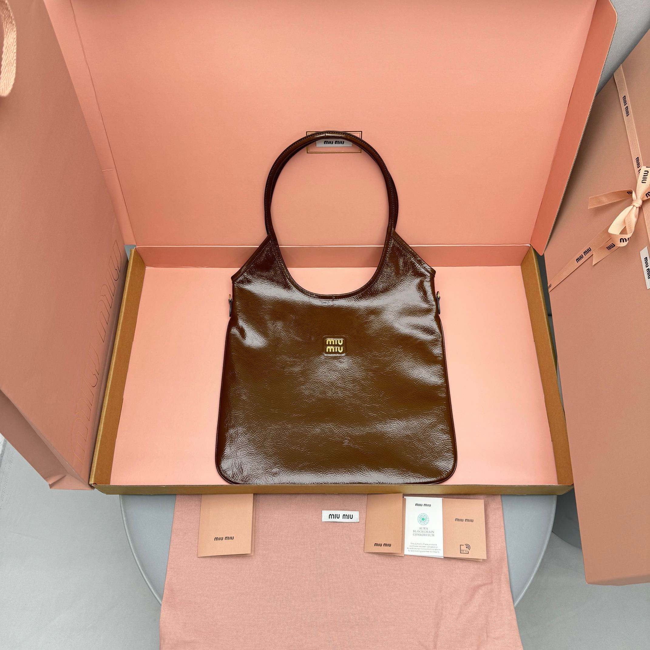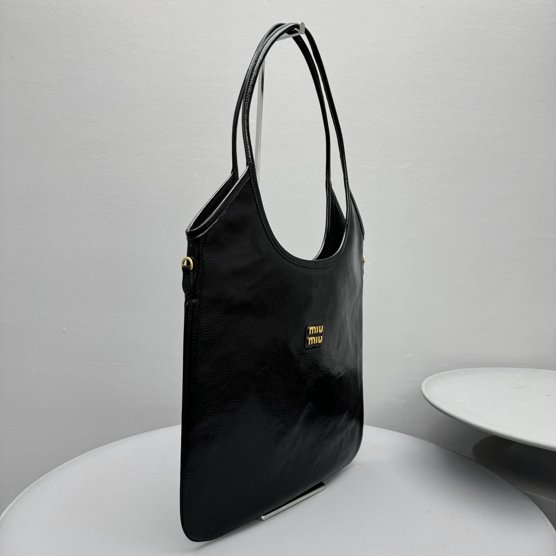 NIGO MiuMiu Women's Solid Color Engraved Logo Suede Fabric and Patent Leather Shopping Bag Shoulder Tote Bags #nigo74851