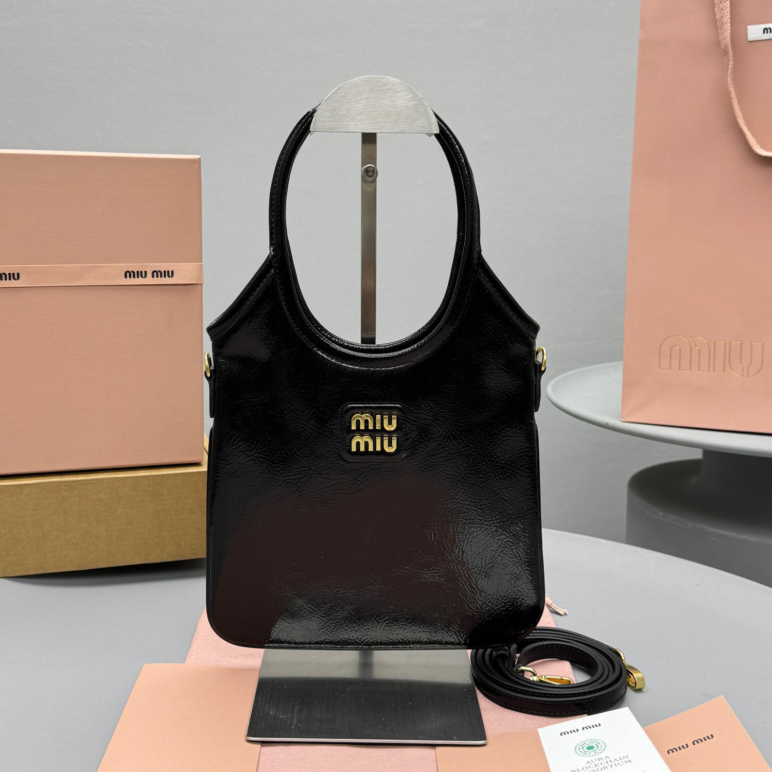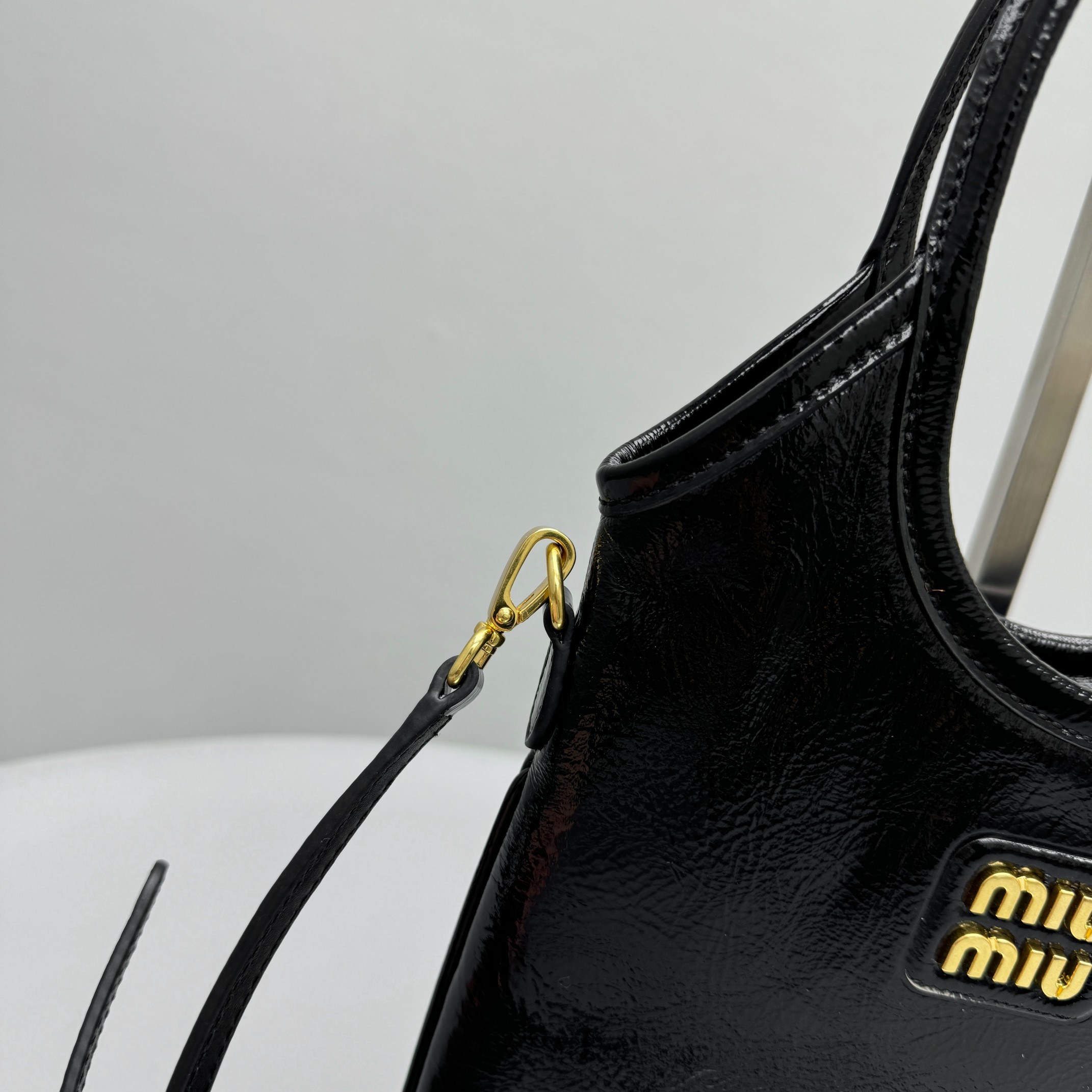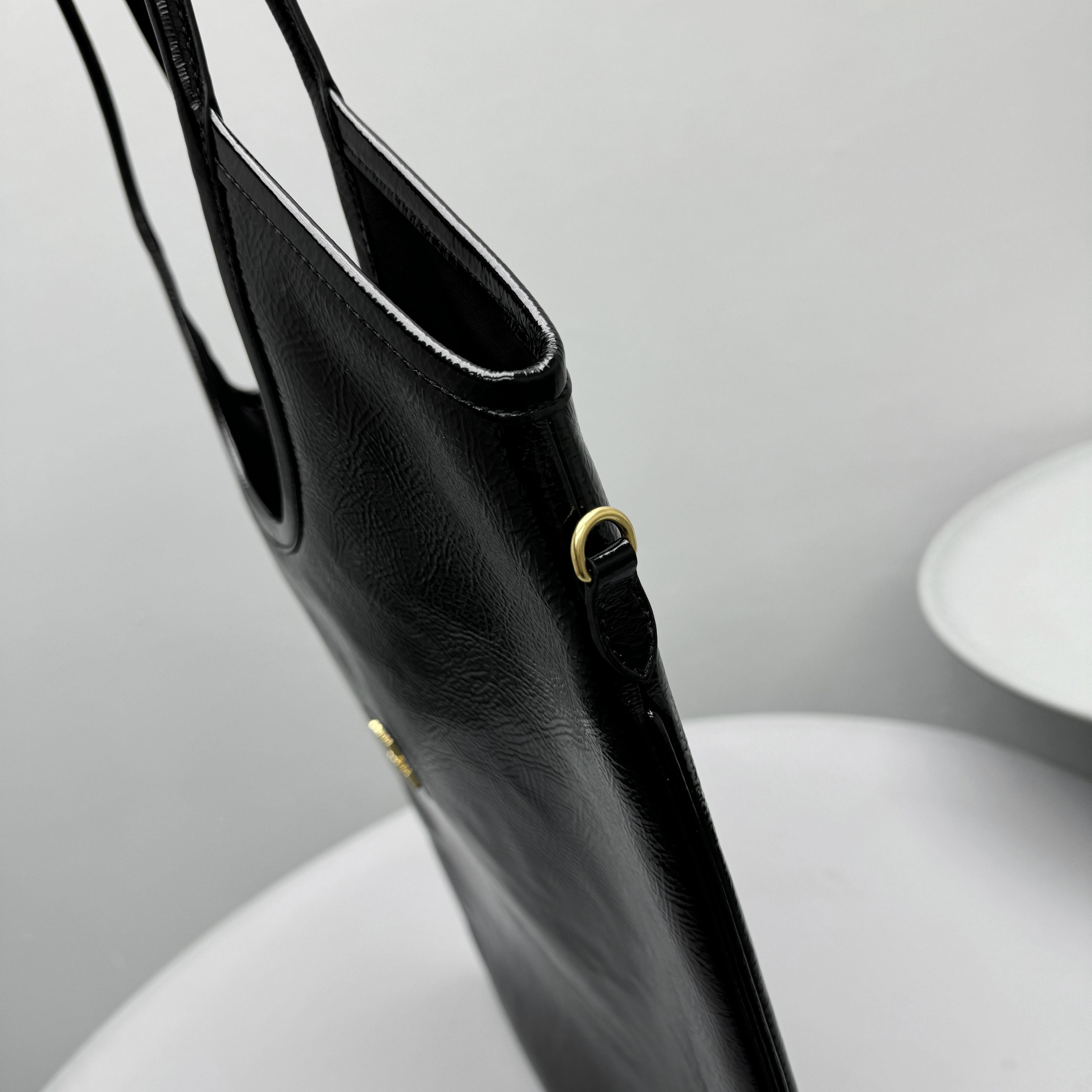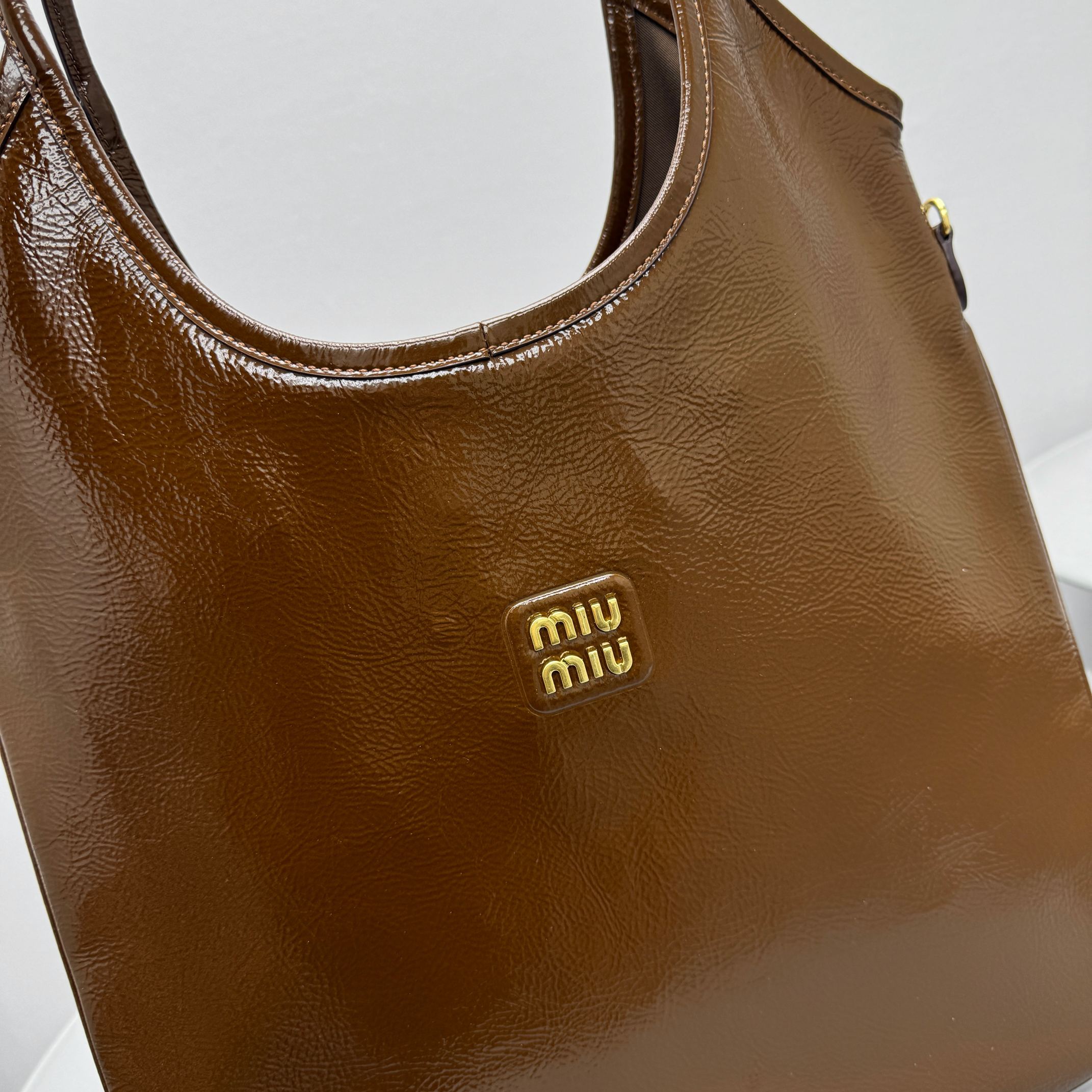 NIGO MiuMiu Women's Solid Color Engraved Logo Suede Fabric and Patent Leather Shopping Bag Shoulder Tote Bags #nigo74851