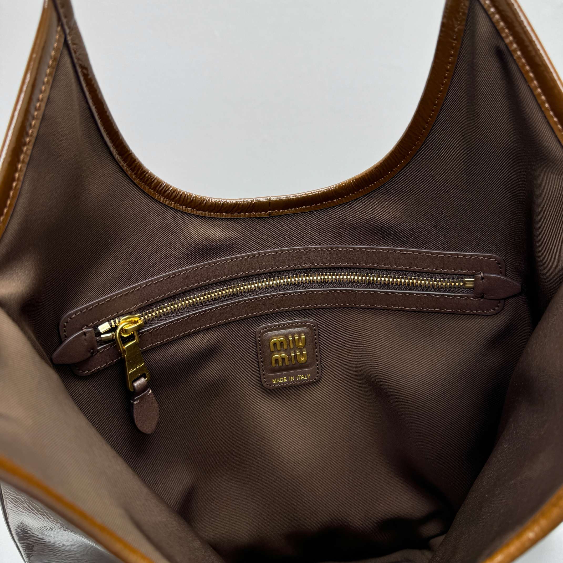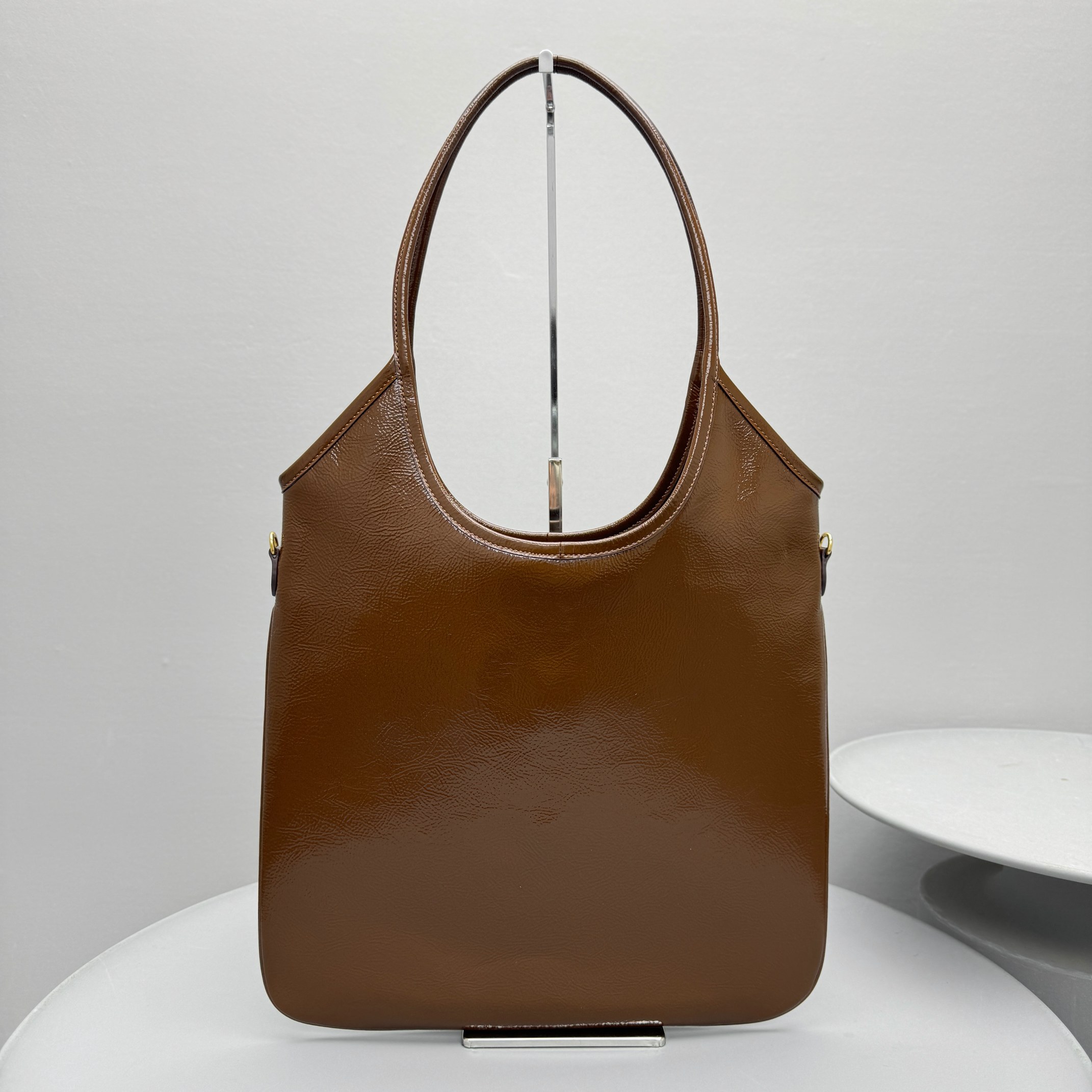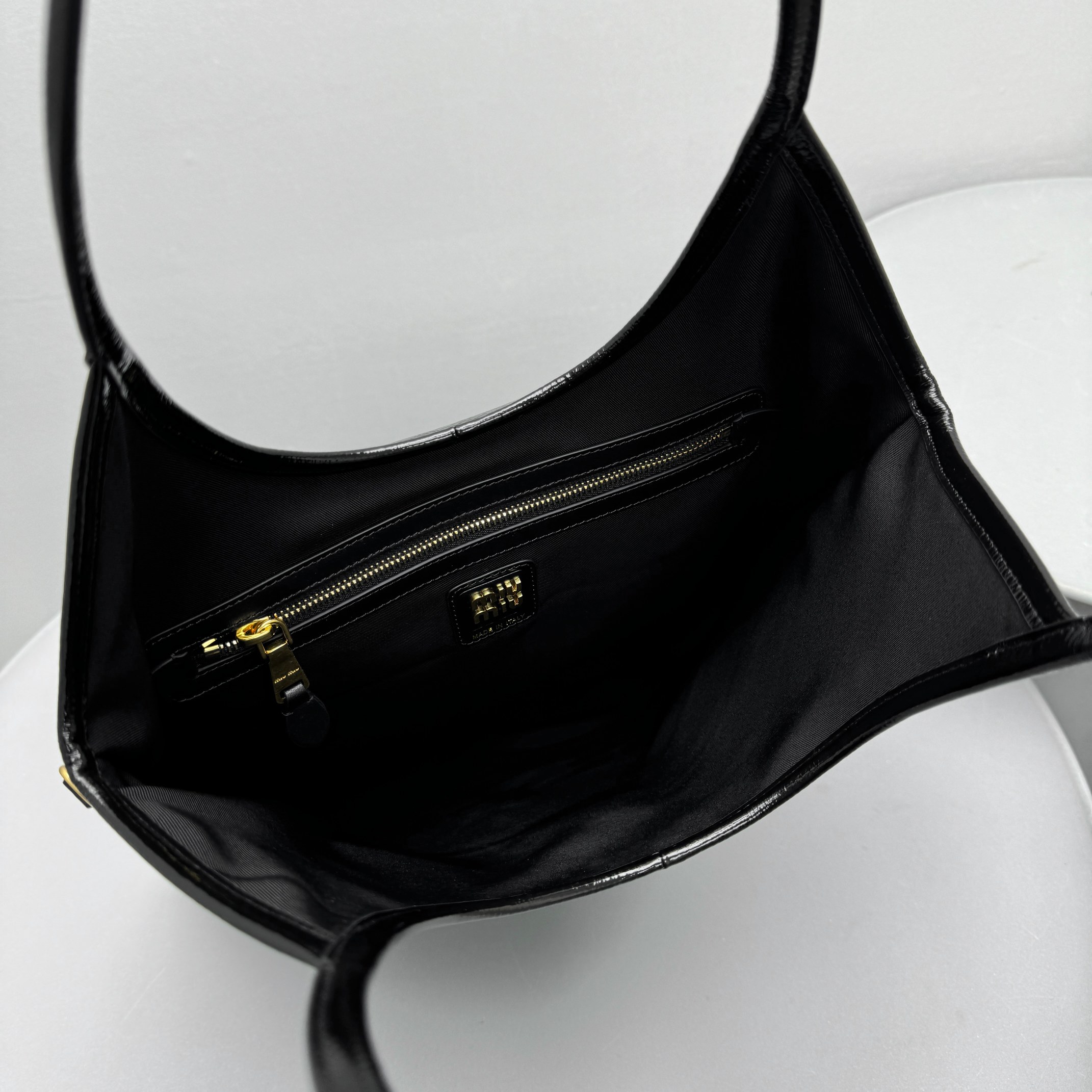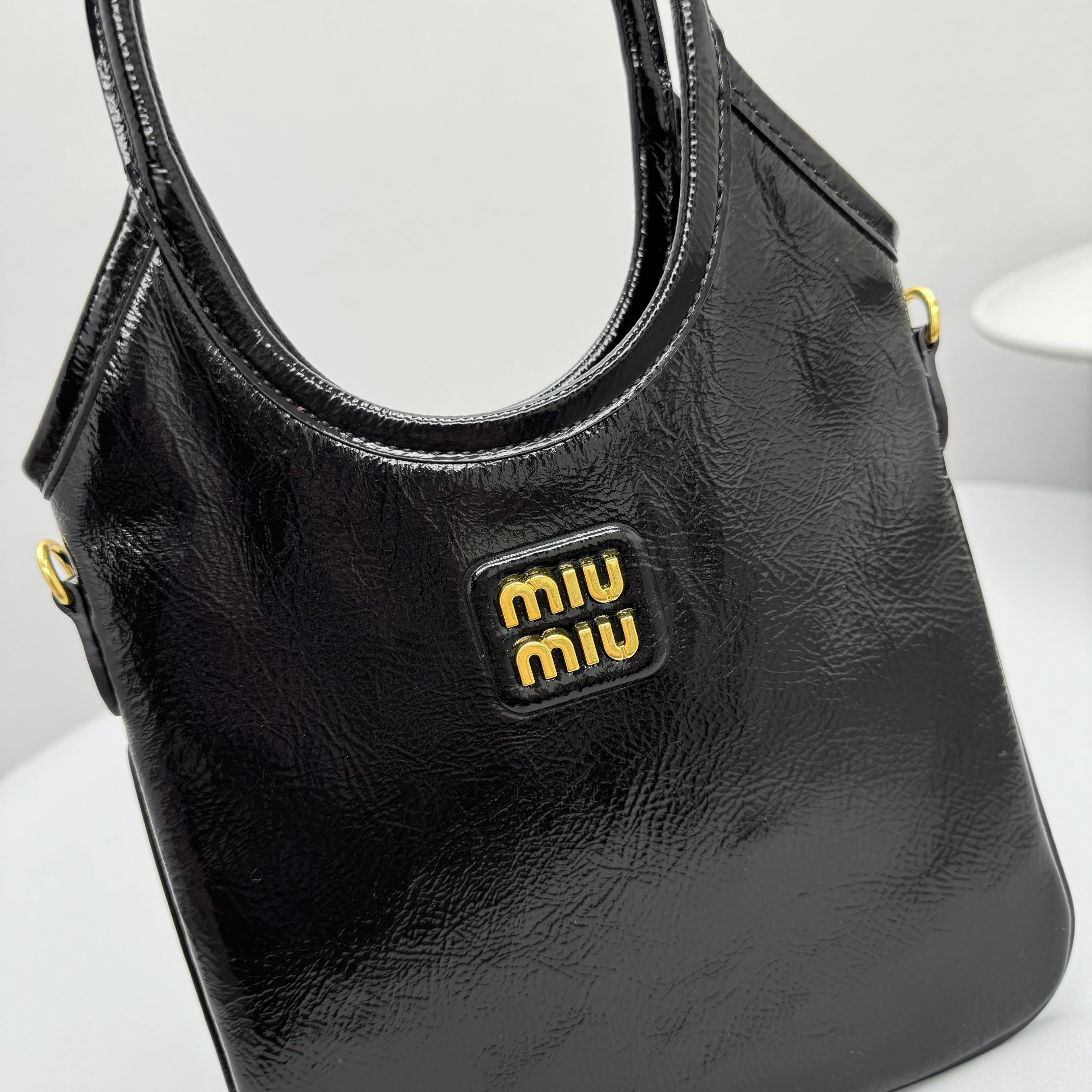 NIGO MiuMiu Women's Solid Color Engraved Logo Suede Fabric and Patent Leather Shopping Bag Shoulder Tote Bags #nigo74851