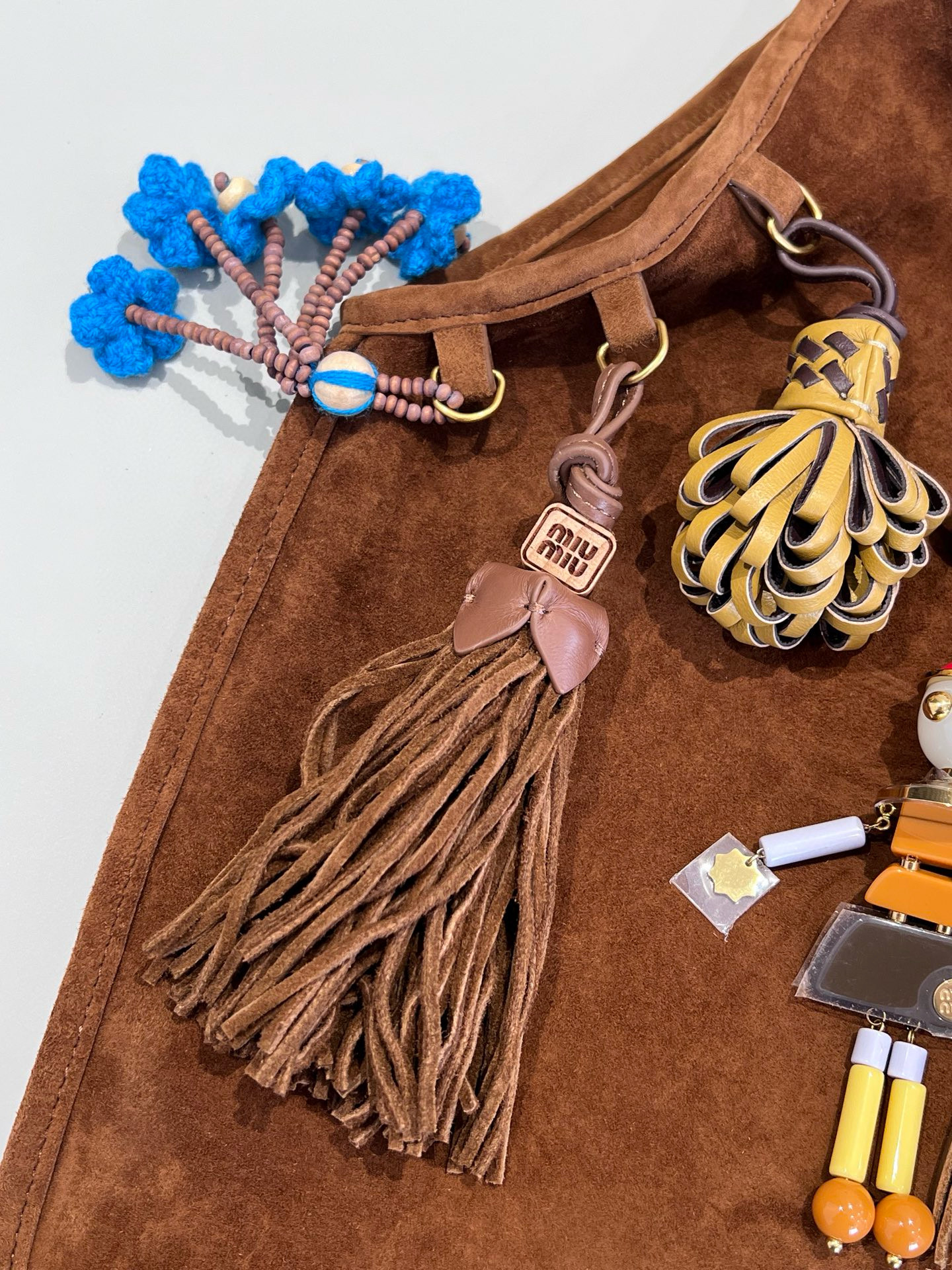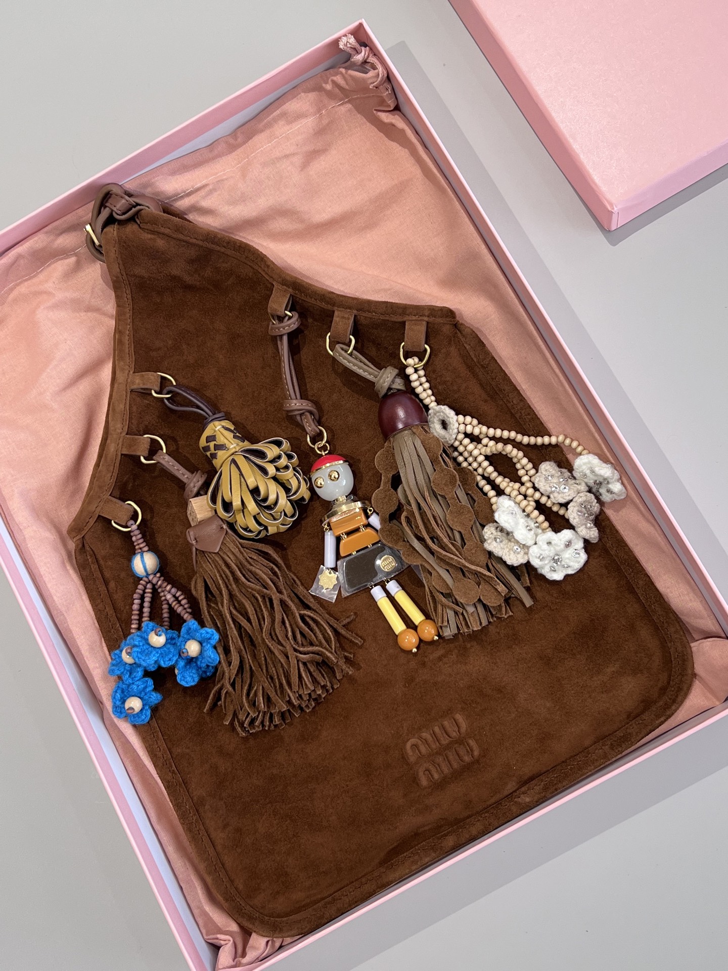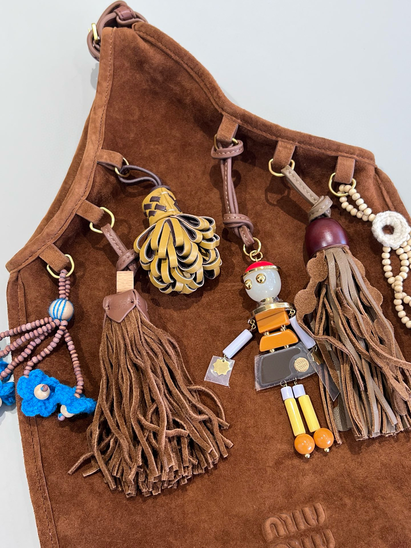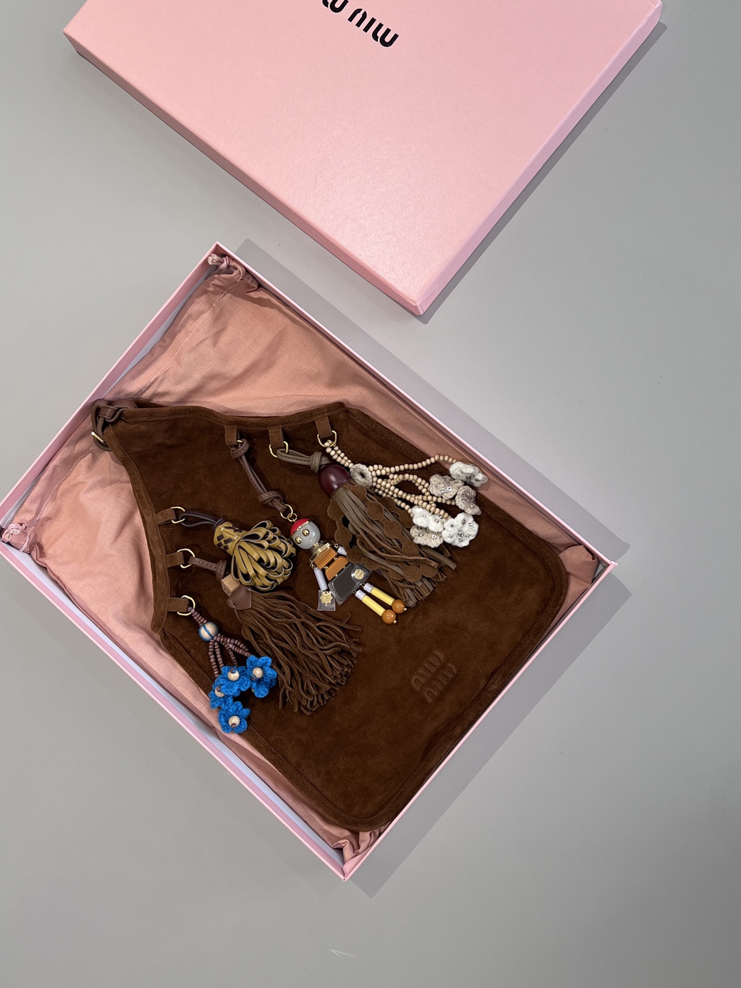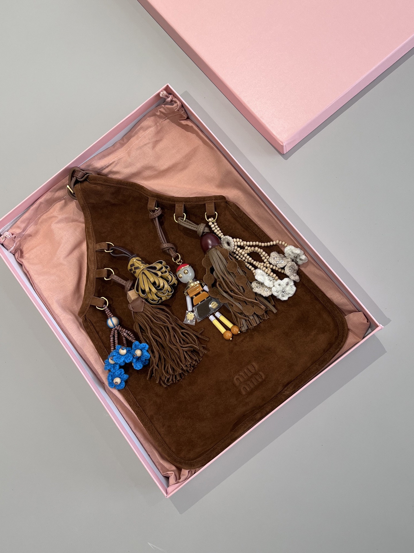 NIGO MiuMiu Women's Solid Color Hanging Decoration Suede Leather Large Handbag Bag Bags #nigo77613