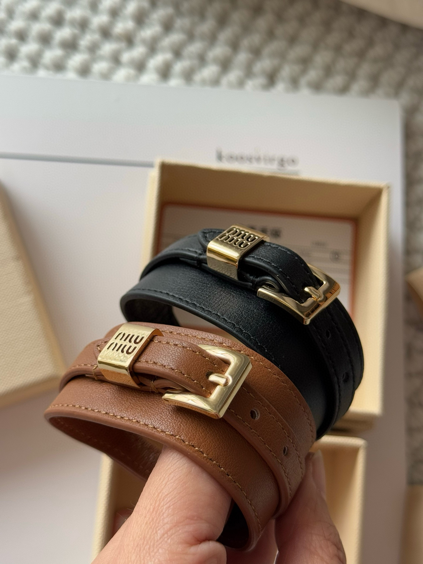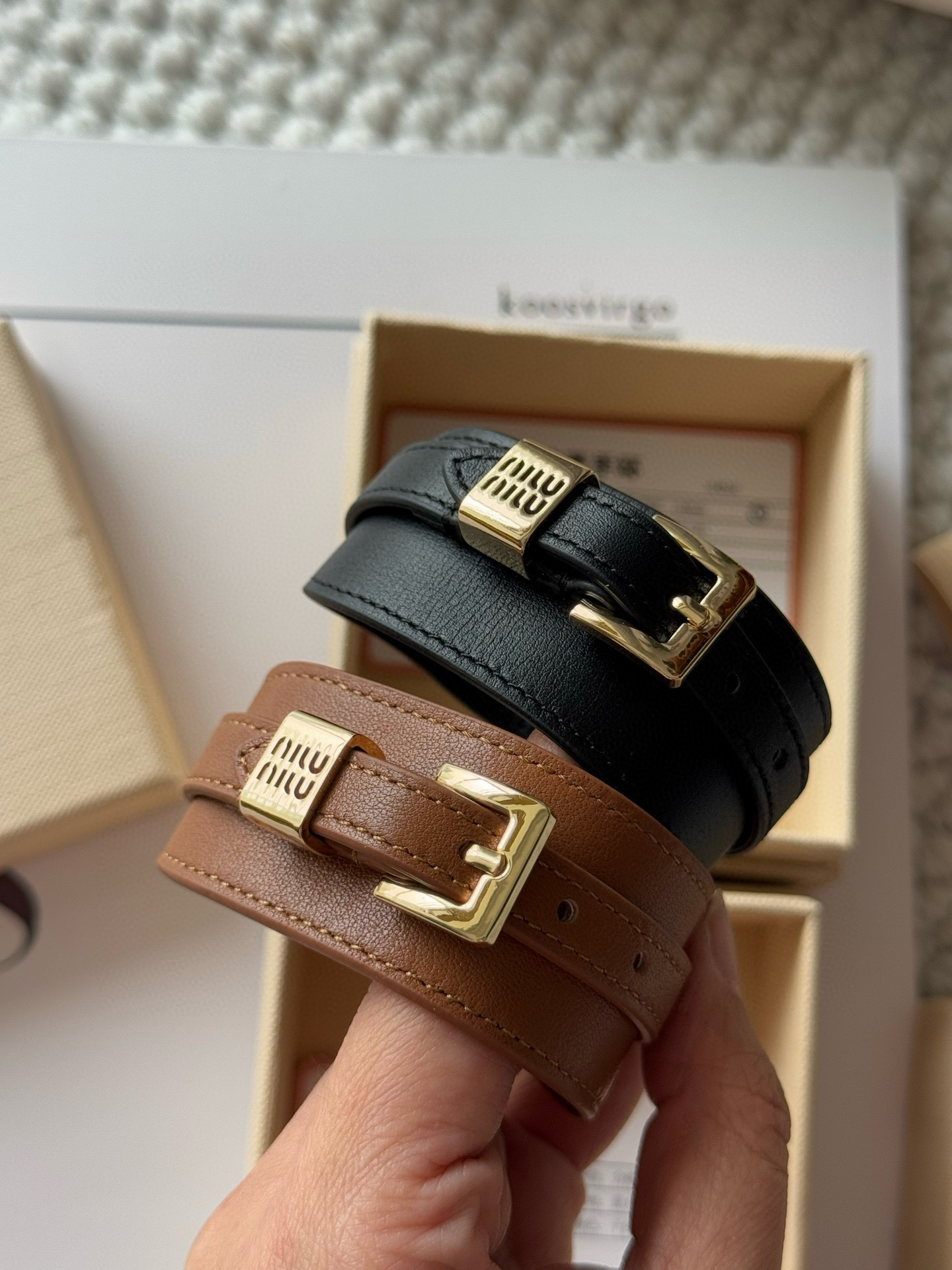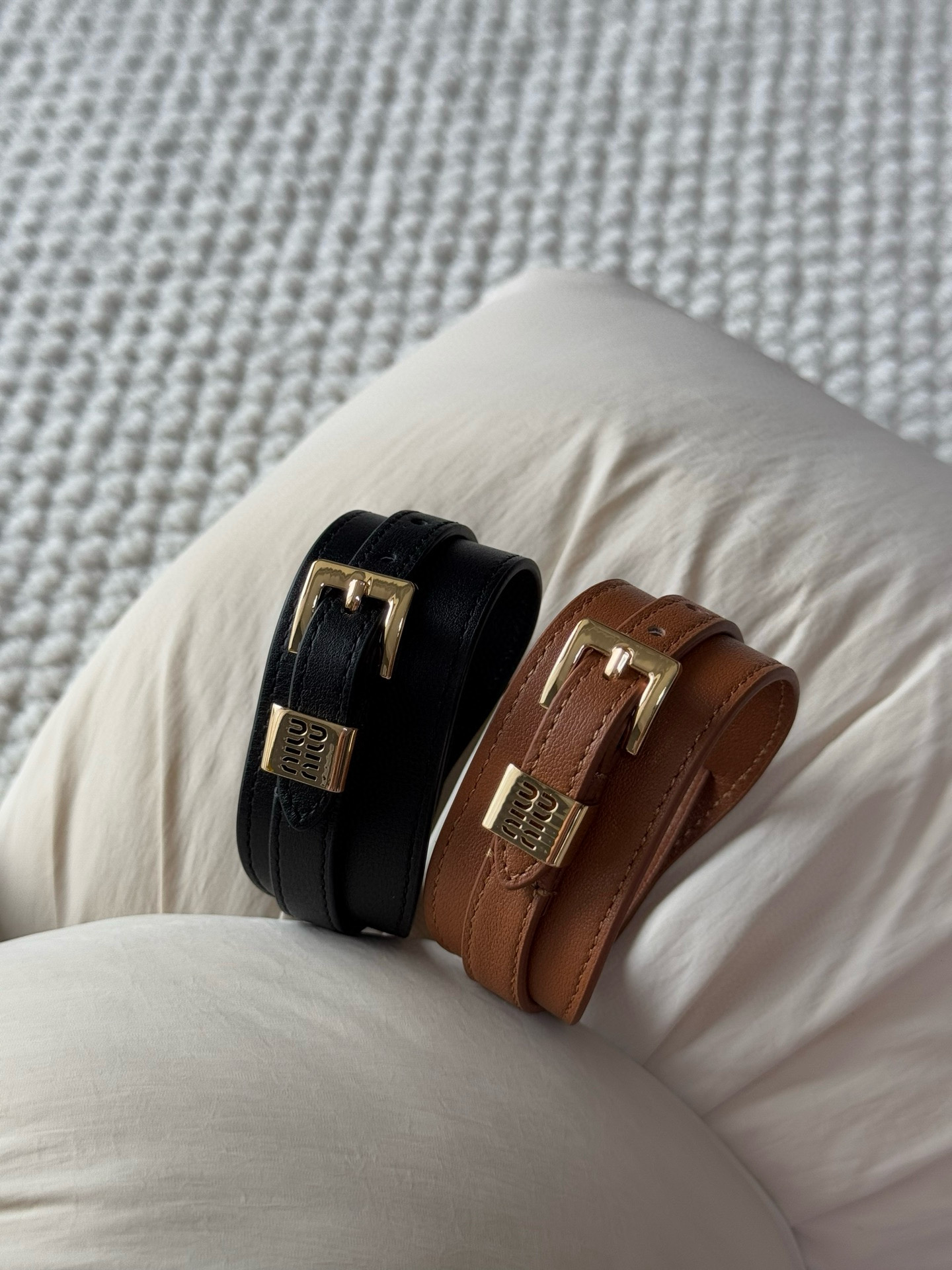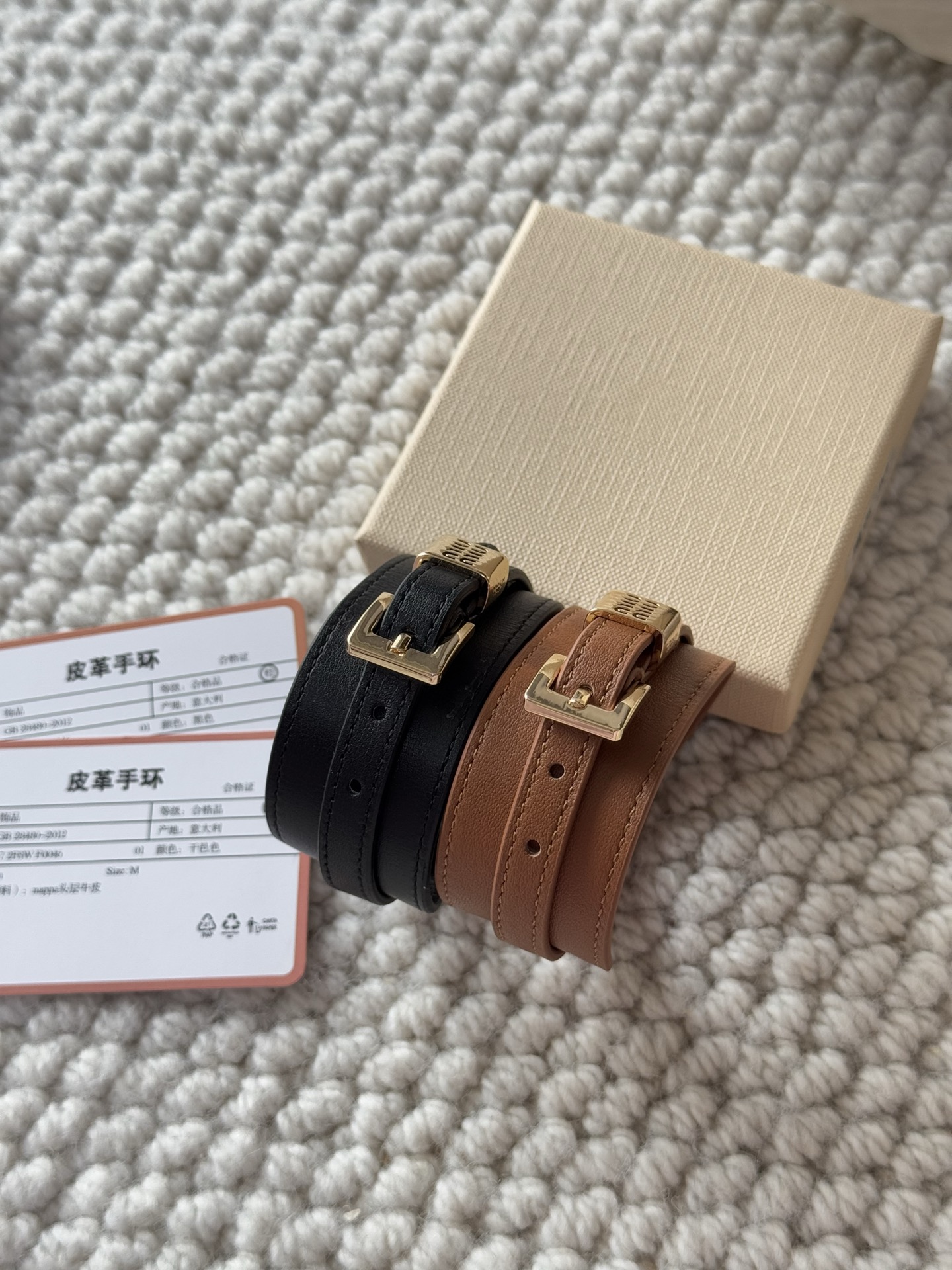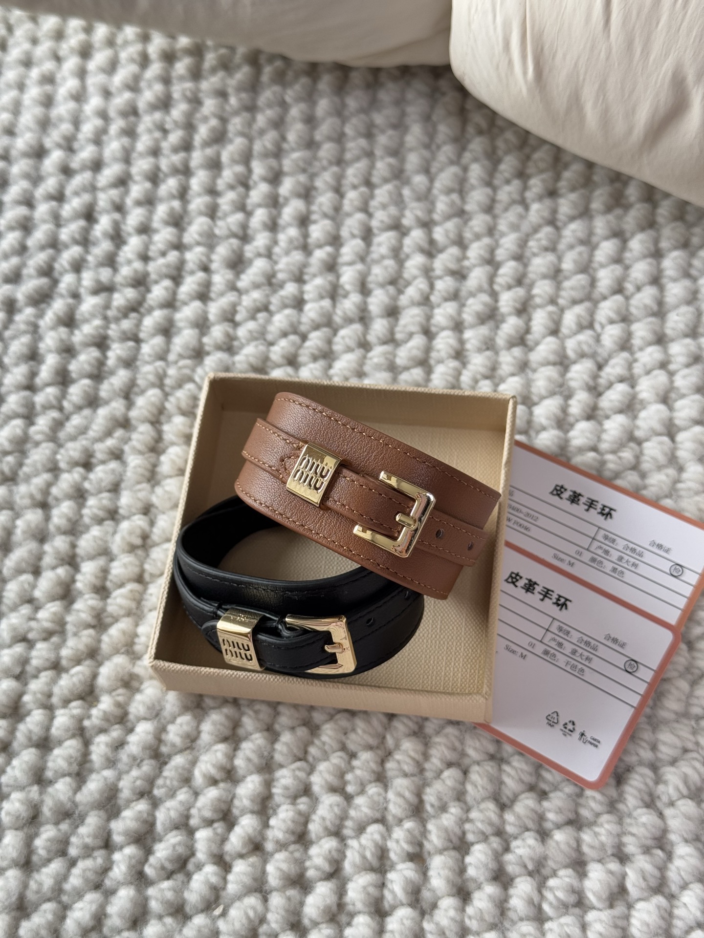 NIGO MiuMiu Women's Solid Color Letter Printed Leather Bracelet Jewelry #nigo75216