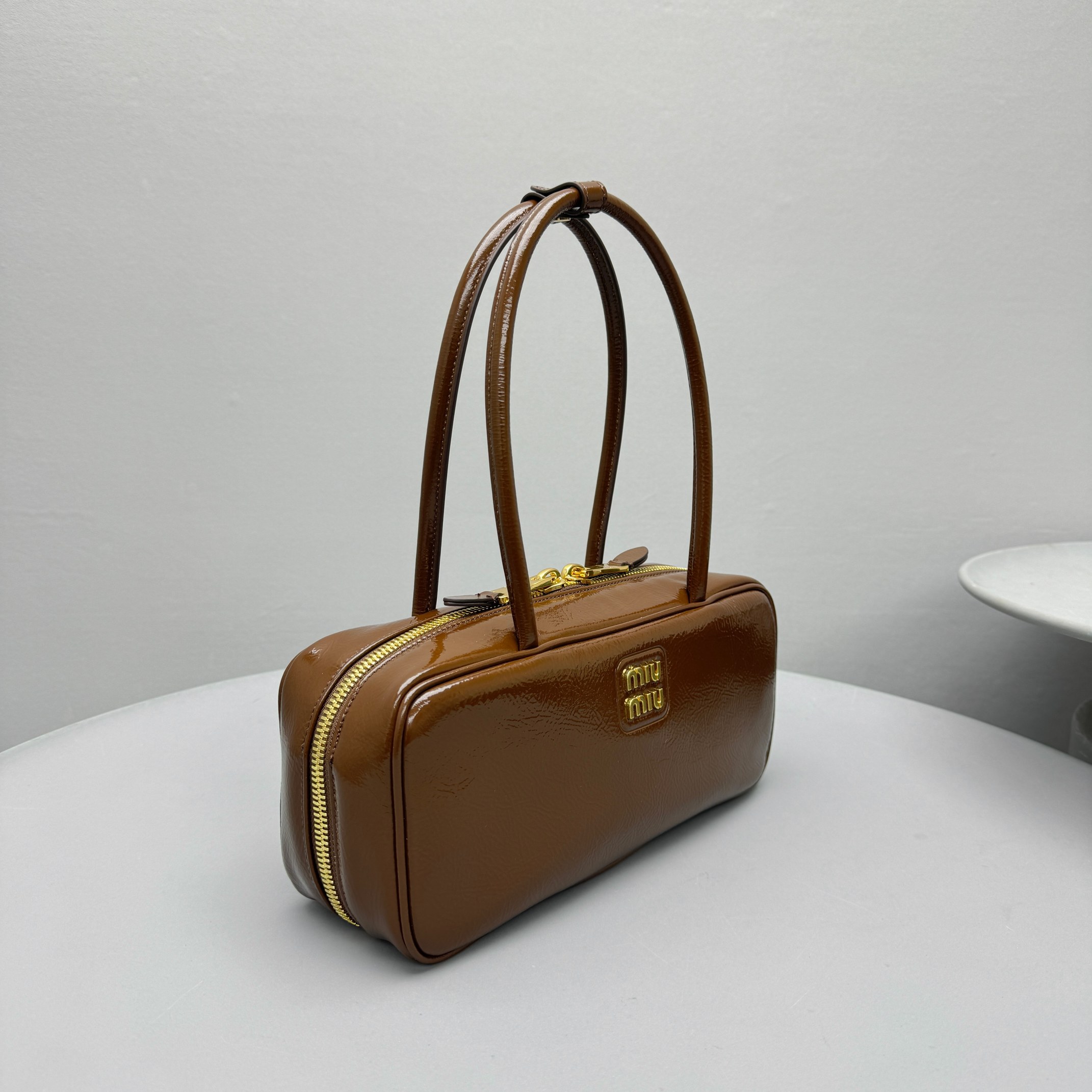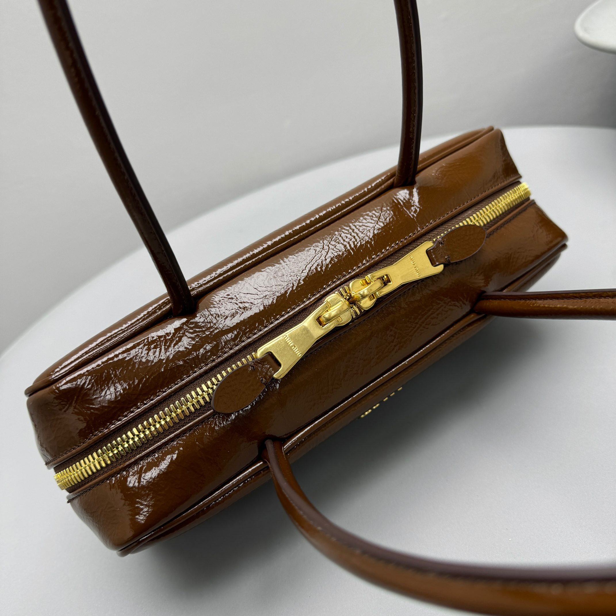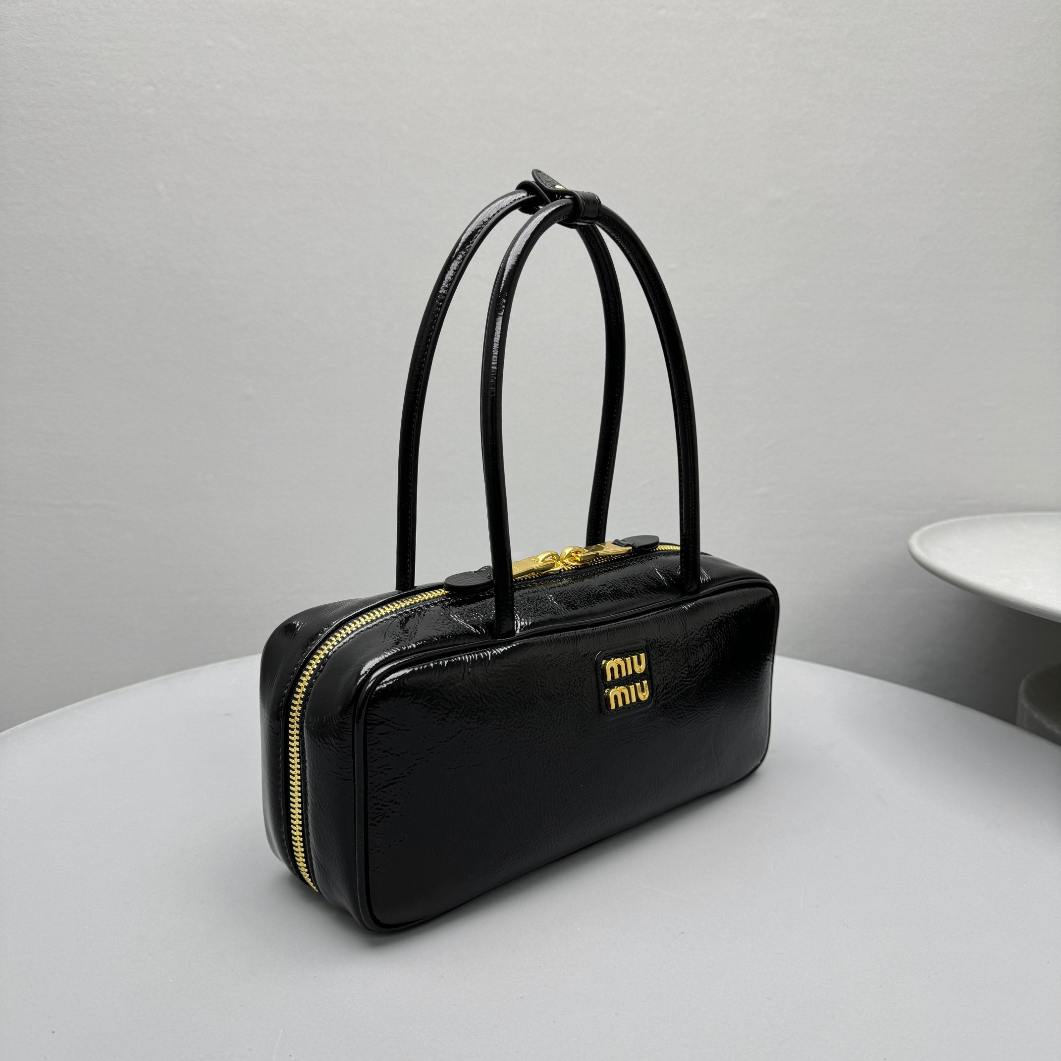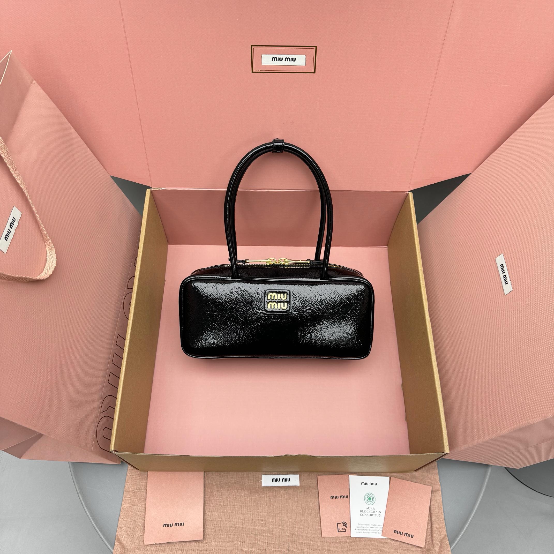 NIGO MiuMiu Women's Solid Color Zipper Closure Beau Naplak Patent Leather Shoulder Handbag Bag Bags #nigo74849