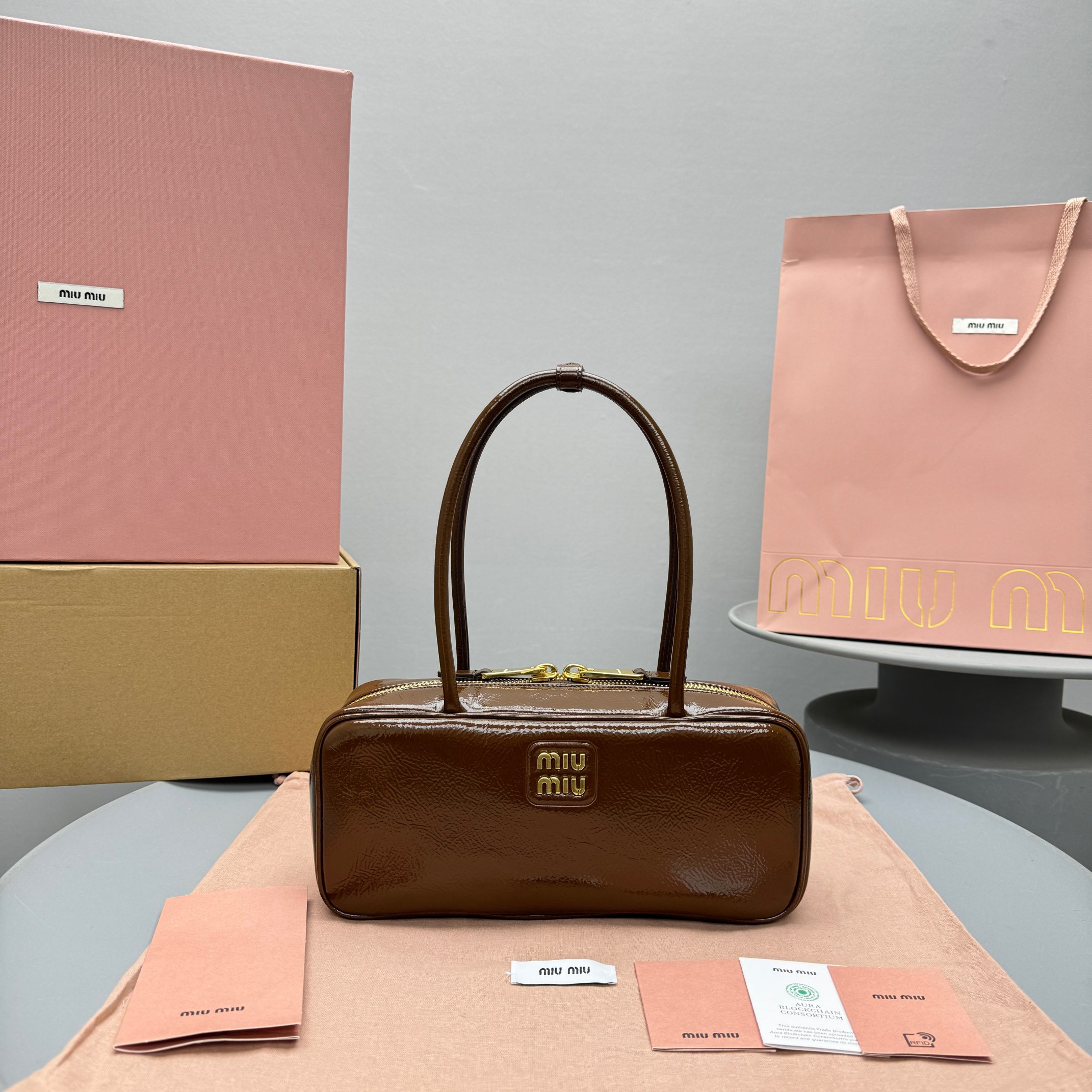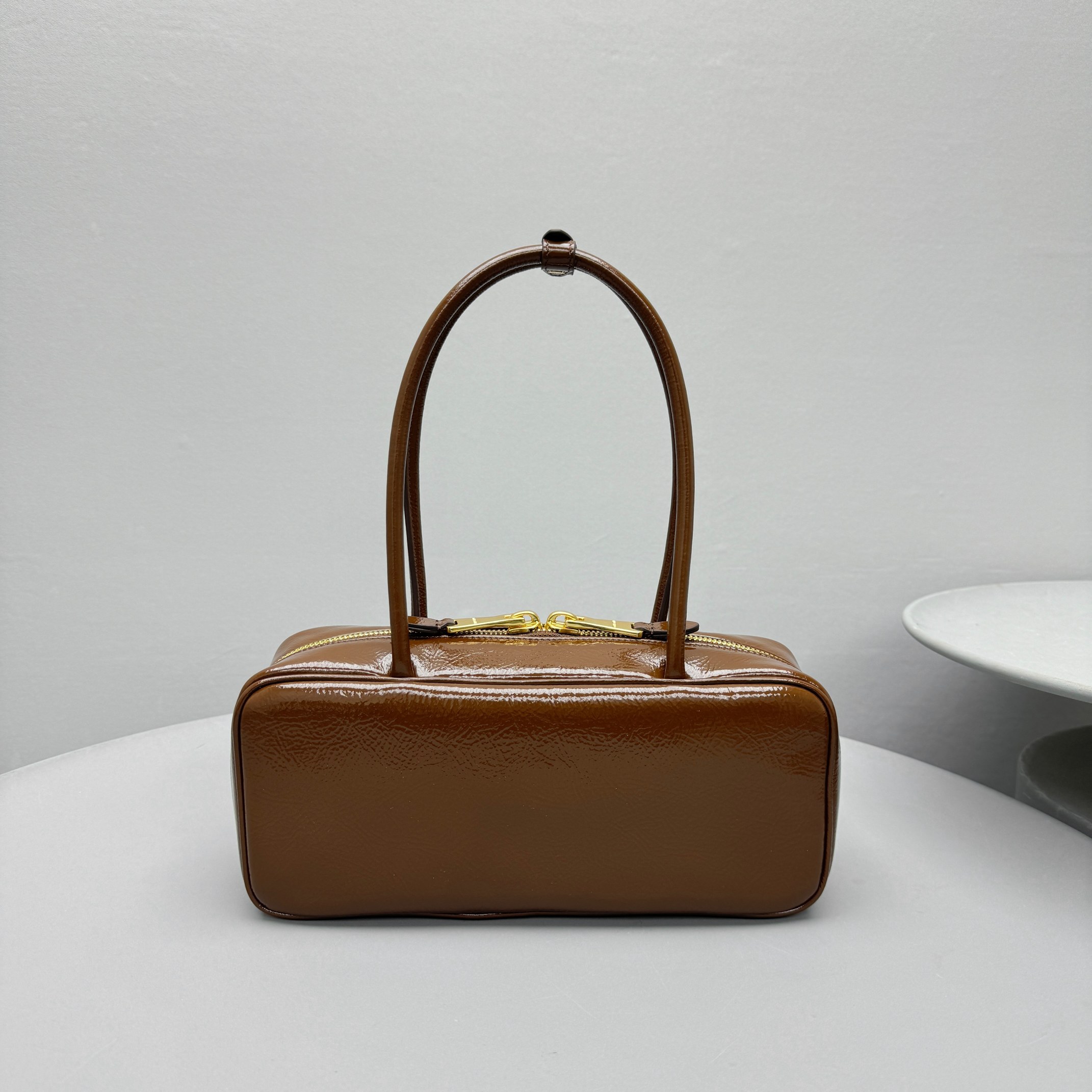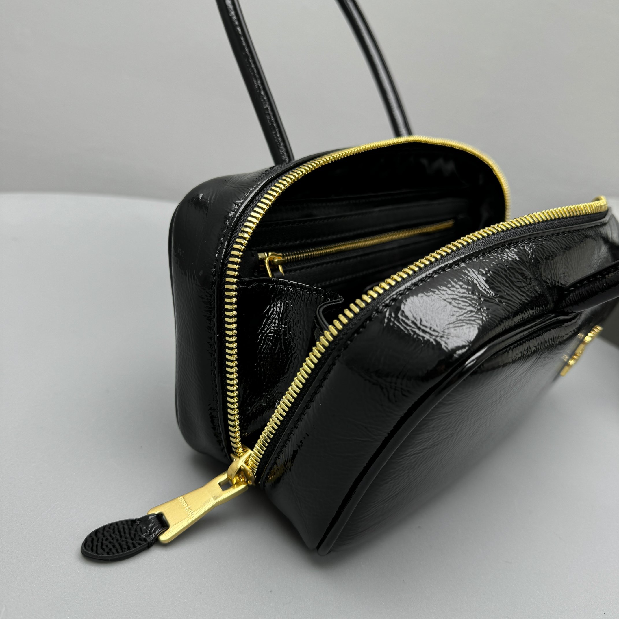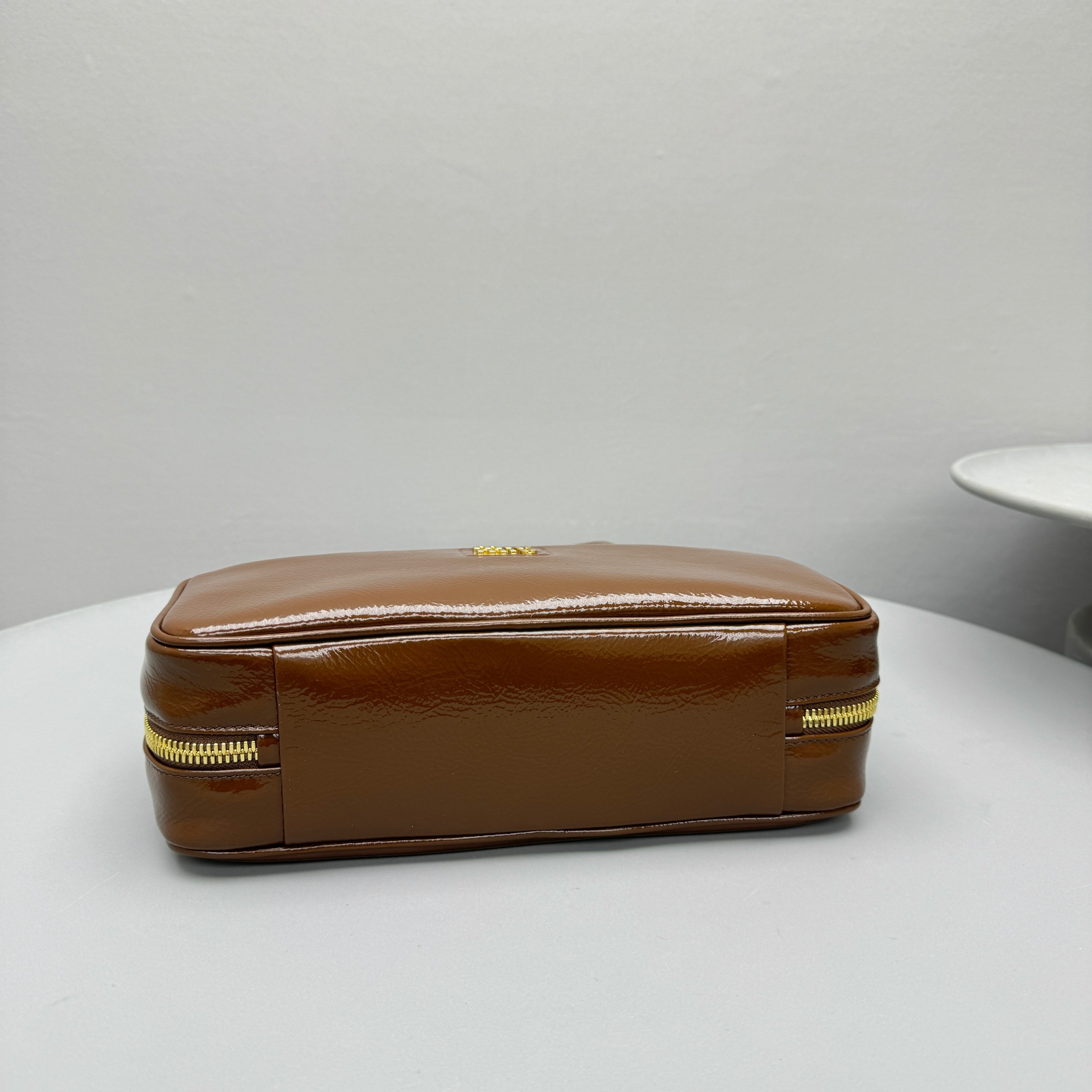 NIGO MiuMiu Women's Solid Color Zipper Closure Beau Naplak Patent Leather Shoulder Handbag Bag Bags #nigo74849
