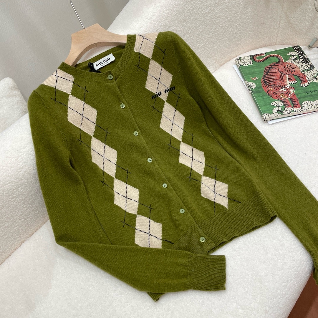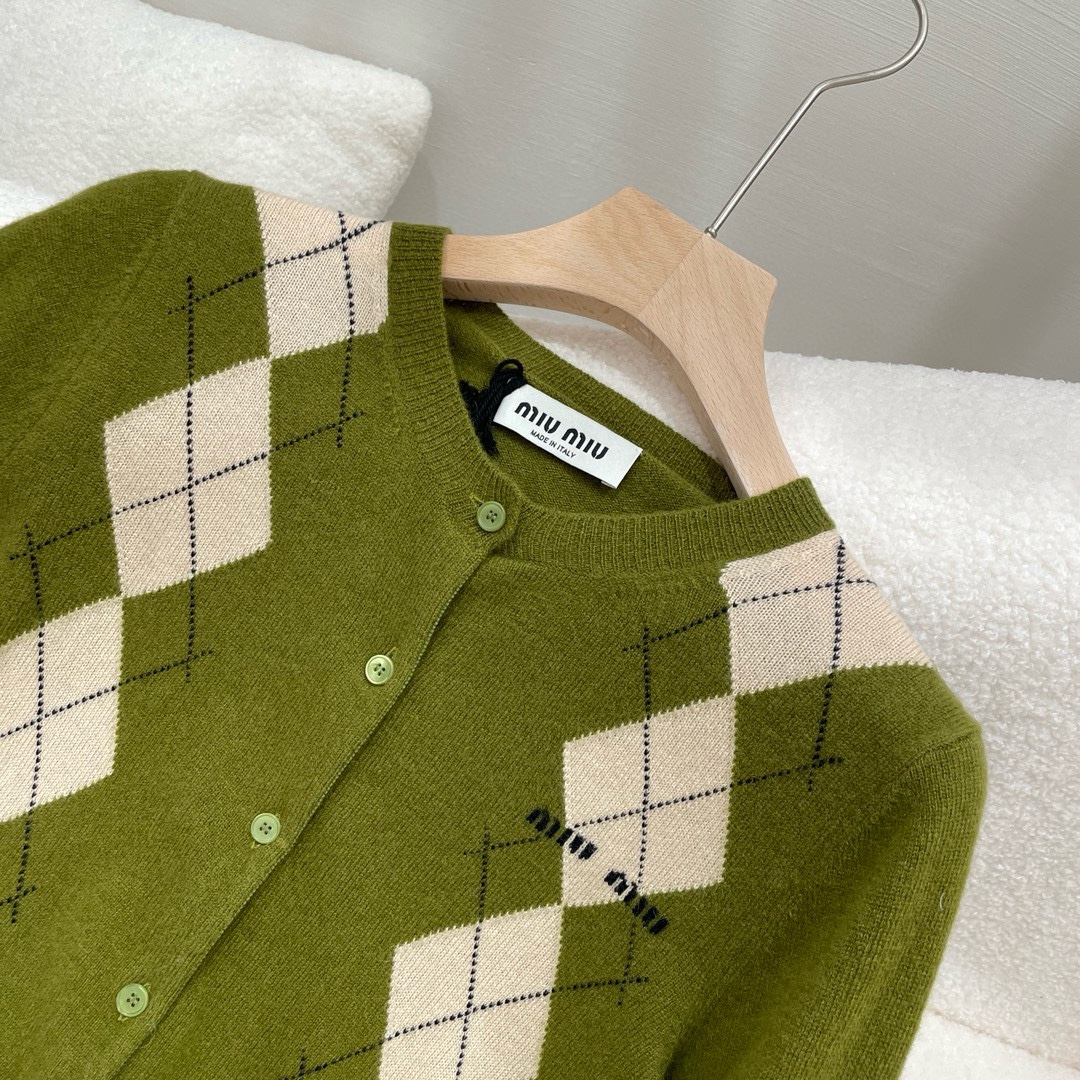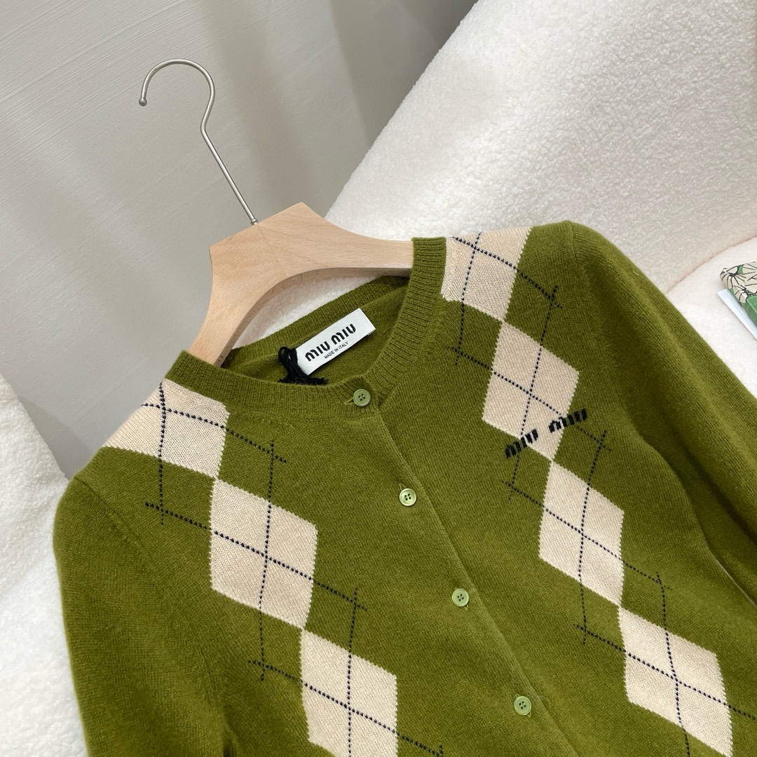 NIGO MiuMiu Women's Spring And Autumn Colorblocking Diamond Applique Knitted Round Neck Single Breasted Long Sleeved Jacket #nigo73853