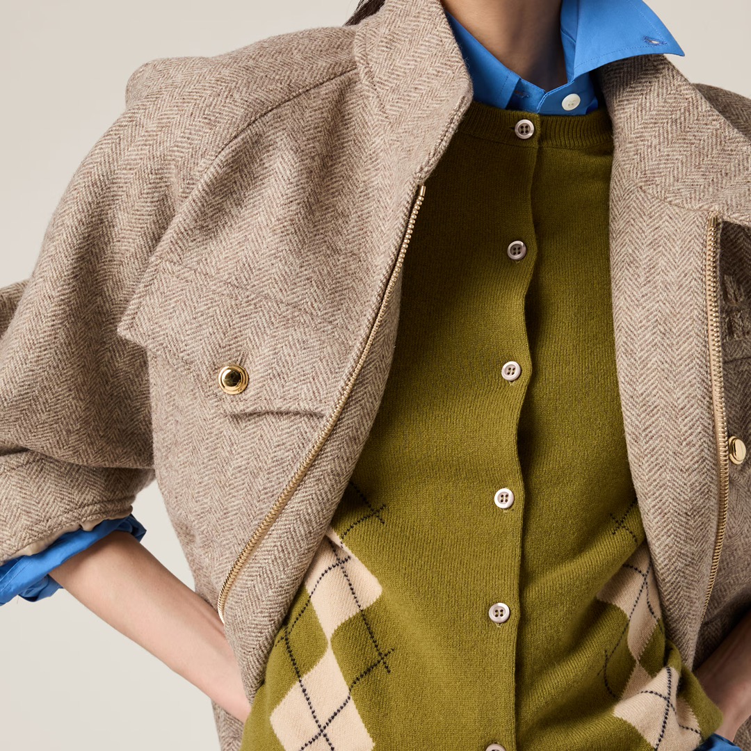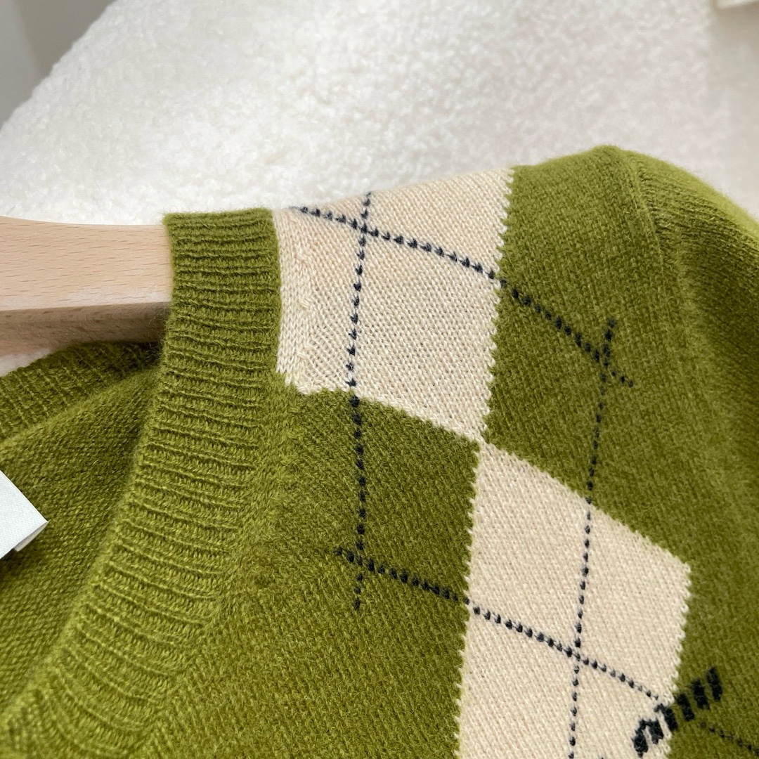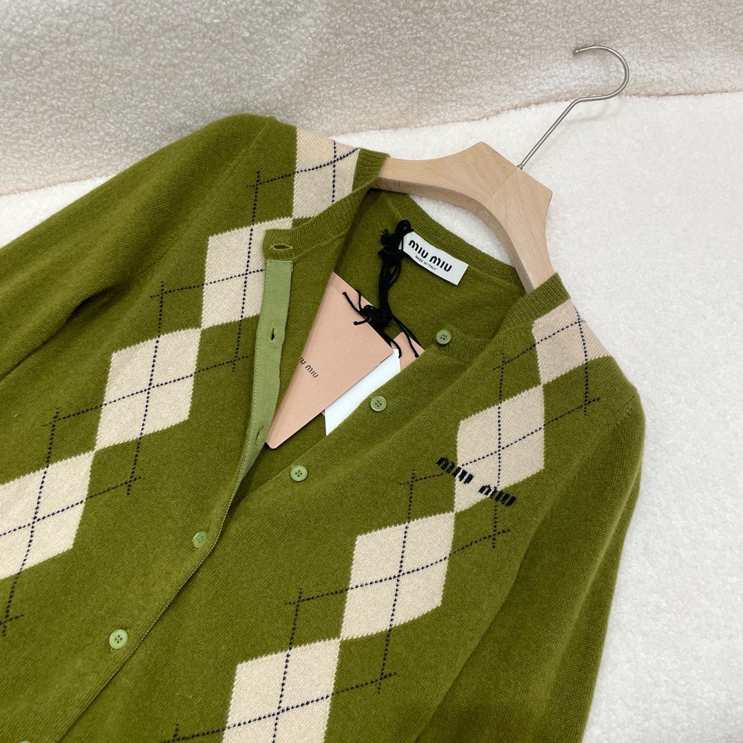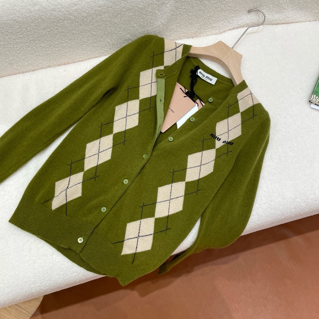 NIGO MiuMiu Women's Spring And Autumn Colorblocking Diamond Applique Knitted Round Neck Single Breasted Long Sleeved Jacket #nigo73853