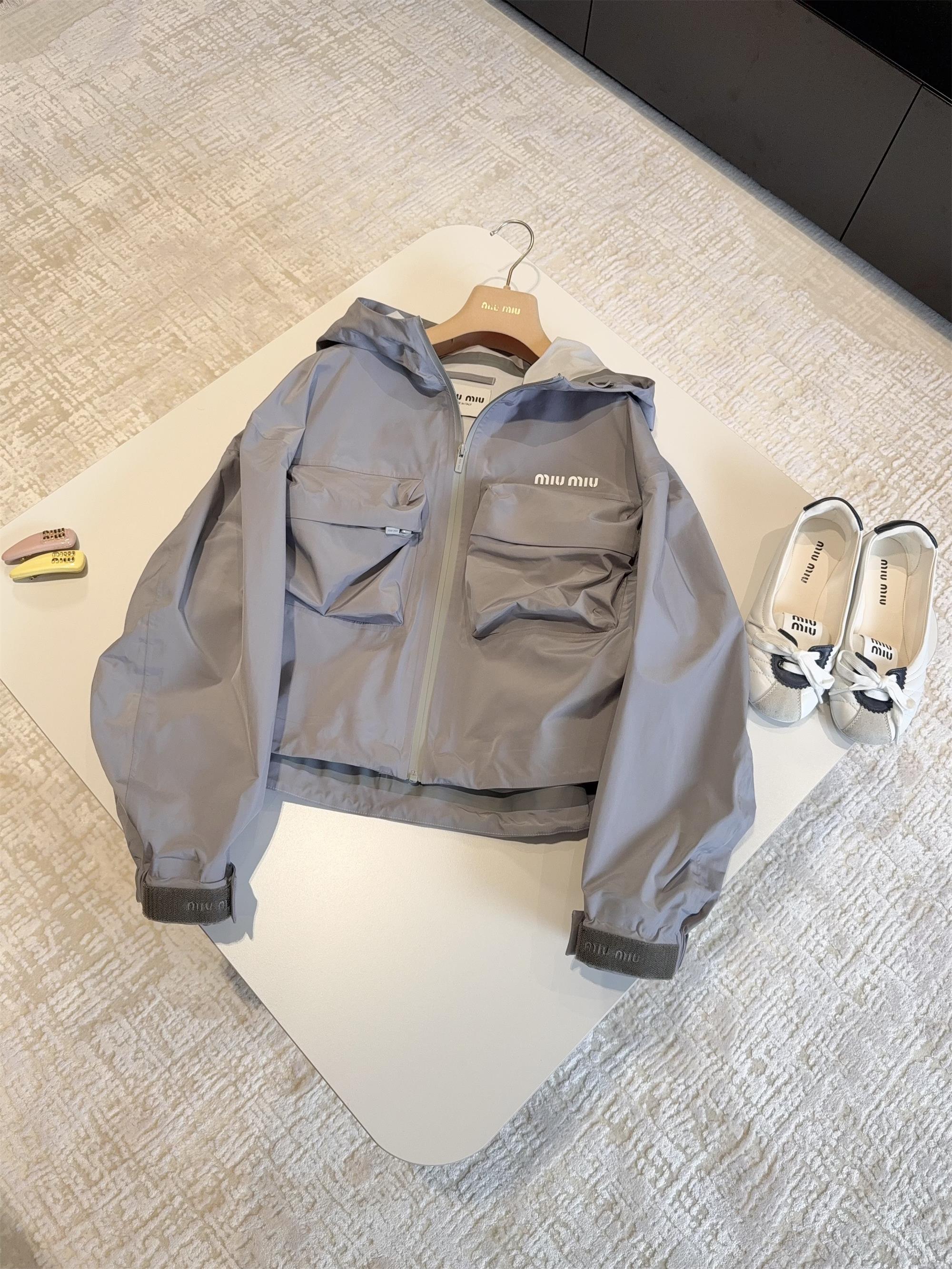 NIGO MiuMiu Women's Spring and Autumn Logo Letter Printed Solid Color Hooded Long Sleeve Zipper Jacket #nigo75469