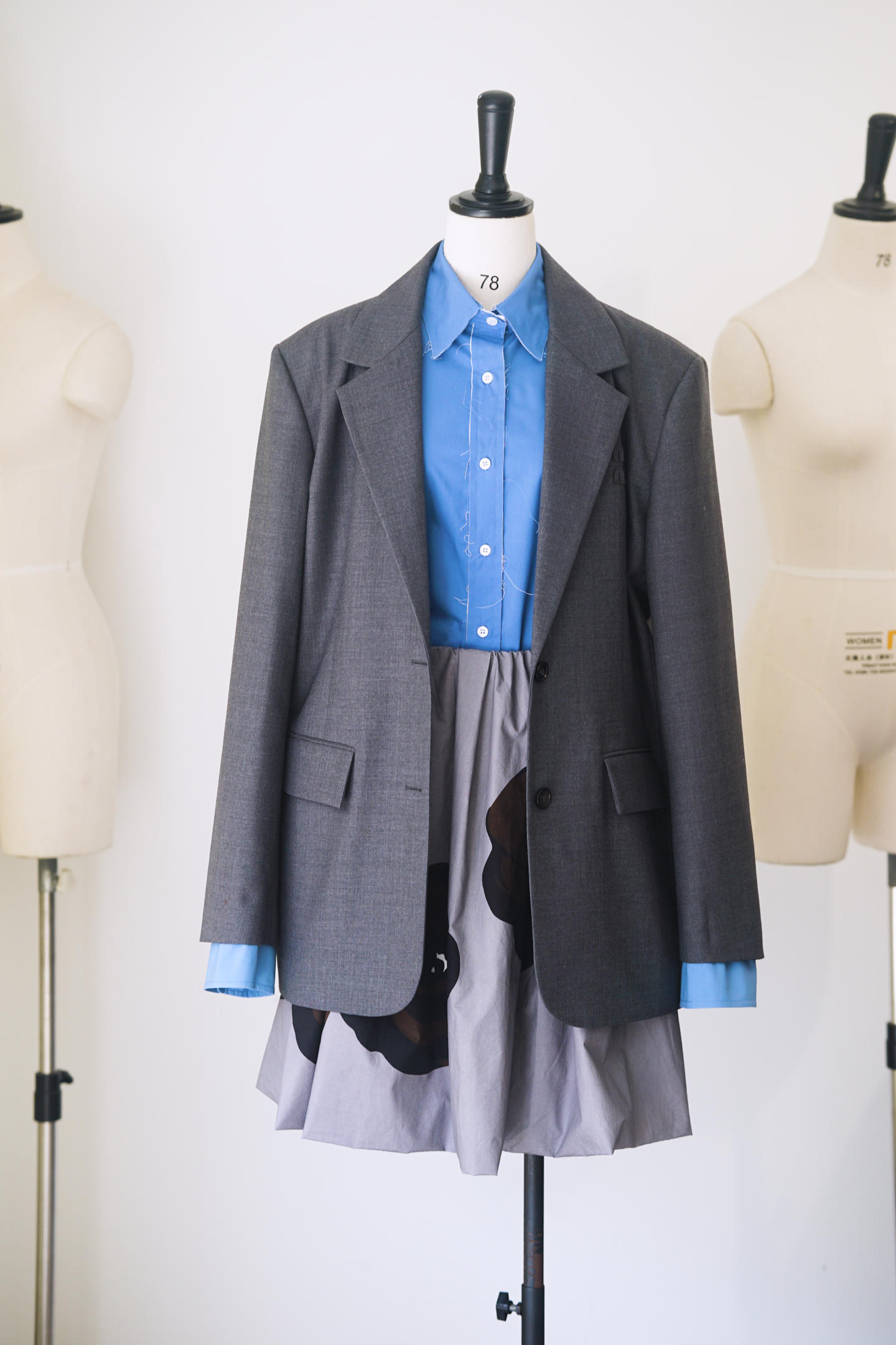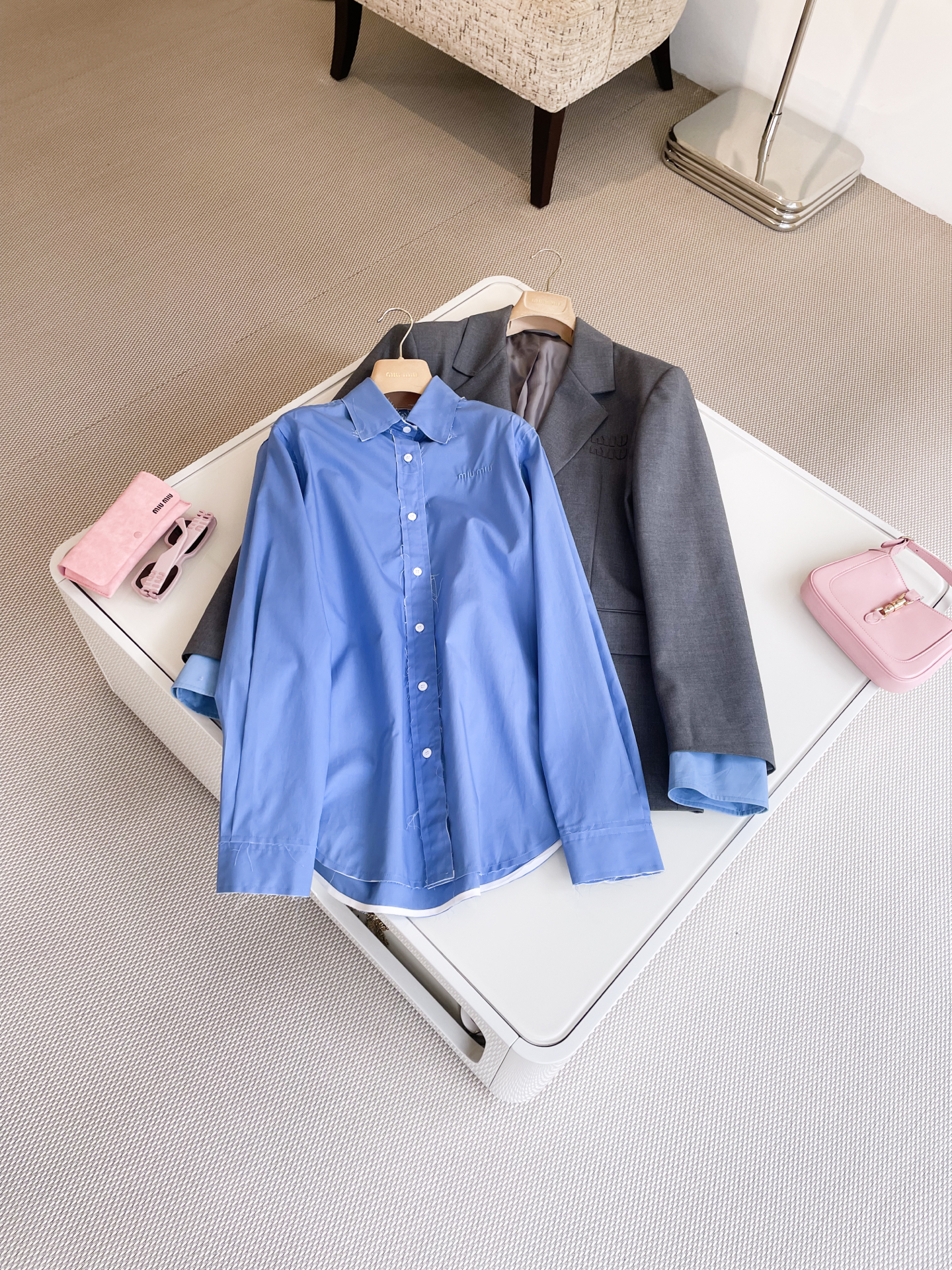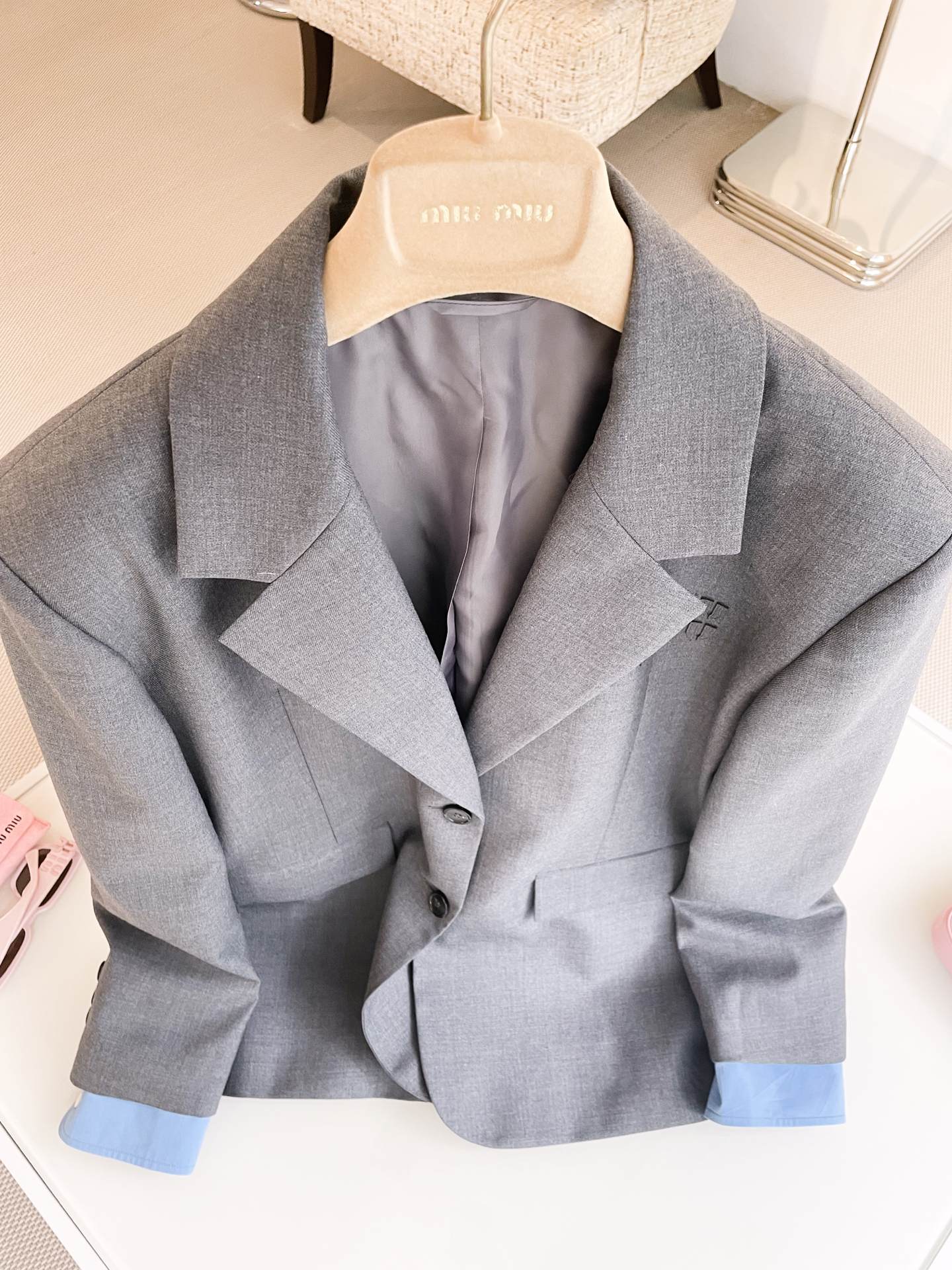 NIGO MiuMiu Women's Spring And Autumn Single-breasted Gabardine Jacket Colorblocked Lapel Wool Fitted Blazer Jacket #nigo71944