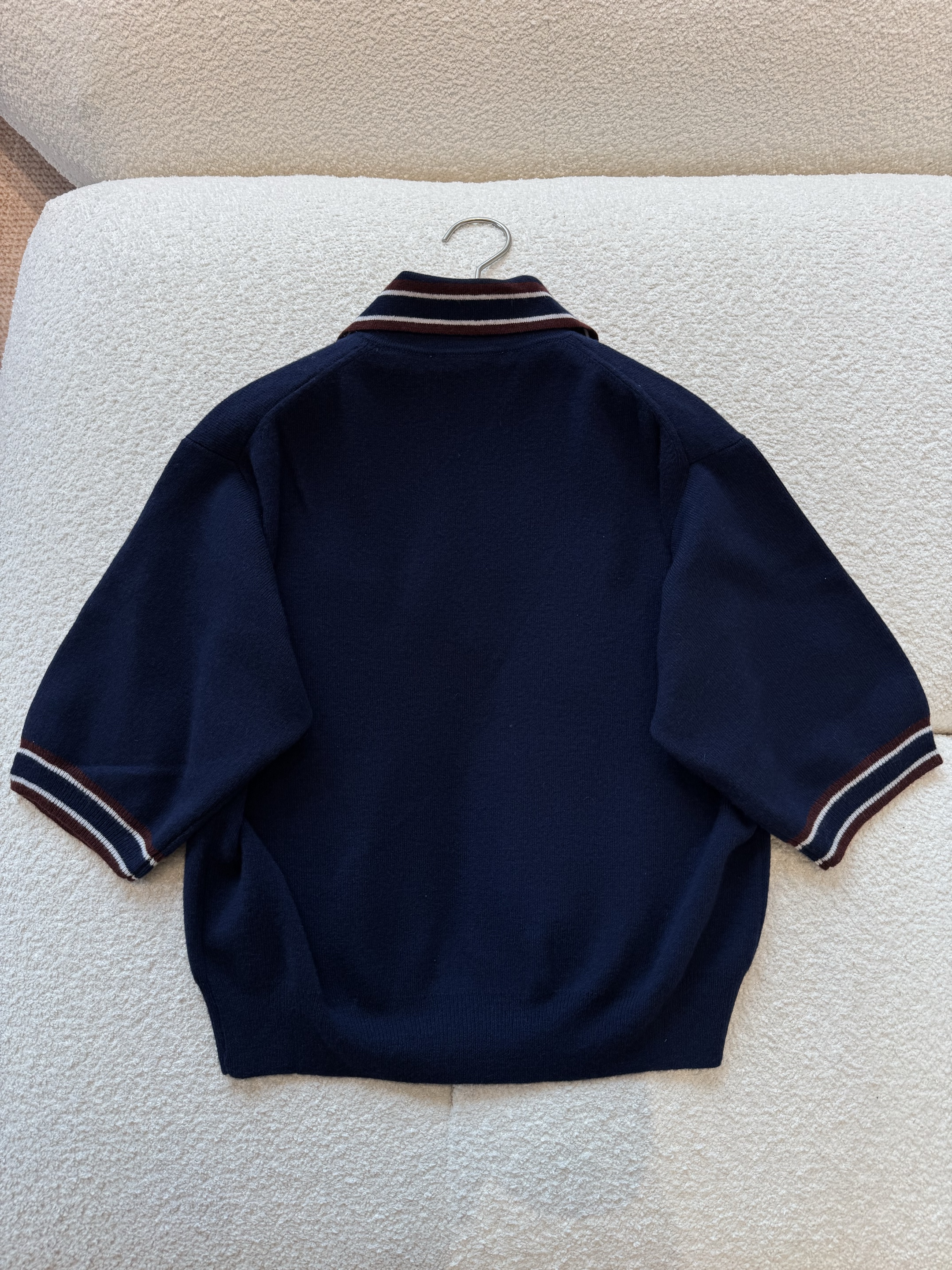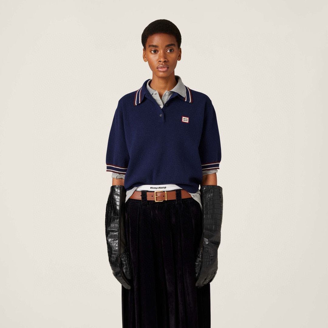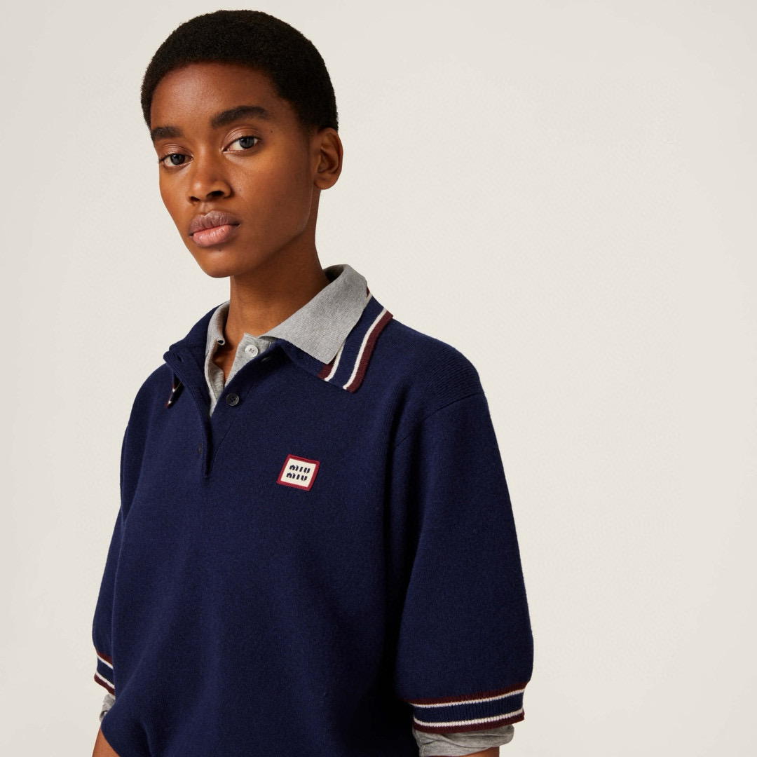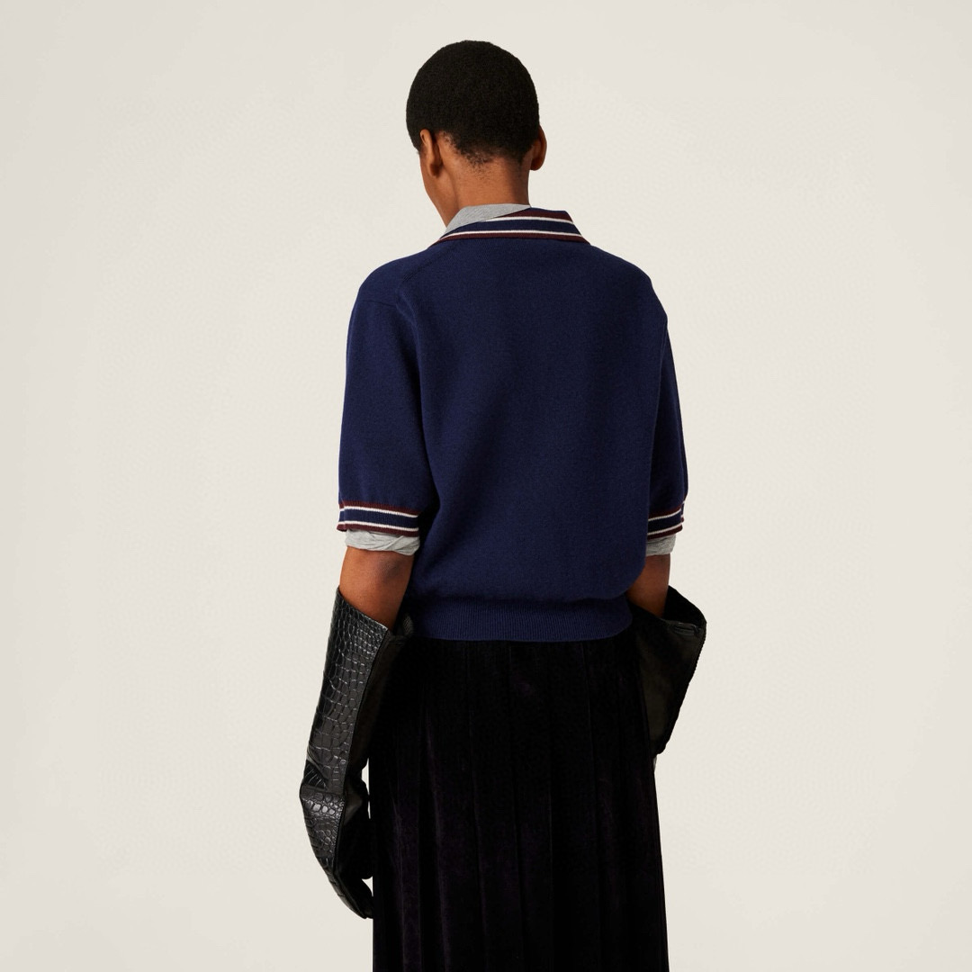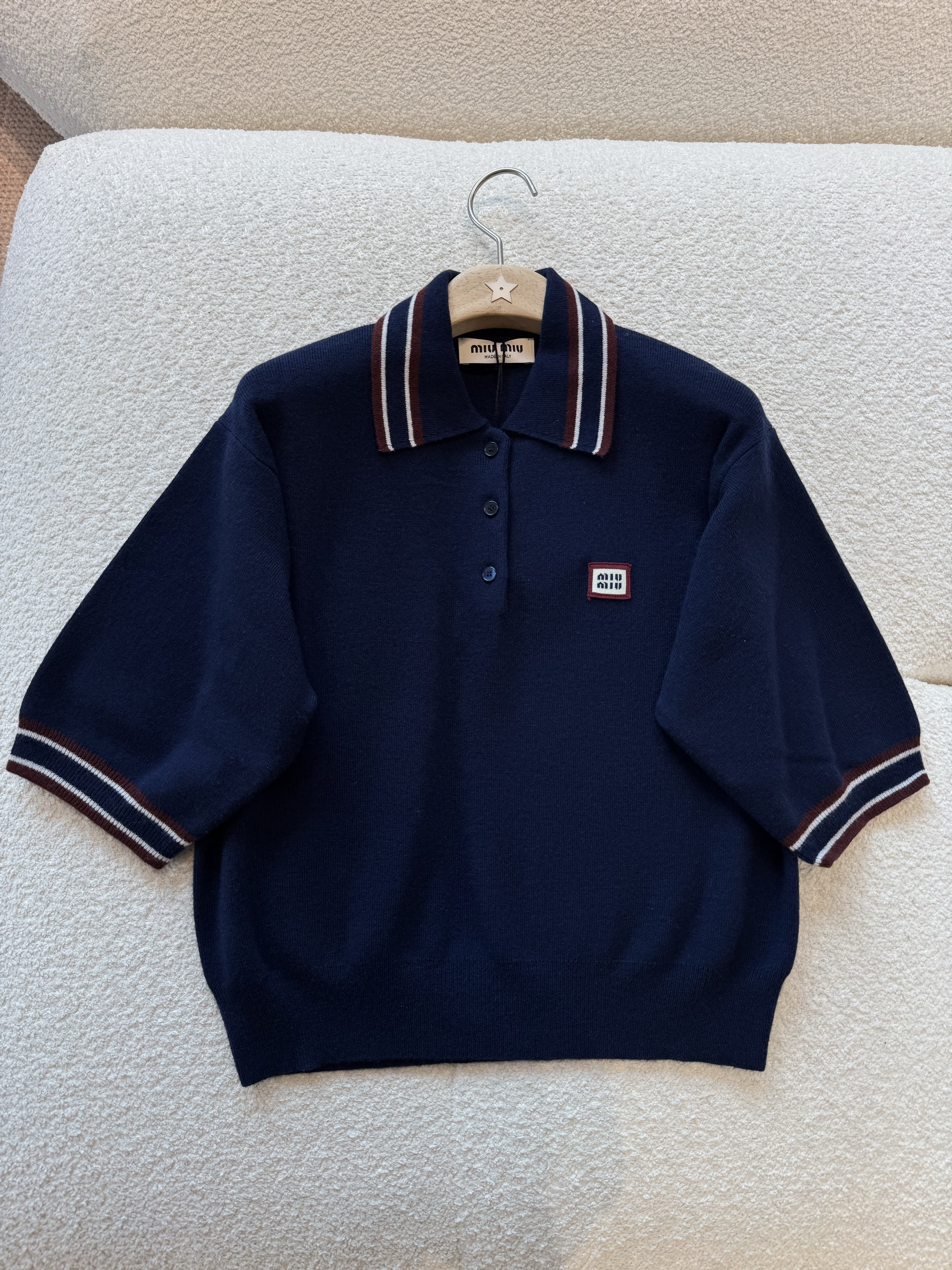 NIGO MiuMiu Women's Spring And Summer Polo Shirt Knitted Fashion Retro Navy Blue Striped Color Blocking Buttons Short Sleeve T-shirt Tops #nigo81641