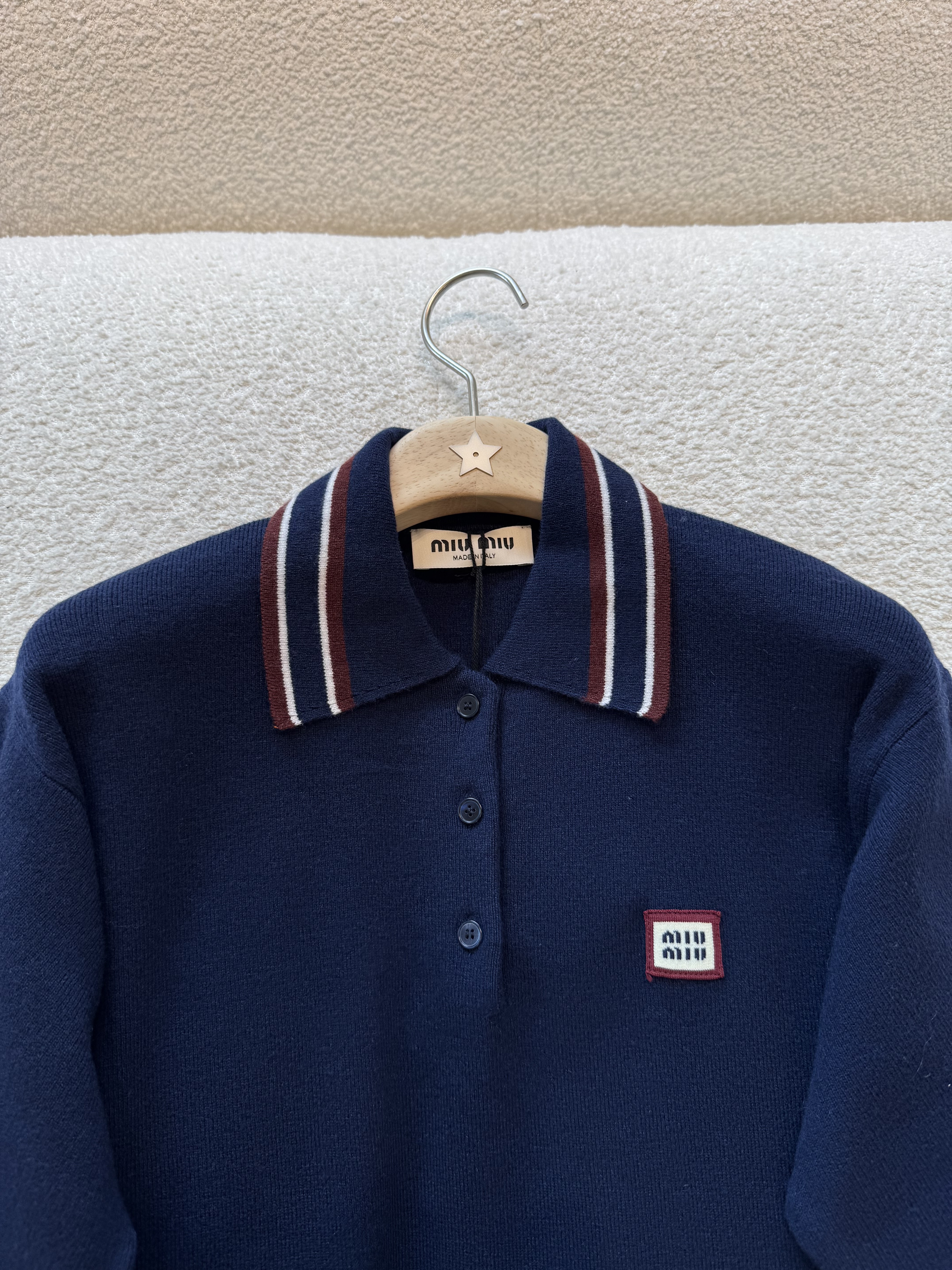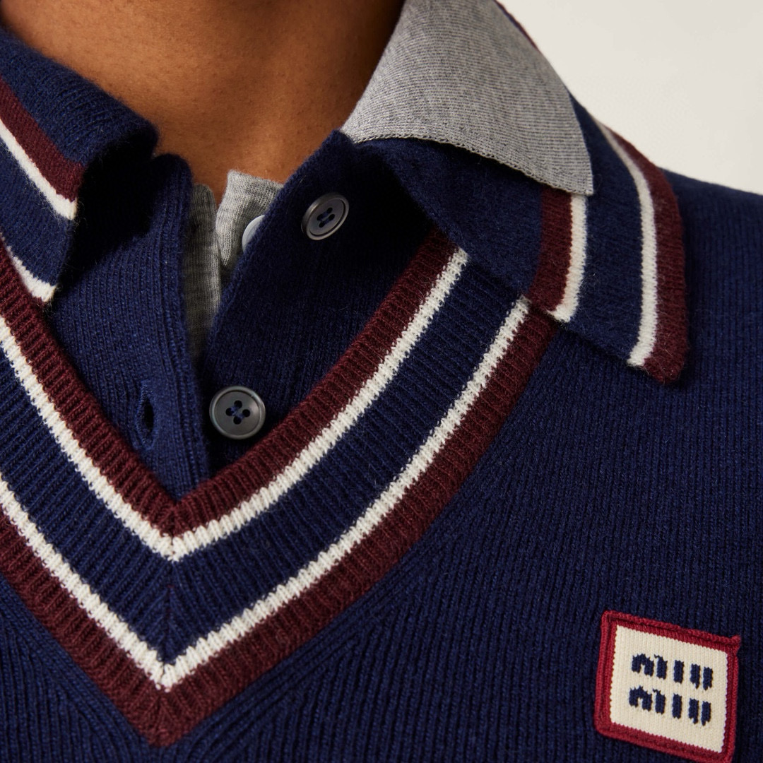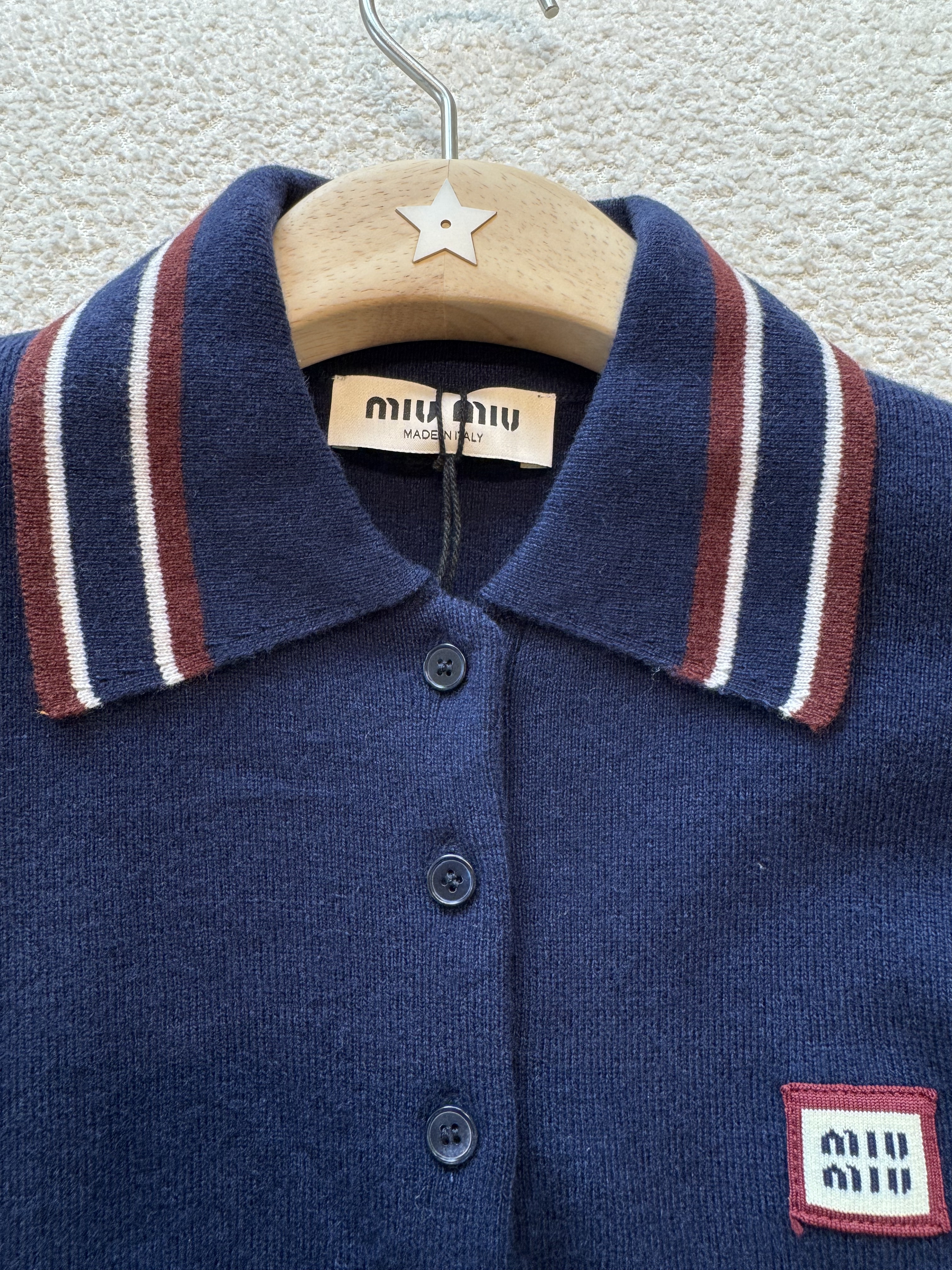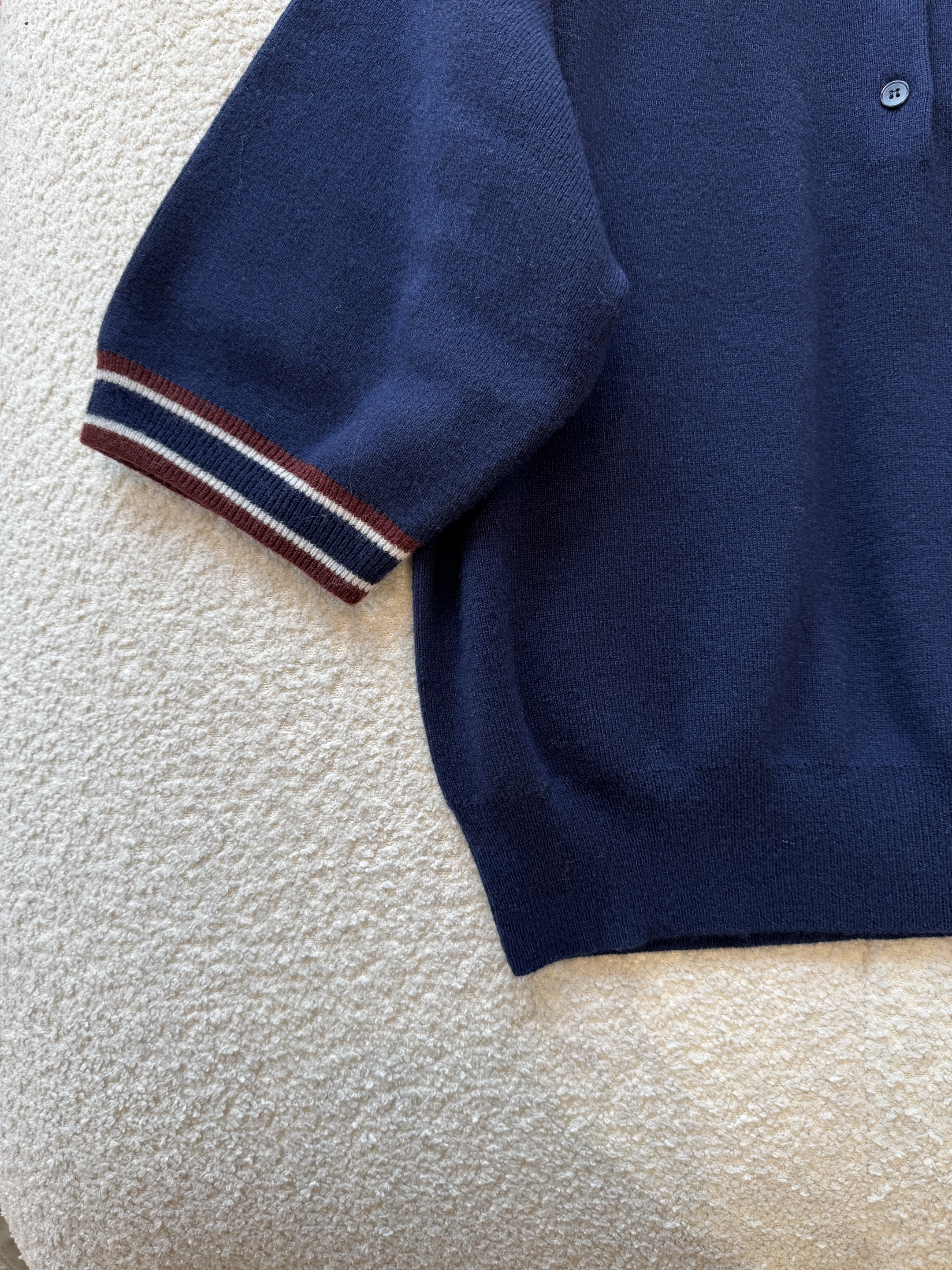 NIGO MiuMiu Women's Spring And Summer Polo Shirt Knitted Fashion Retro Navy Blue Striped Color Blocking Buttons Short Sleeve T-shirt Tops #nigo81641