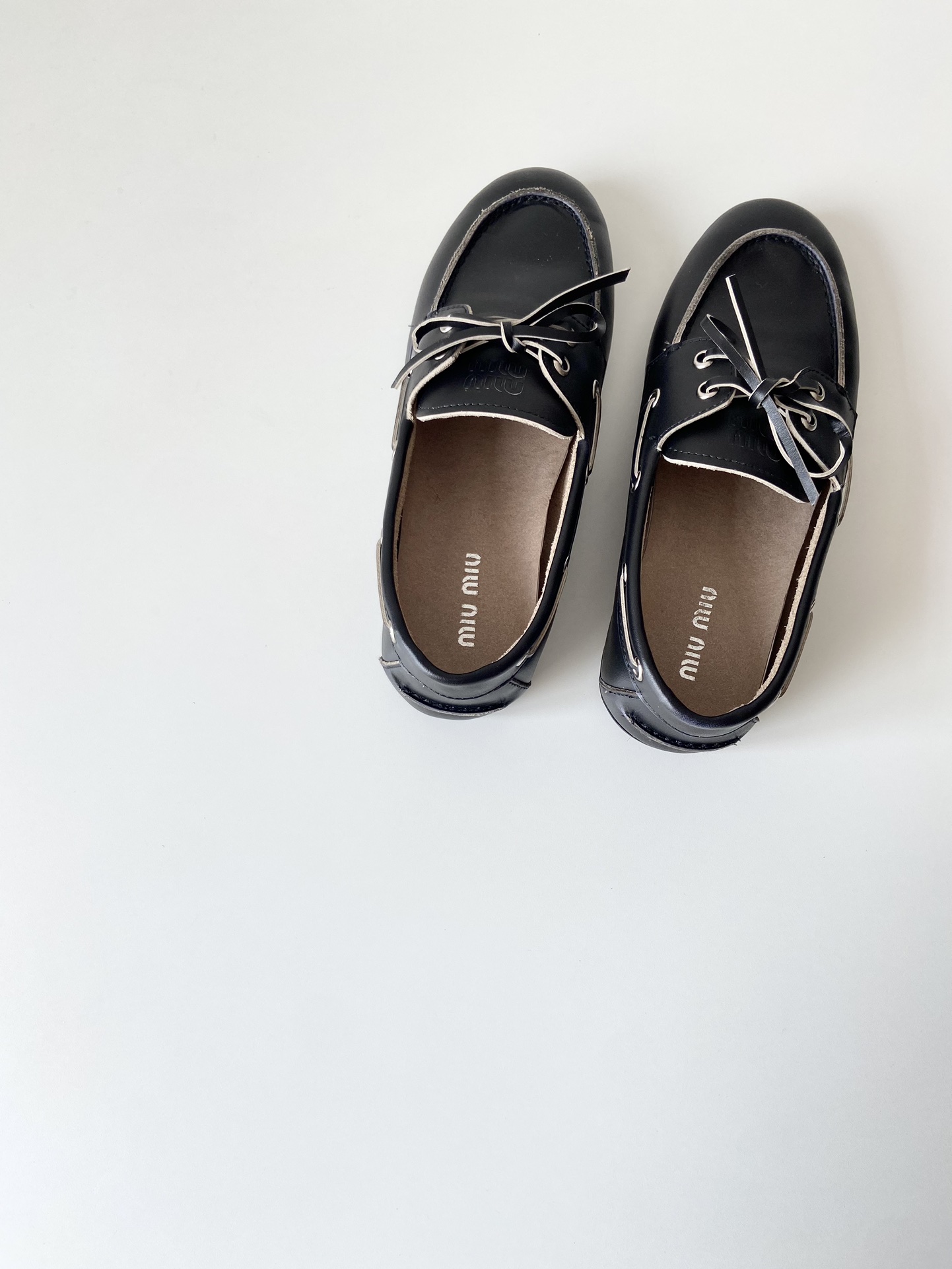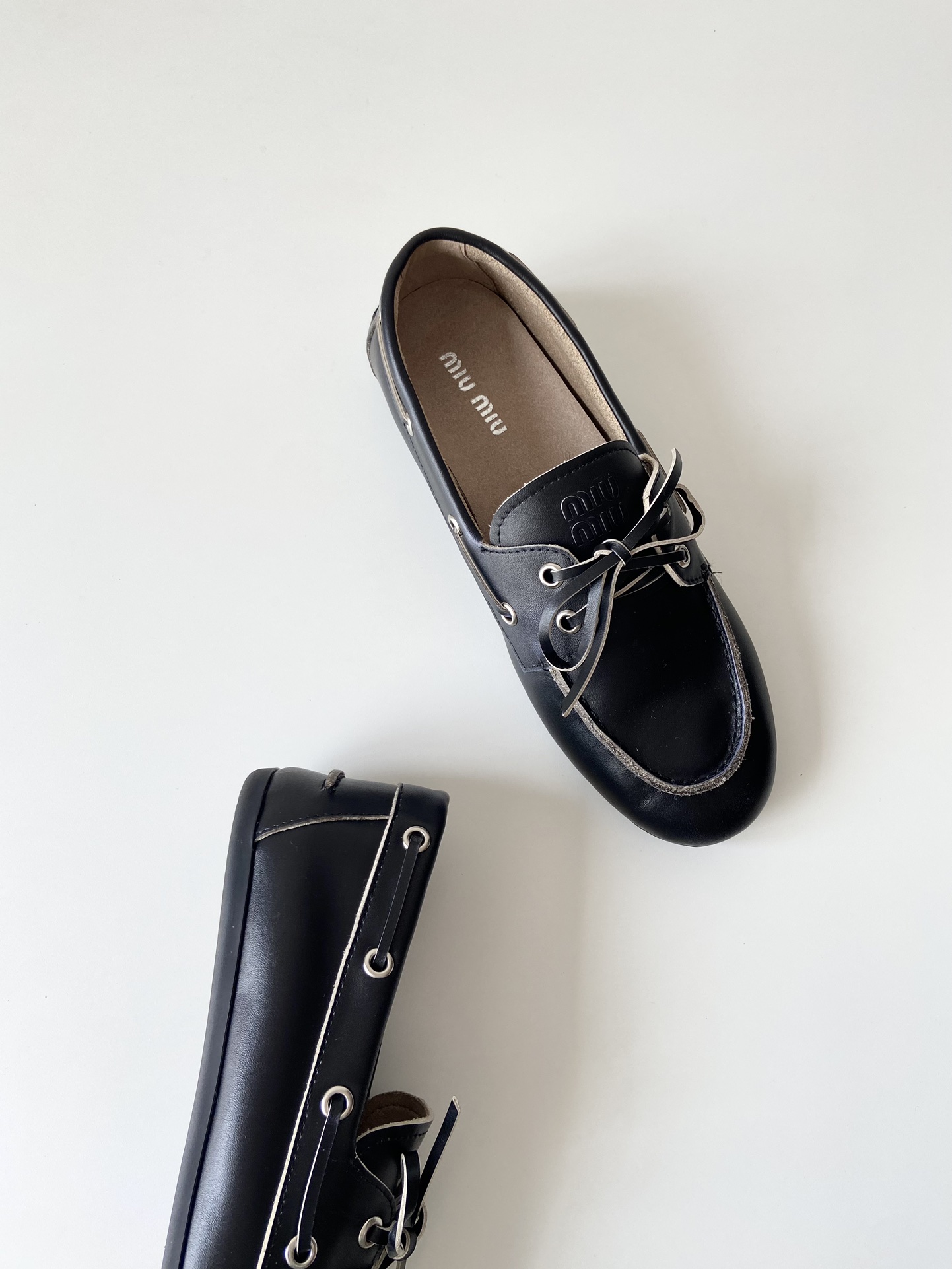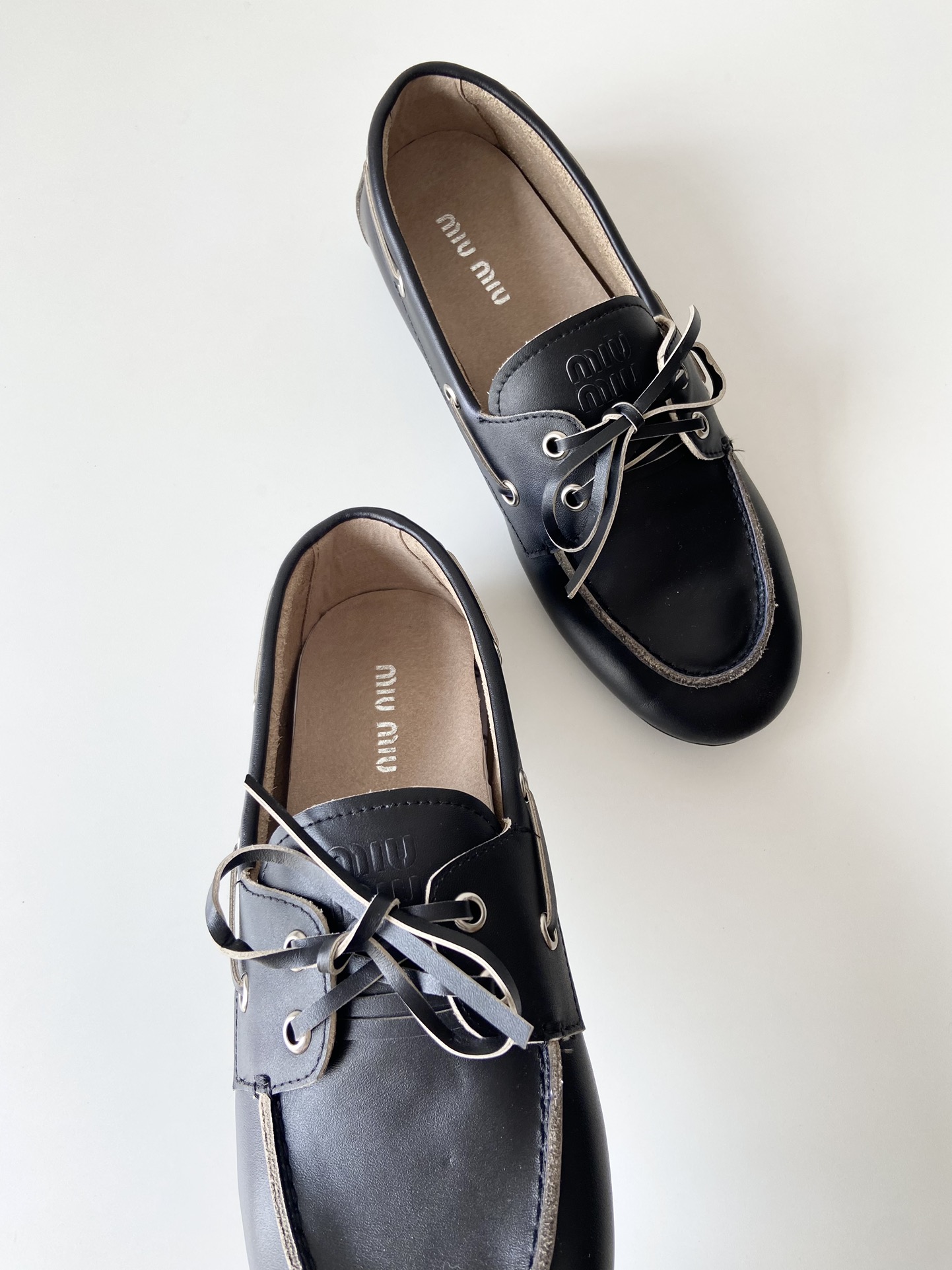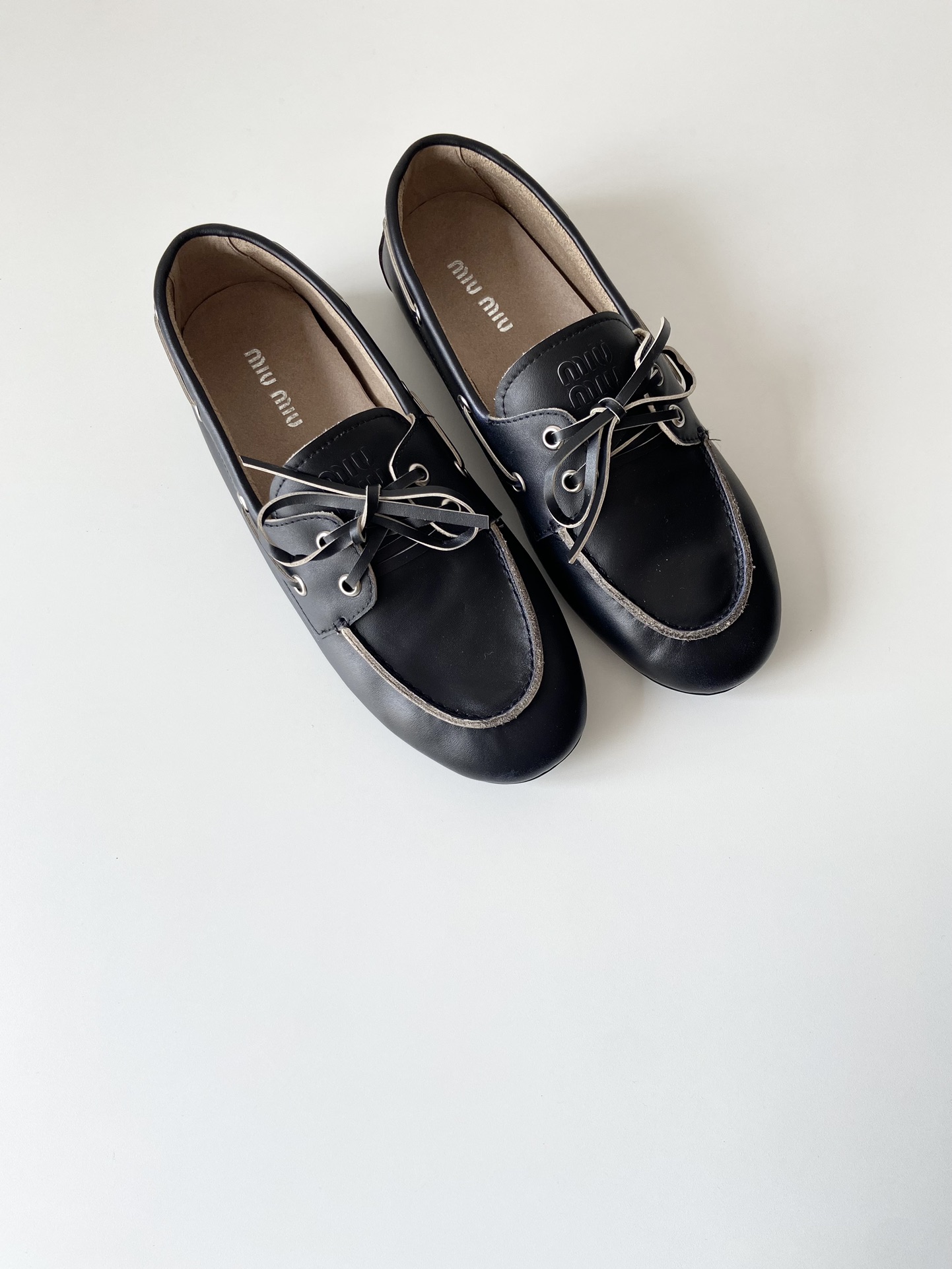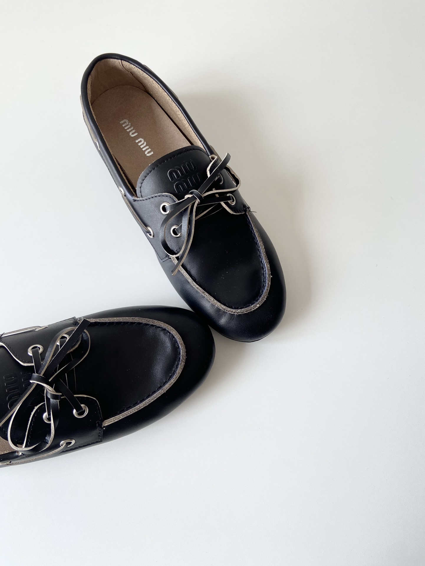 NIGO MiuMiu Women's Spring And Summer Solid Color Round Head Overfoot Low Top Lace Up Loafers Shoes #nigo75441