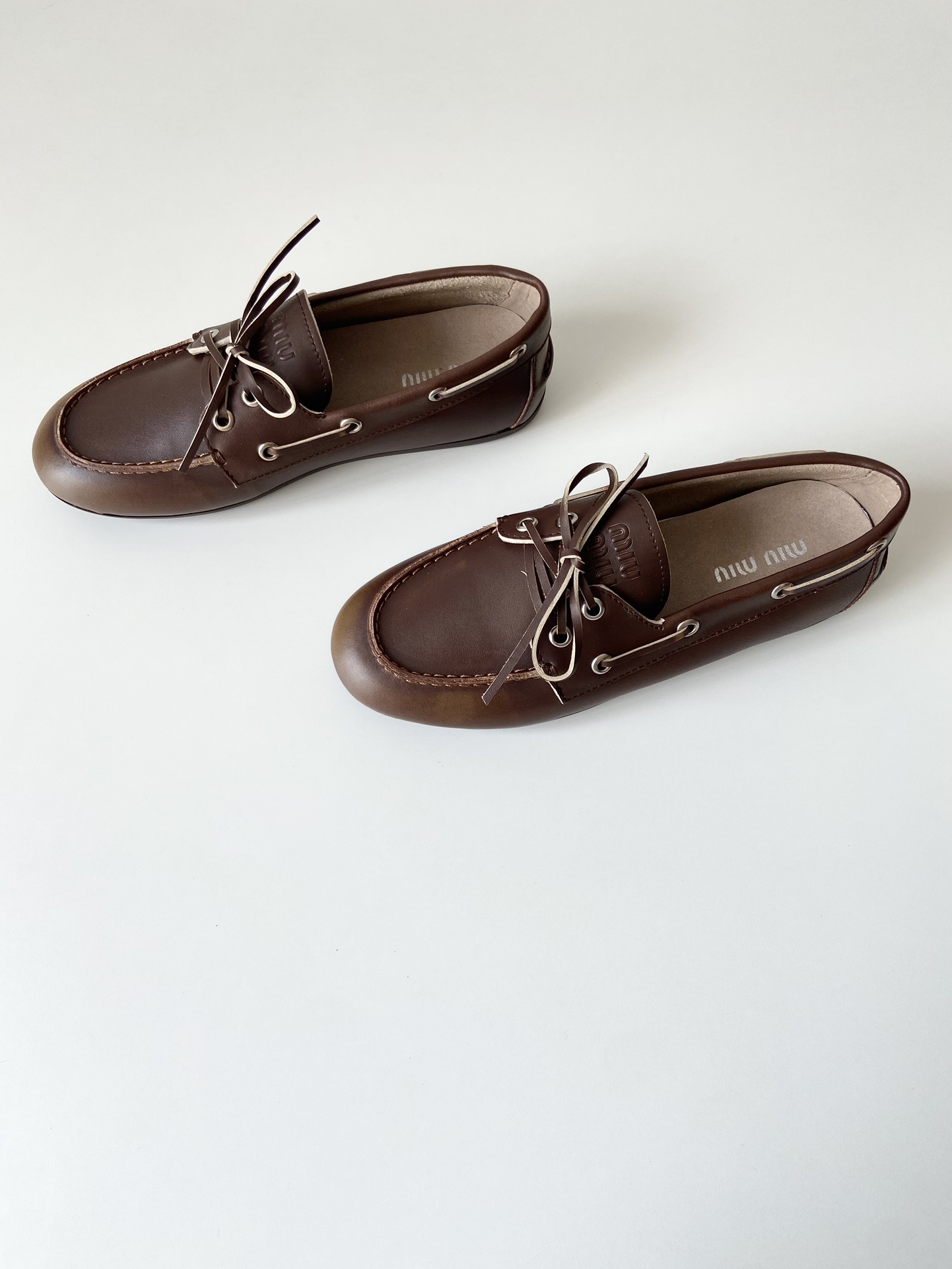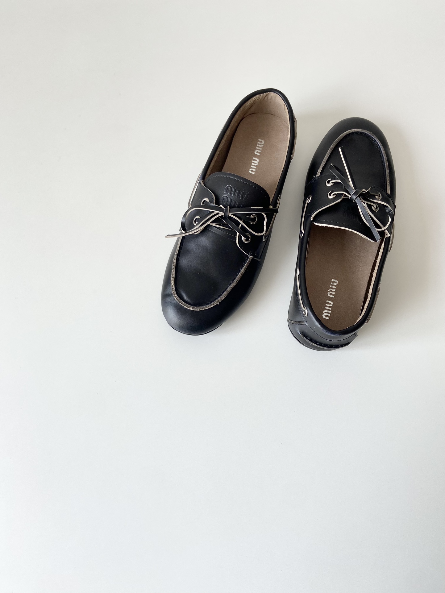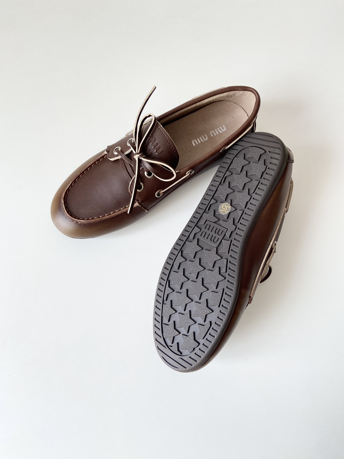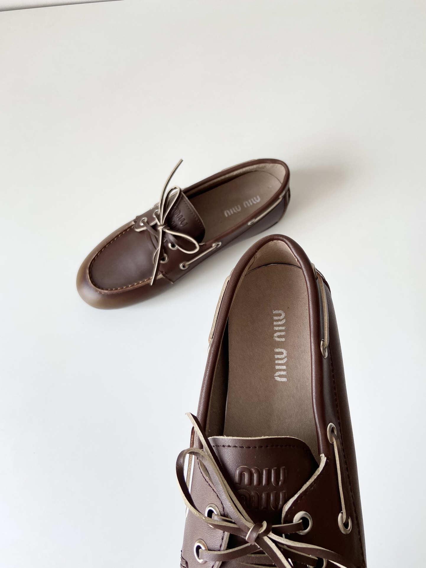 NIGO MiuMiu Women's Spring And Summer Solid Color Round Head Overfoot Low Top Lace Up Loafers Shoes #nigo75441